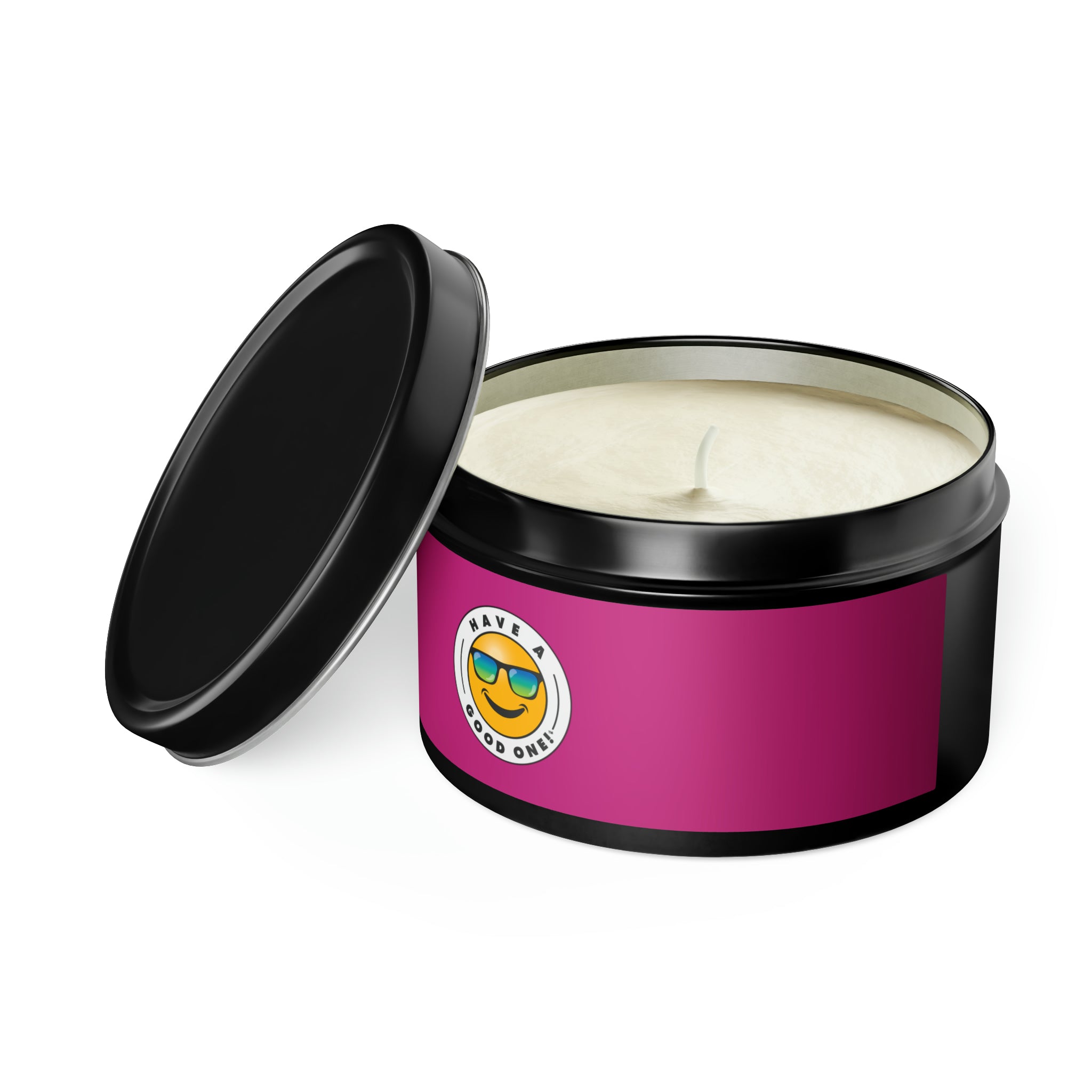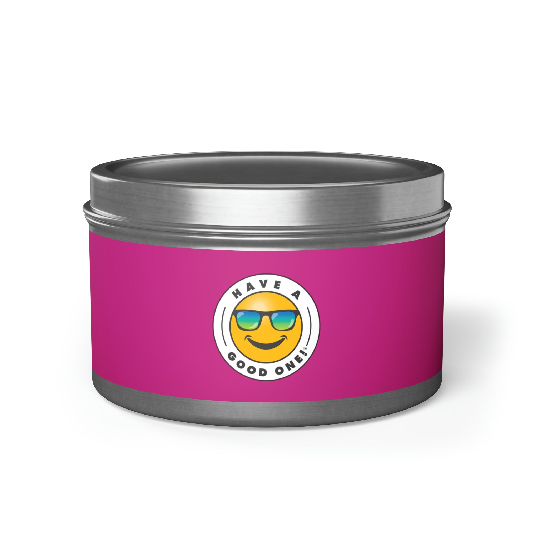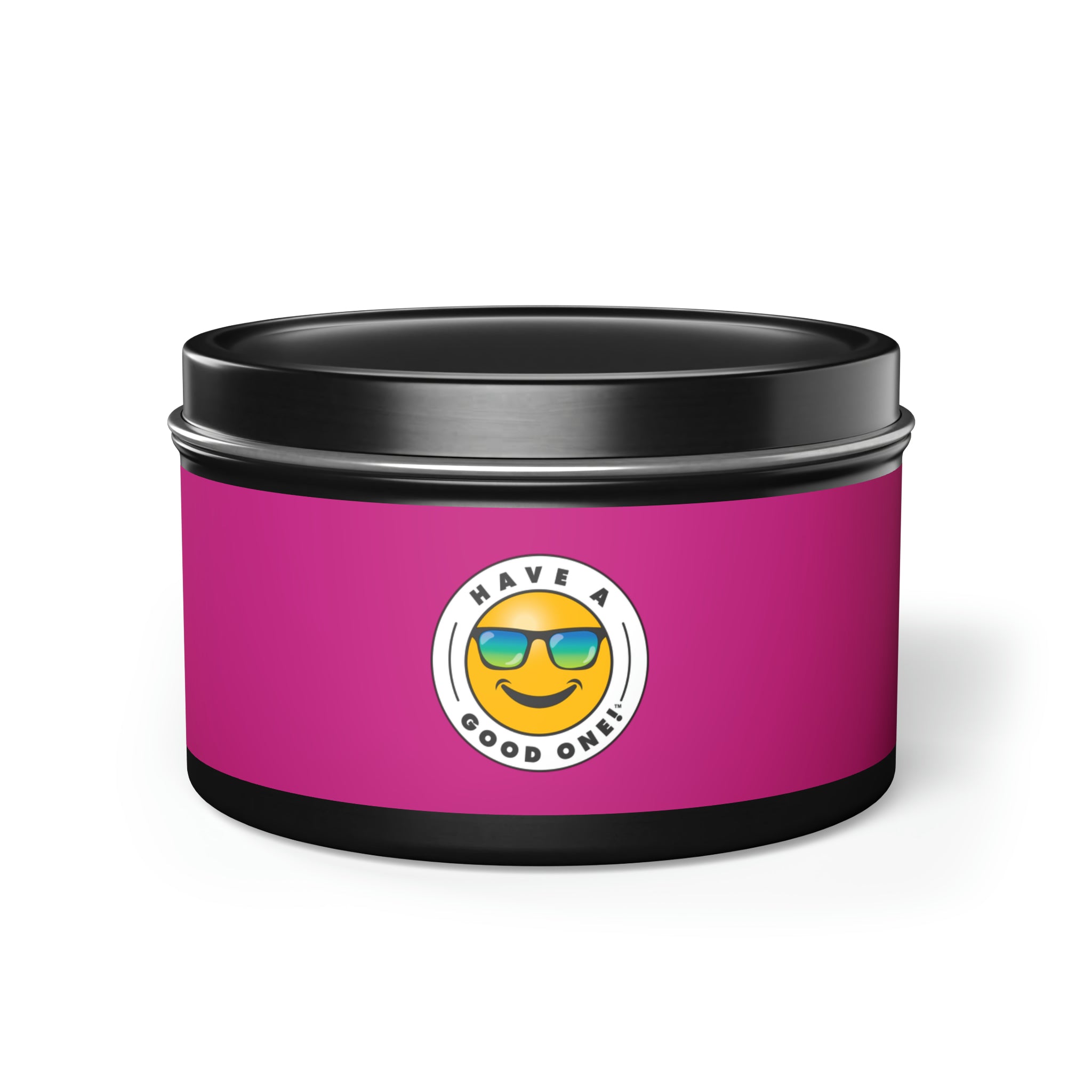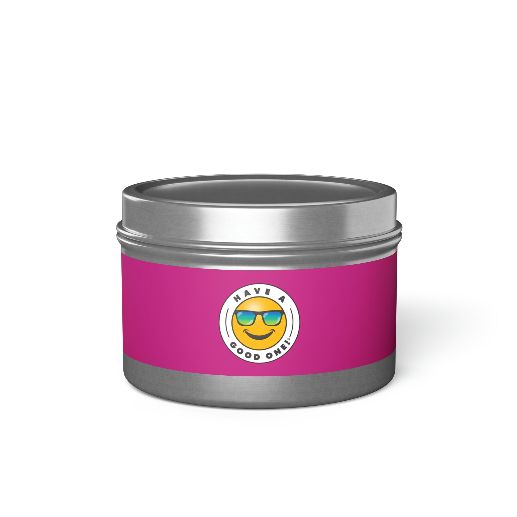 Tin Have A Good One! Candles With Lid - Pink Color With Blue Green Have A Good One Logo