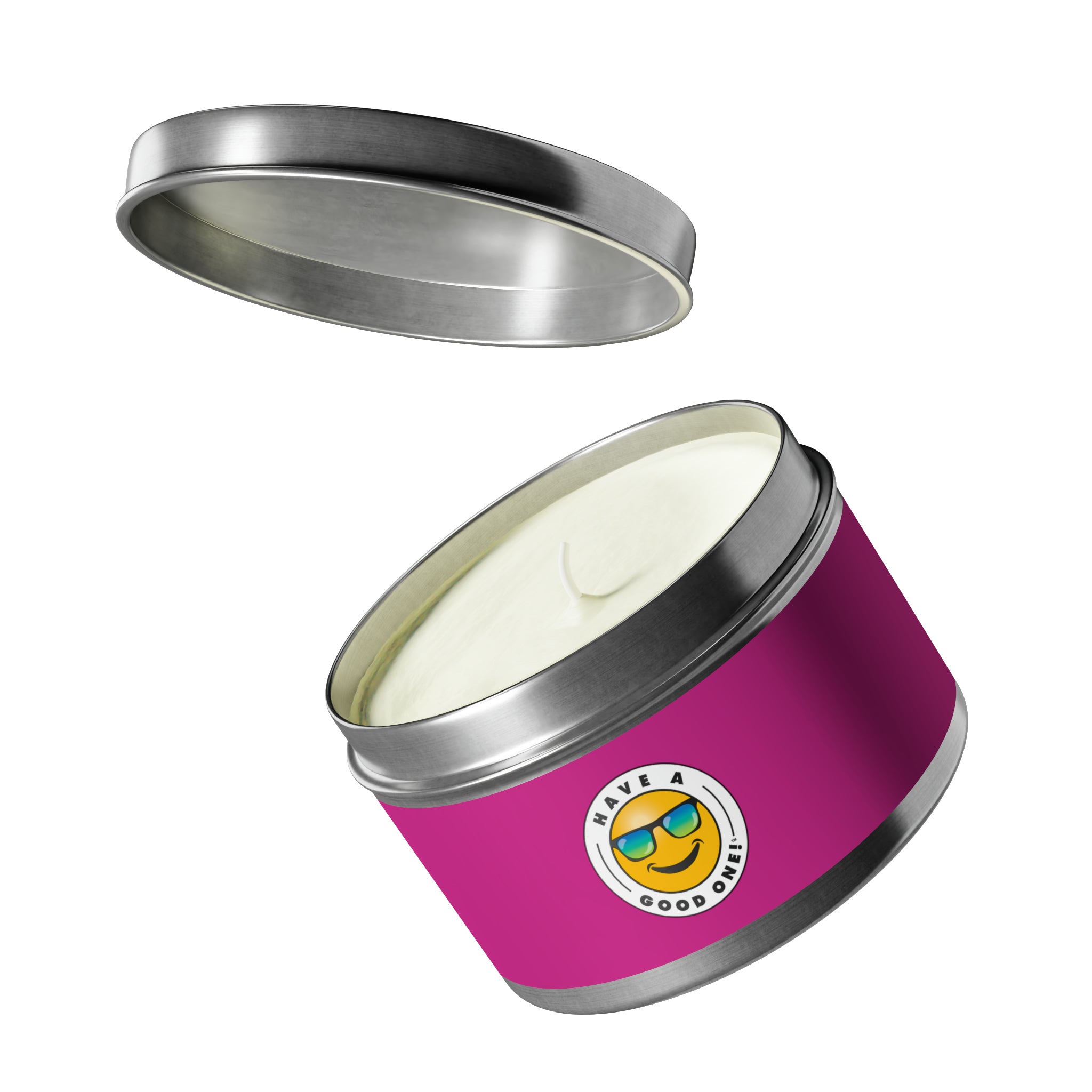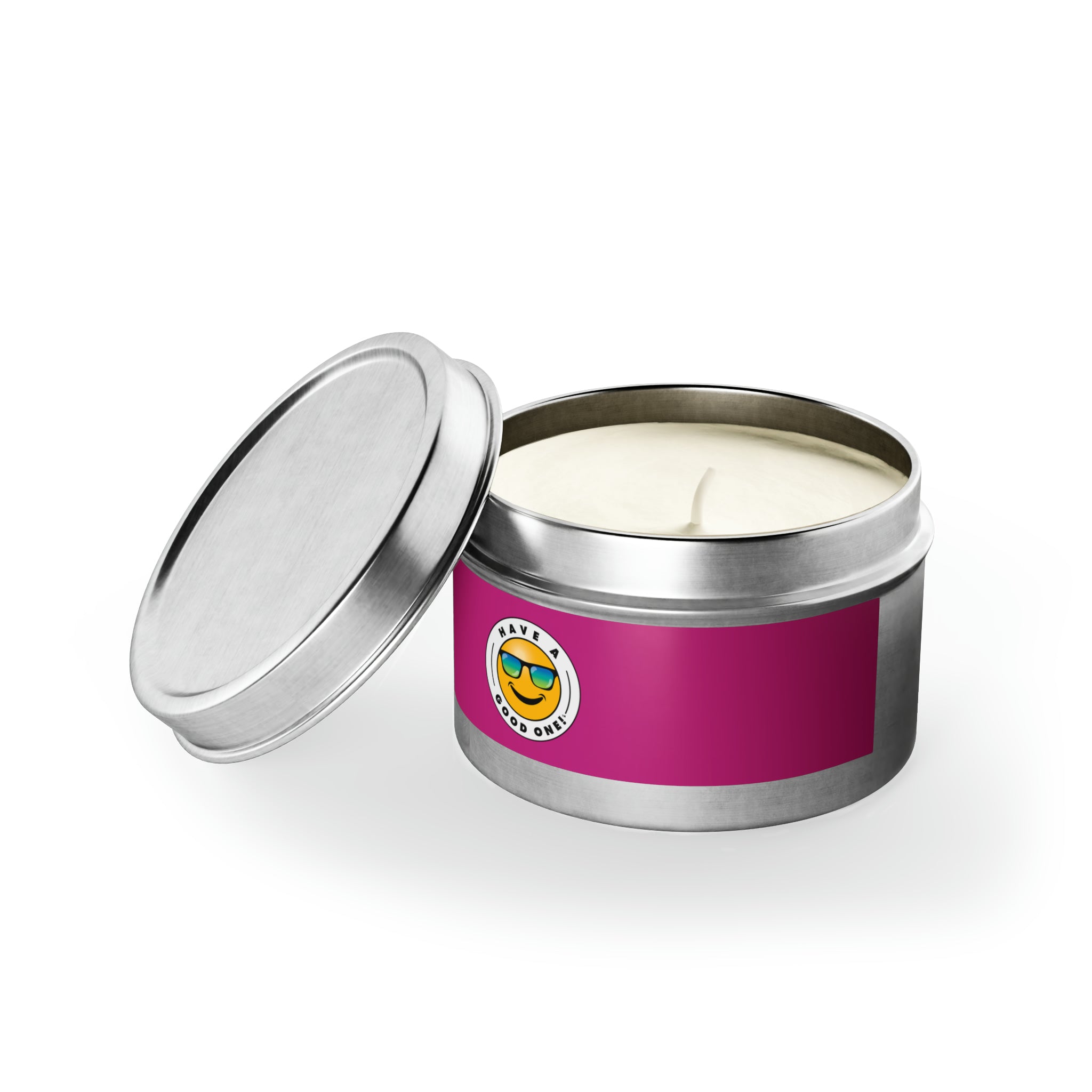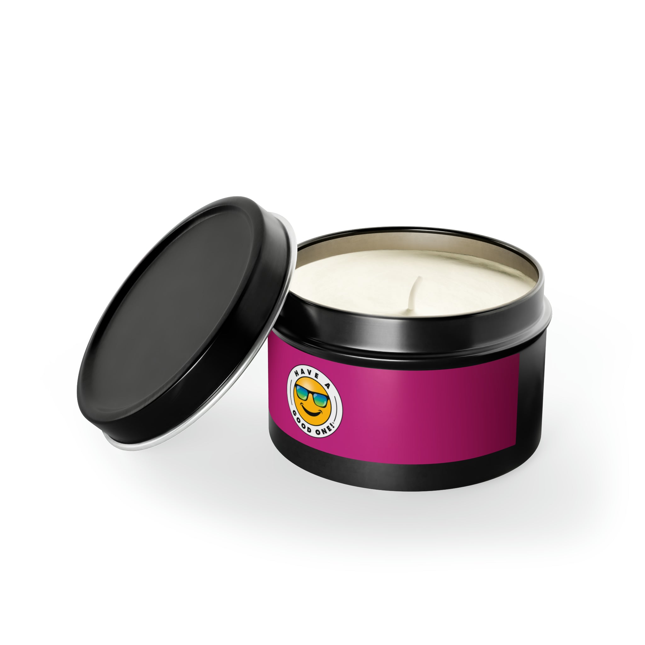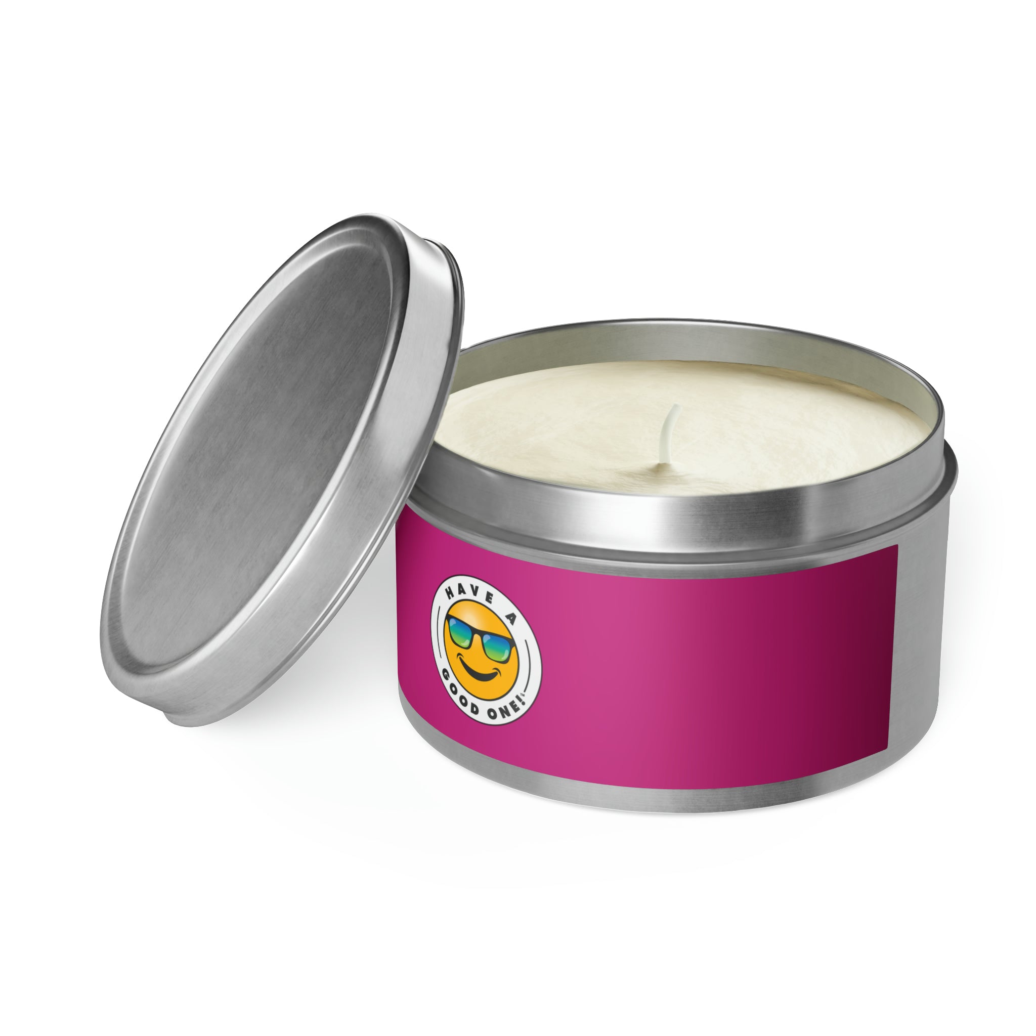 Tin Have A Good One! Candles With Lid - Pink Color With Blue Green Have A Good One Logo