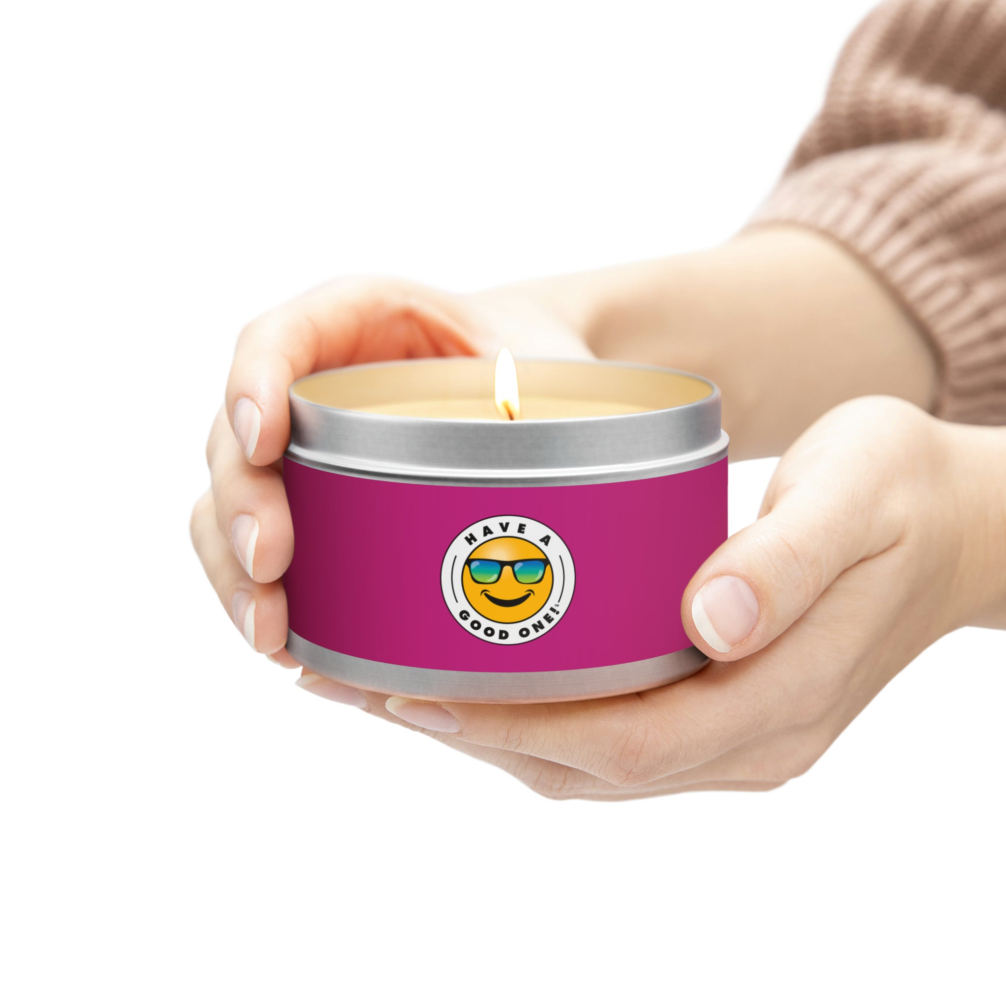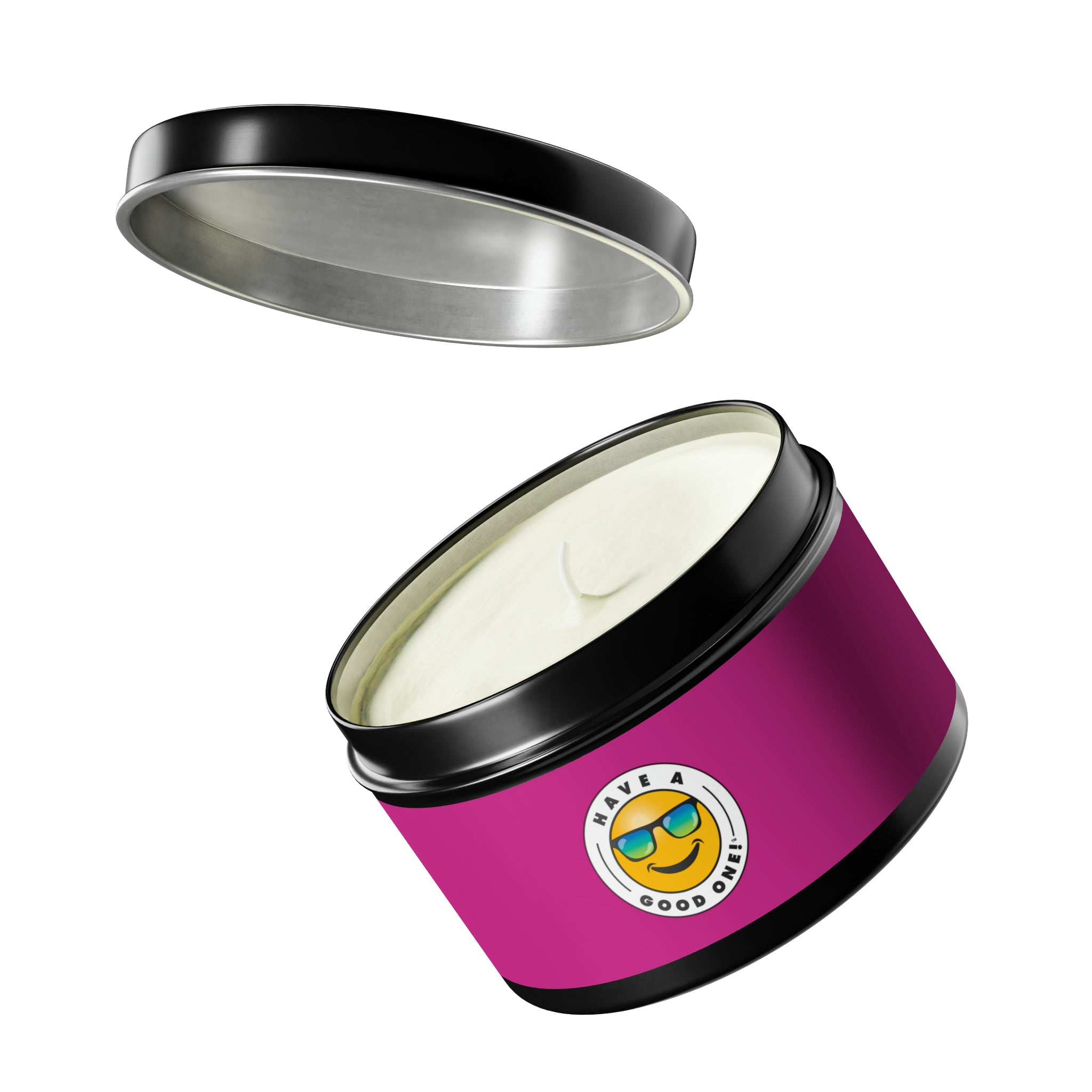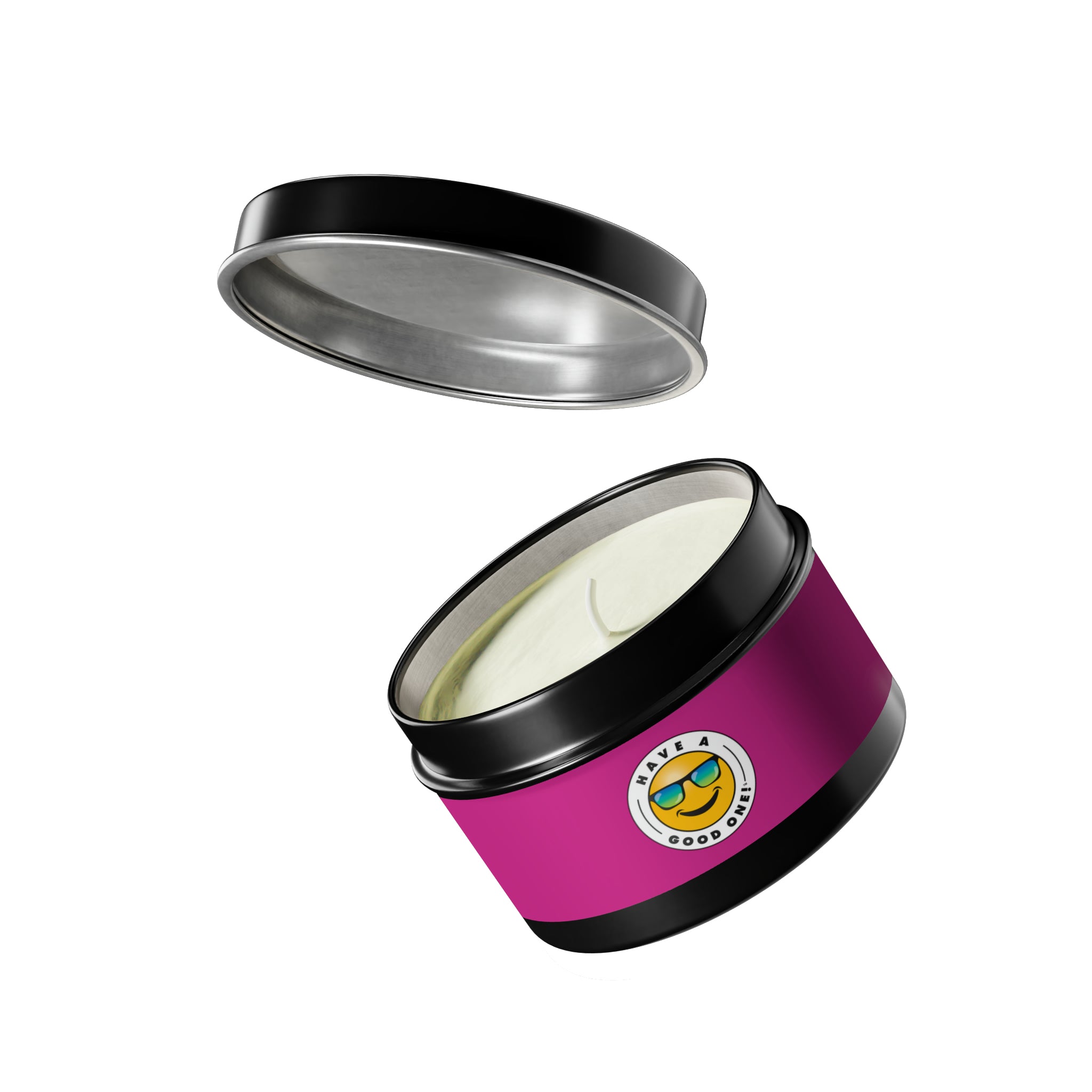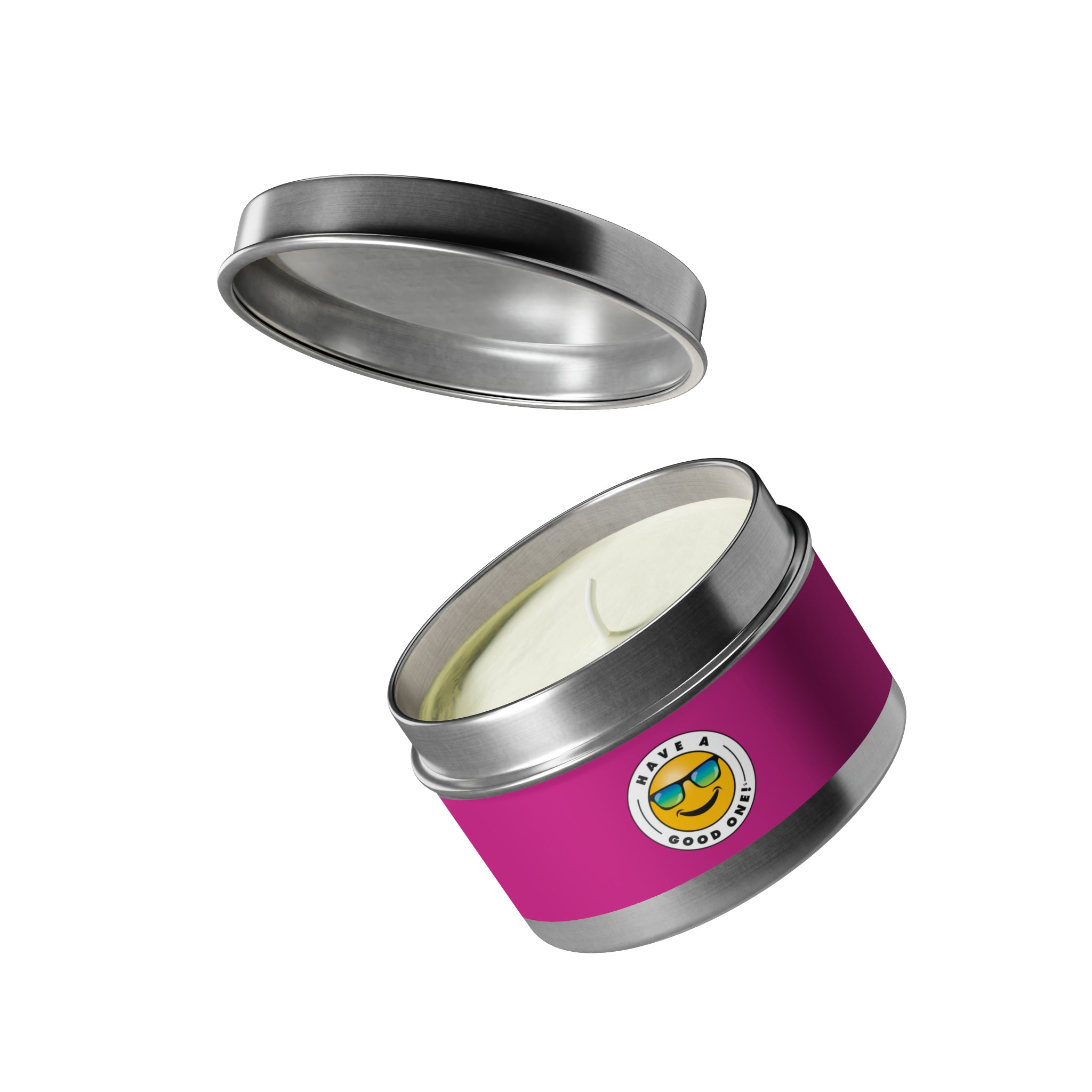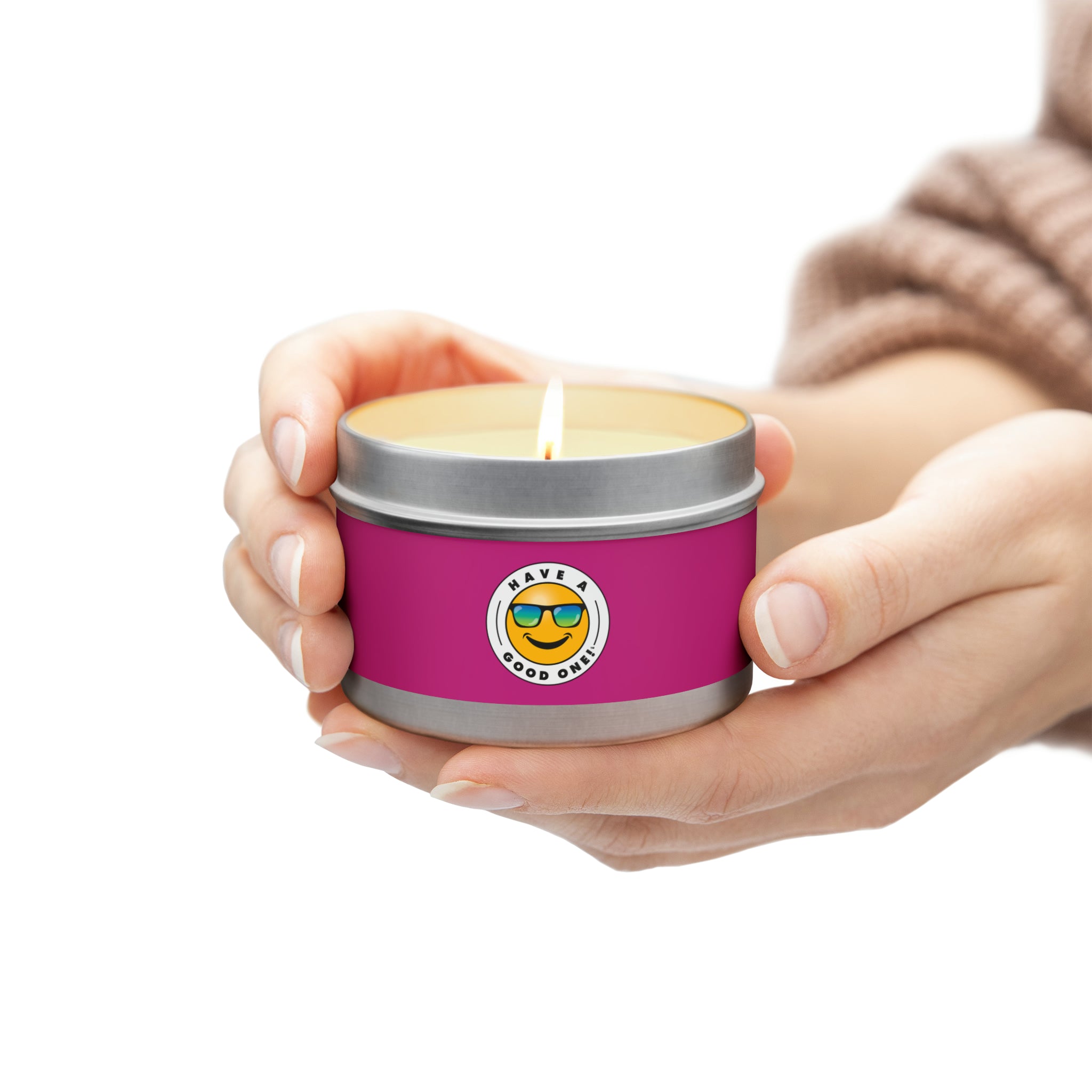 Tin Have A Good One! Candles With Lid - Pink Color With Blue Green Have A Good One Logo