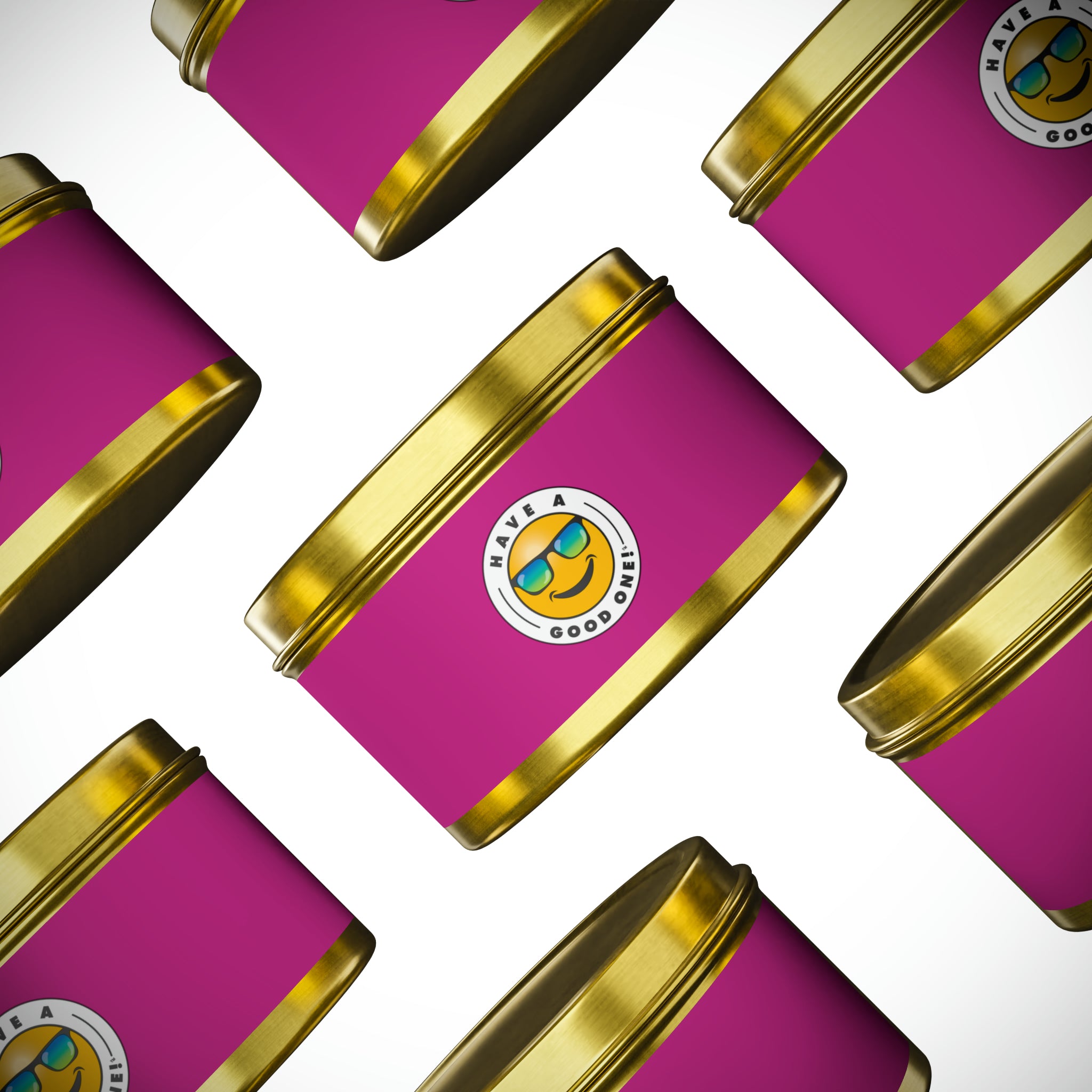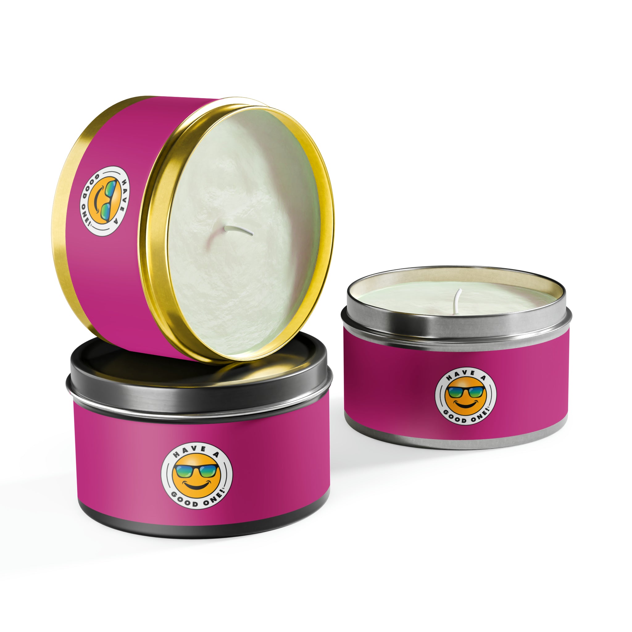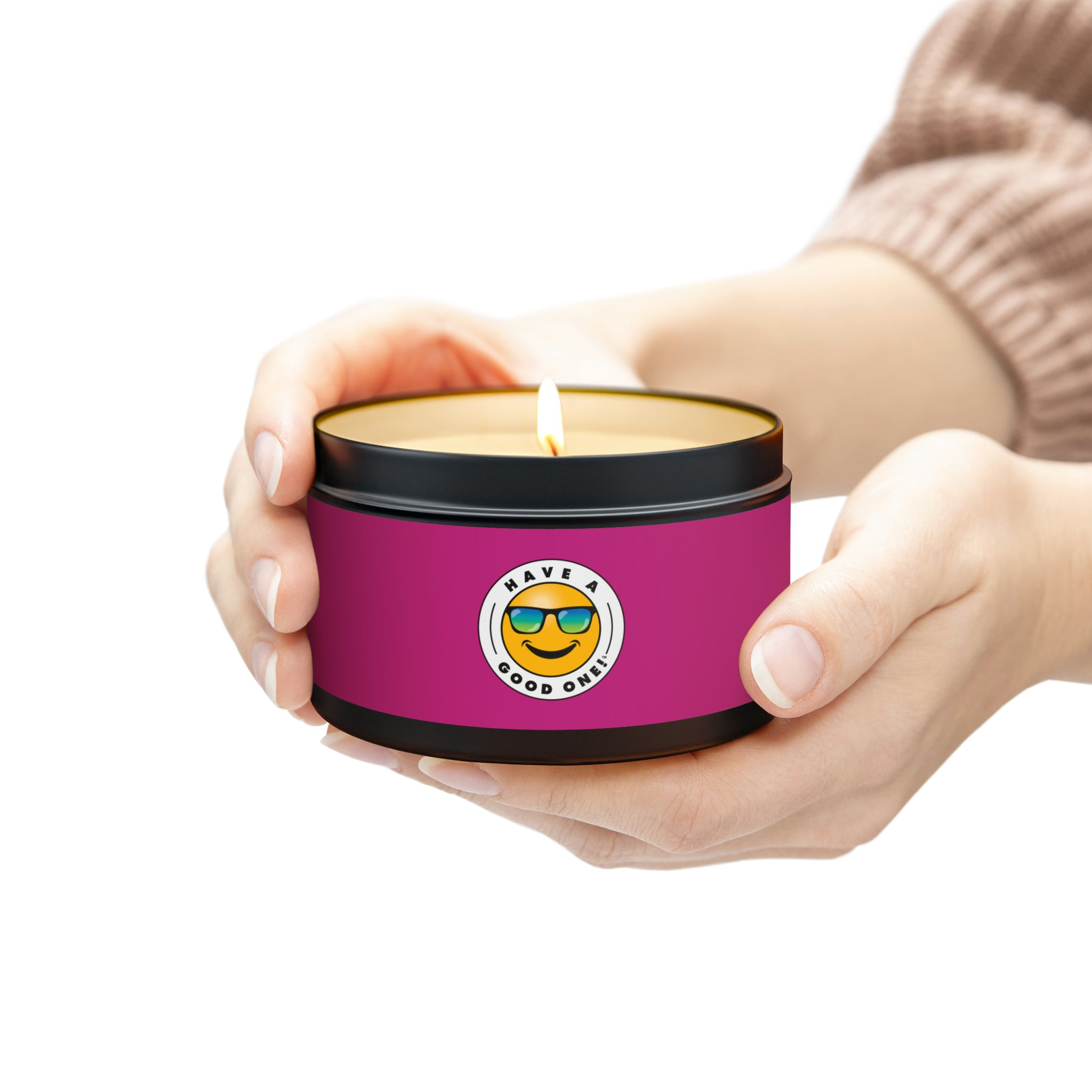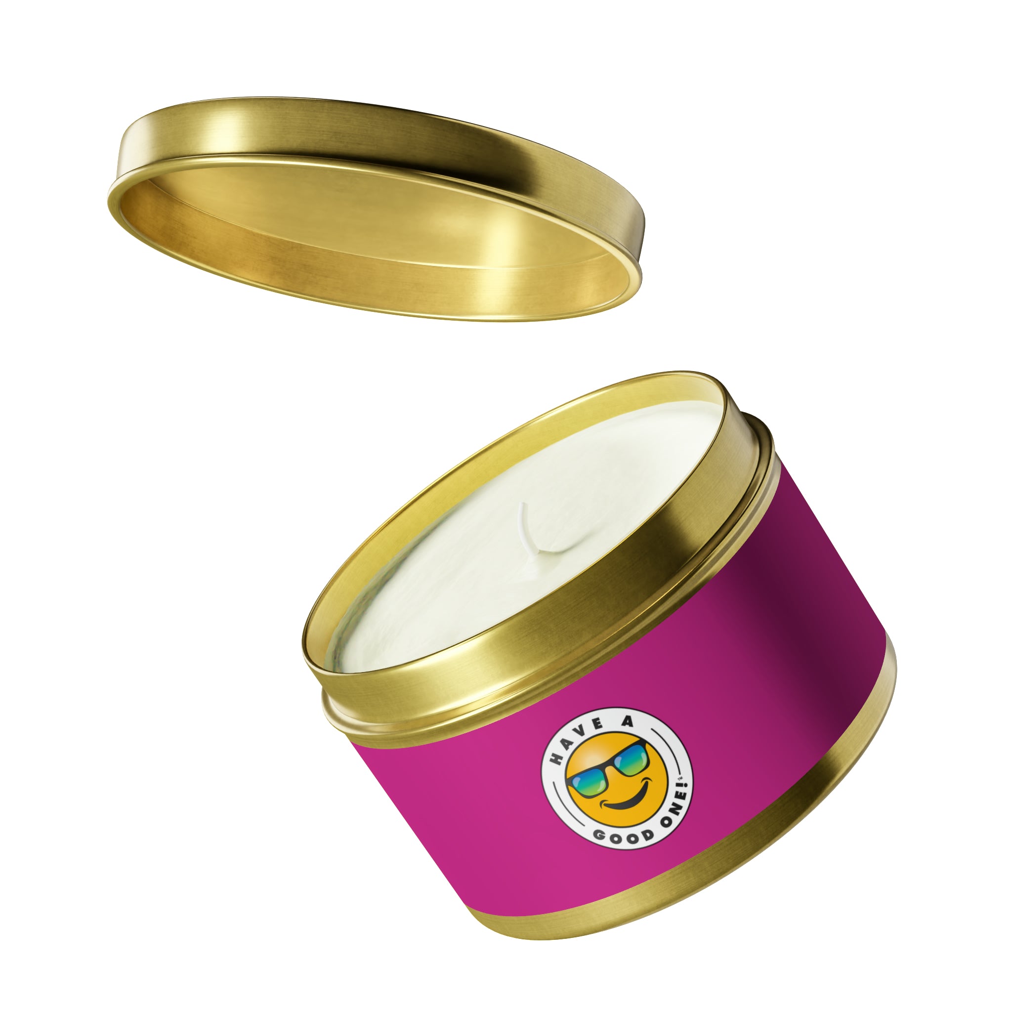 Tin Have A Good One! Candles With Lid - Pink Color With Blue Green Have A Good One Logo