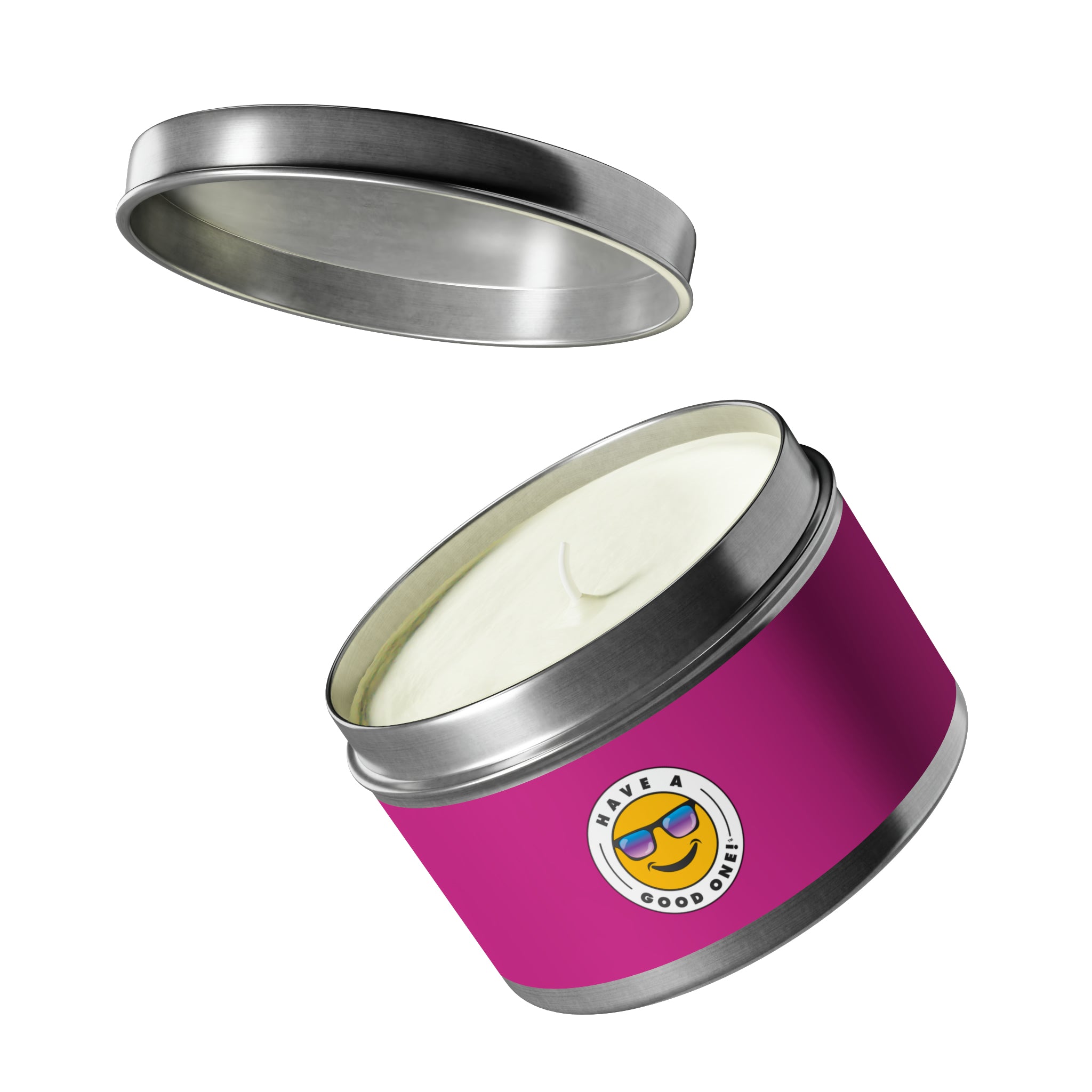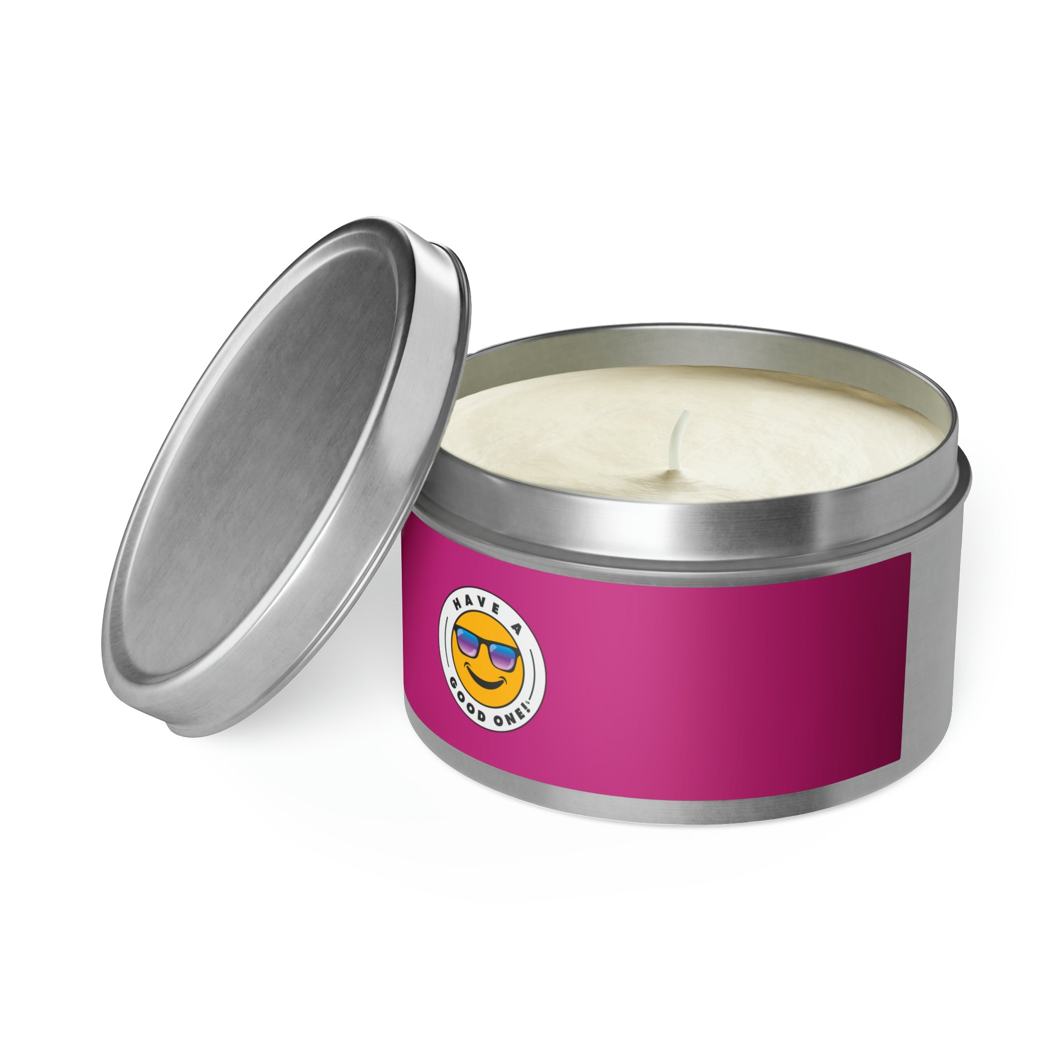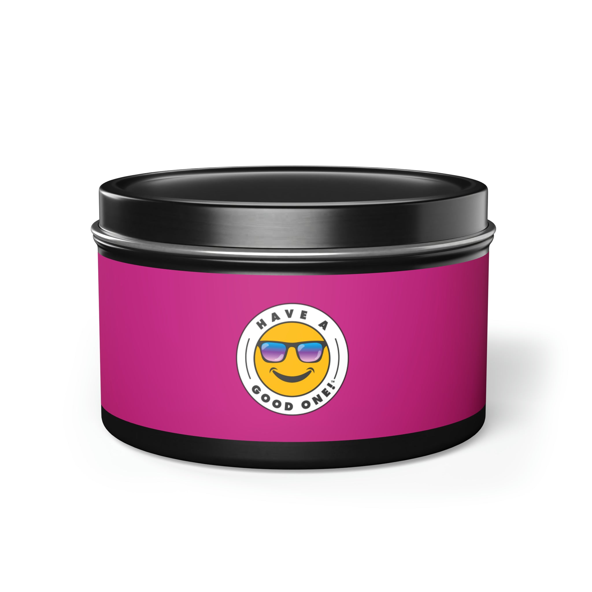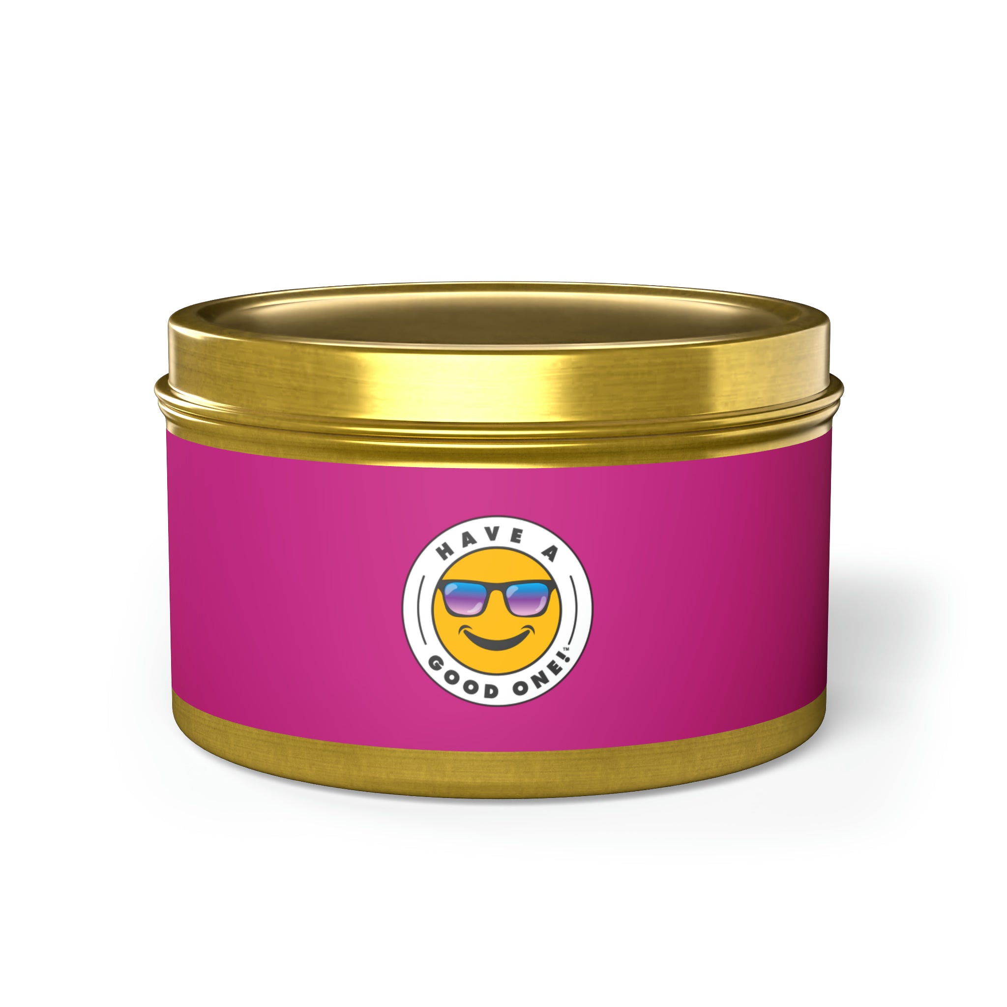Tin Have A Good One! Candles With Lid - Pink Color With Blue Purple Have A Good One Logo