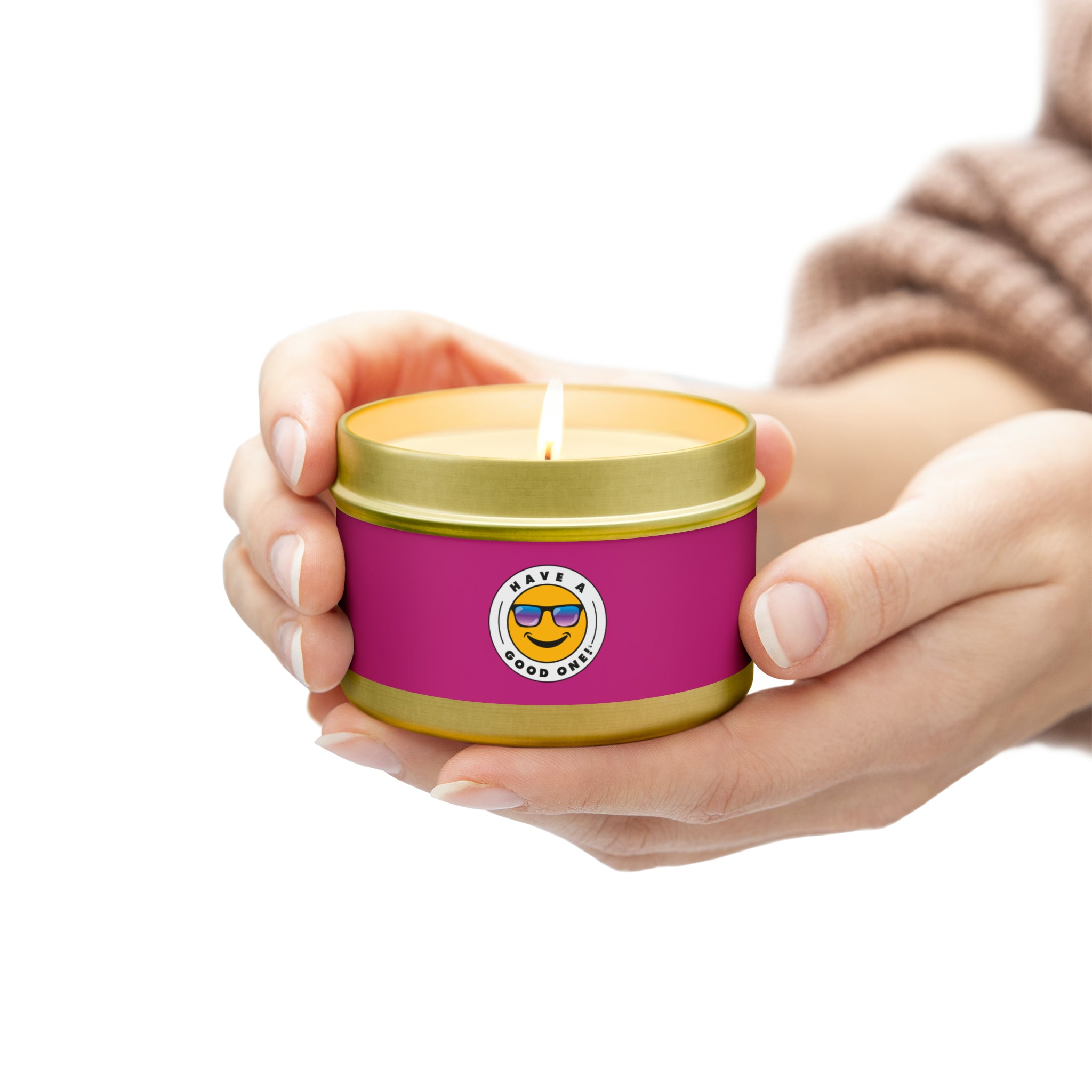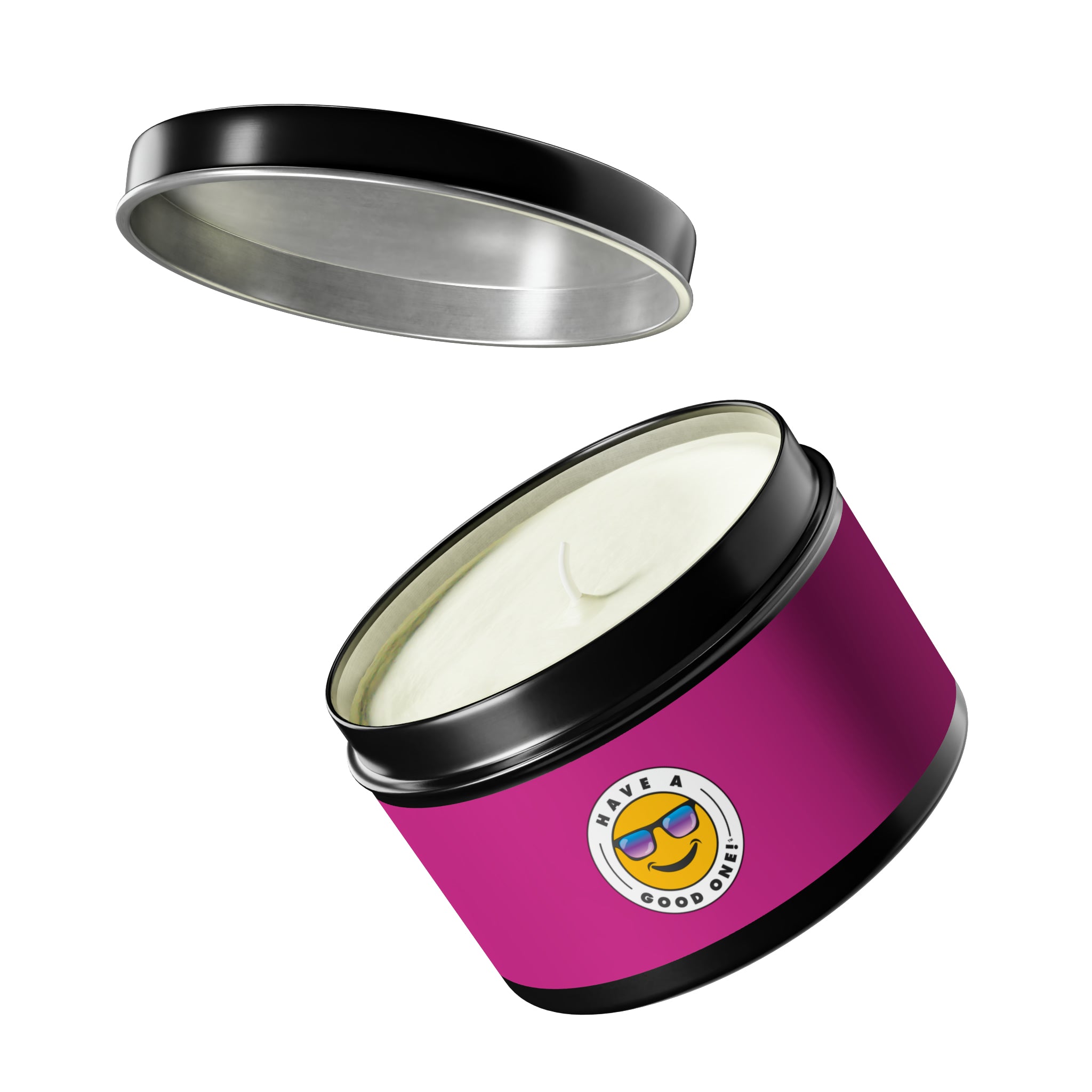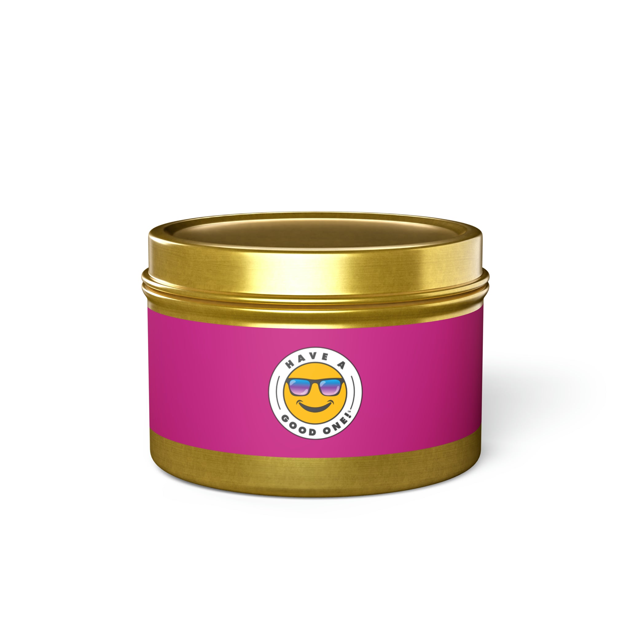 Tin Have A Good One! Candles With Lid - Pink Color With Blue Purple Have A Good One Logo