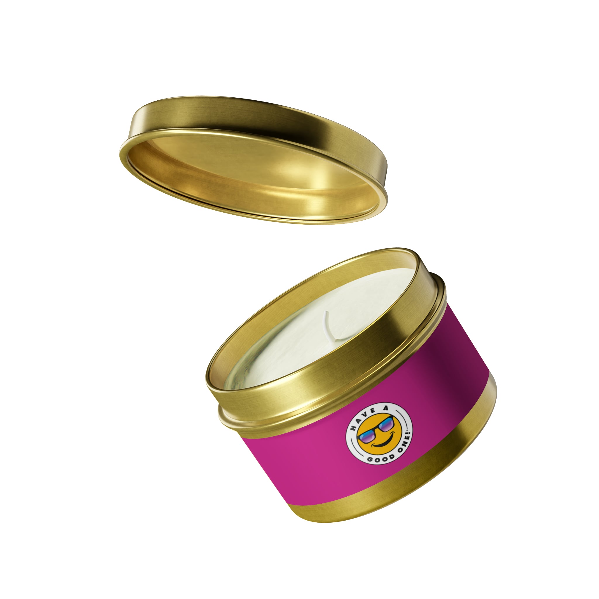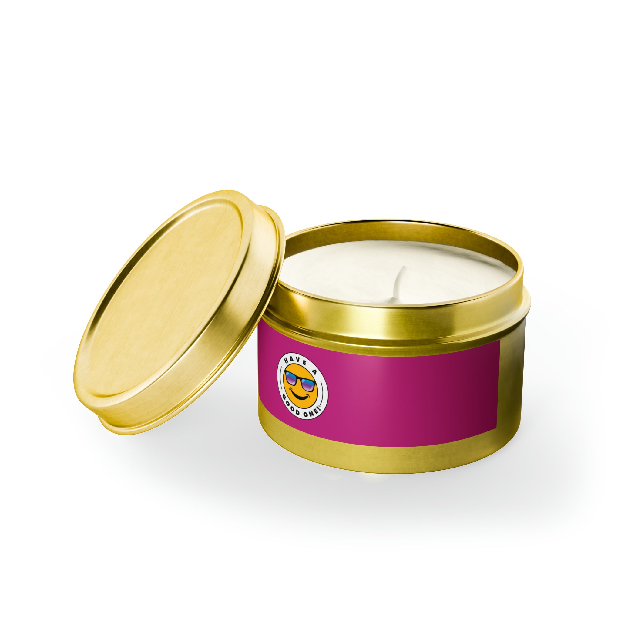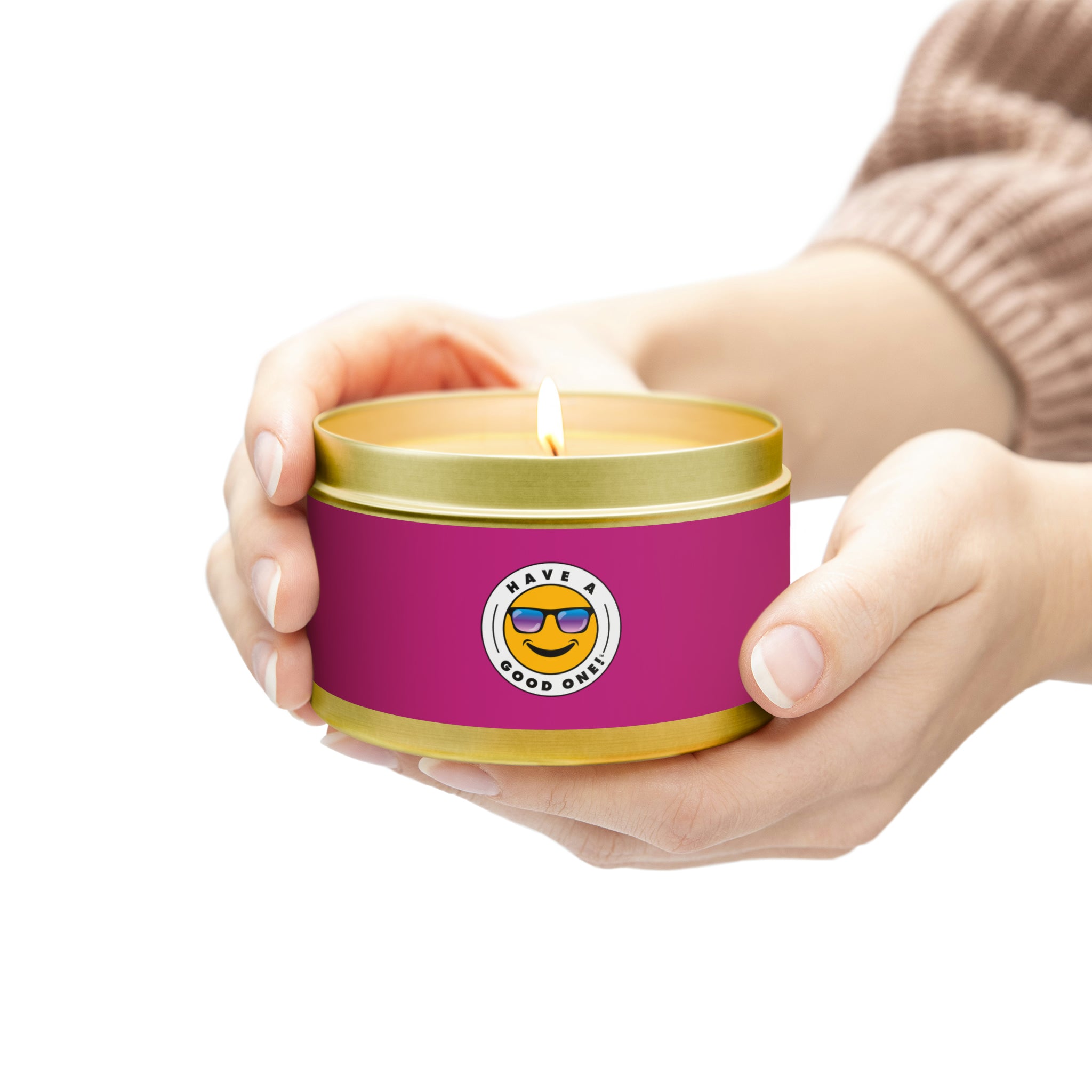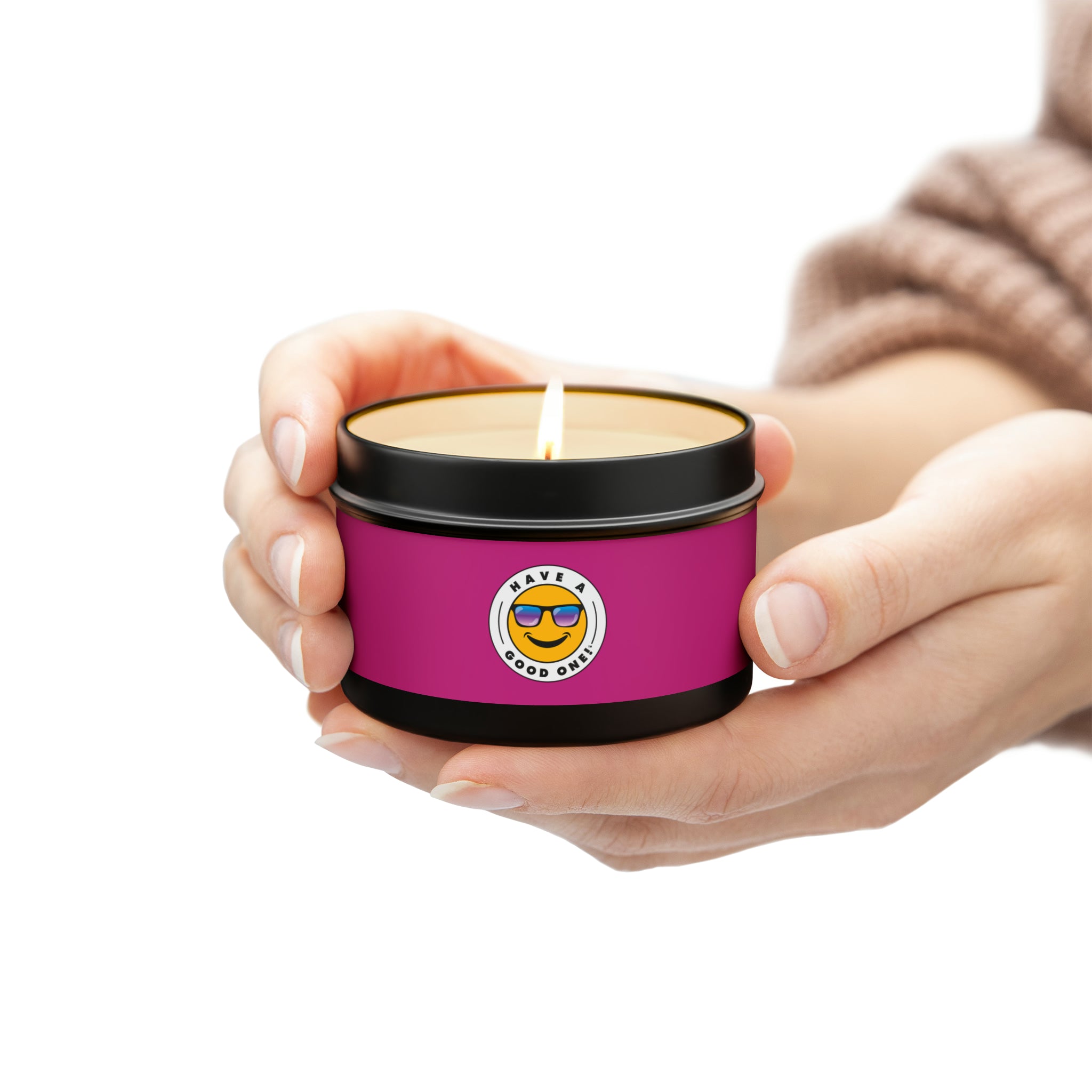 Tin Have A Good One! Candles With Lid - Pink Color With Blue Purple Have A Good One Logo