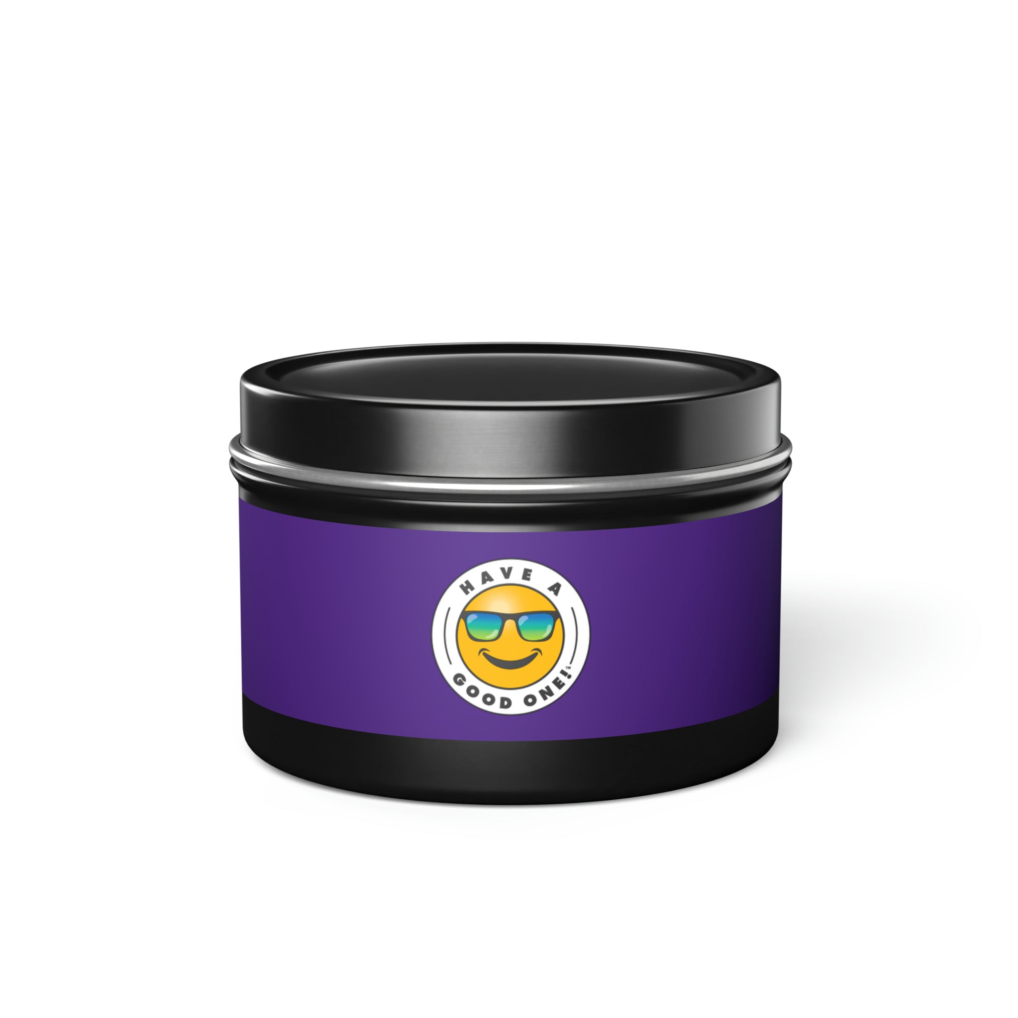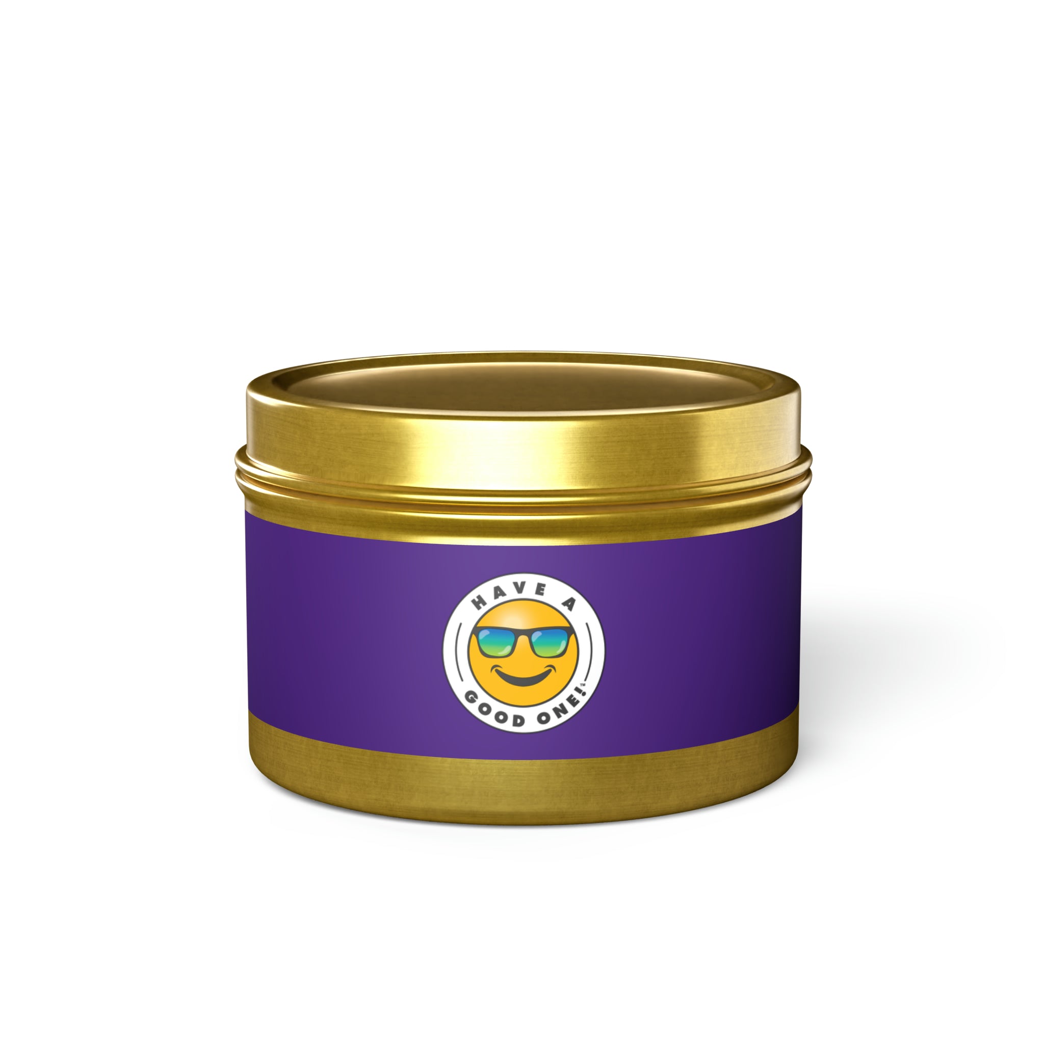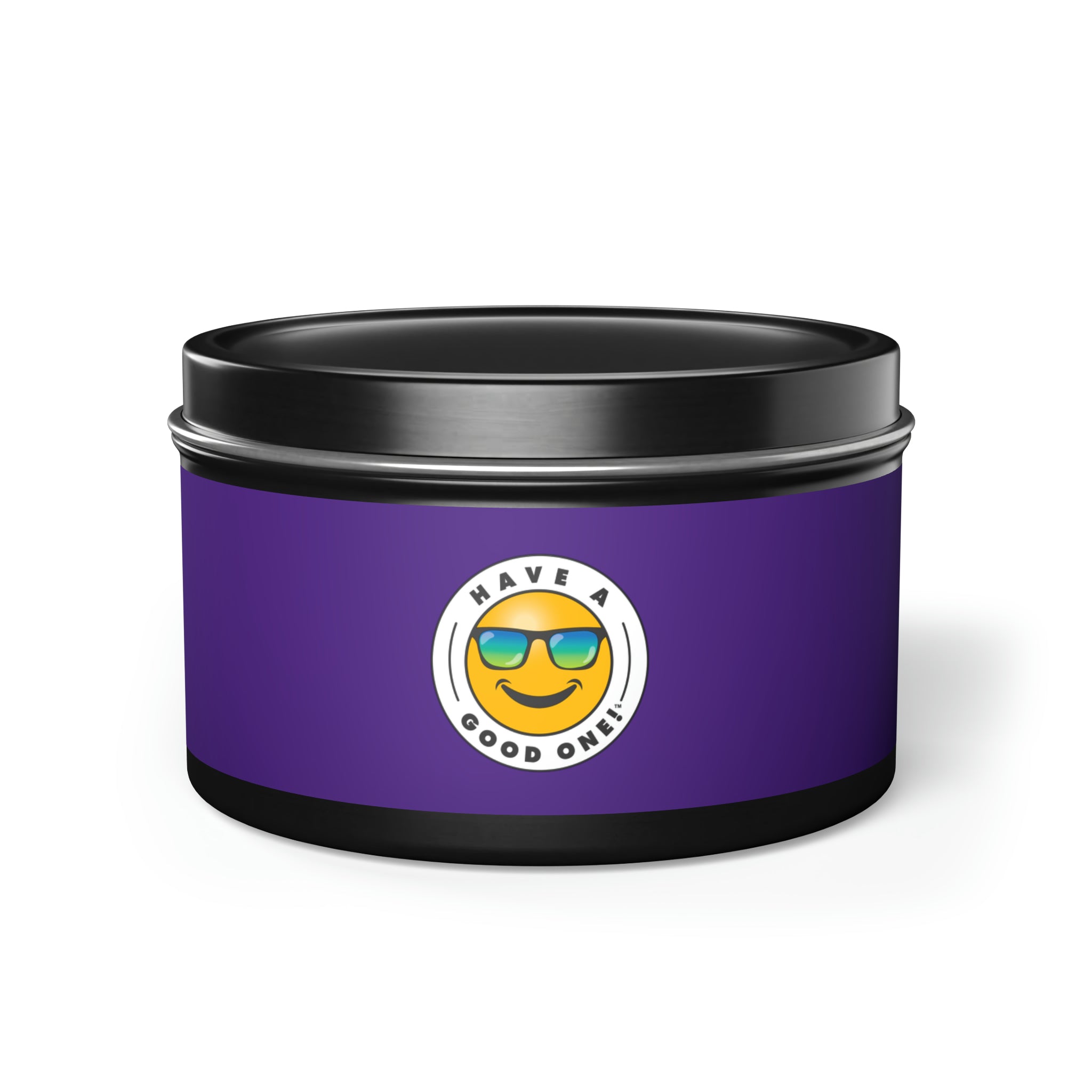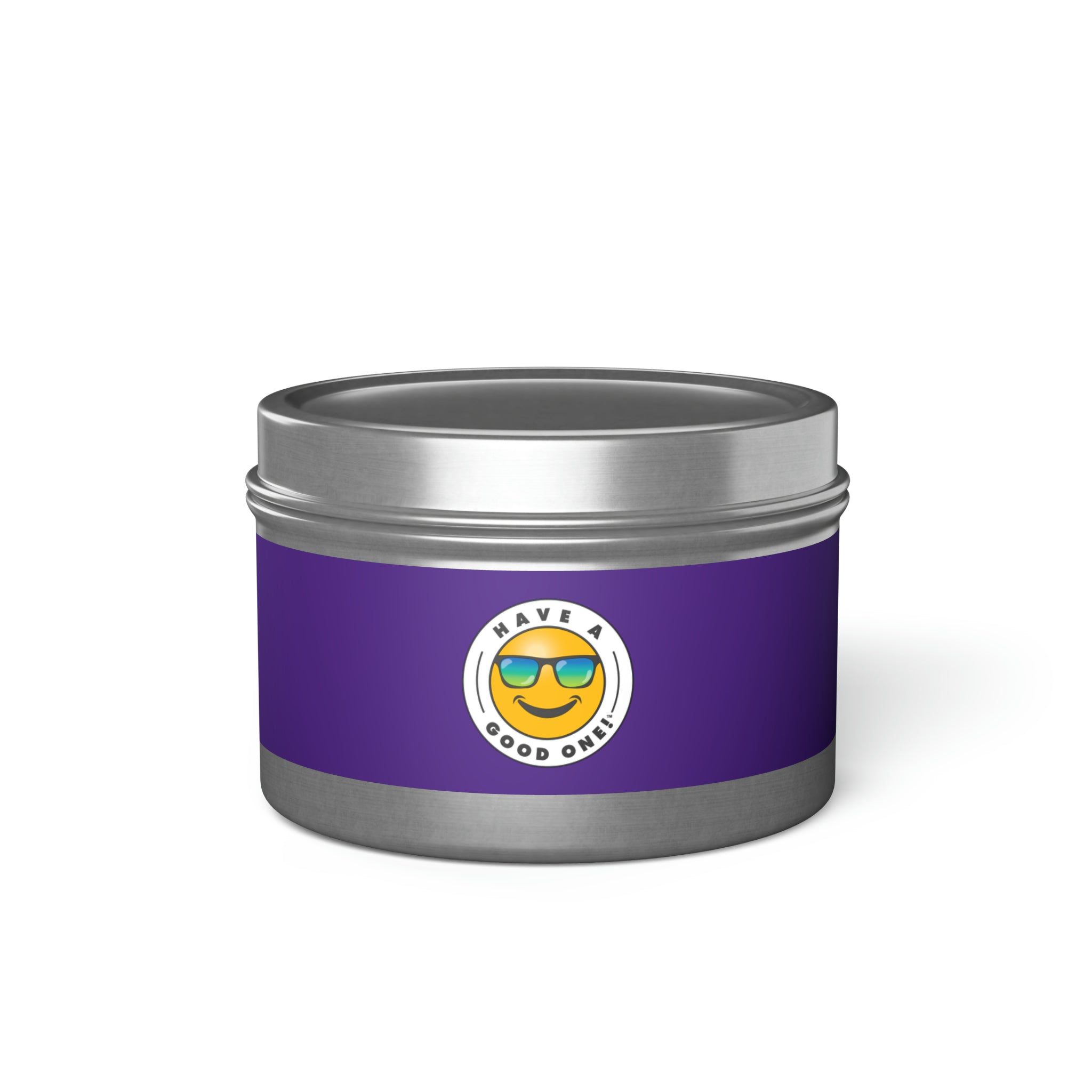 Tin Have A Good One! Candles With Lid - Purple Color With Blue Green Have A Good One Logo