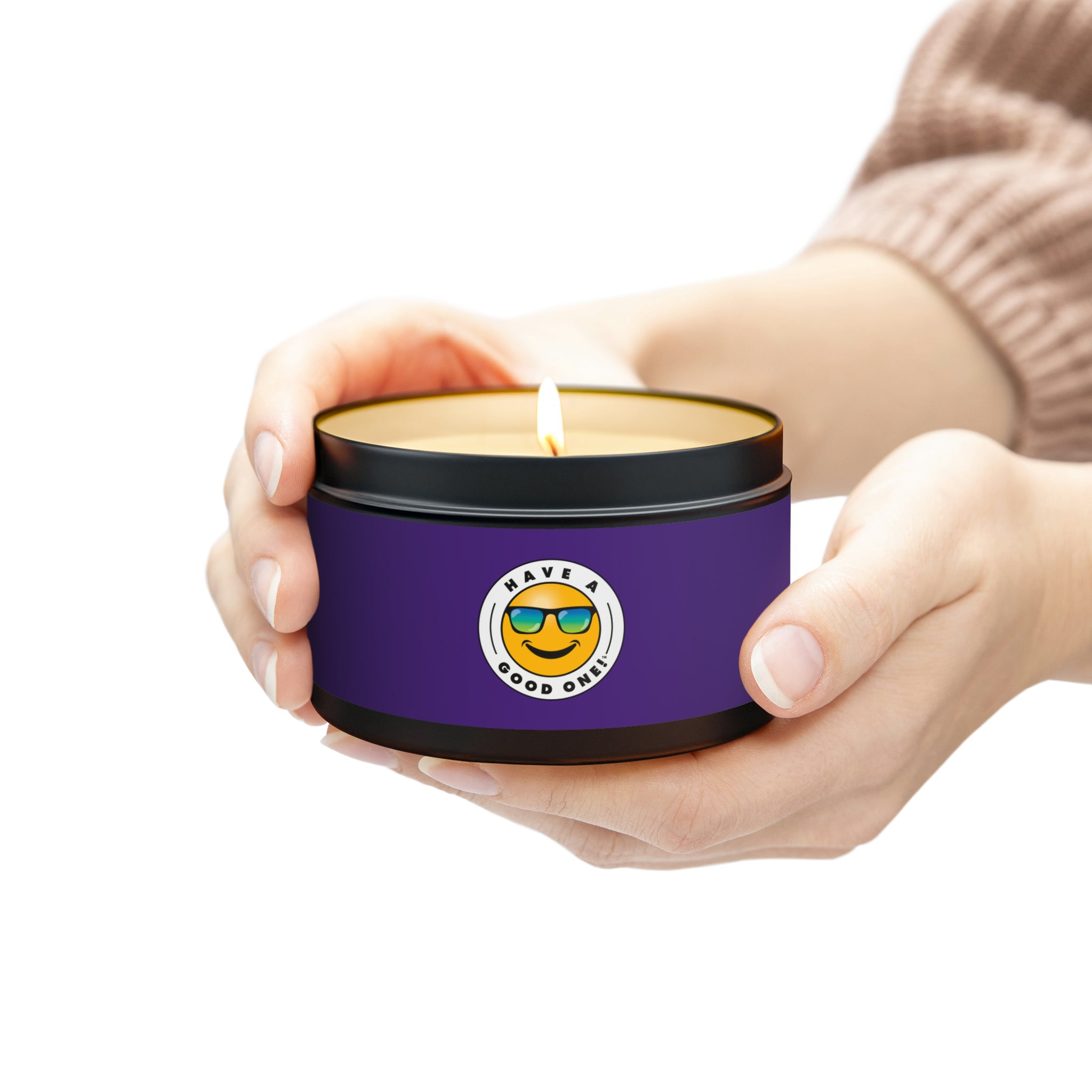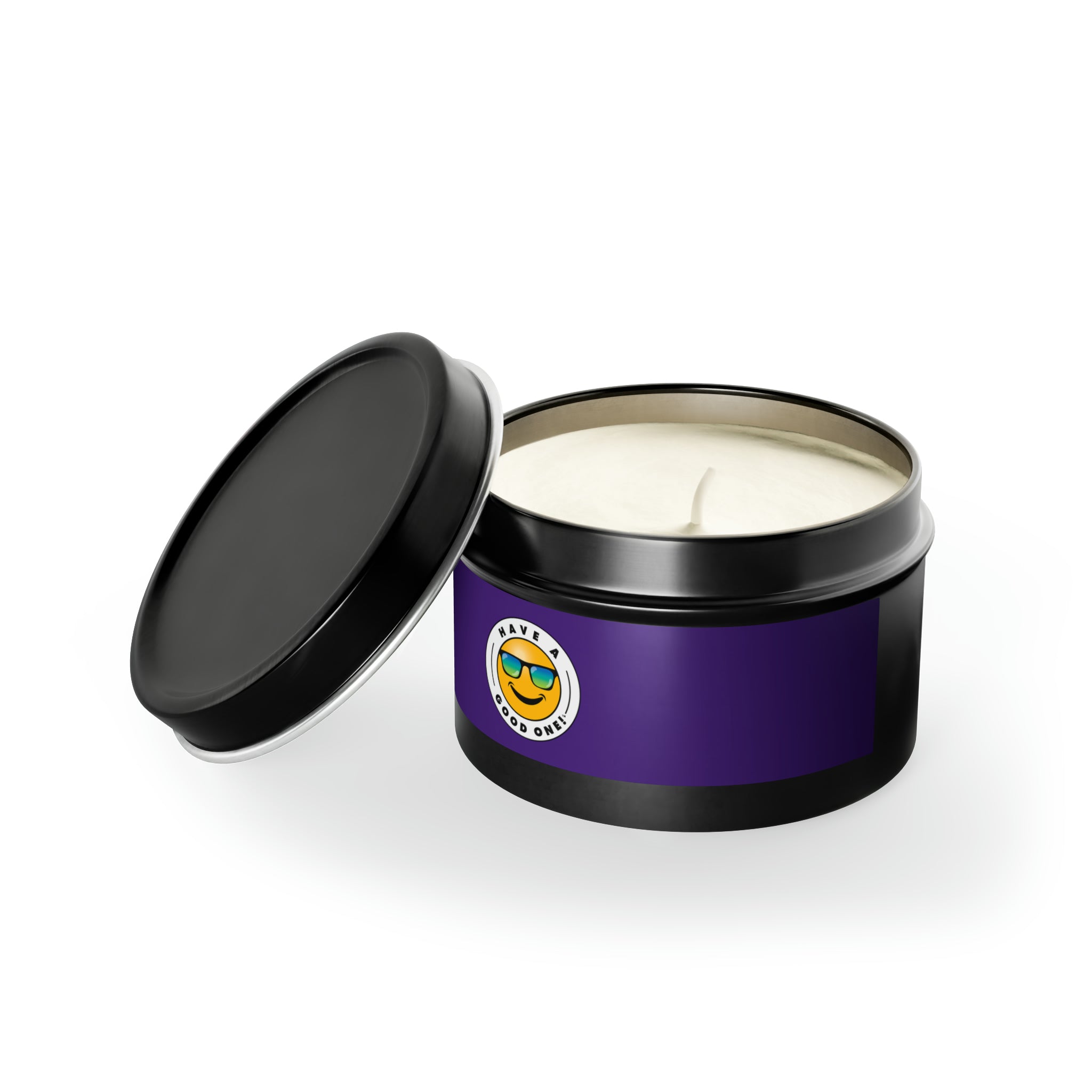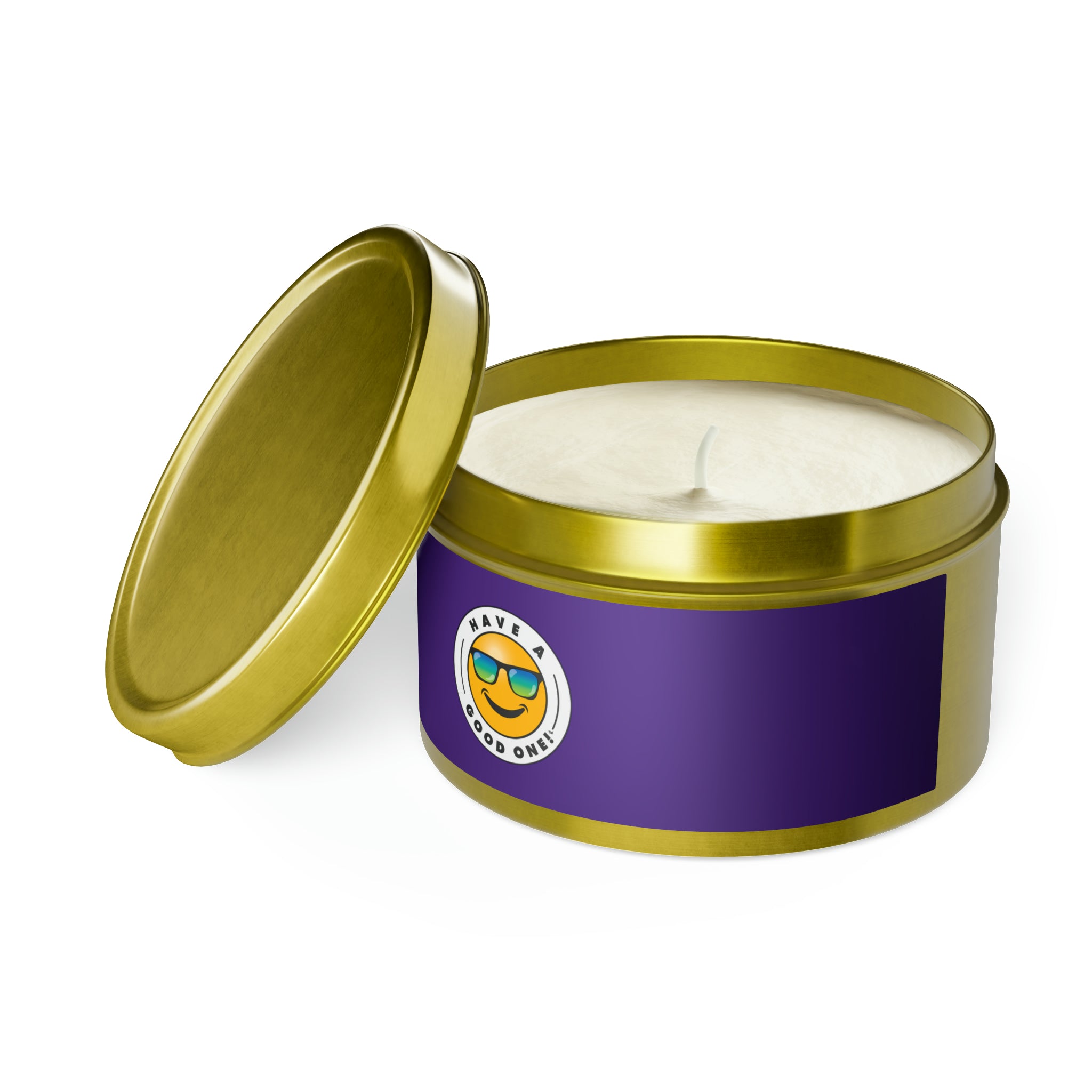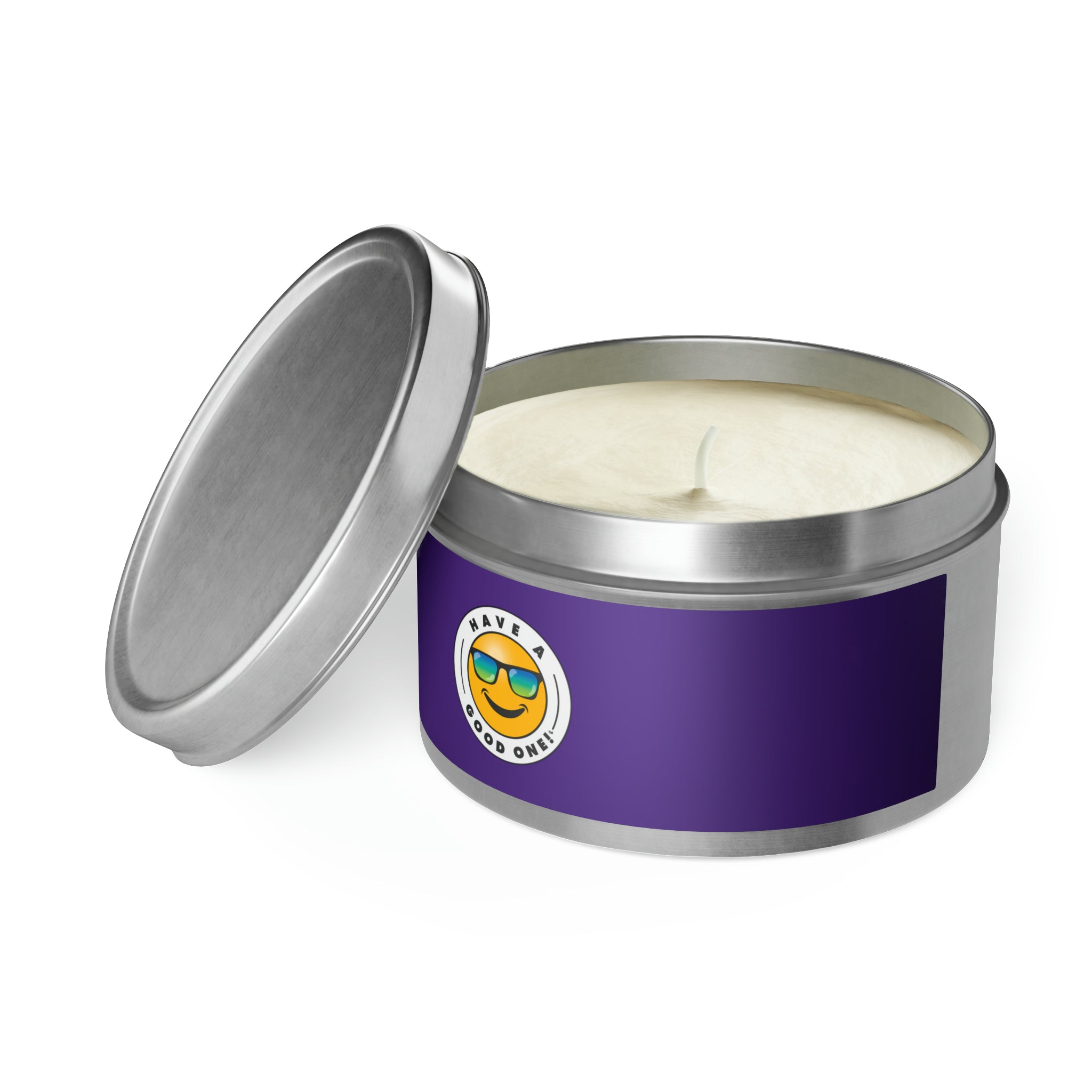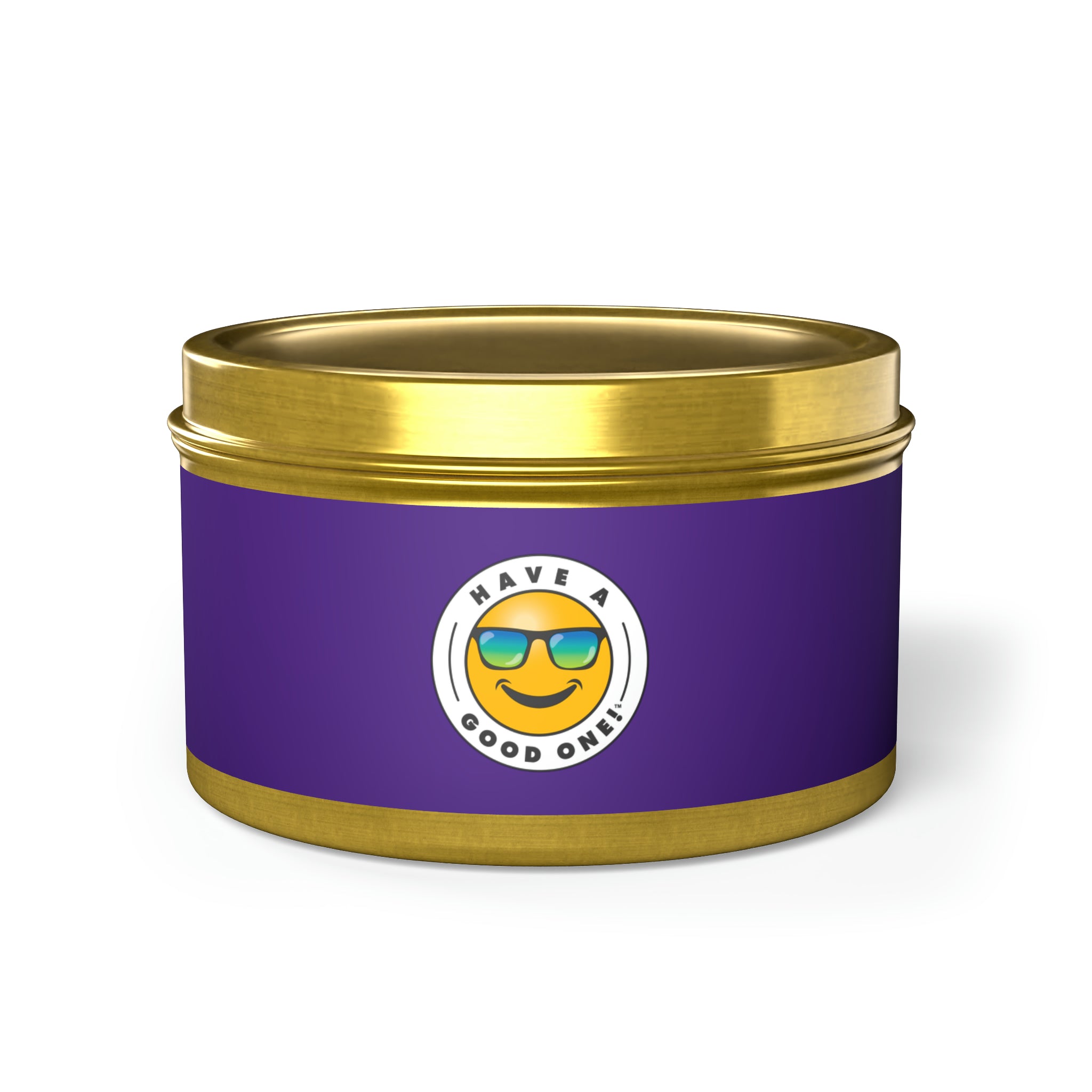 Tin Have A Good One! Candles With Lid - Purple Color With Blue Green Have A Good One Logo