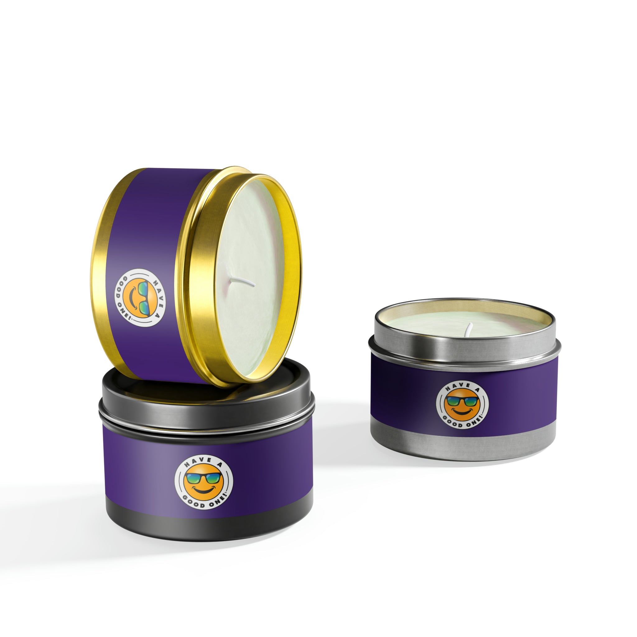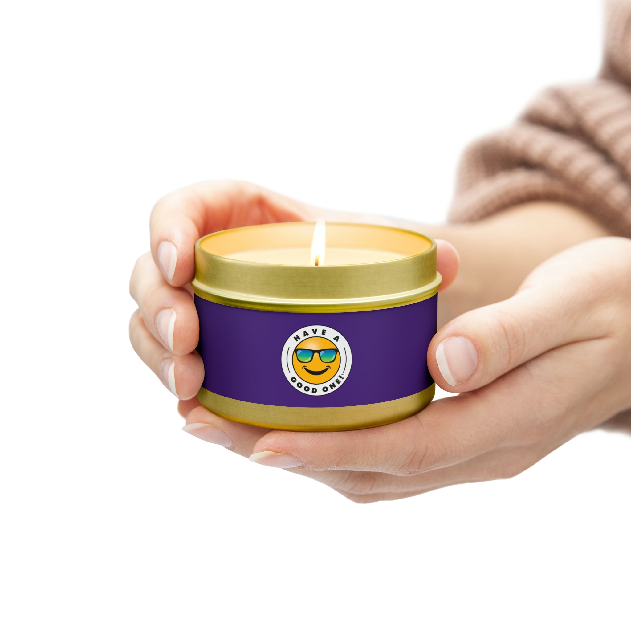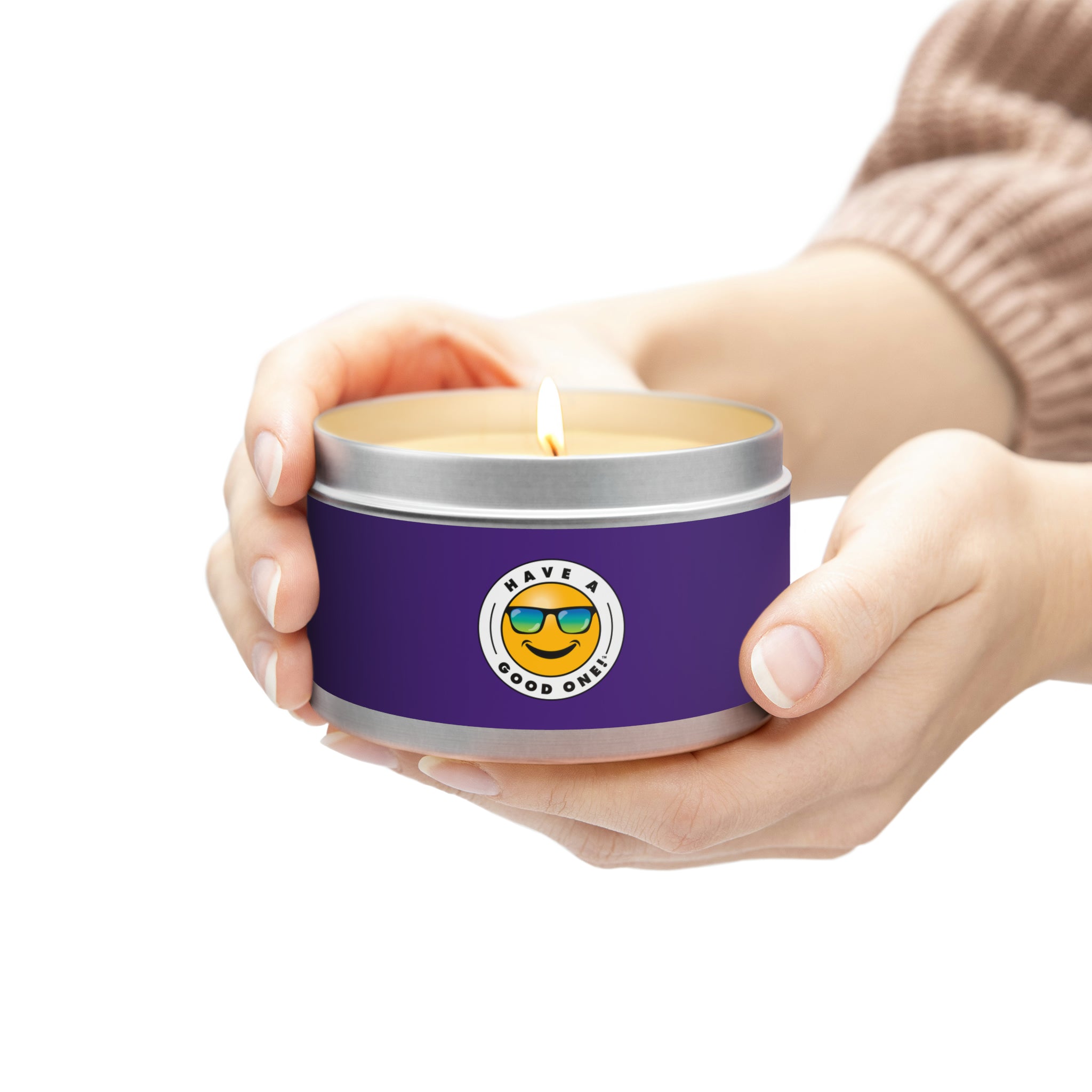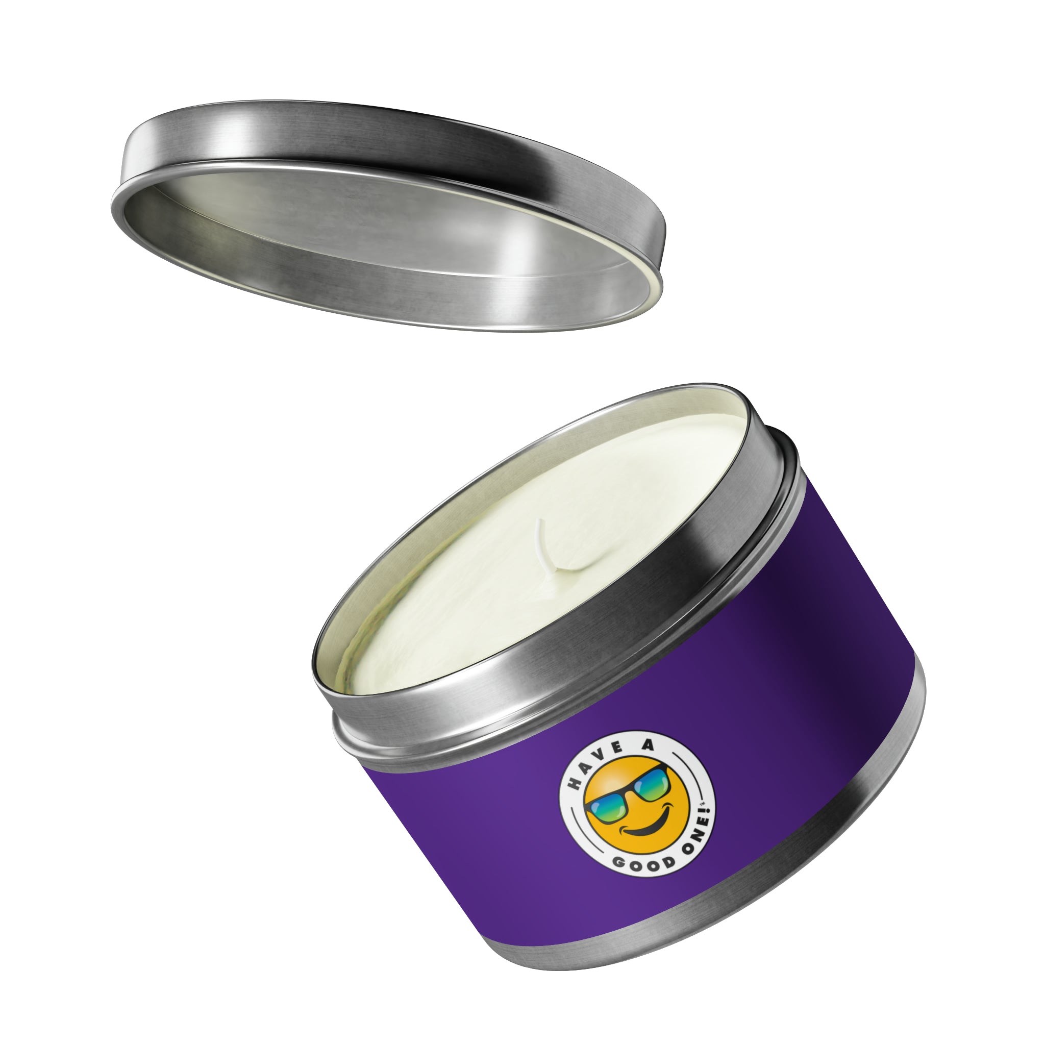 Tin Have A Good One! Candles With Lid - Purple Color With Blue Green Have A Good One Logo