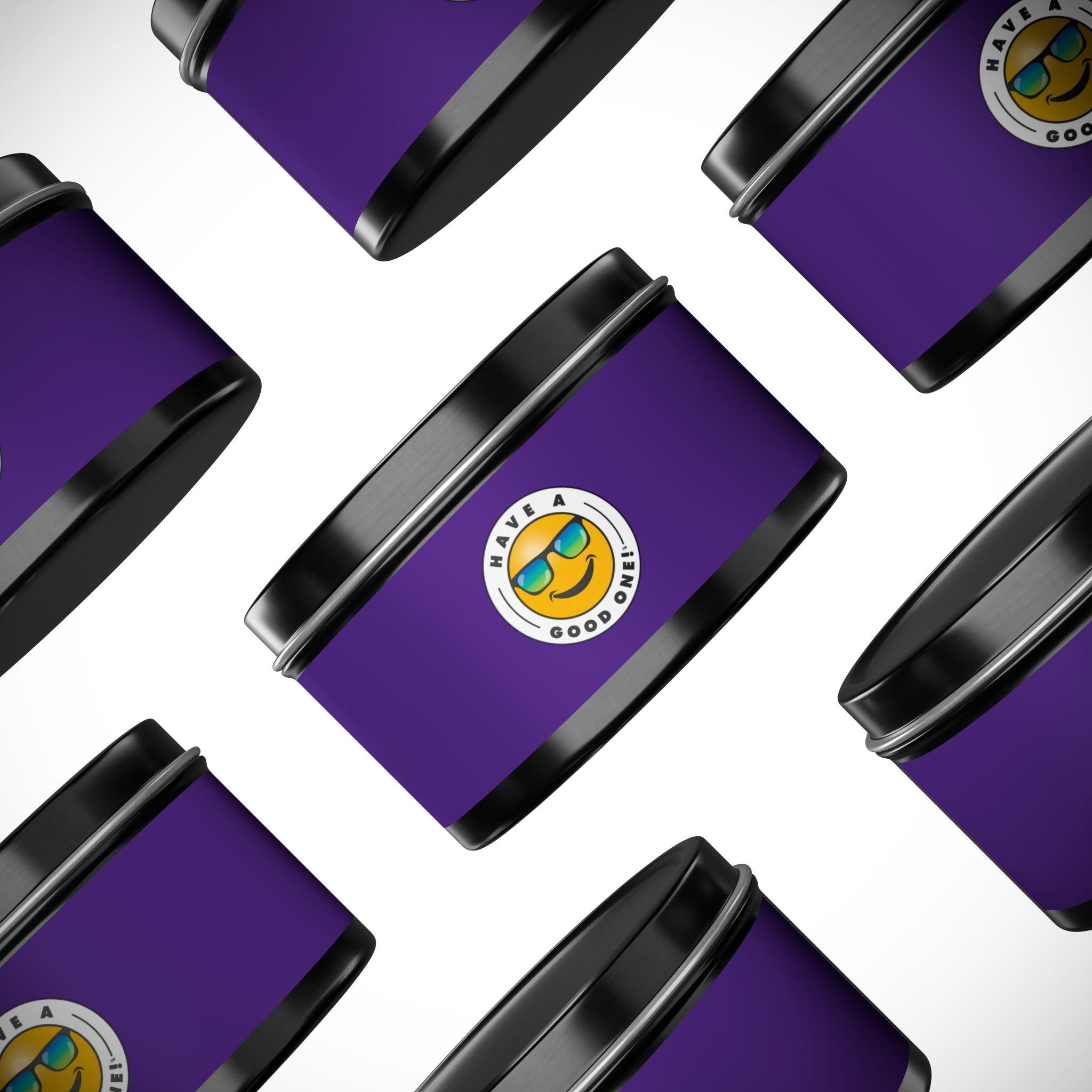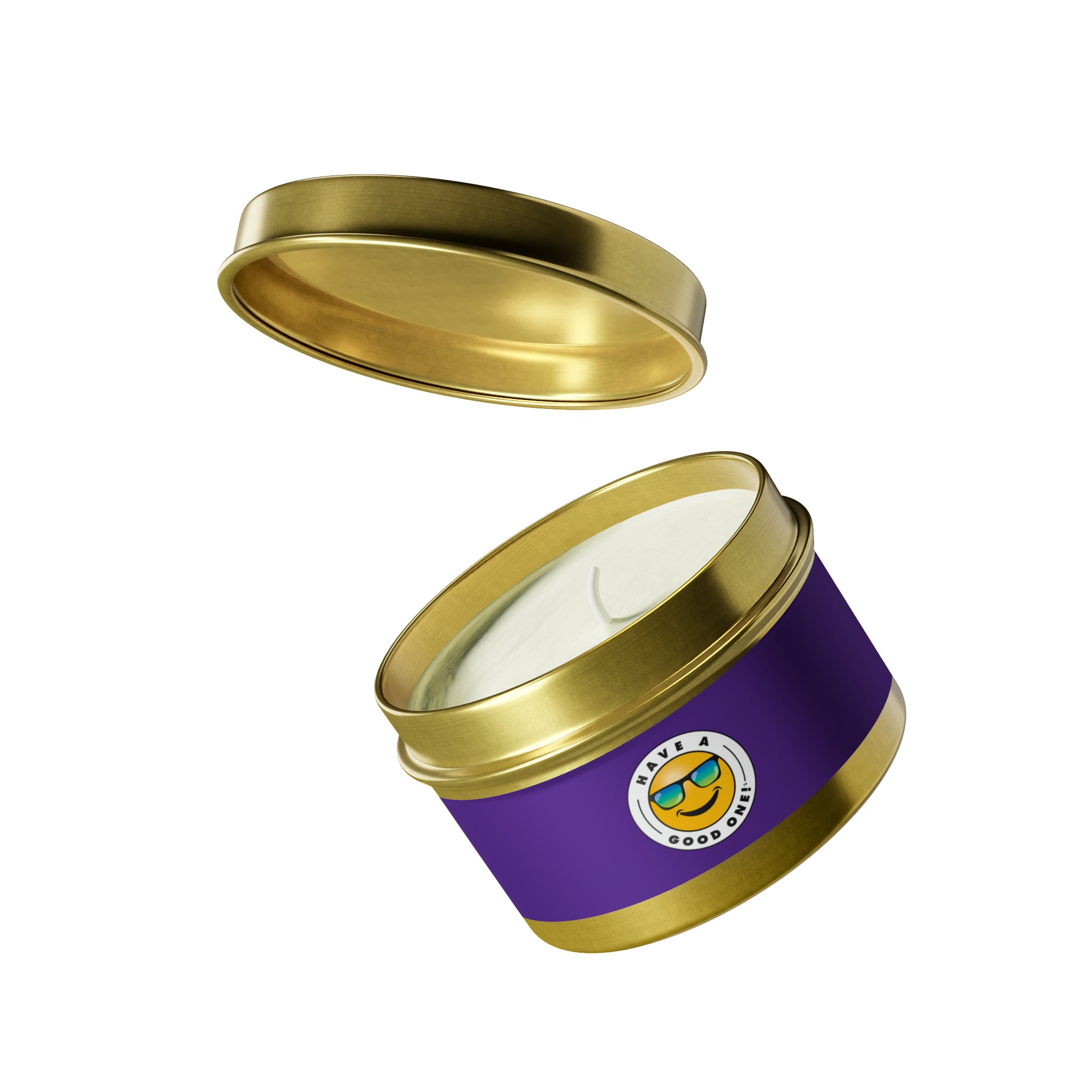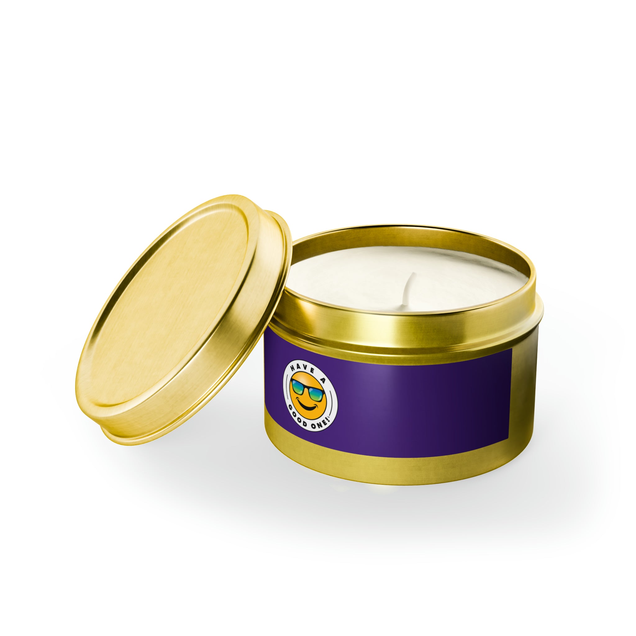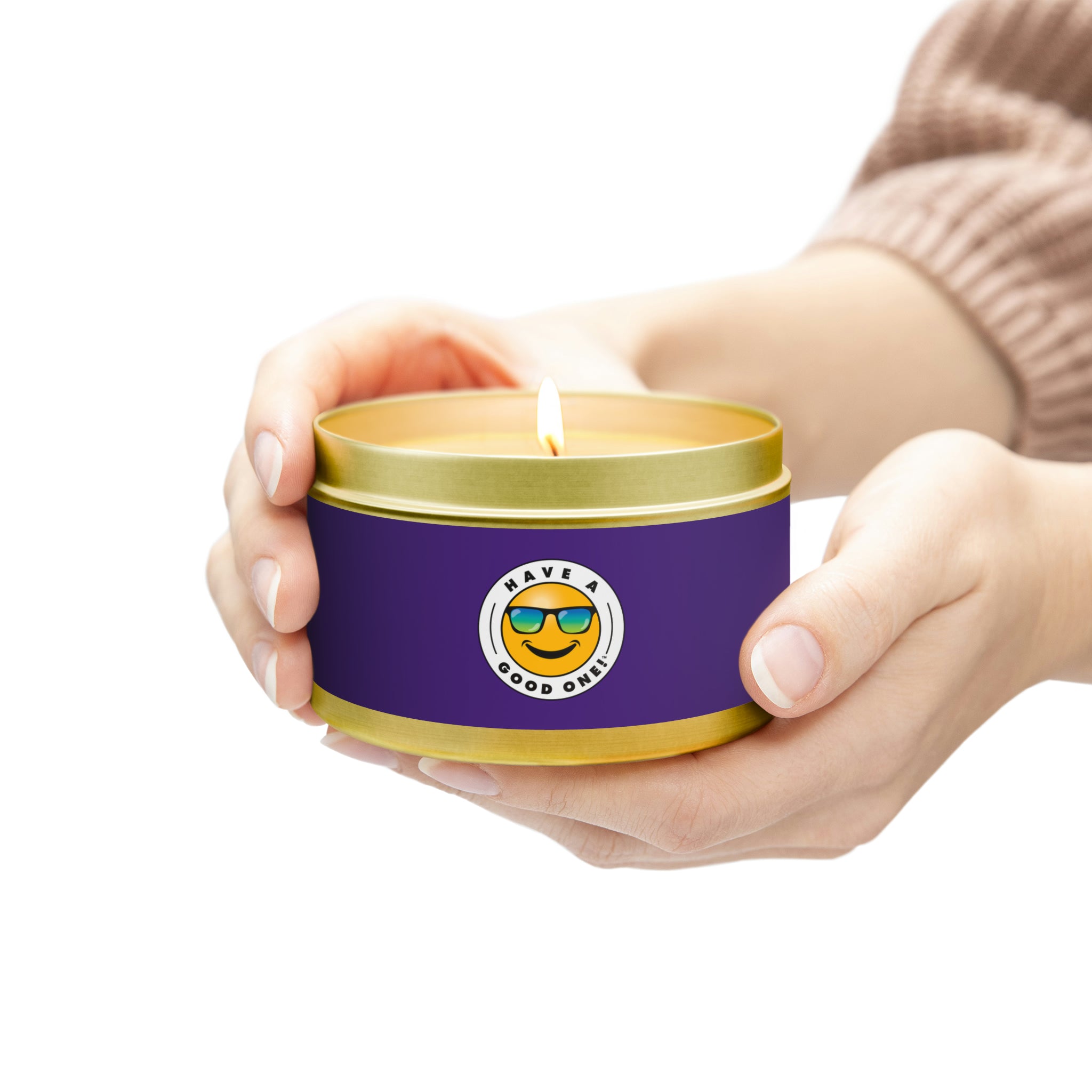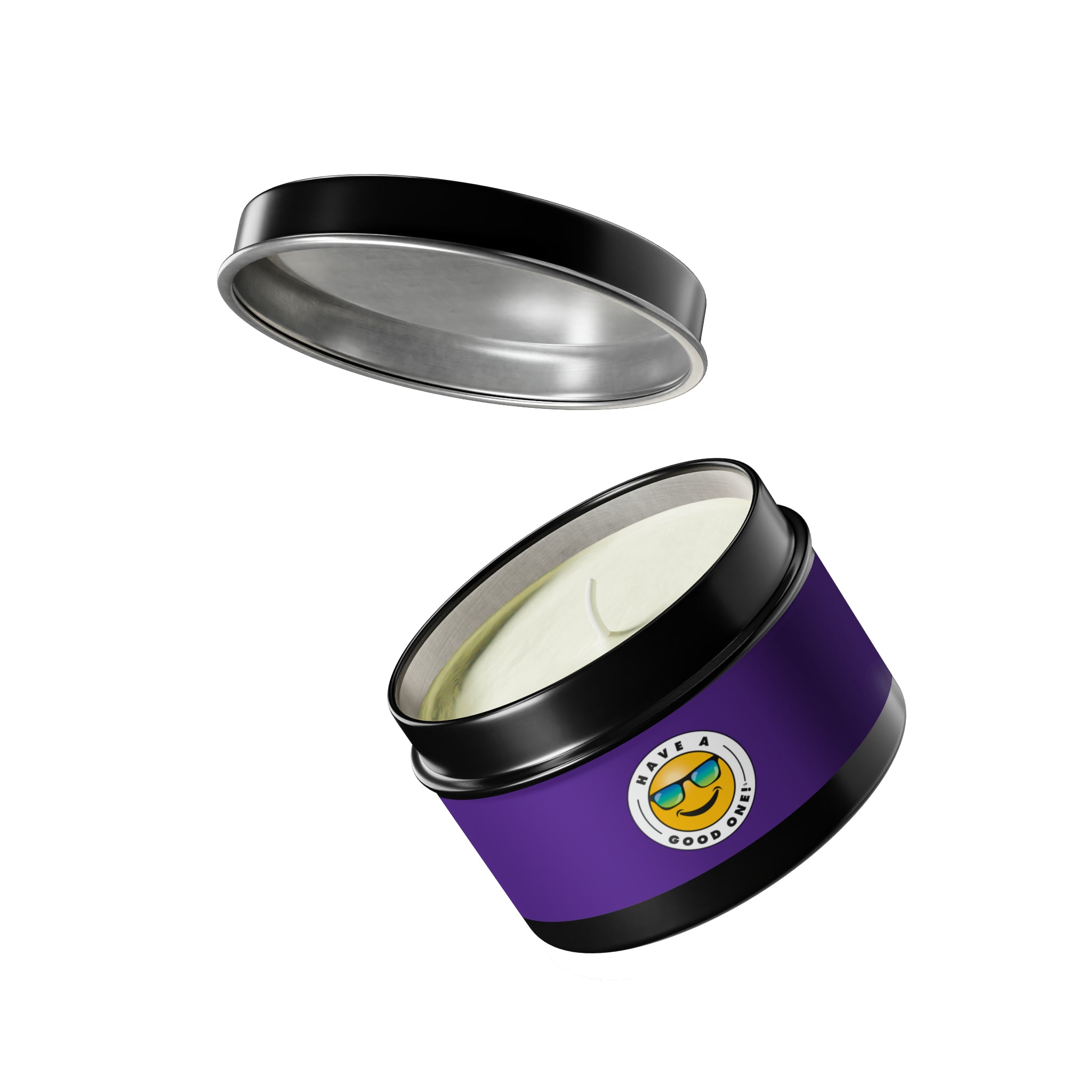 Tin Have A Good One! Candles With Lid - Purple Color With Blue Green Have A Good One Logo
