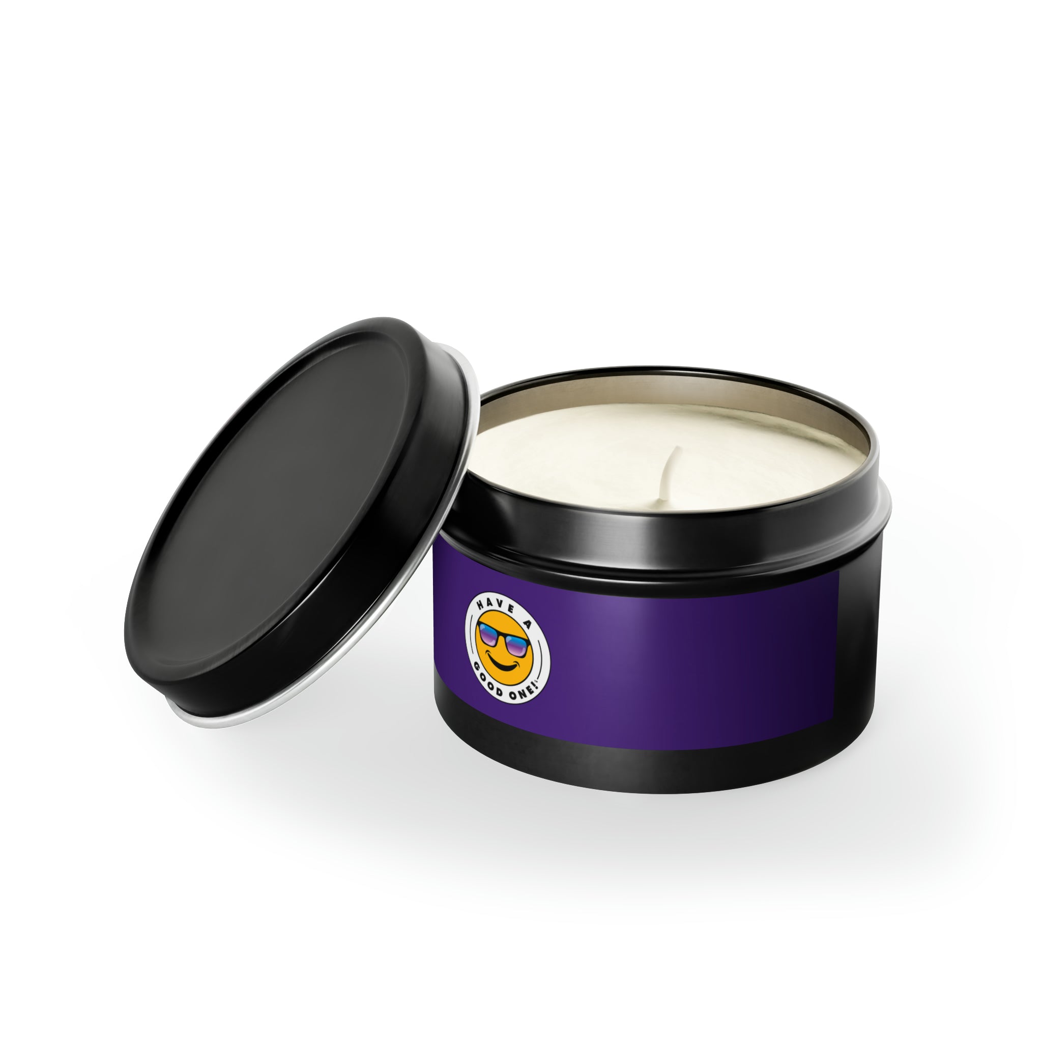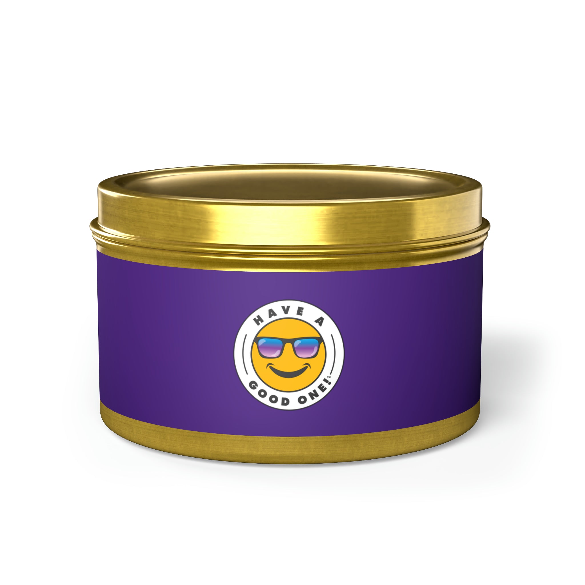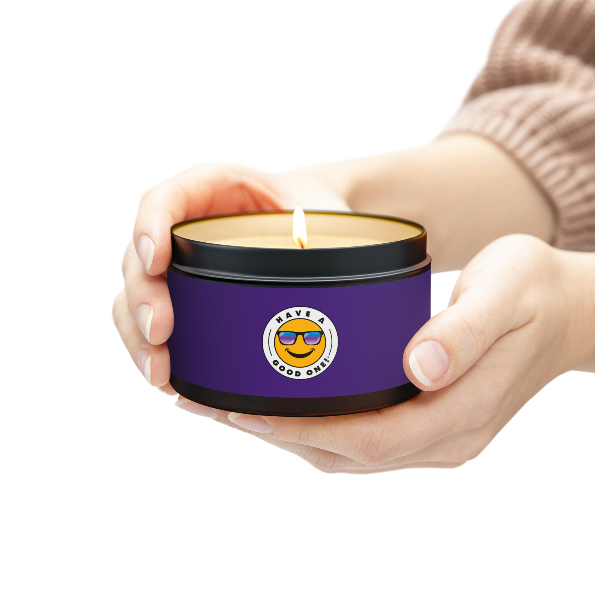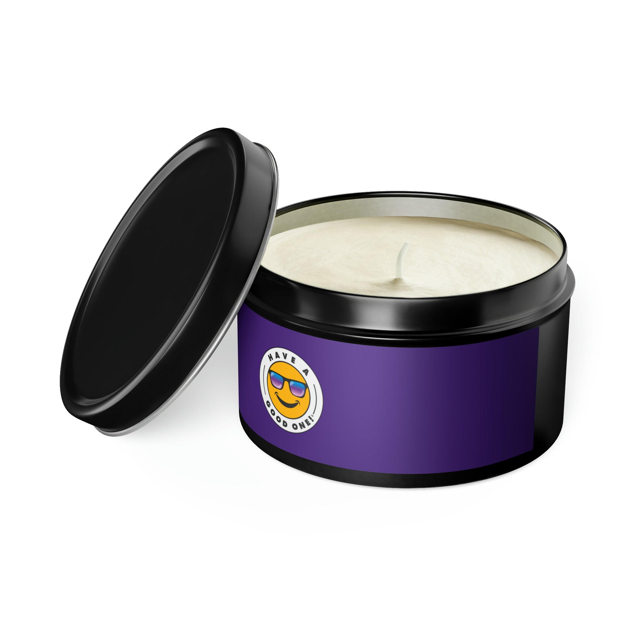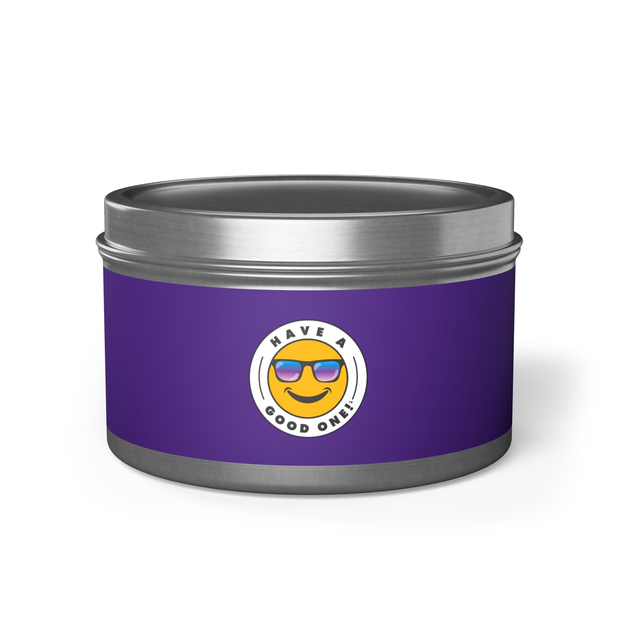 Tin Have A Good One! Candles With Lid - Purple Color With Blue Purple Have A Good One Logo