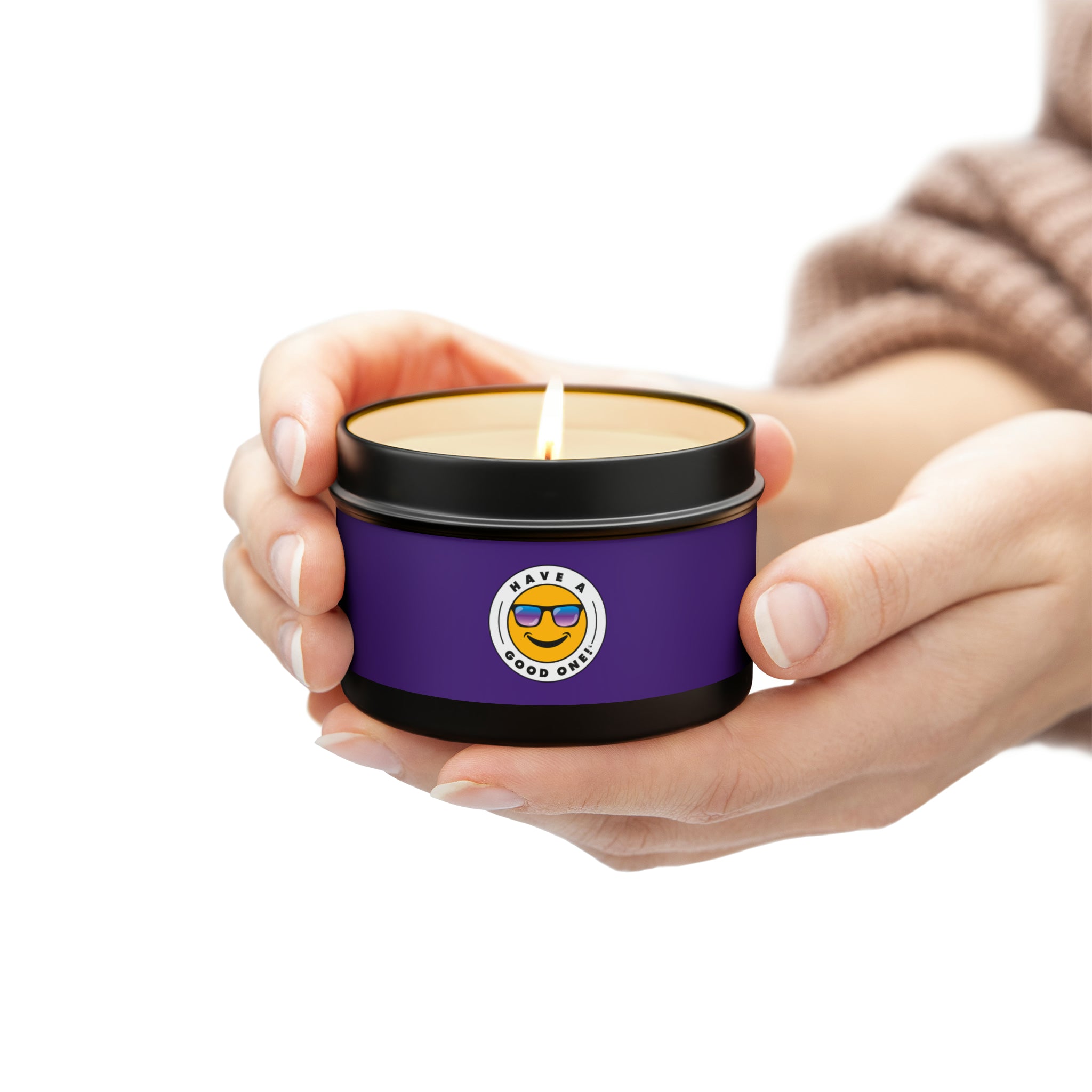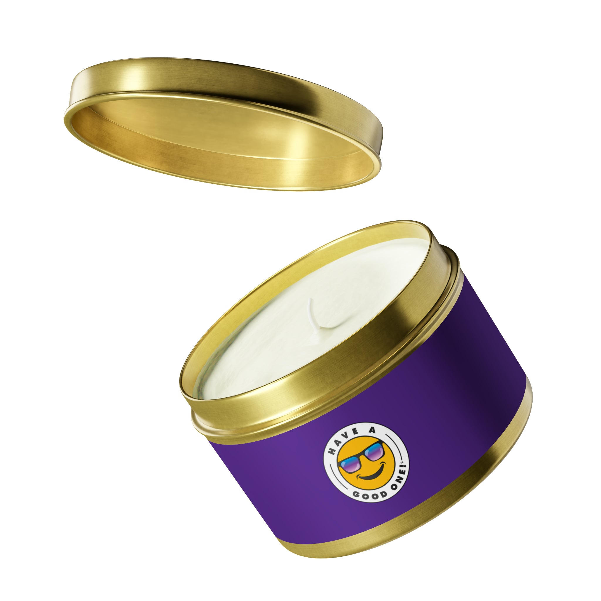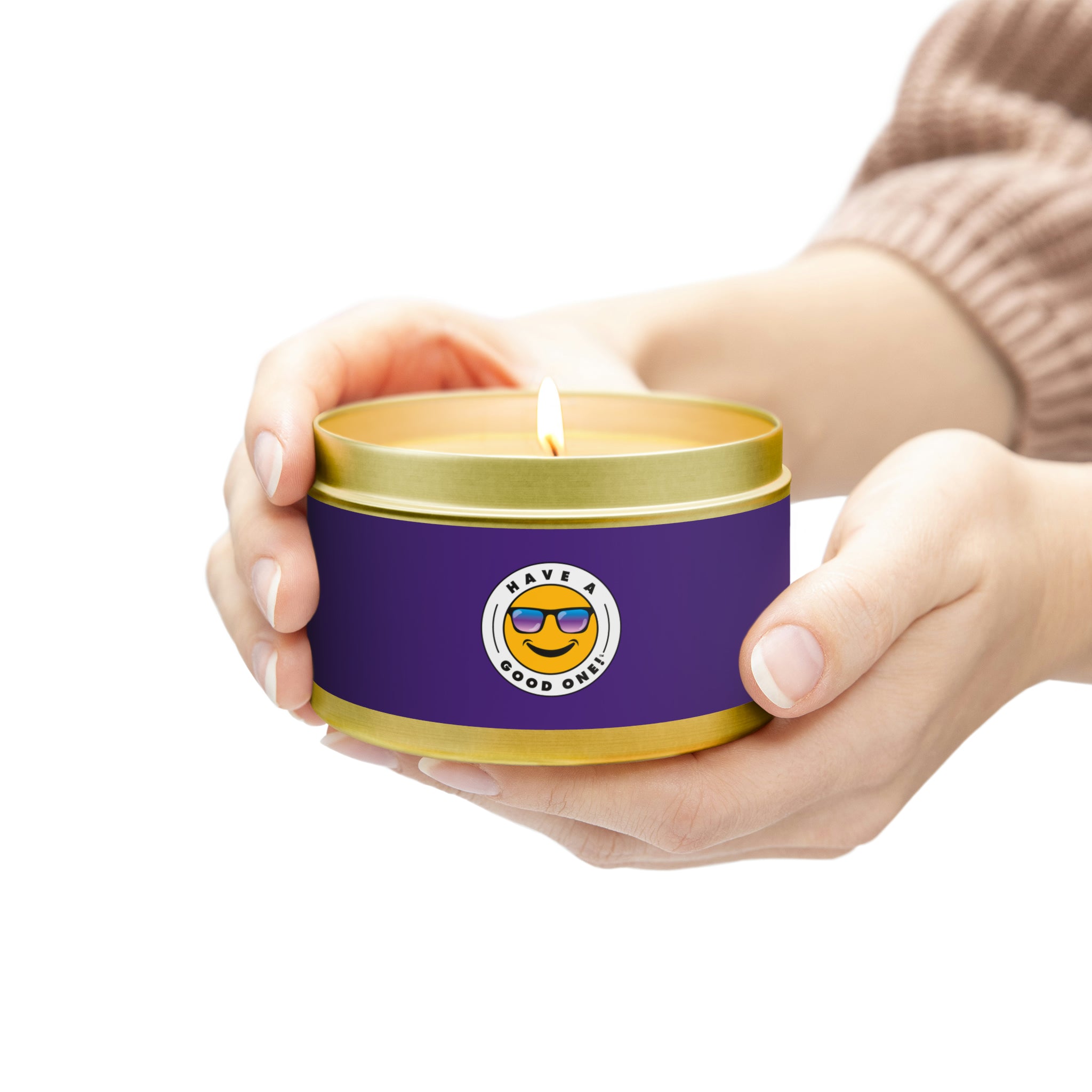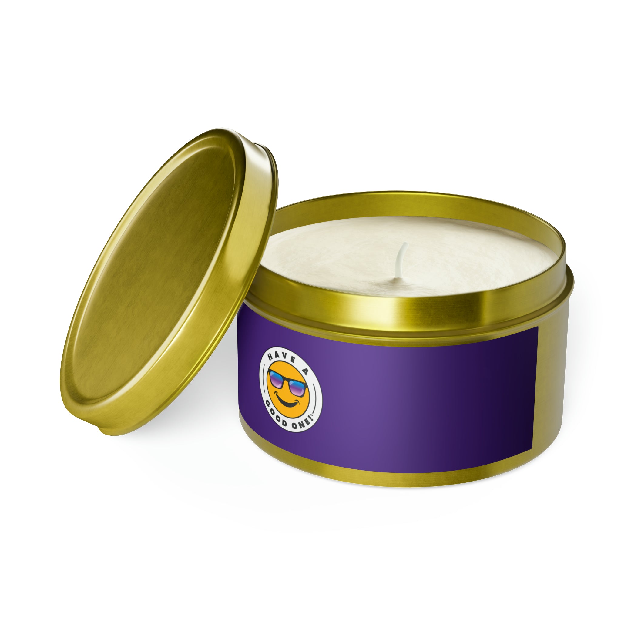 Tin Have A Good One! Candles With Lid - Purple Color With Blue Purple Have A Good One Logo