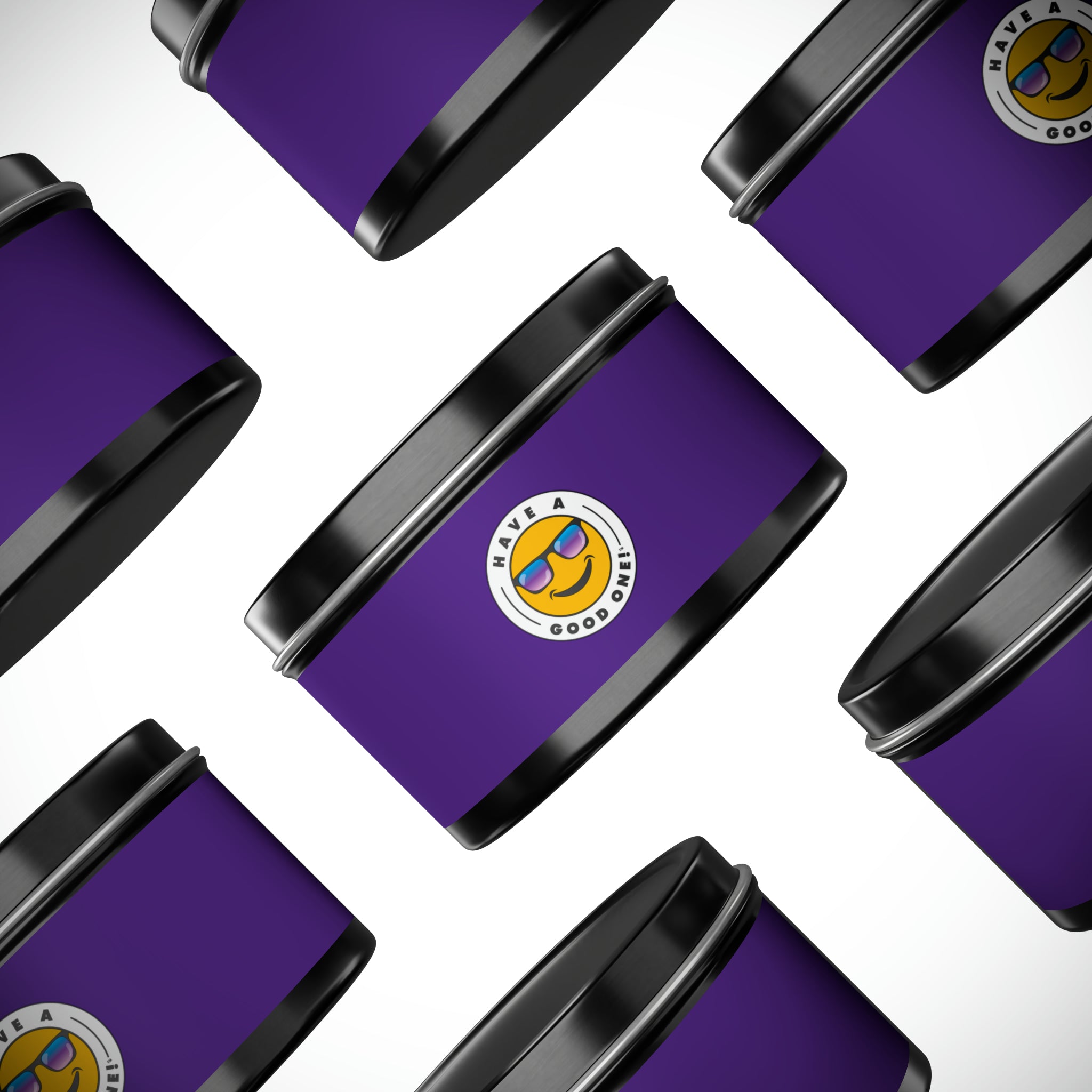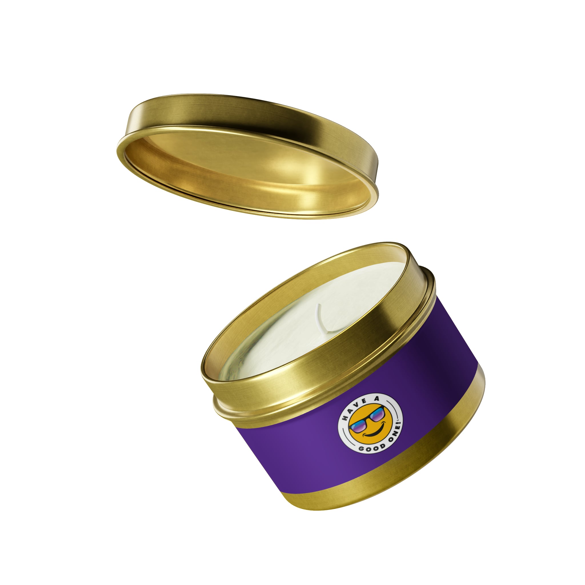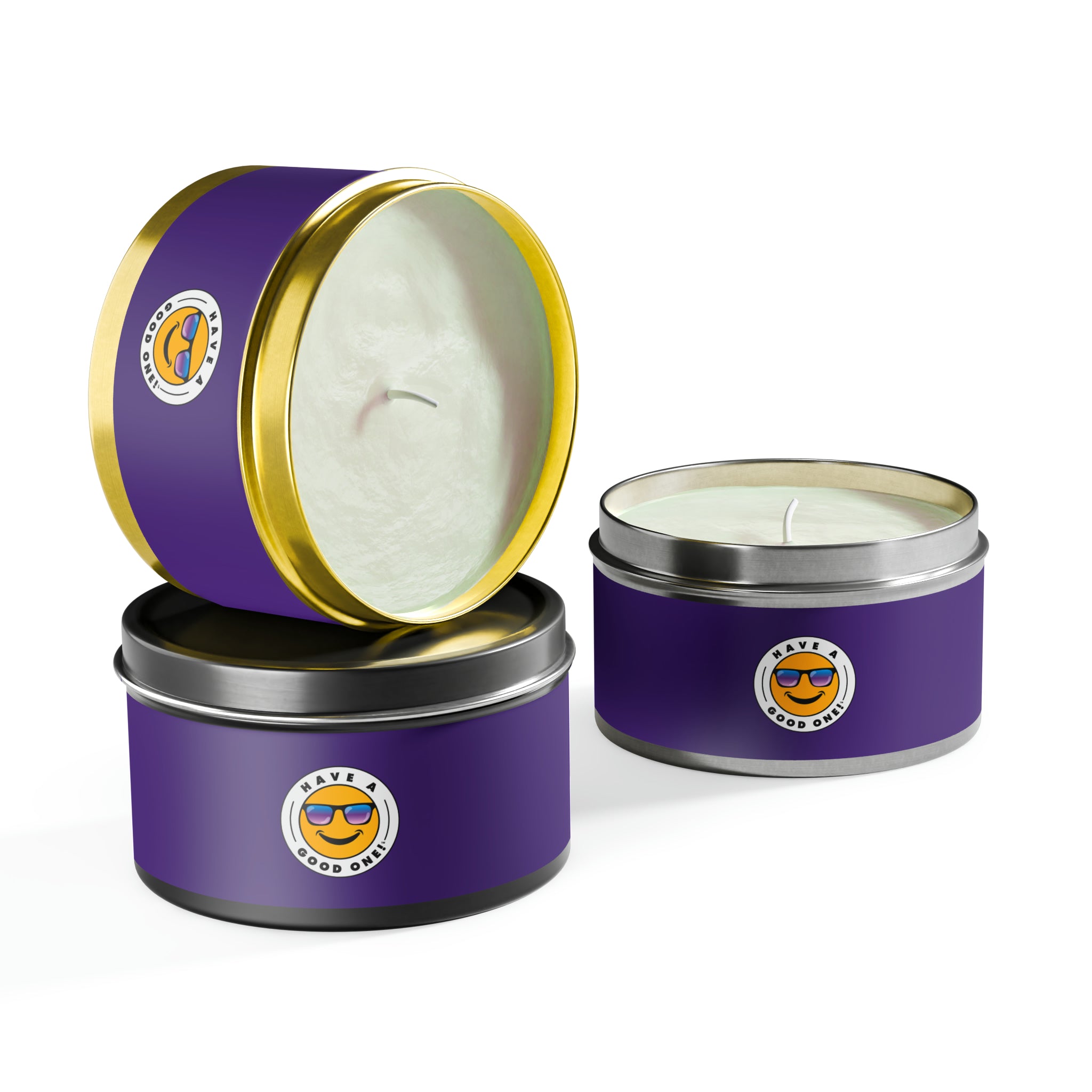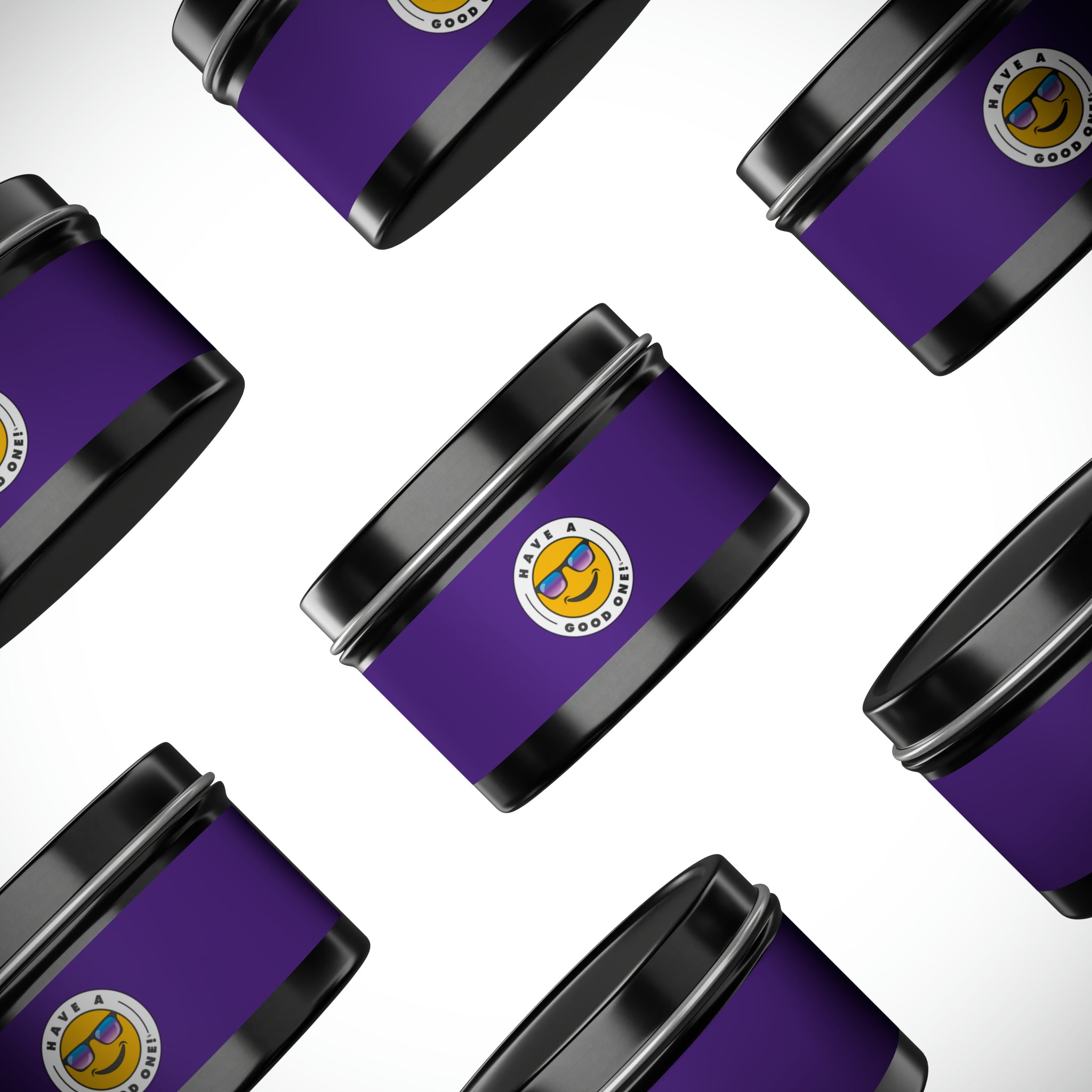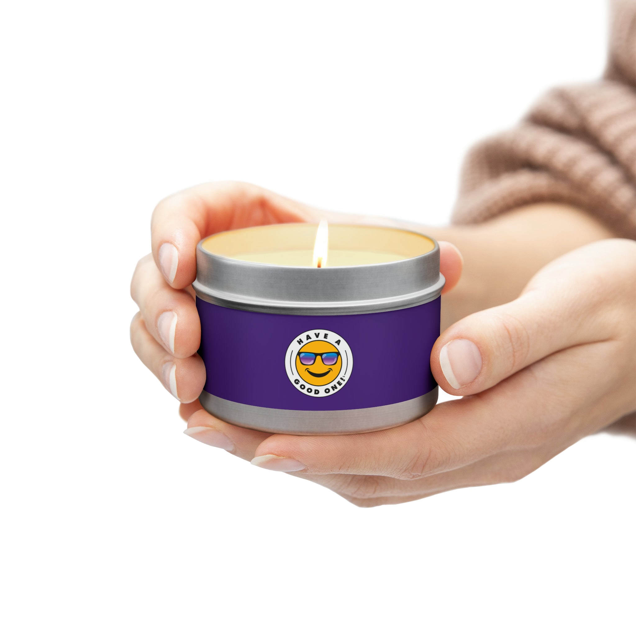 Tin Have A Good One! Candles With Lid - Purple Color With Blue Purple Have A Good One Logo