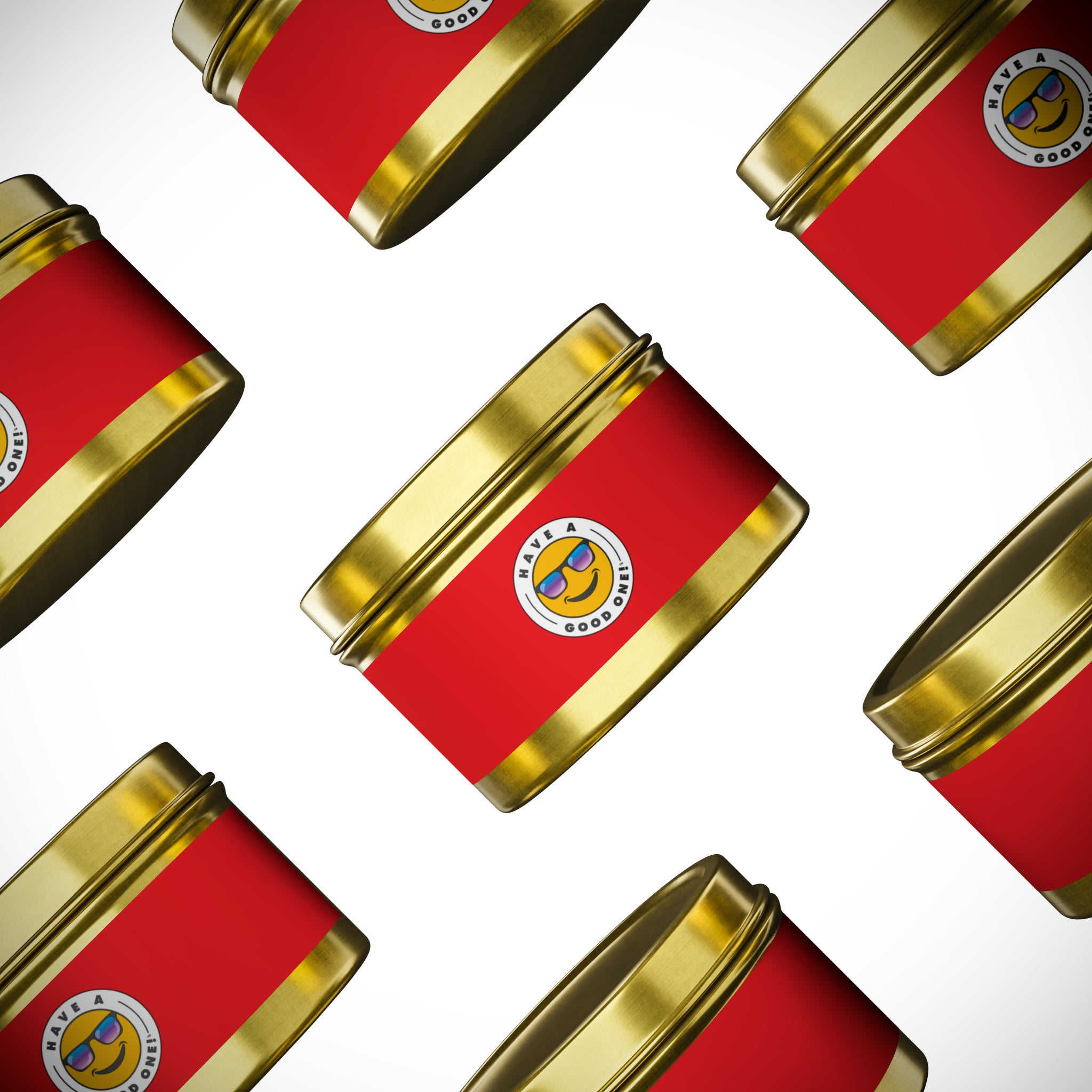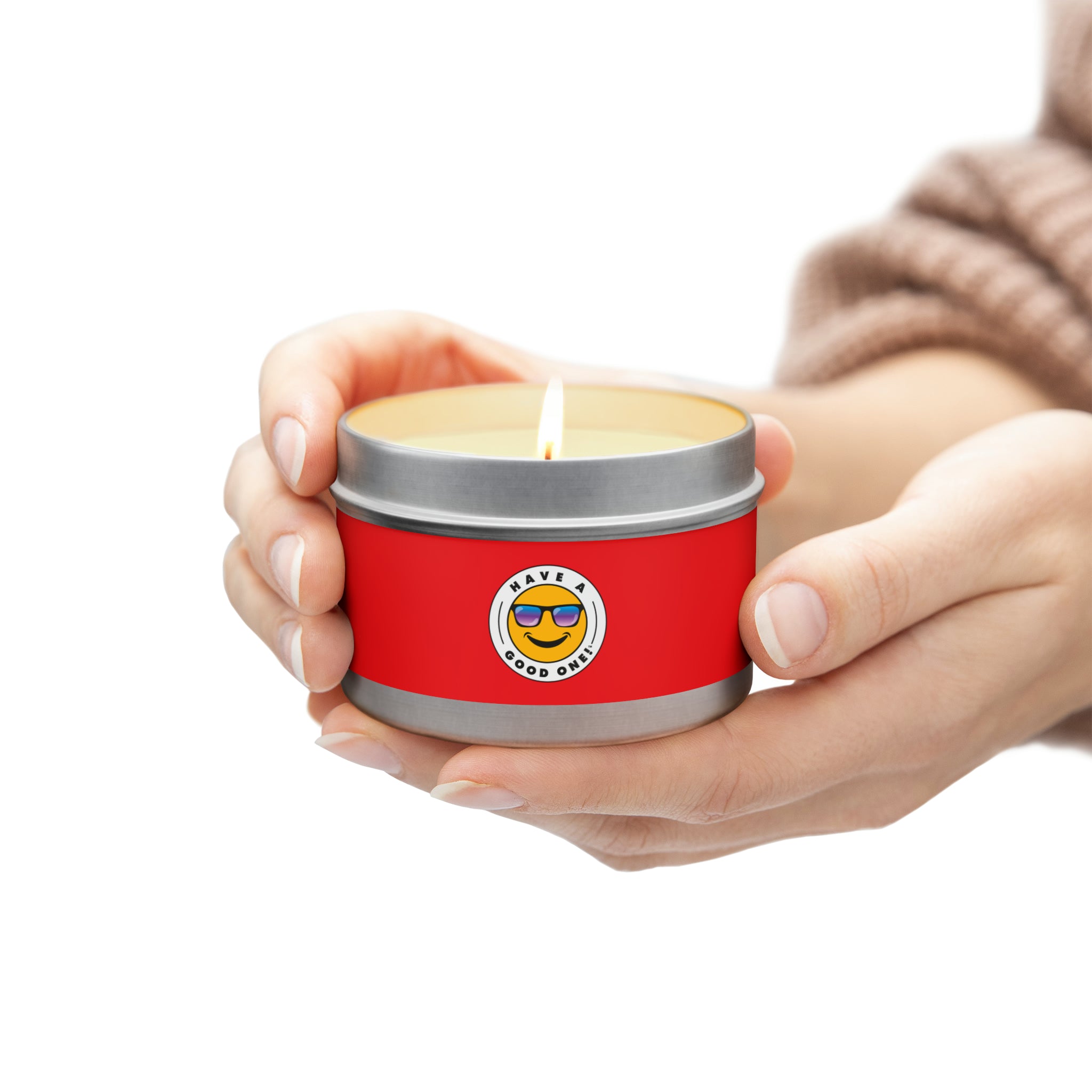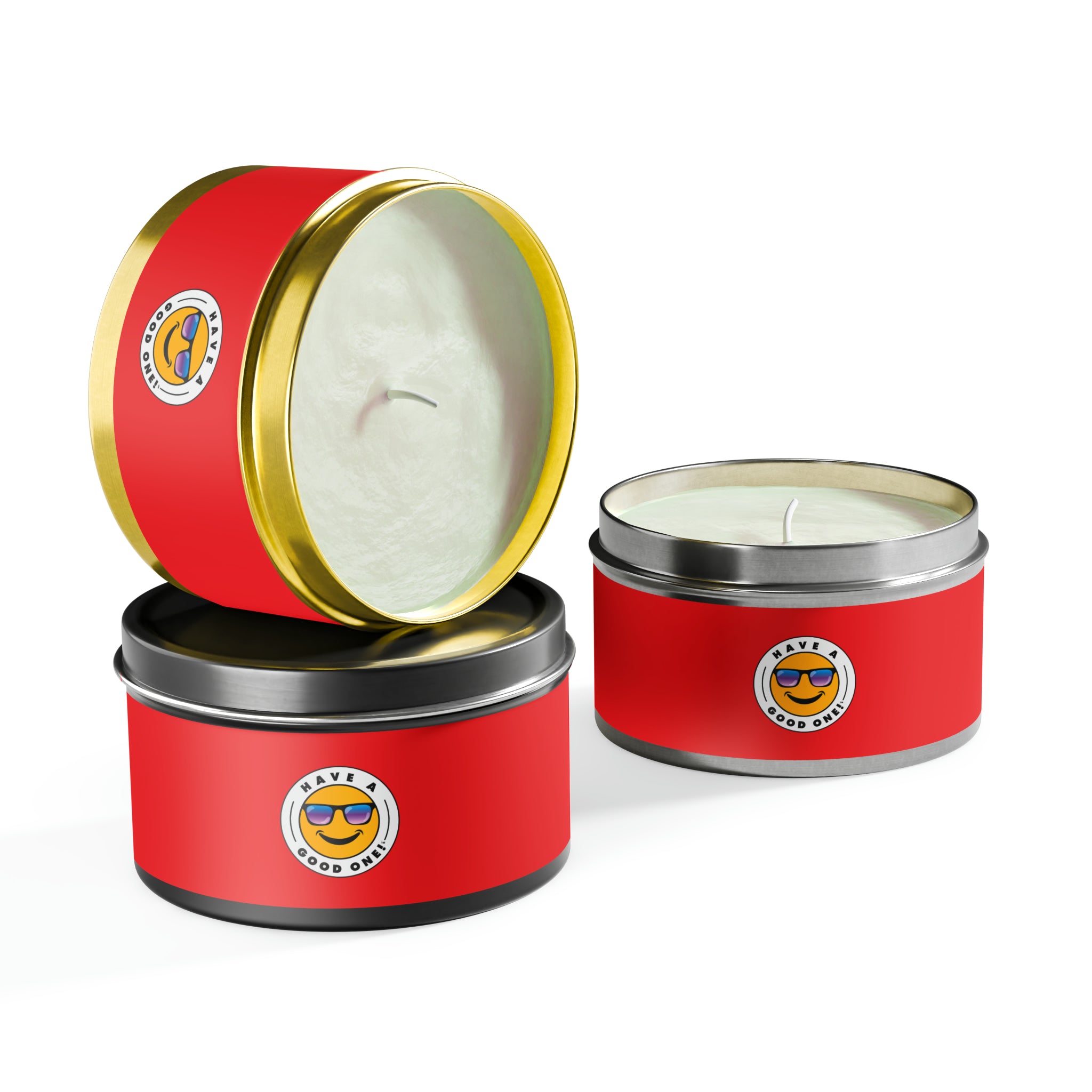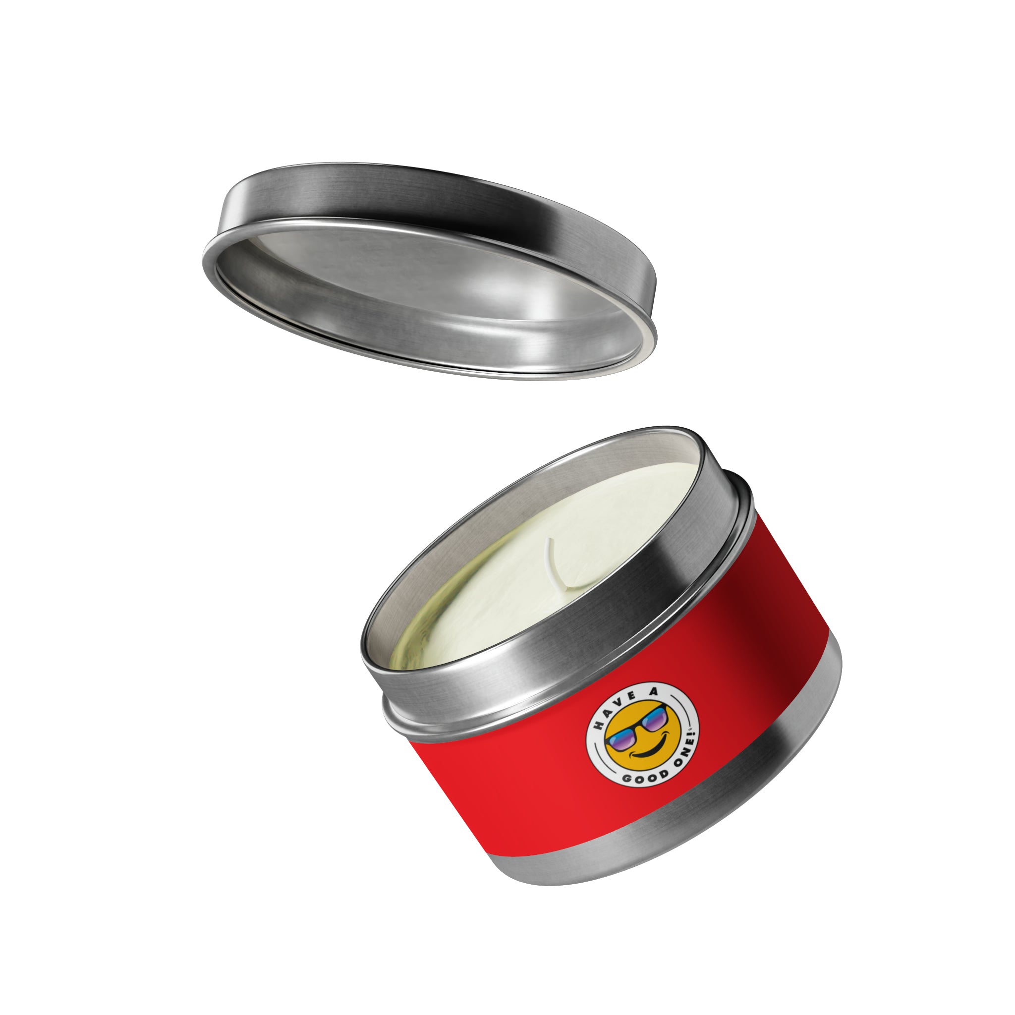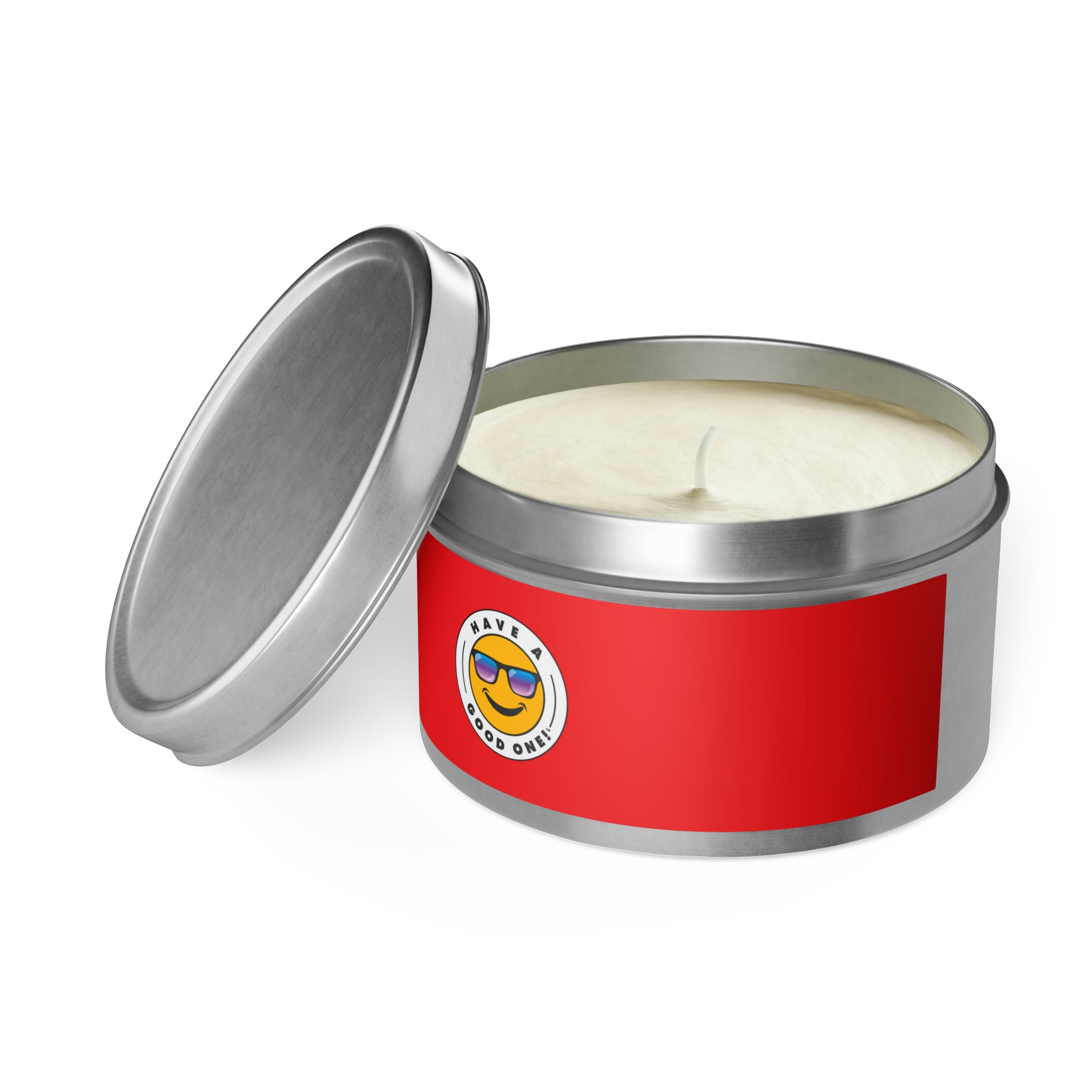 Tin Have A Good One! Candles With Lid - Red Color With Blue Purple Have A Good One Logo