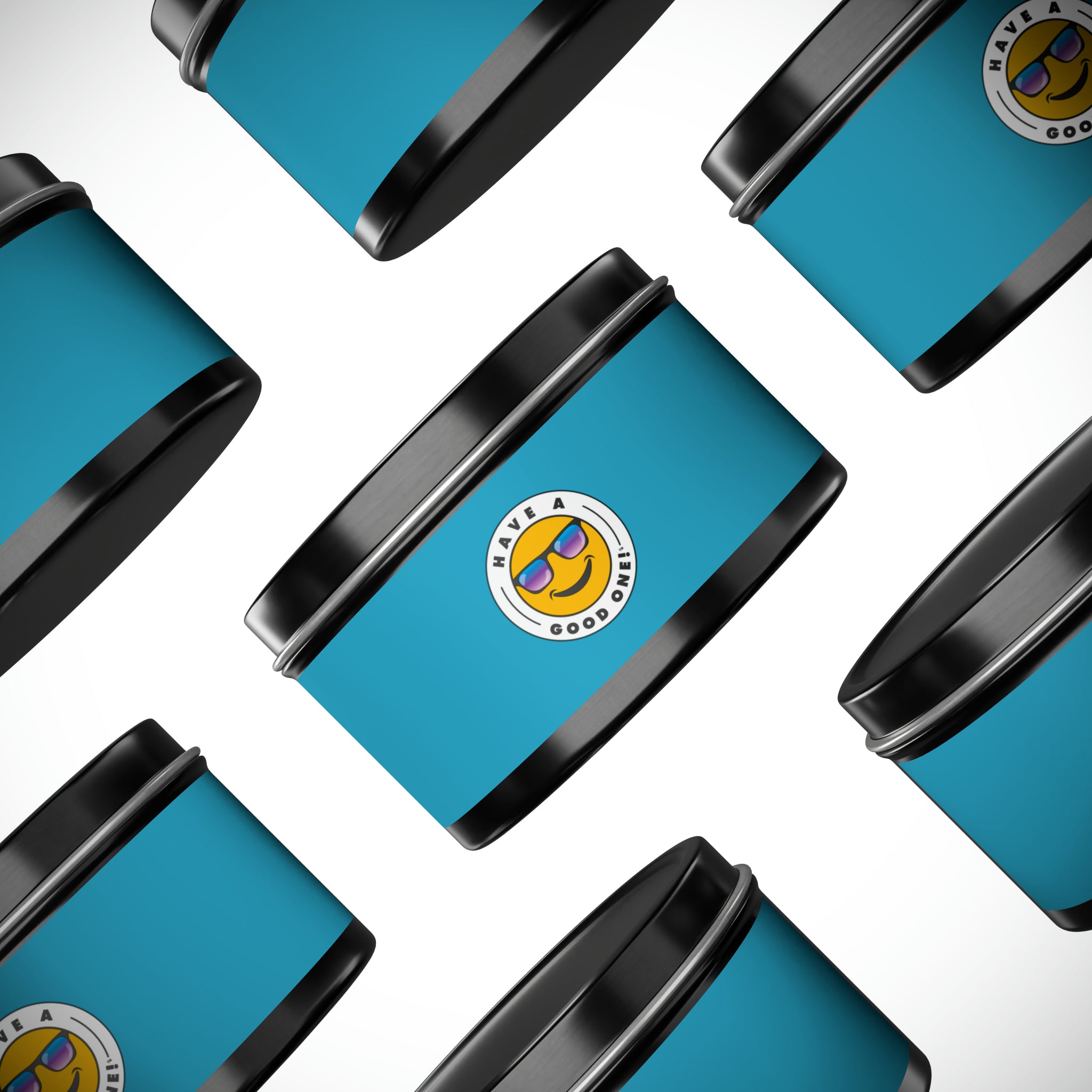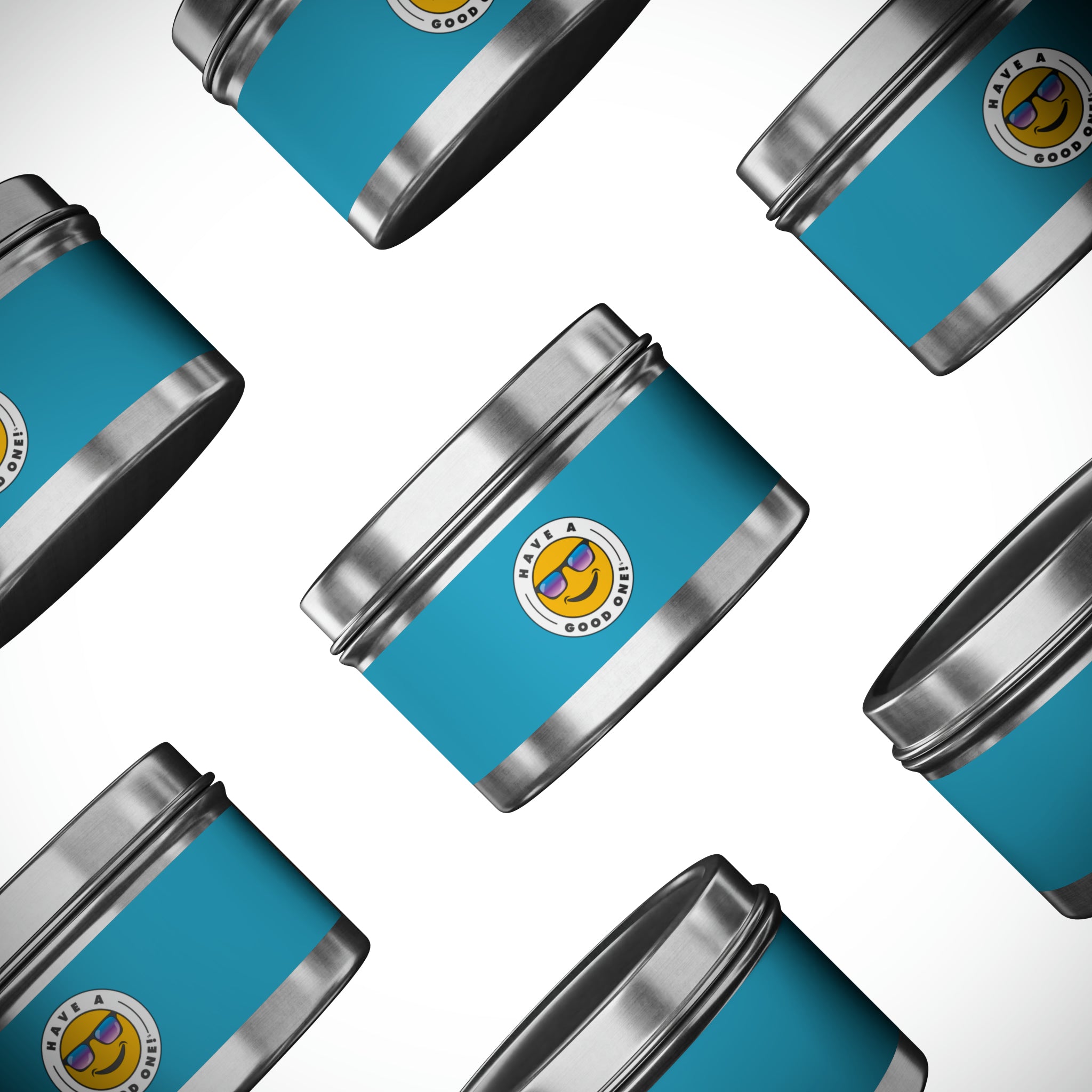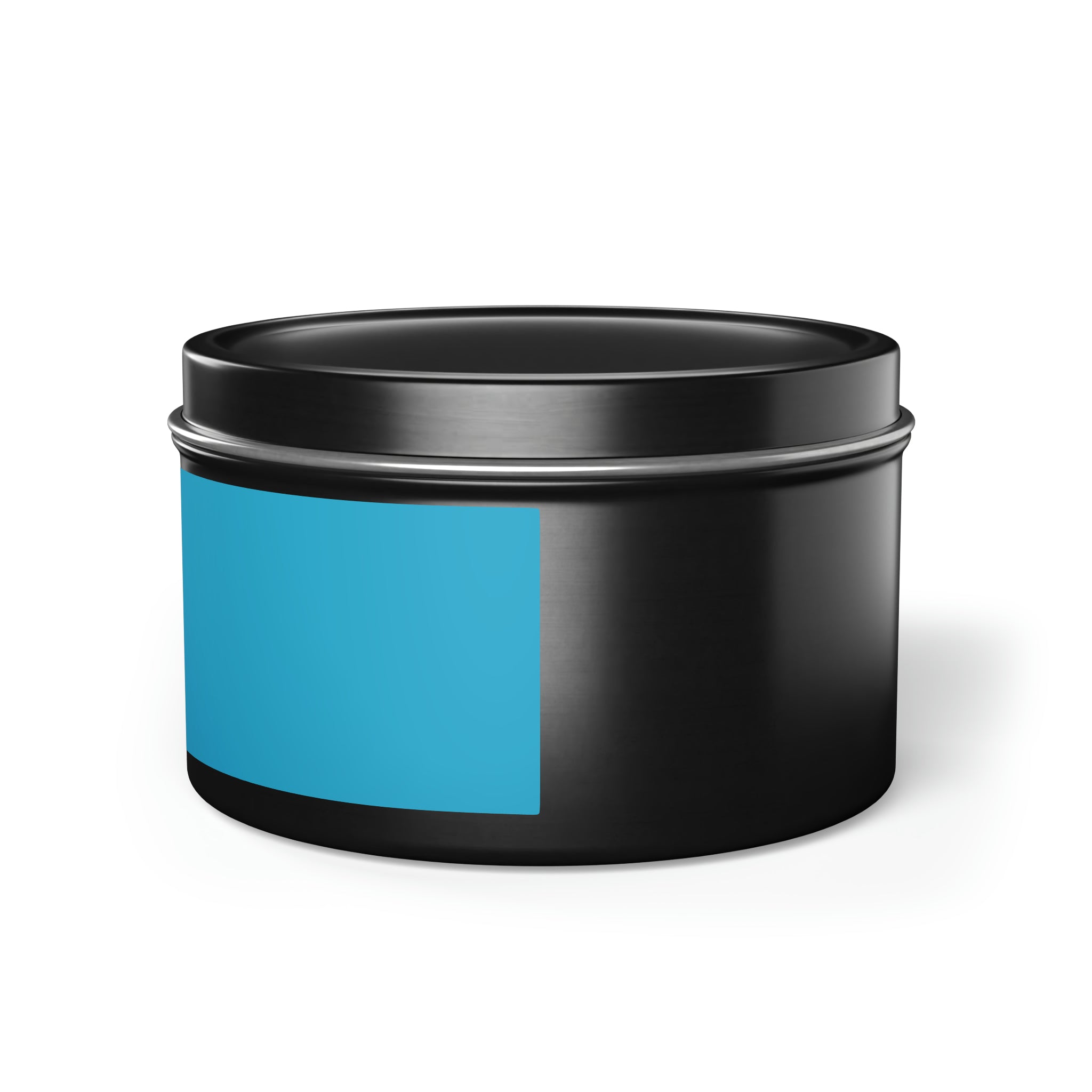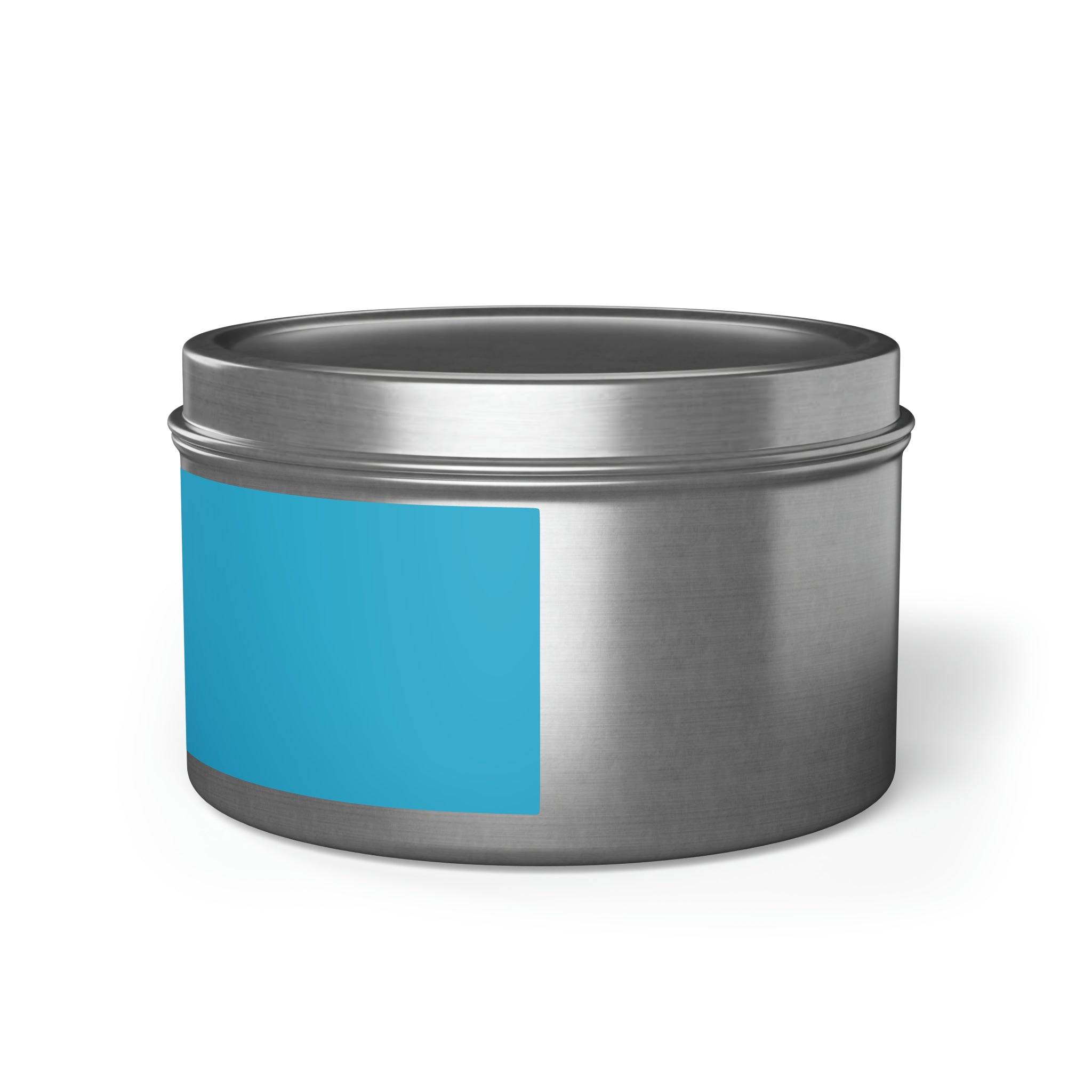 Tin Have A Good One! Candles With Lid - Turquoise Color With Blue Purple Have A Good One Logo
