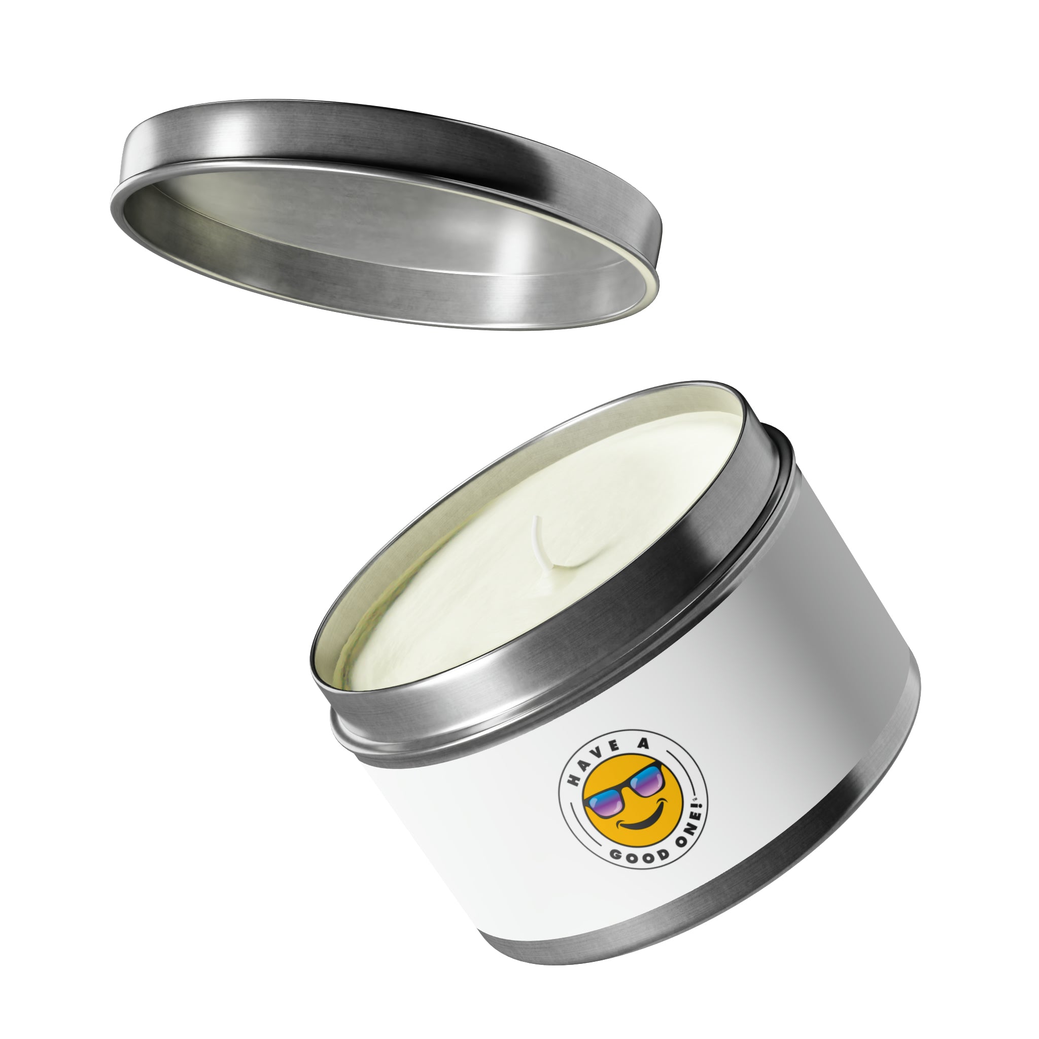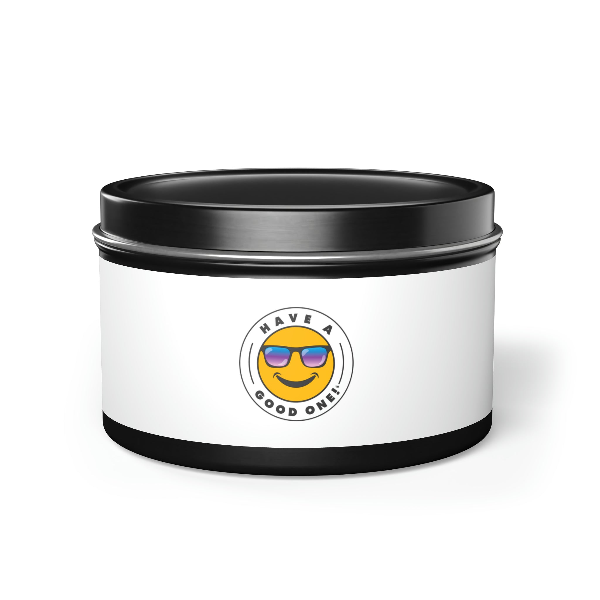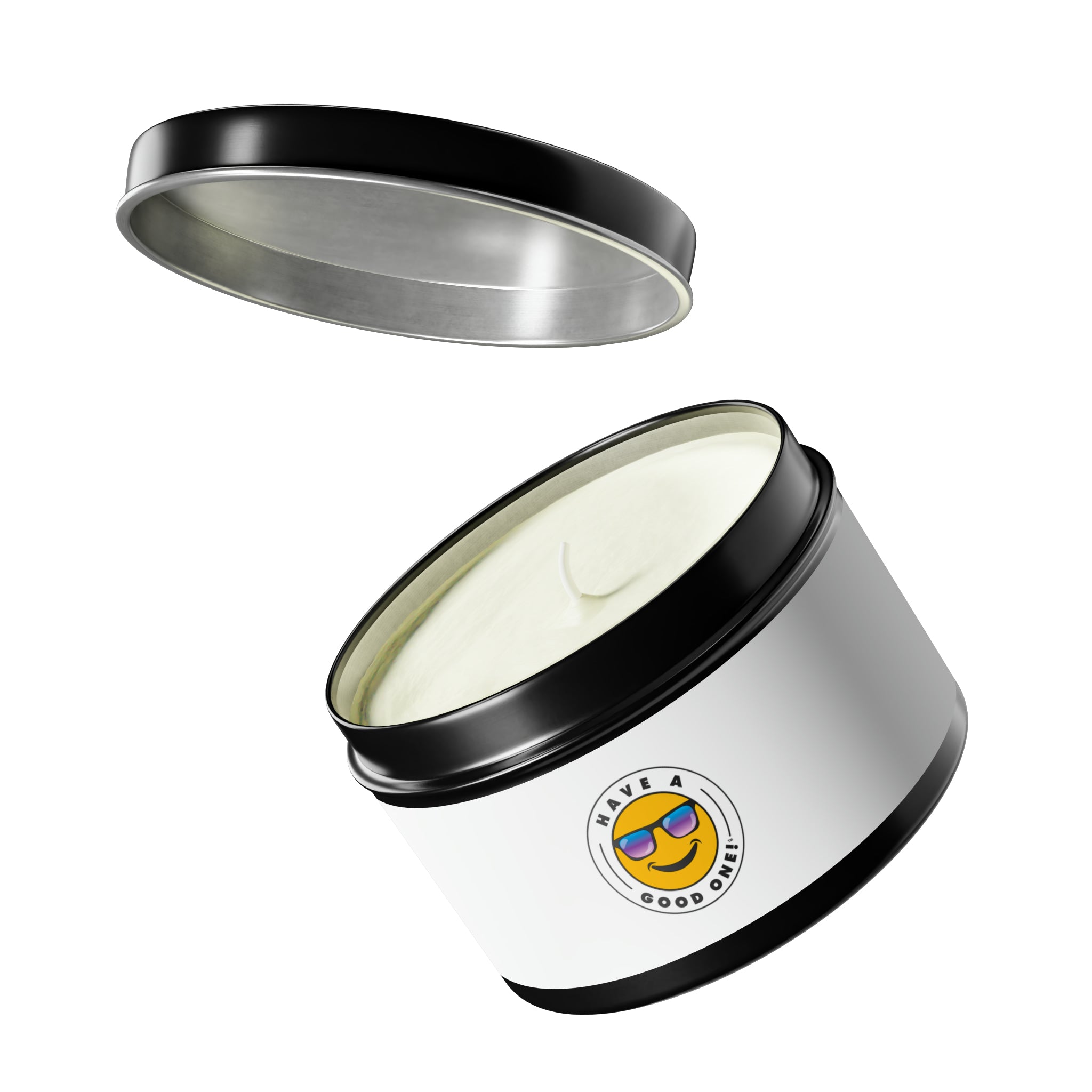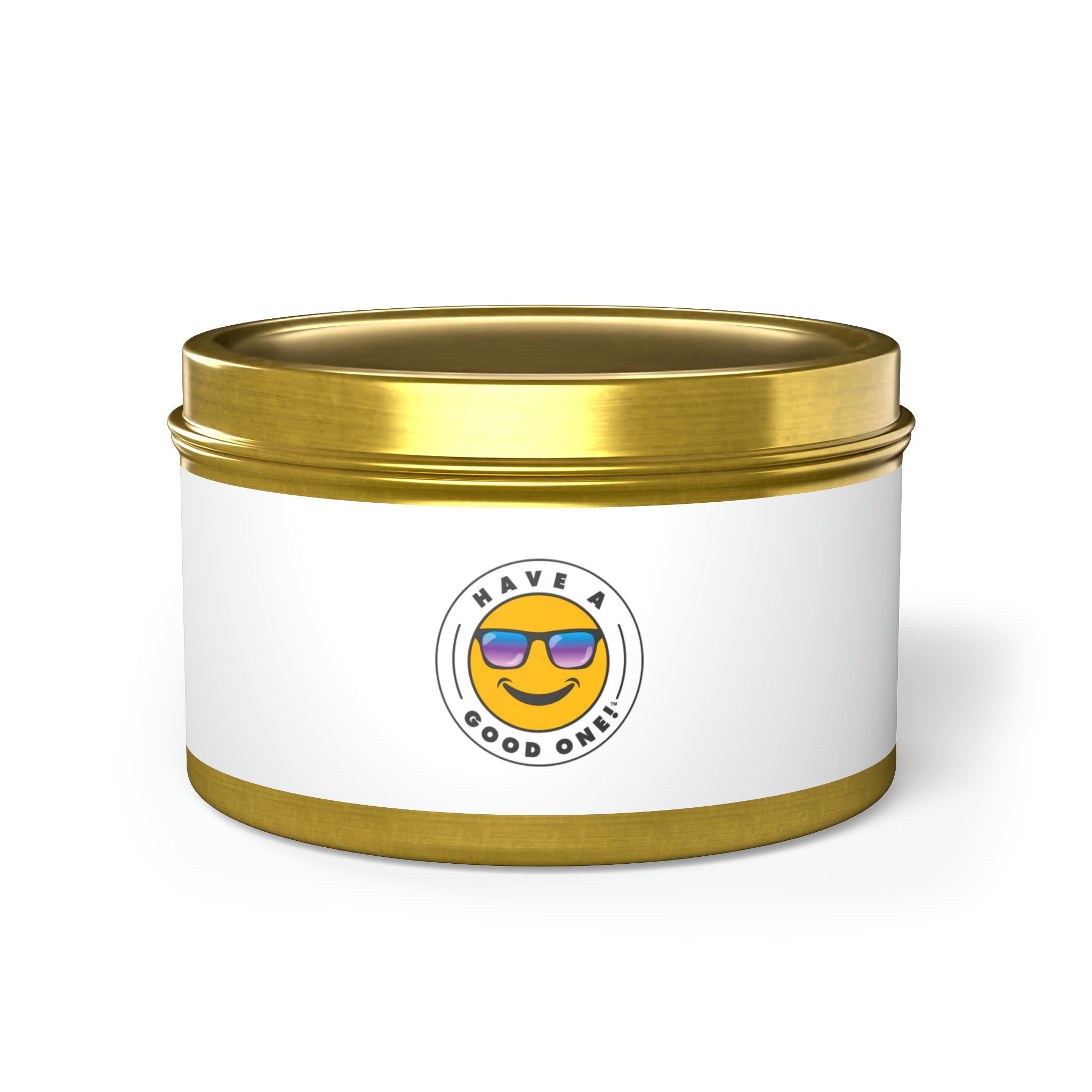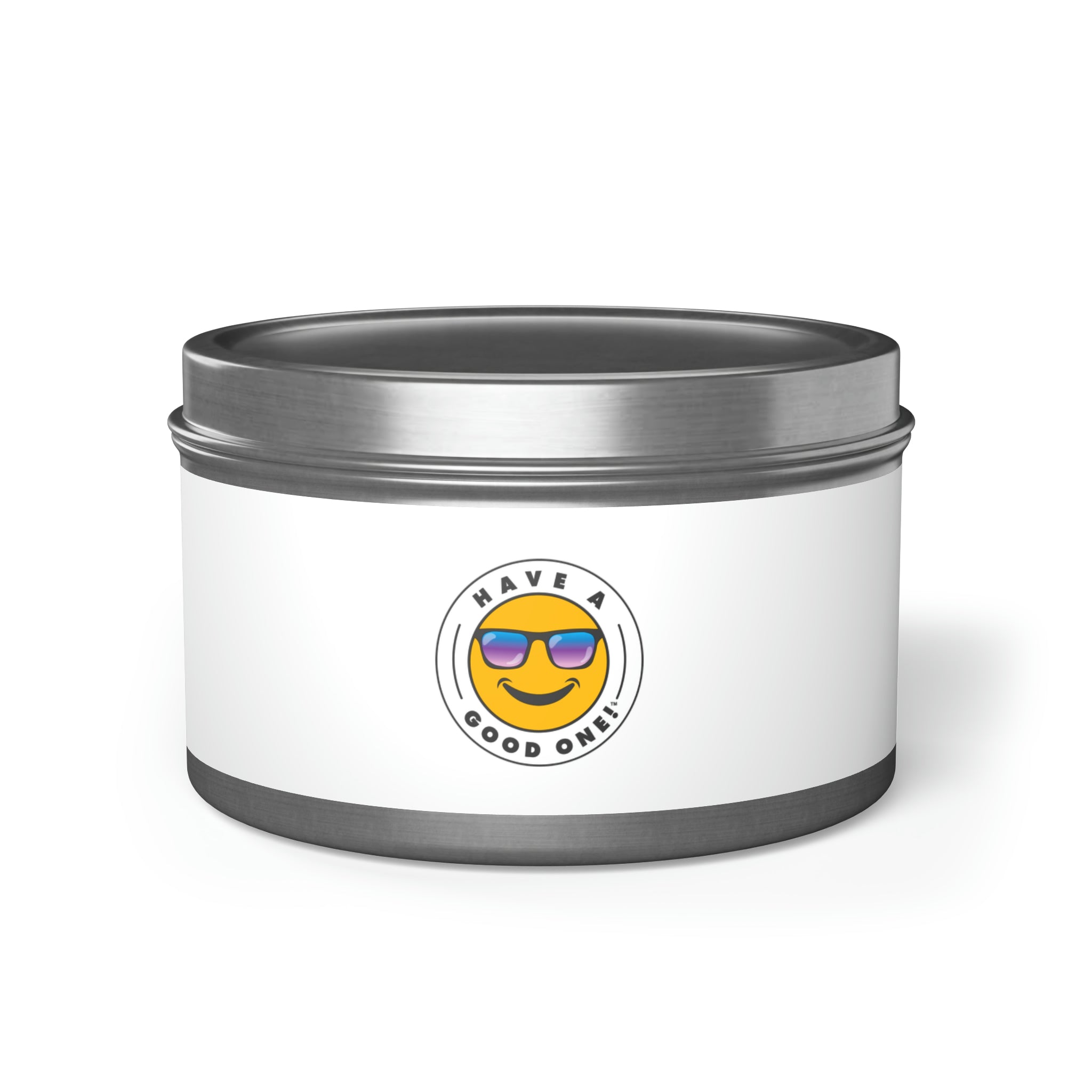 Tin Have A Good One! Candles With Lid - White Color With Blue Purple Have A Good One Logo