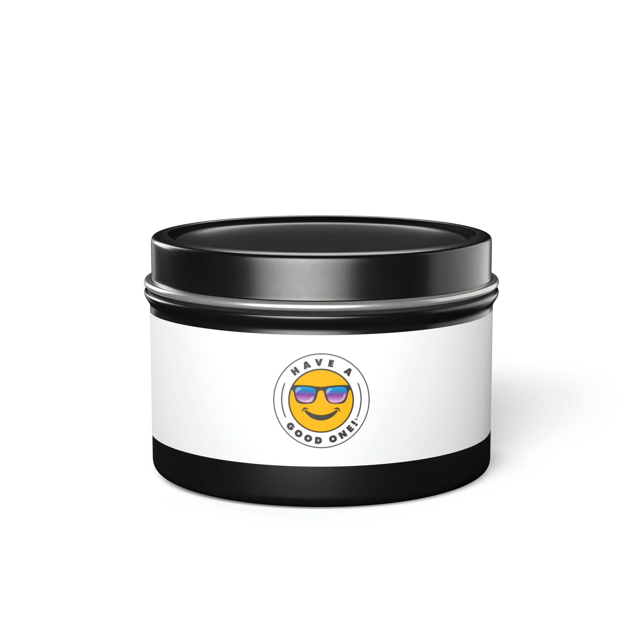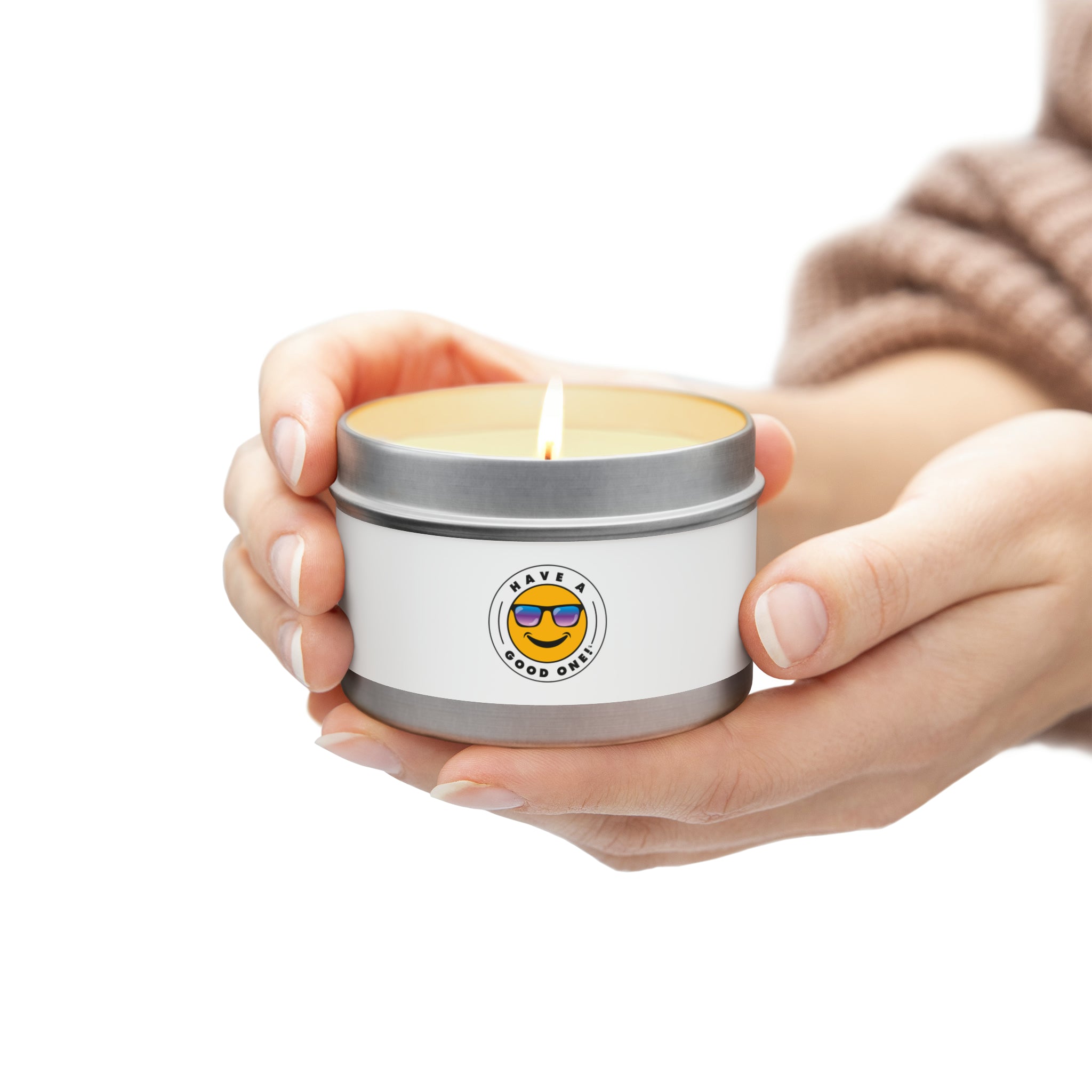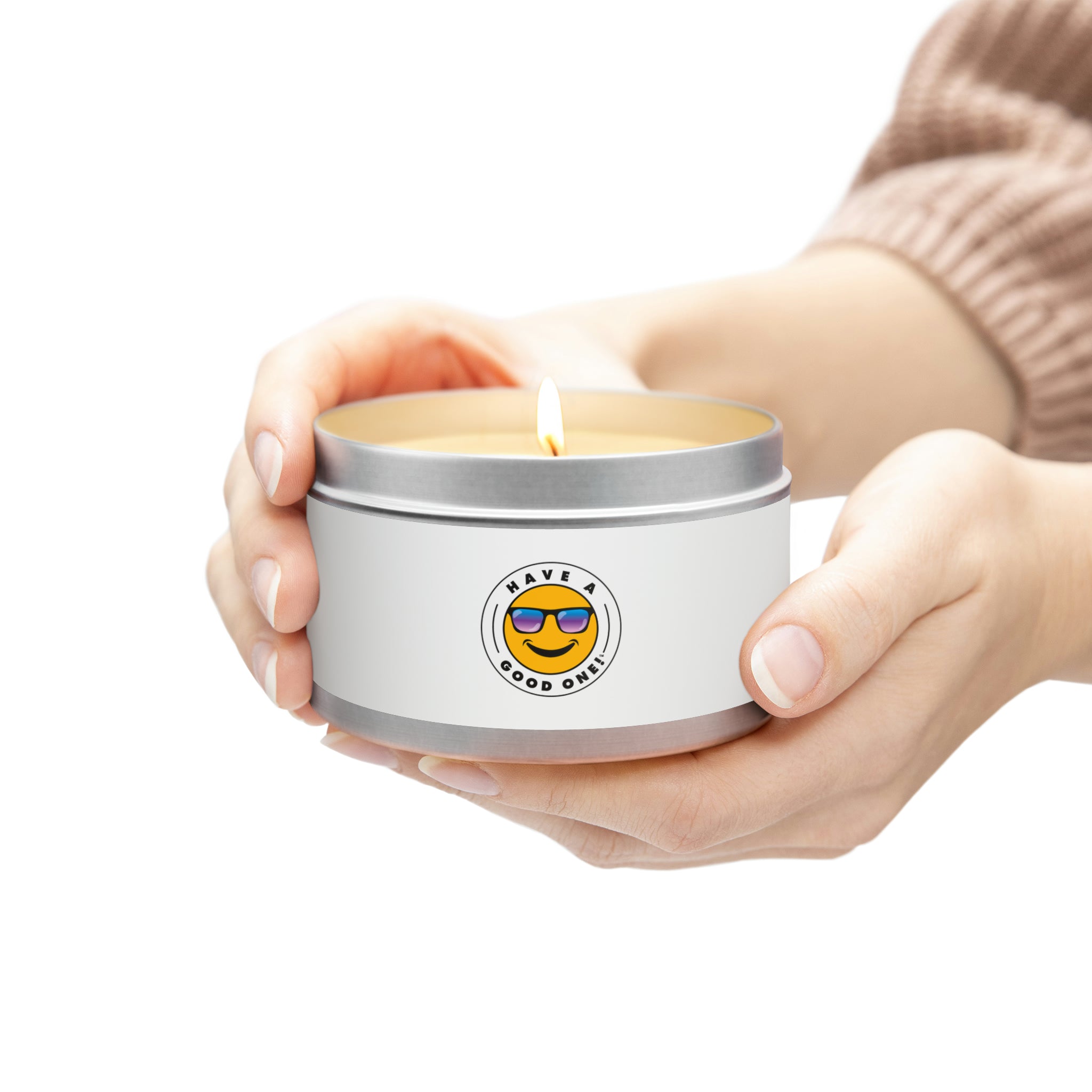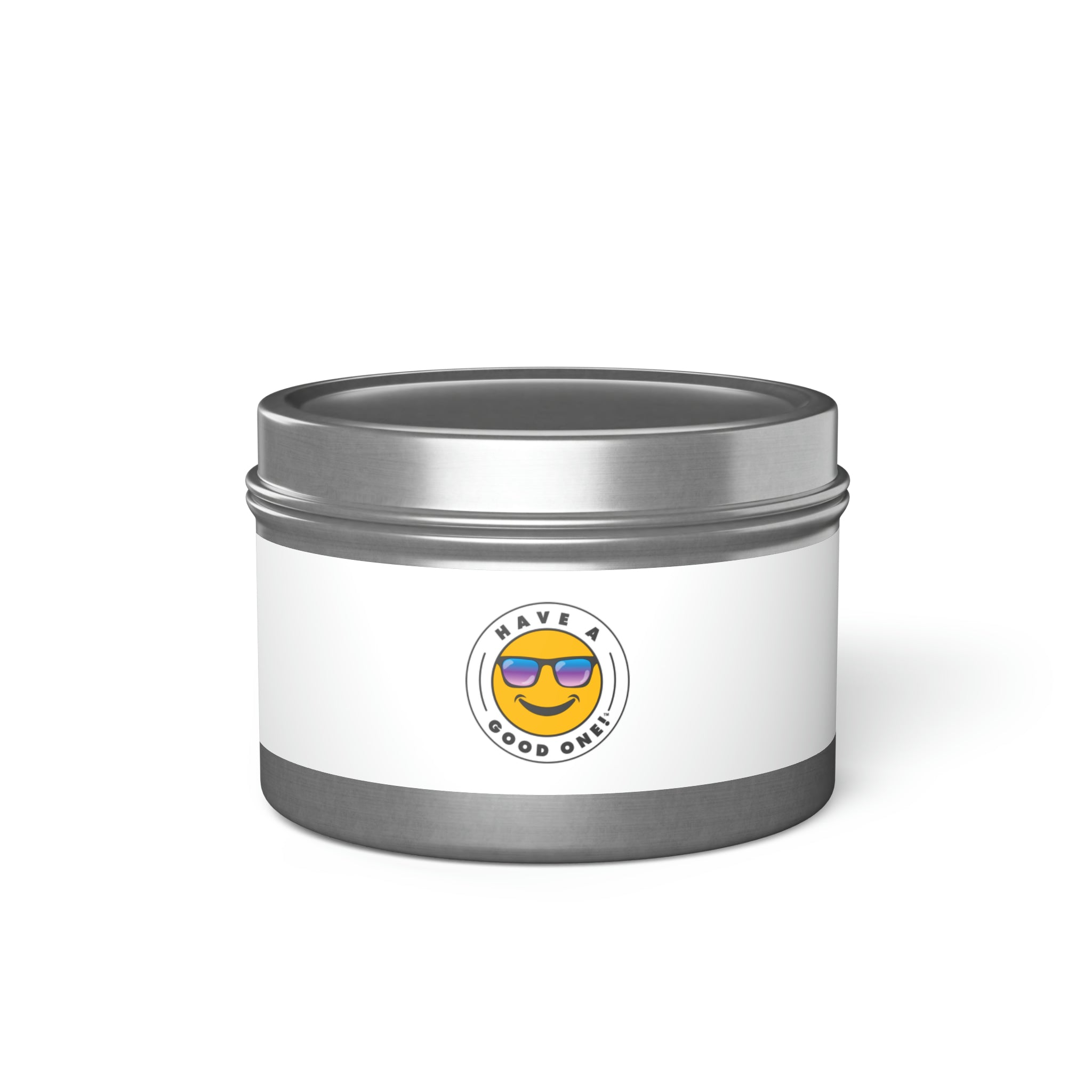 Tin Have A Good One! Candles With Lid - White Color With Blue Purple Have A Good One Logo