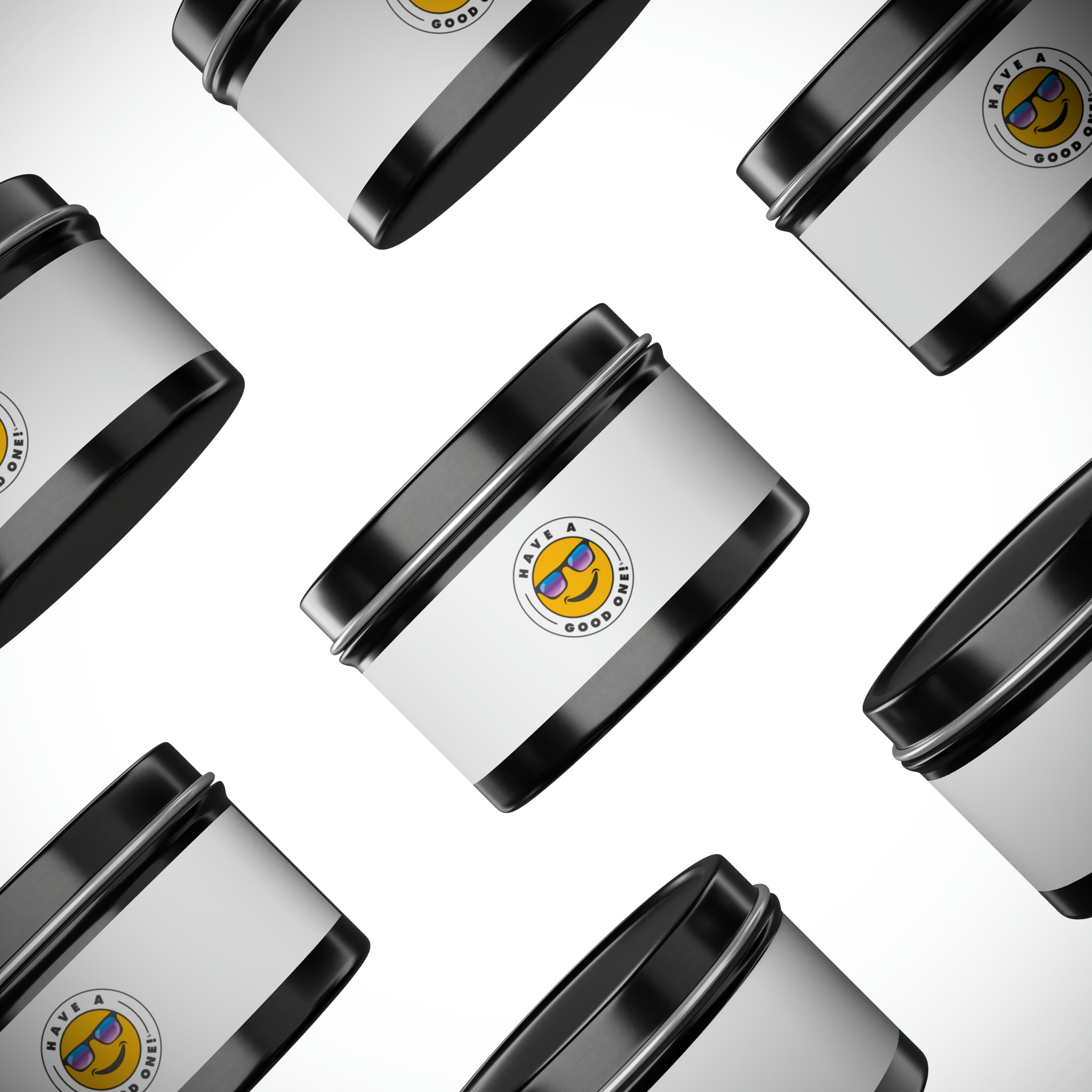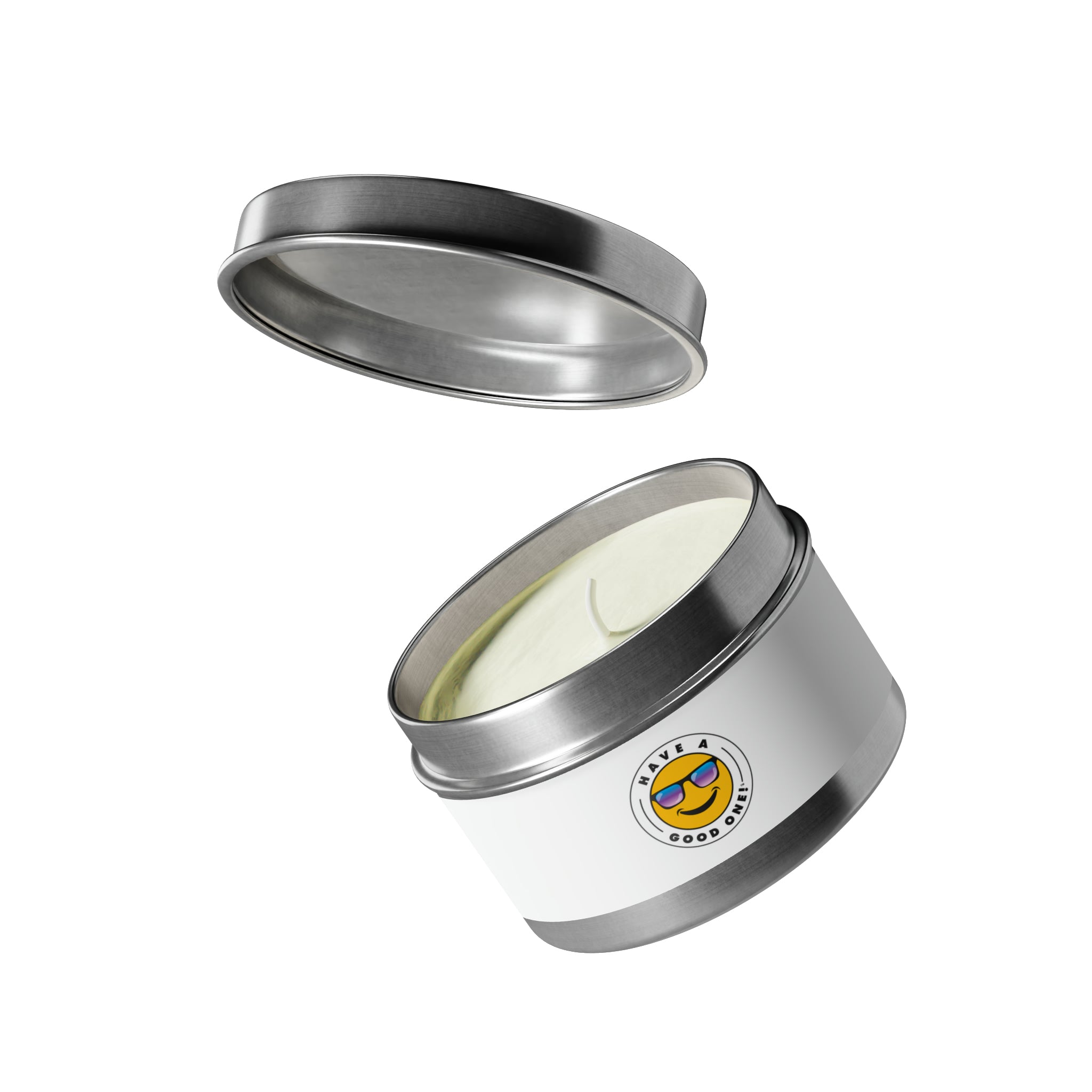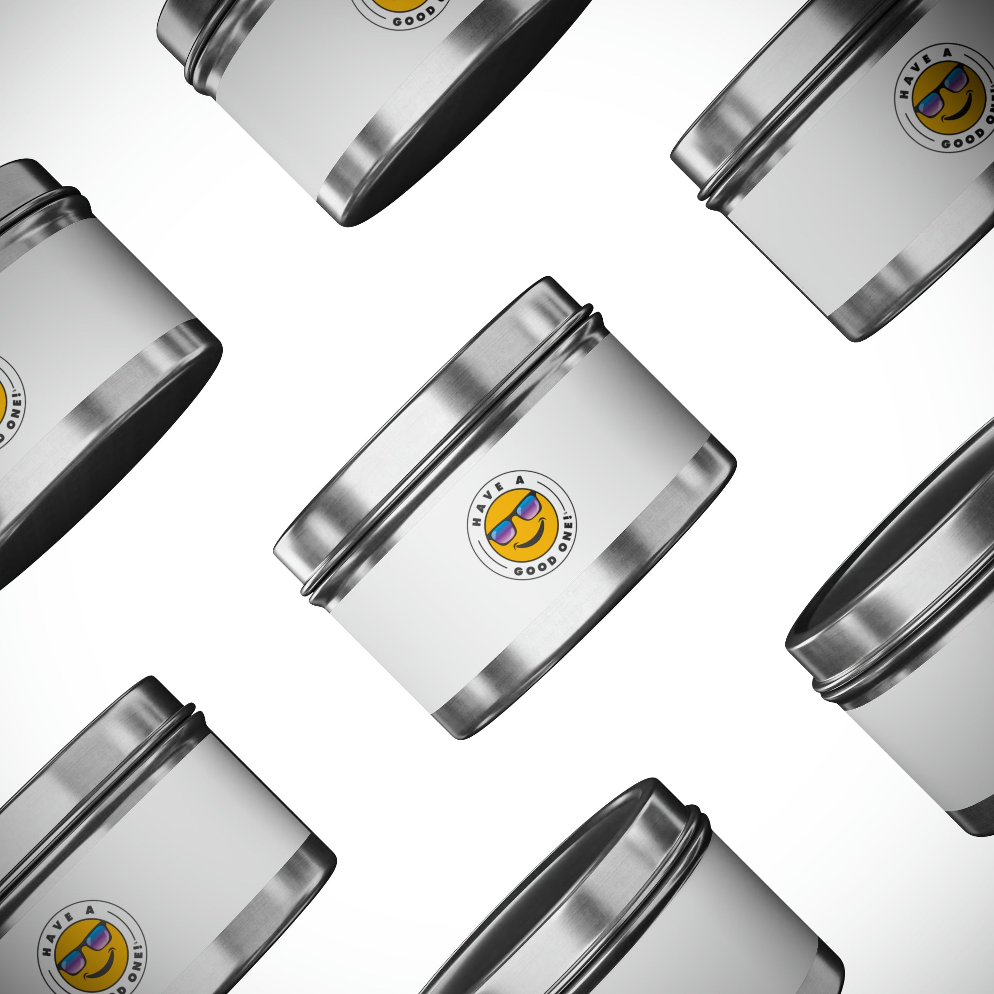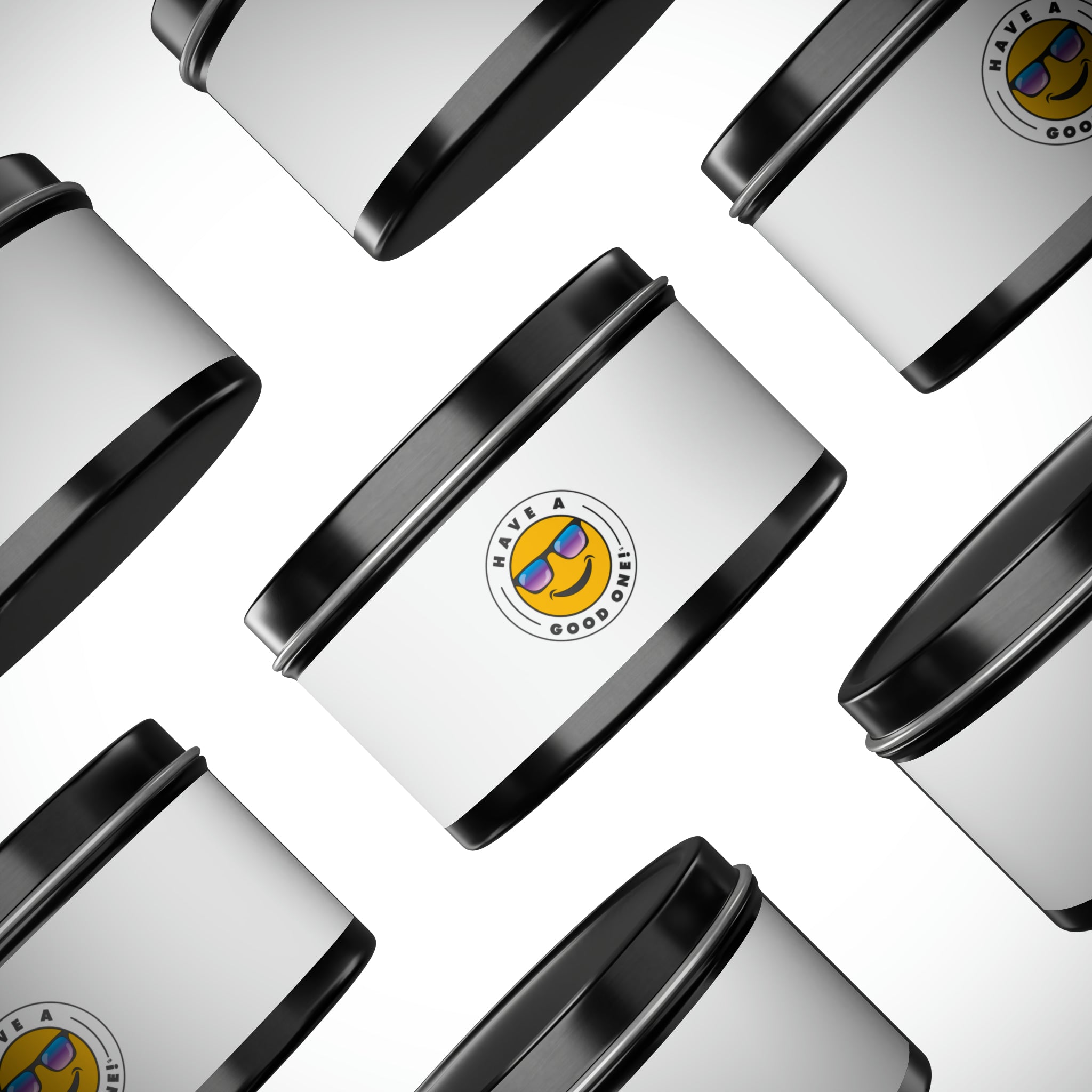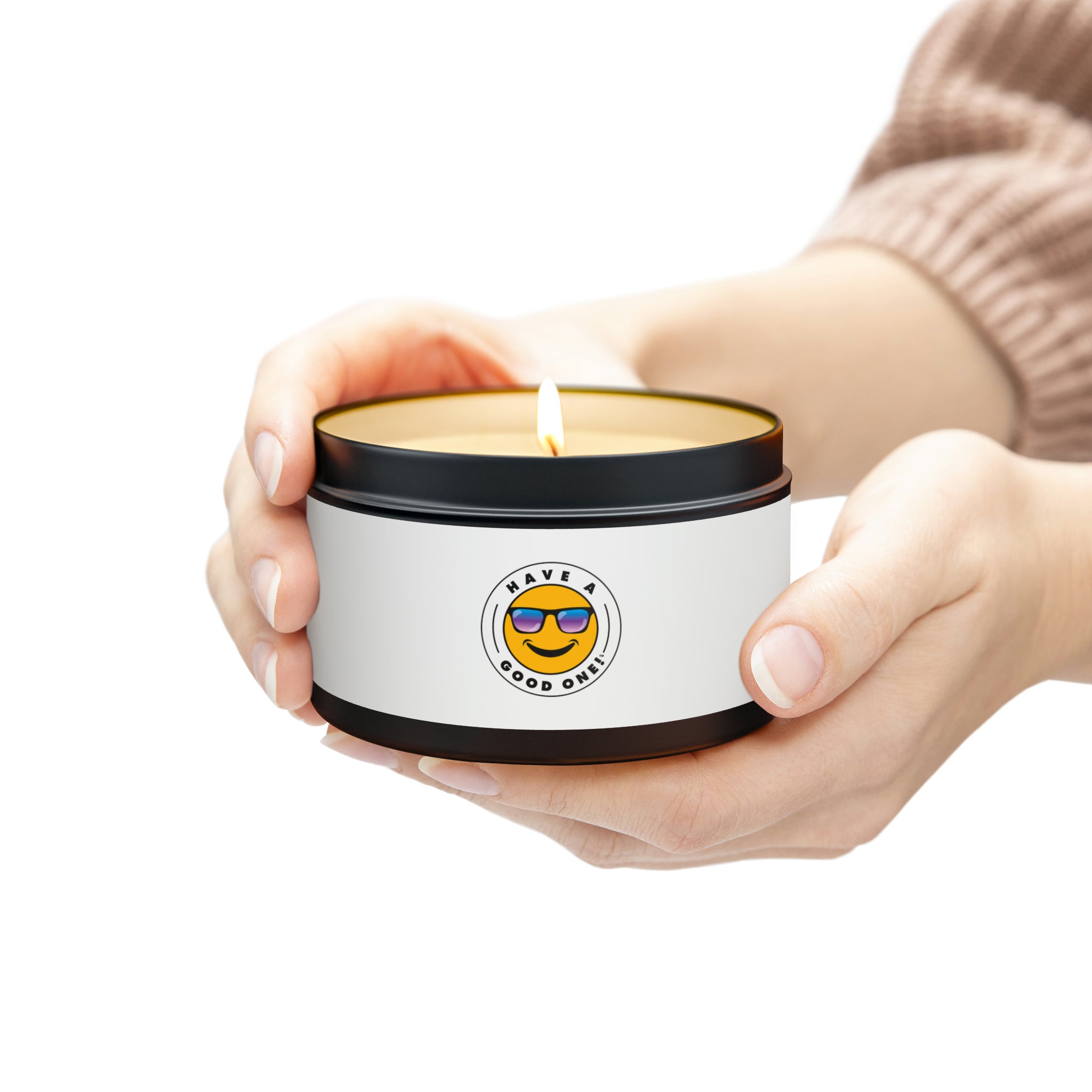 Tin Have A Good One! Candles With Lid - White Color With Blue Purple Have A Good One Logo