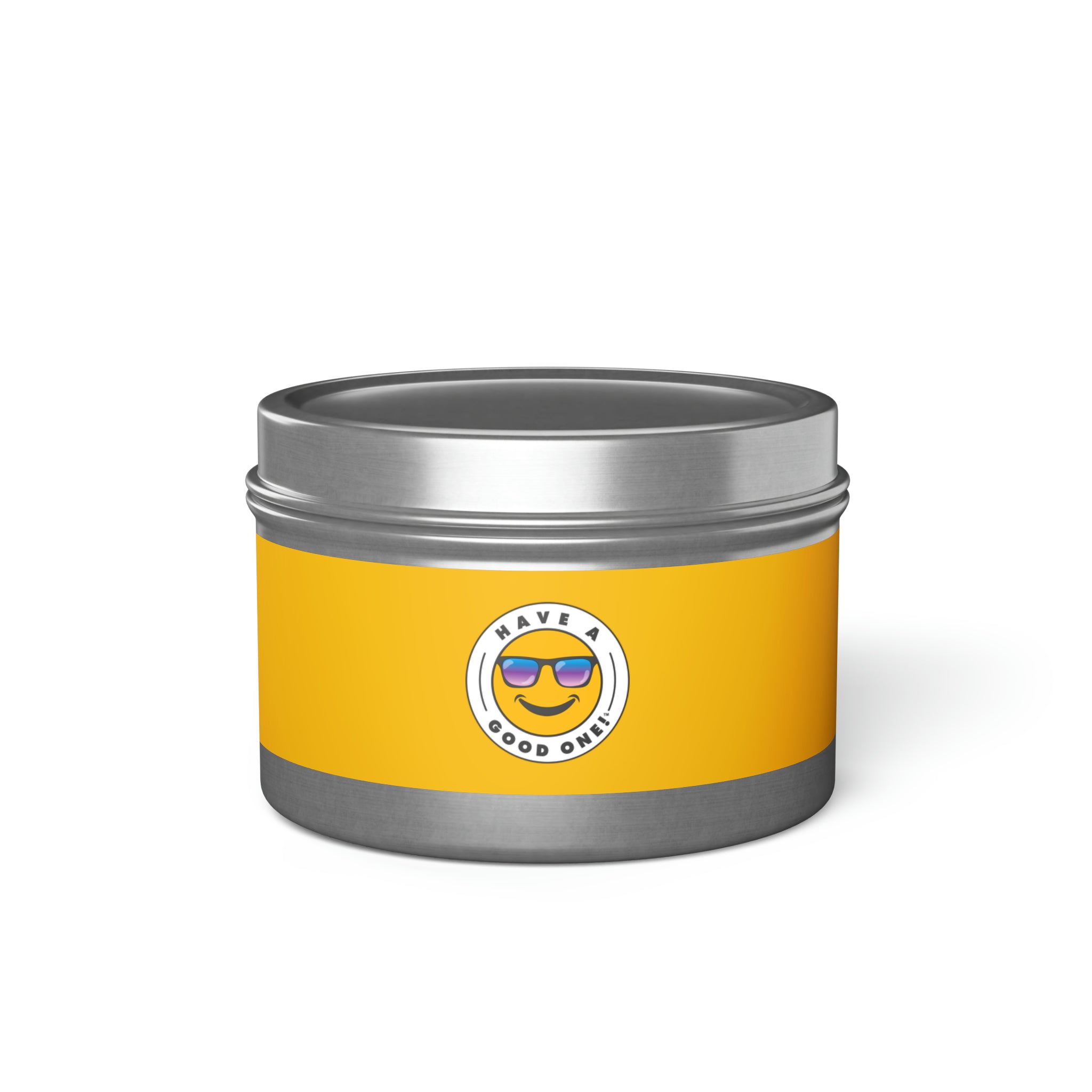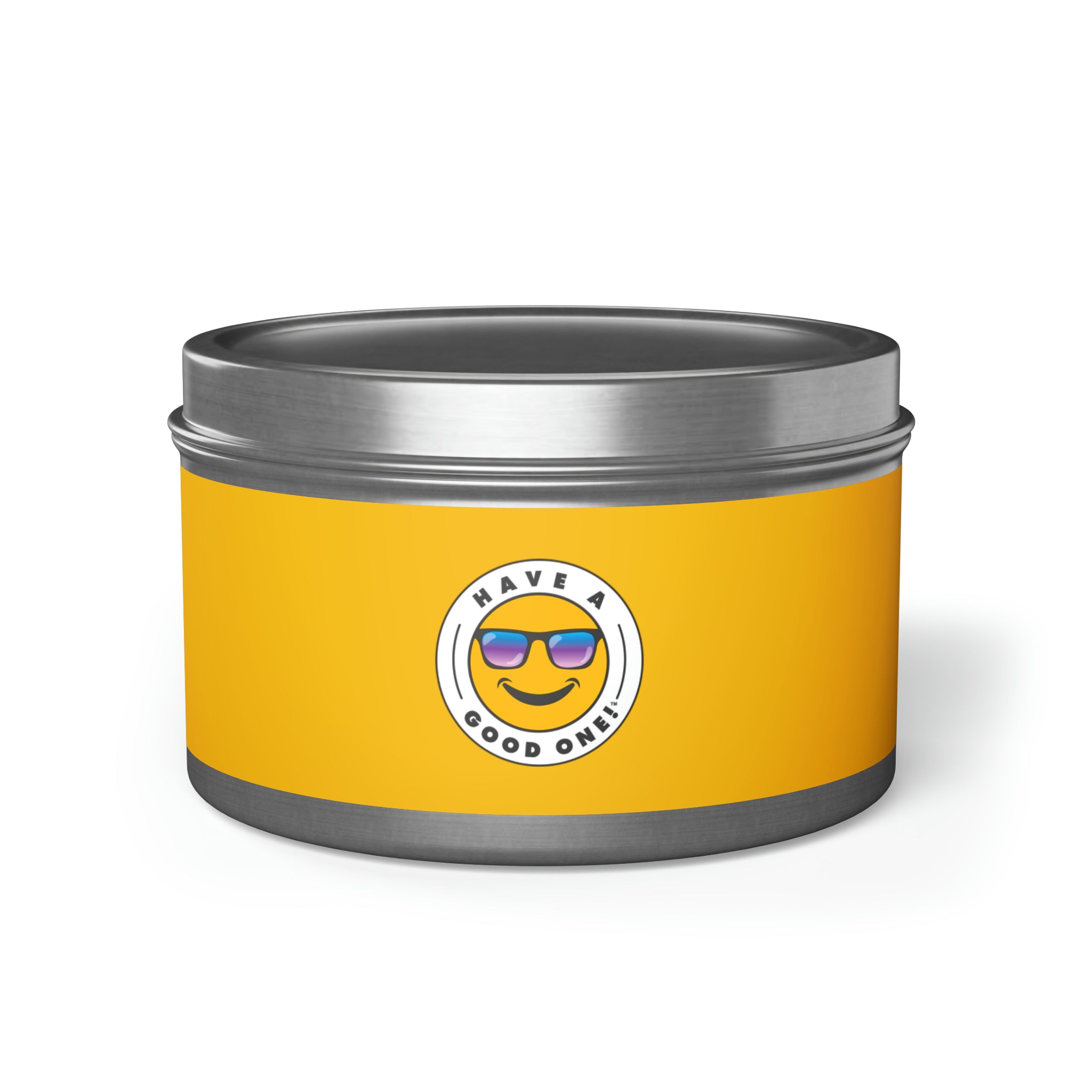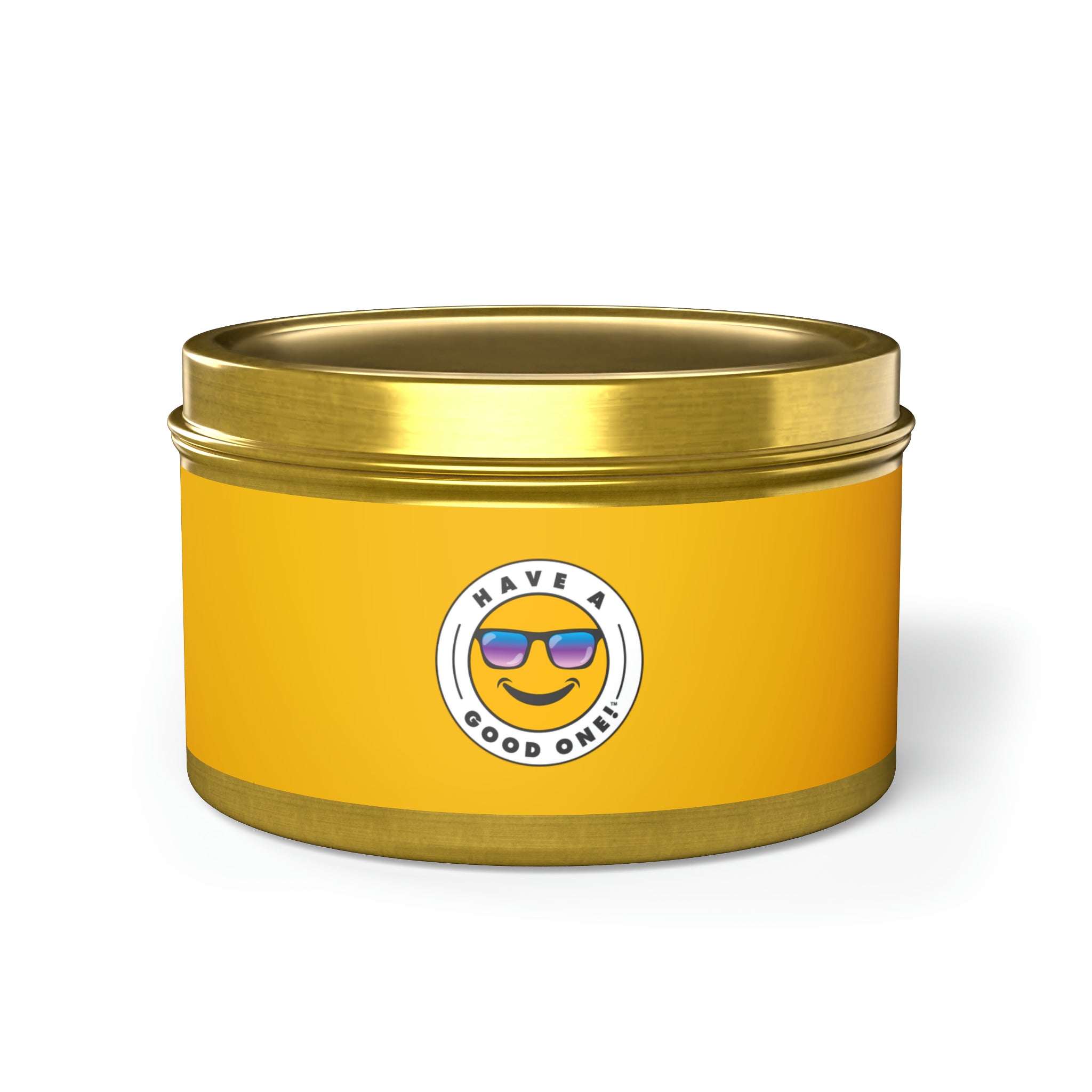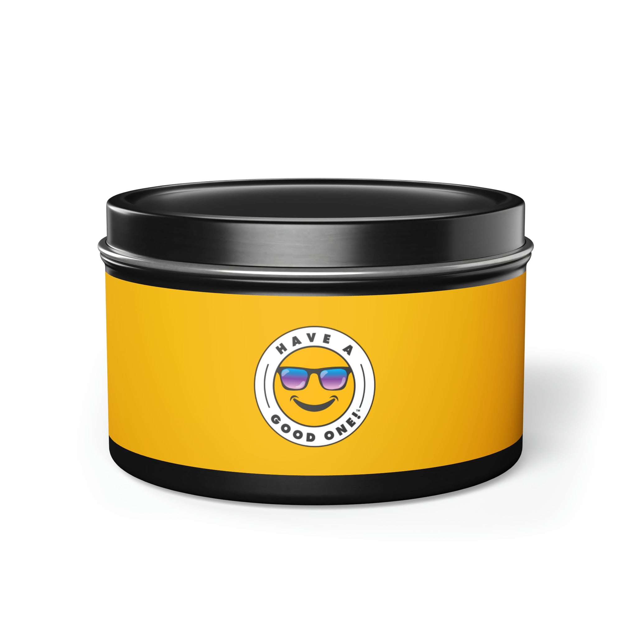 Tin Have A Good One! Candles With Lid - Yellow Color With Blue Purple Have A Good One Logo