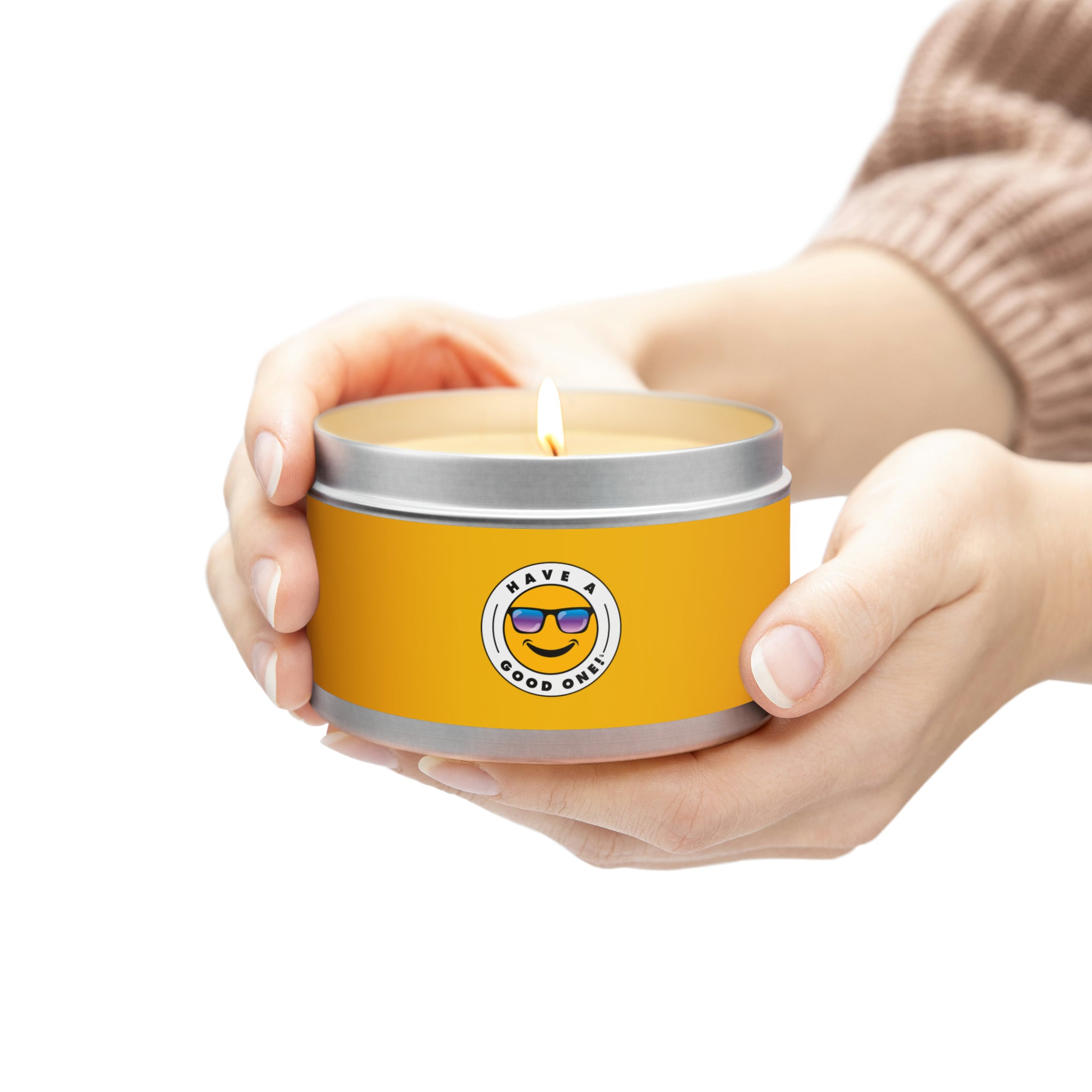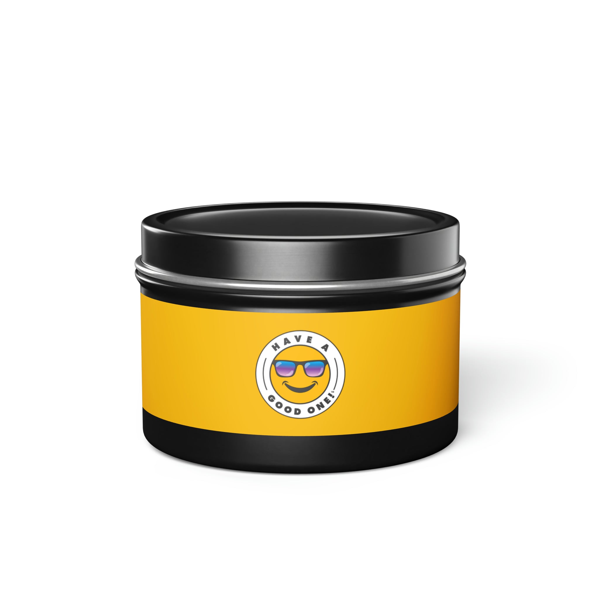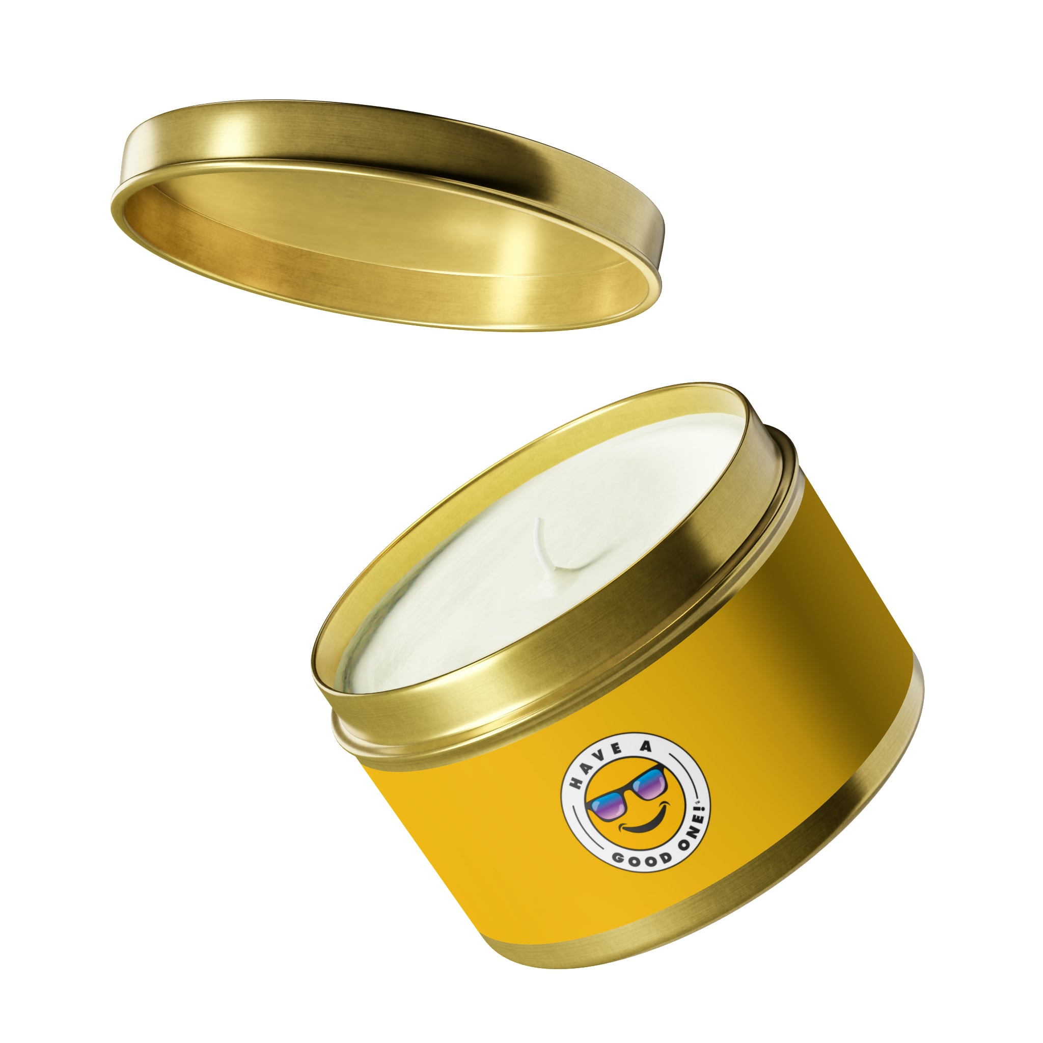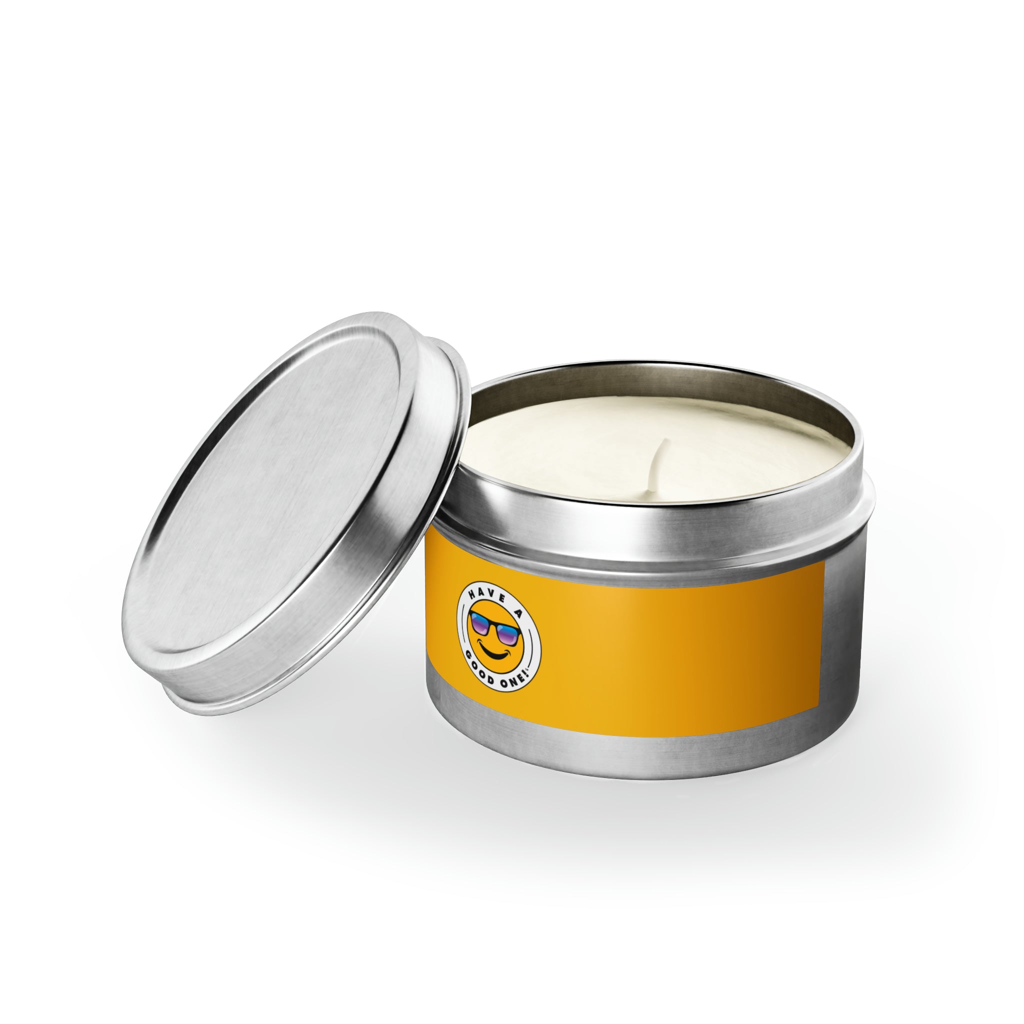 Tin Have A Good One! Candles With Lid - Yellow Color With Blue Purple Have A Good One Logo