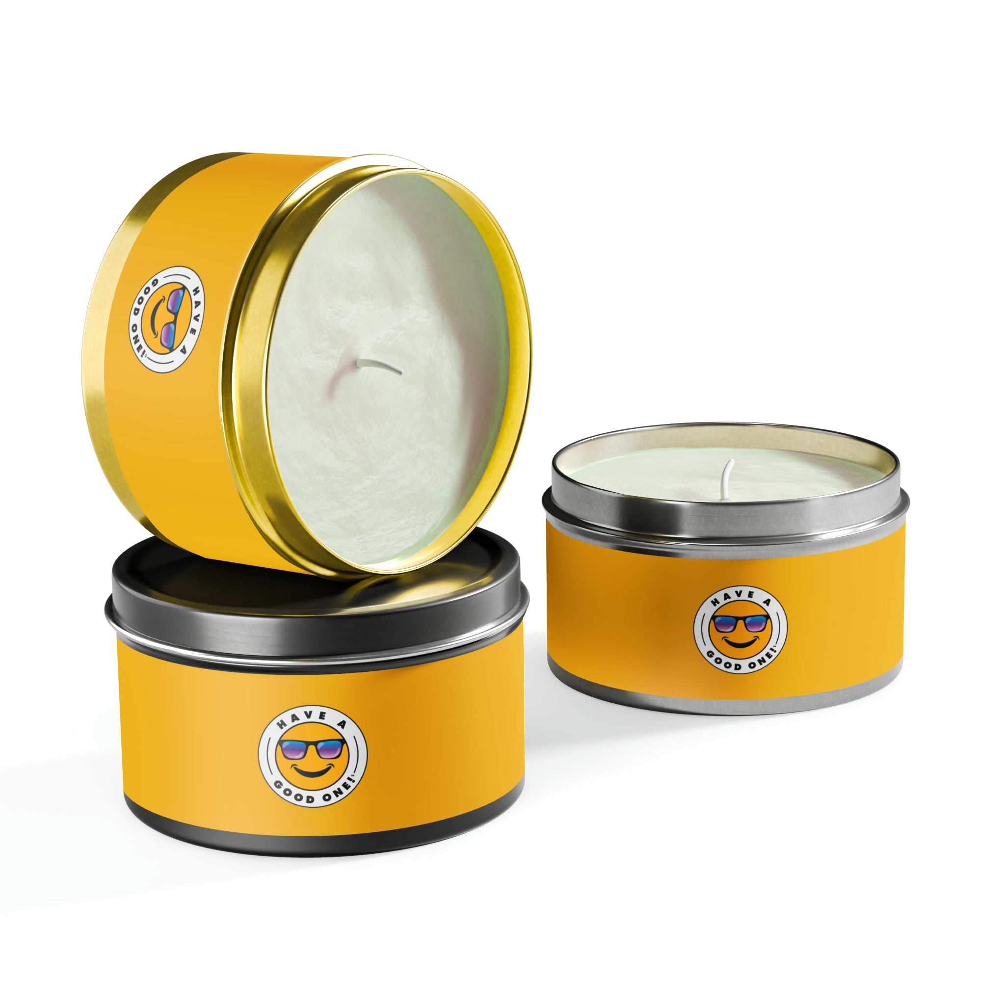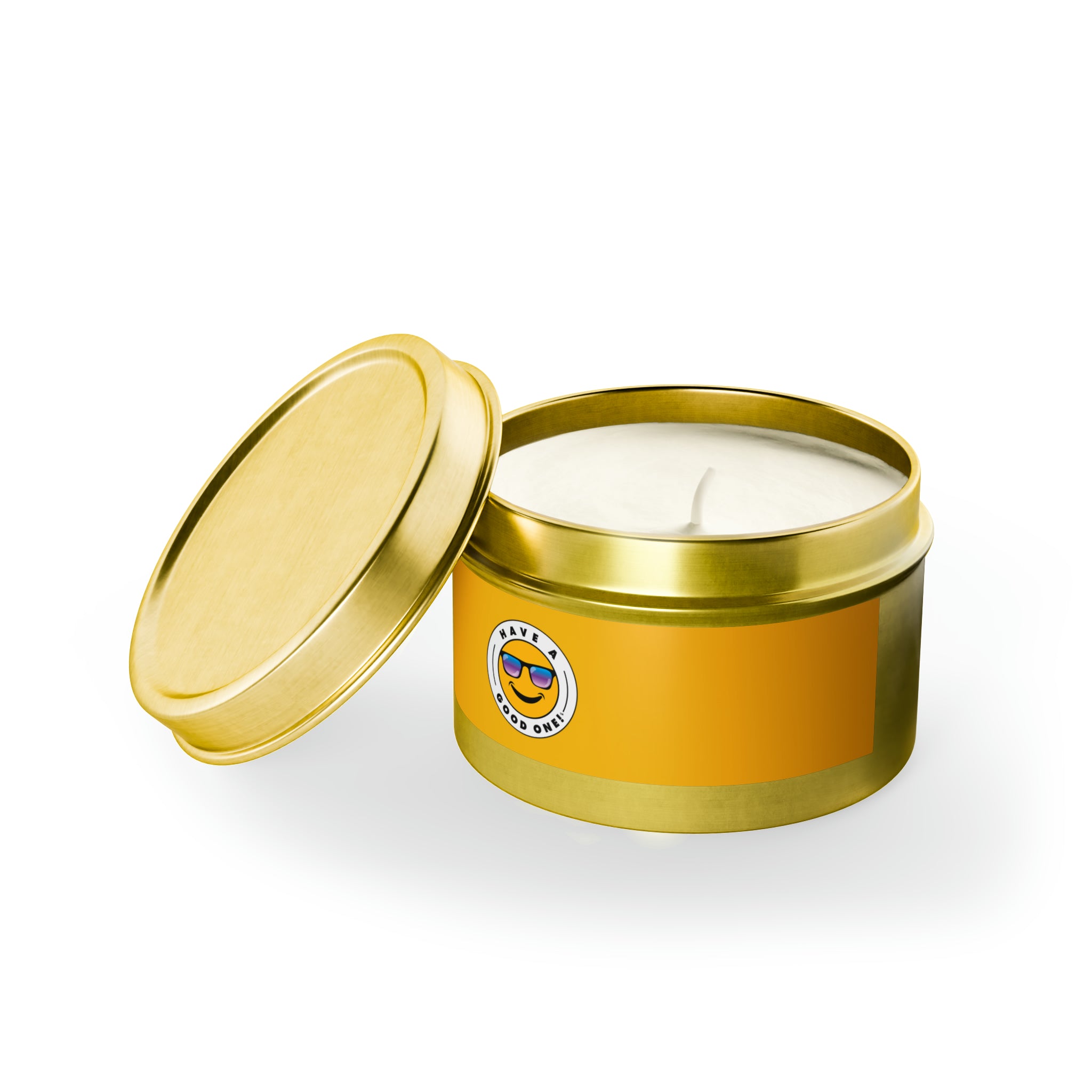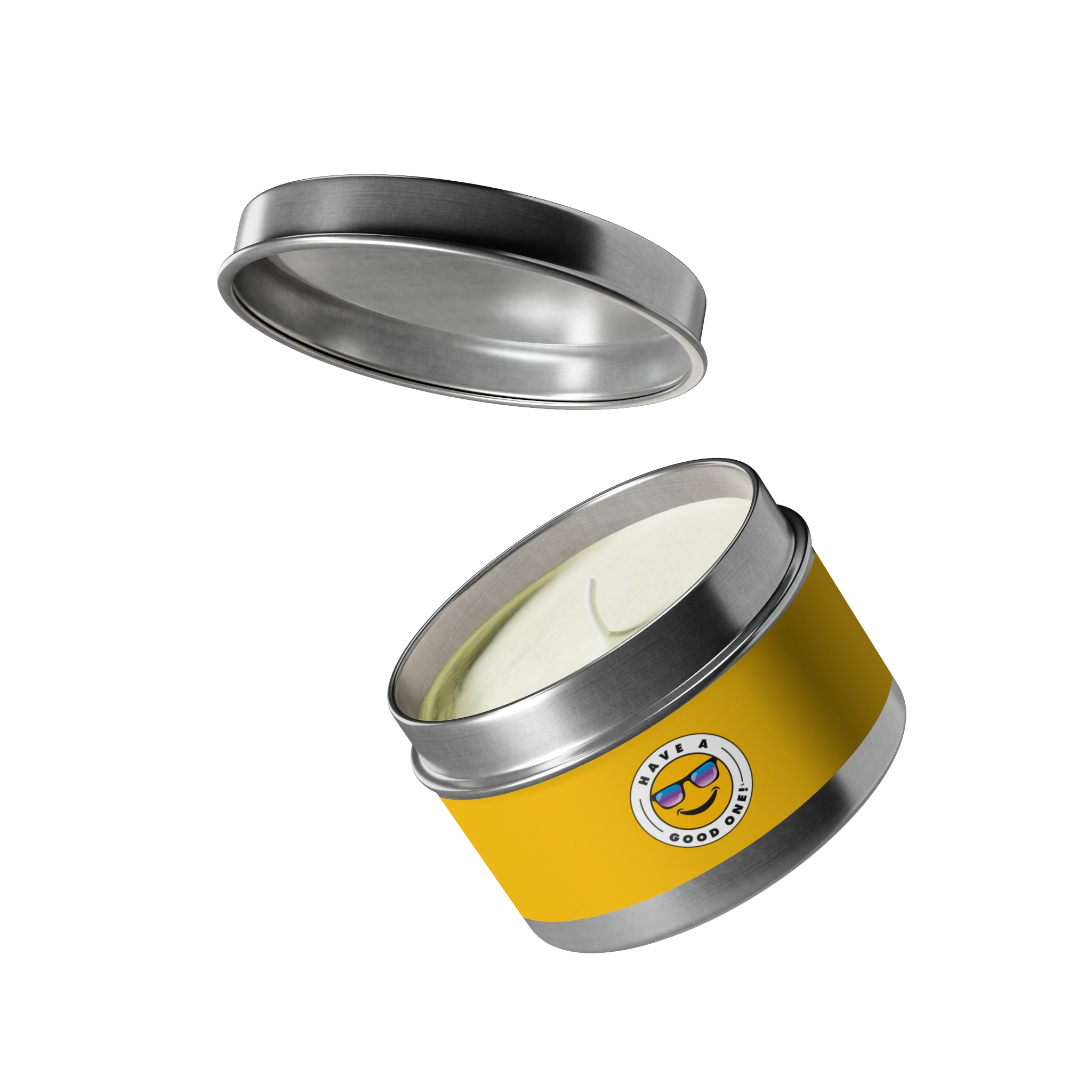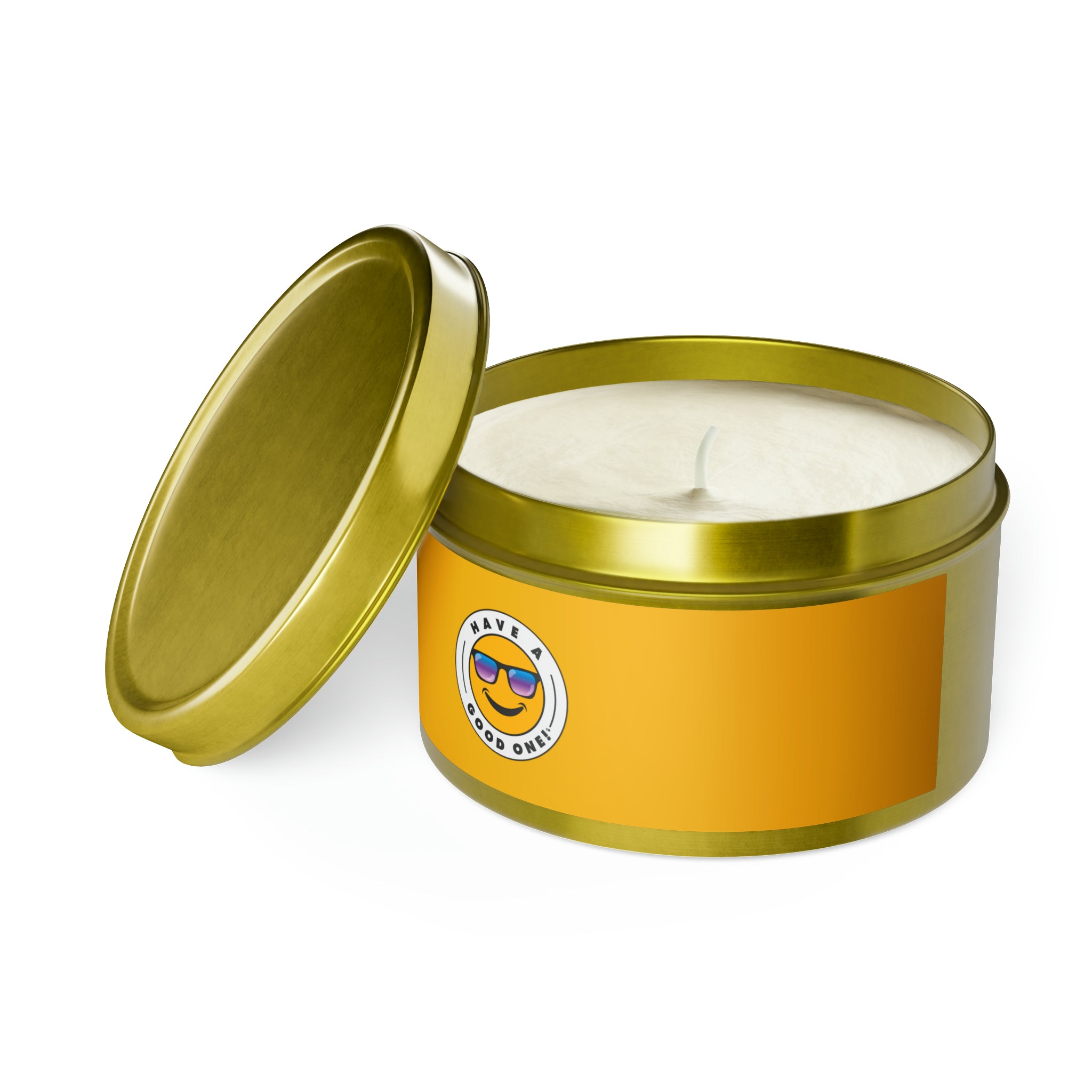 Tin Have A Good One! Candles With Lid - Yellow Color With Blue Purple Have A Good One Logo