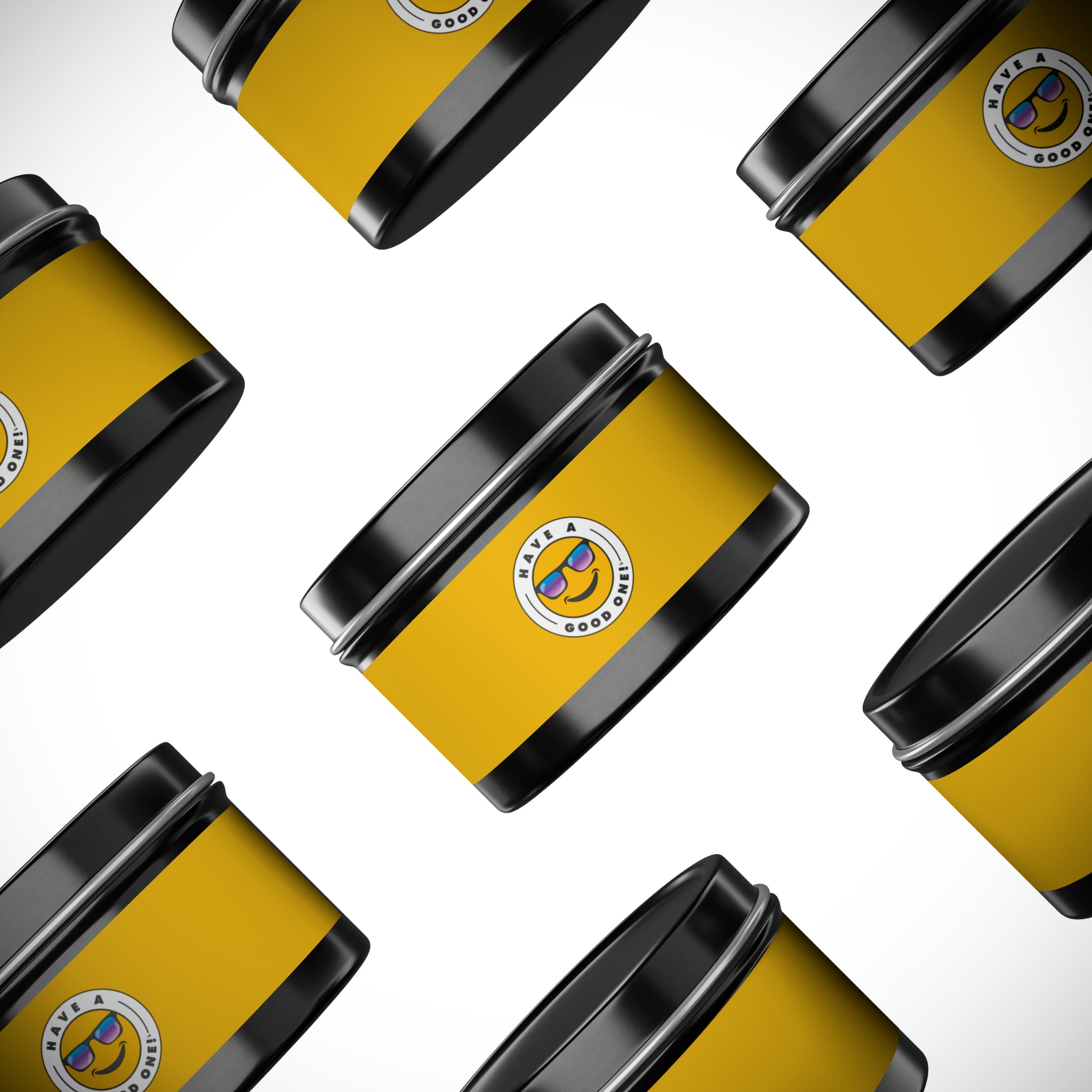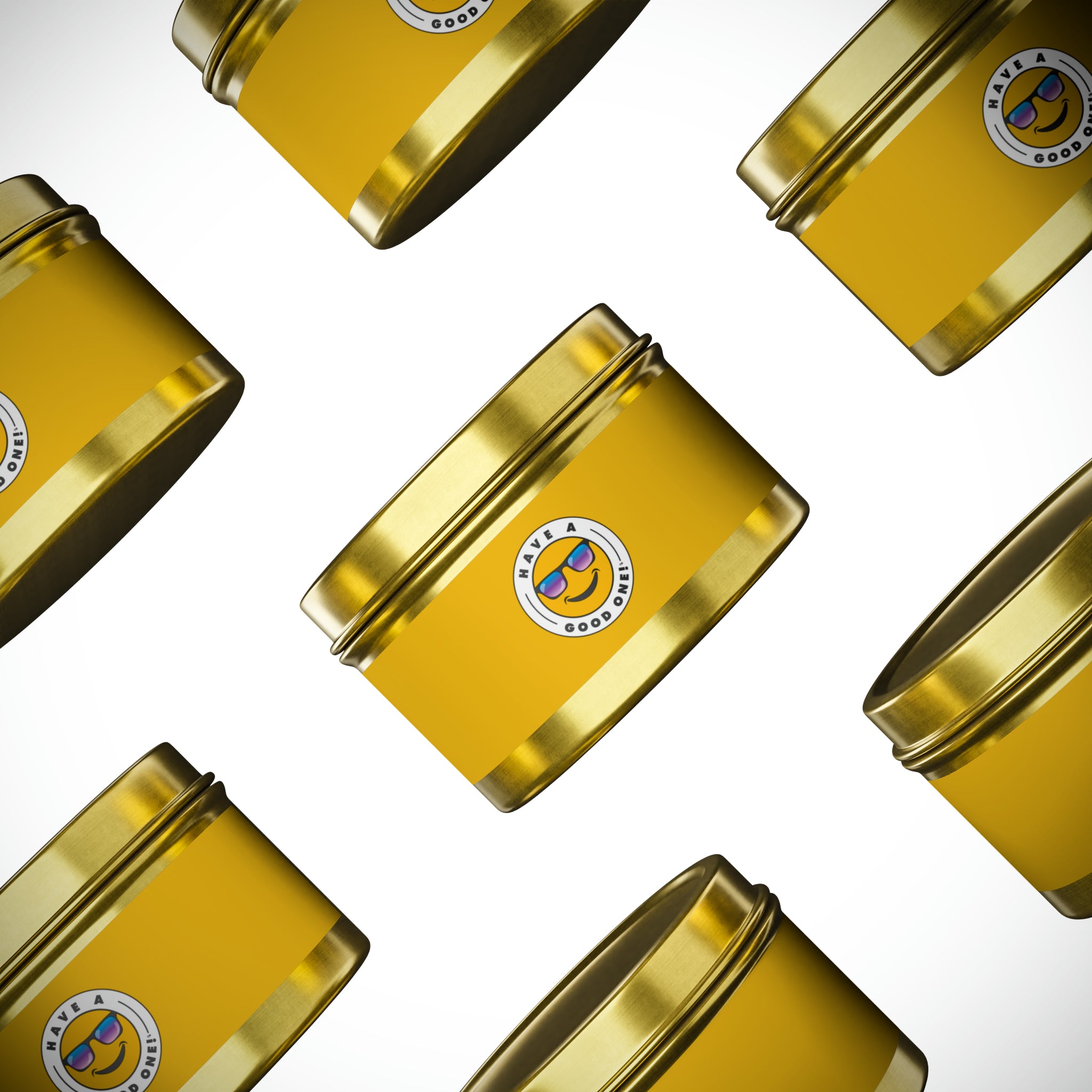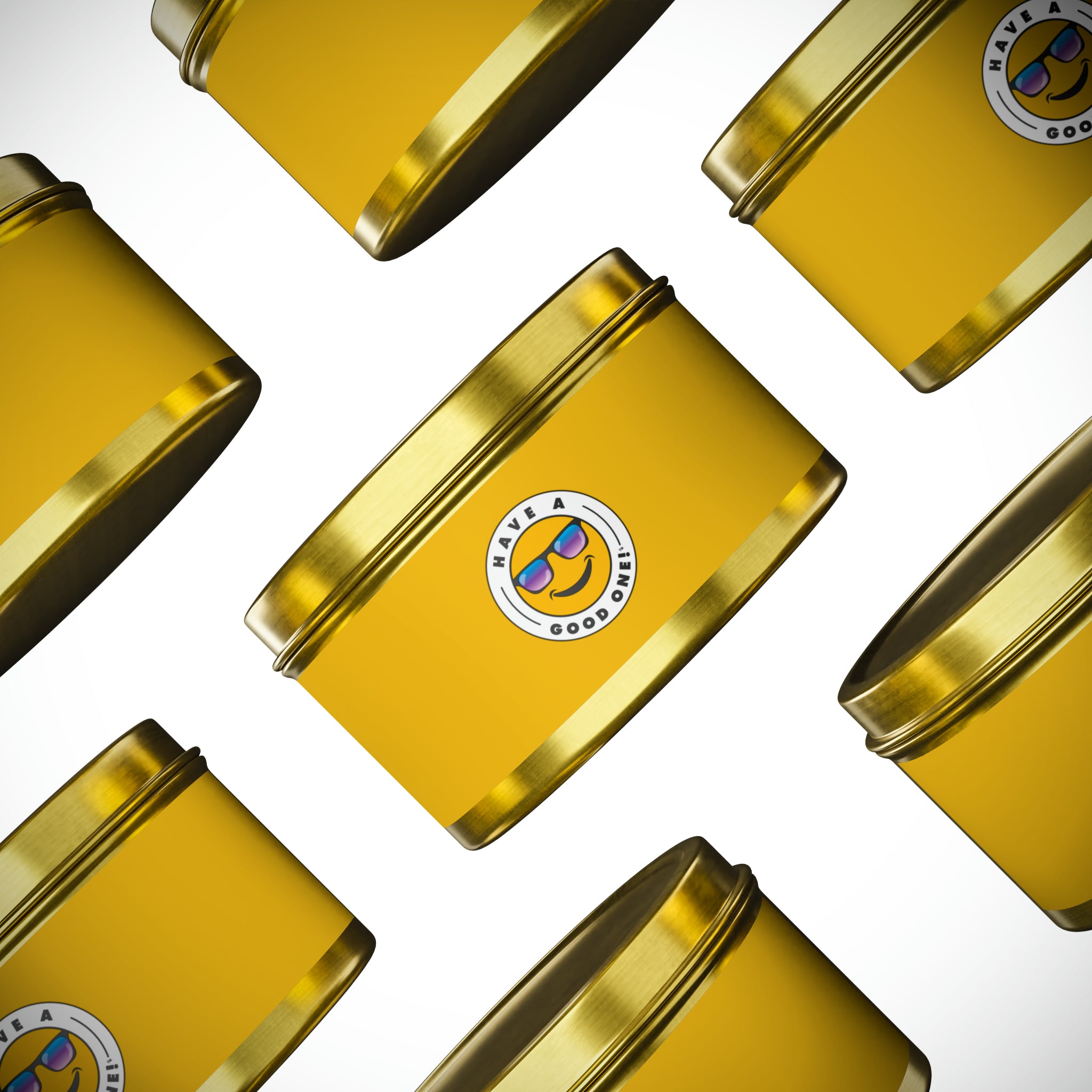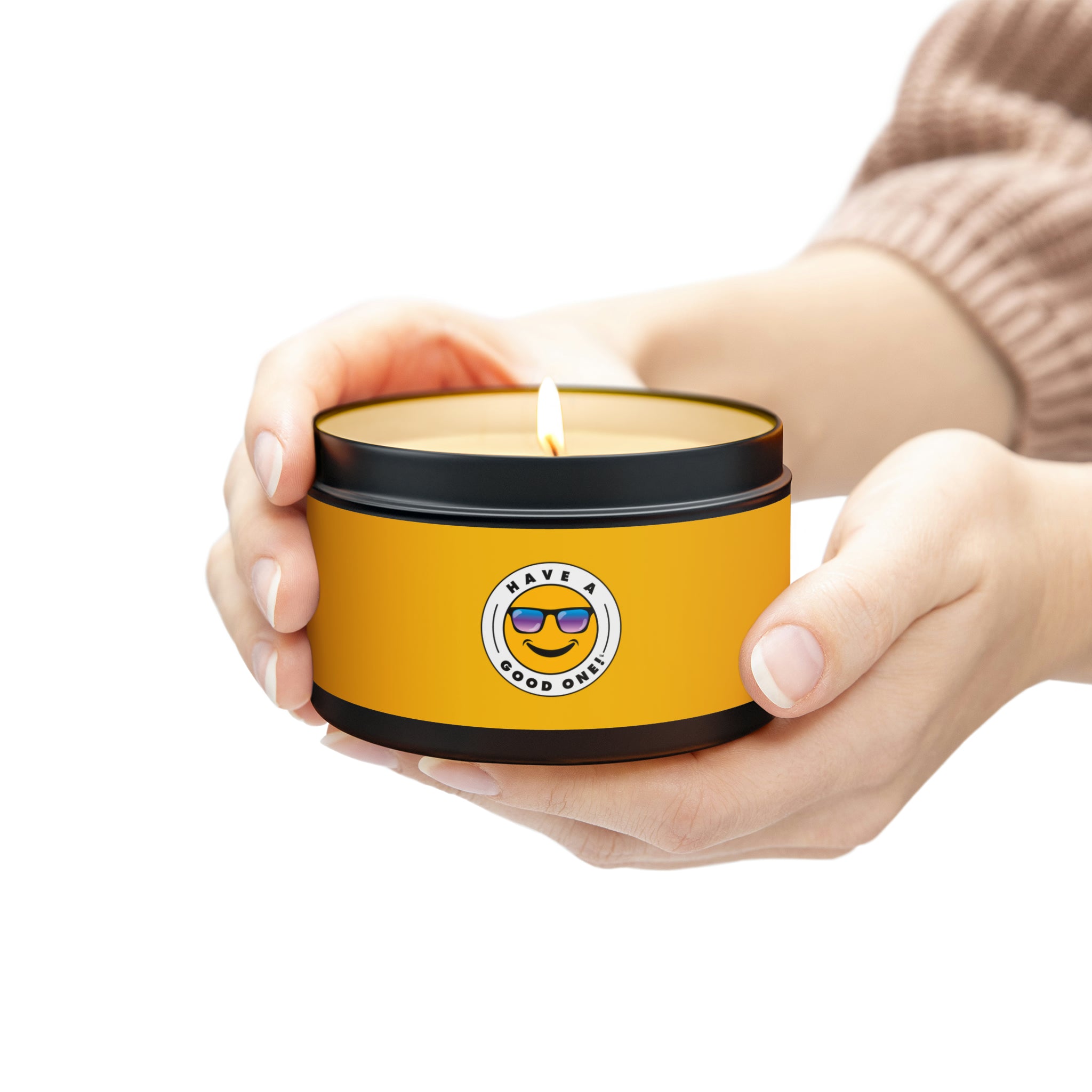 Tin Have A Good One! Candles With Lid - Yellow Color With Blue Purple Have A Good One Logo