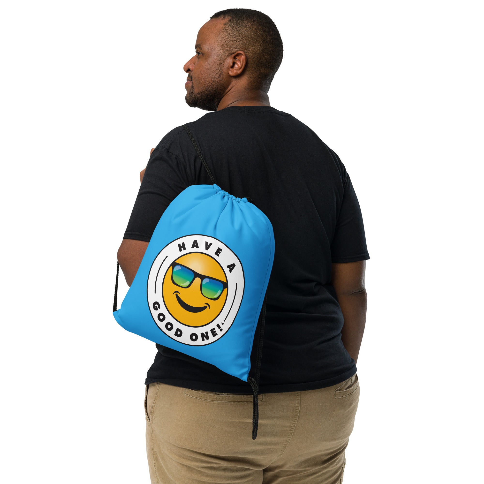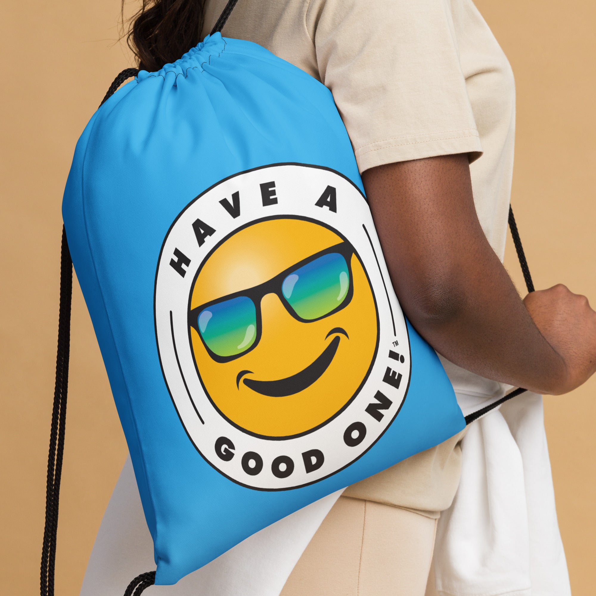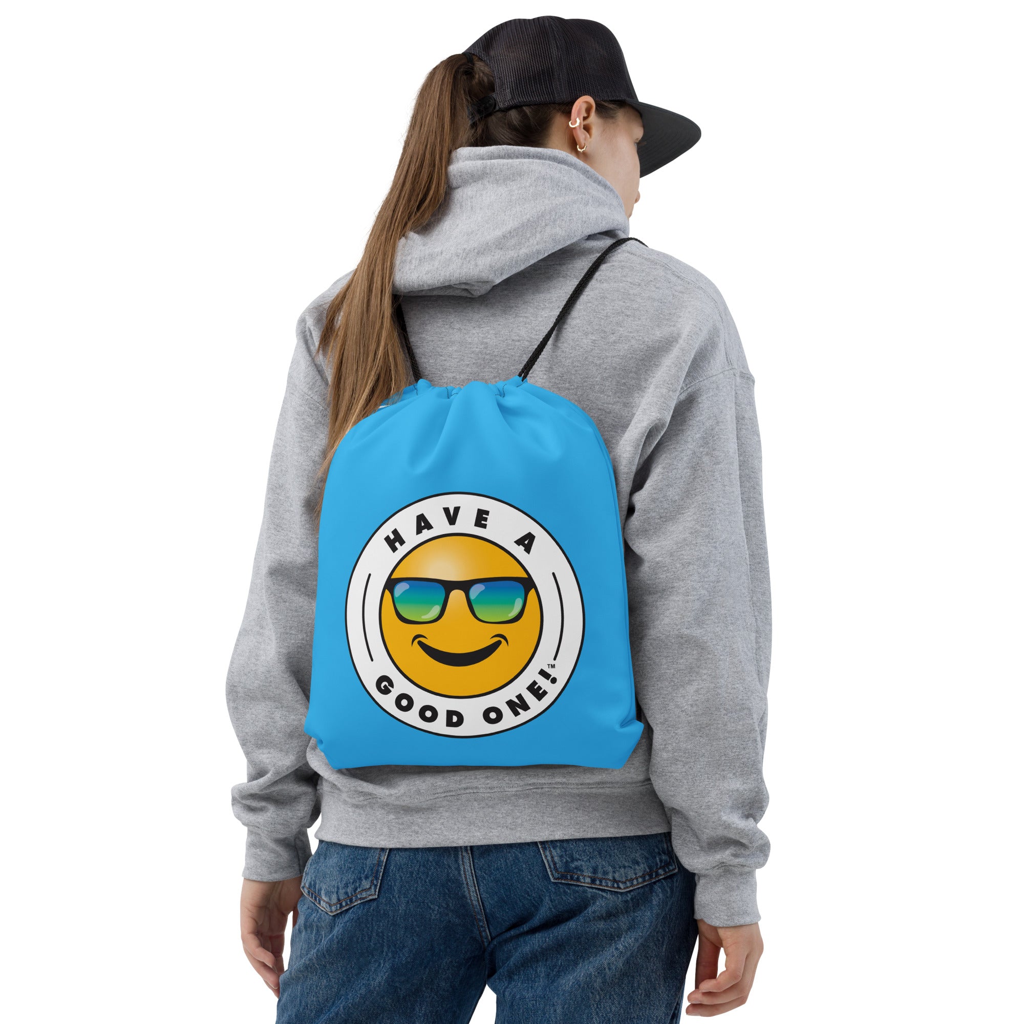 Grab N' Go Drawstring Bag - Blue Color With Blue Green Have A Good One! Logo