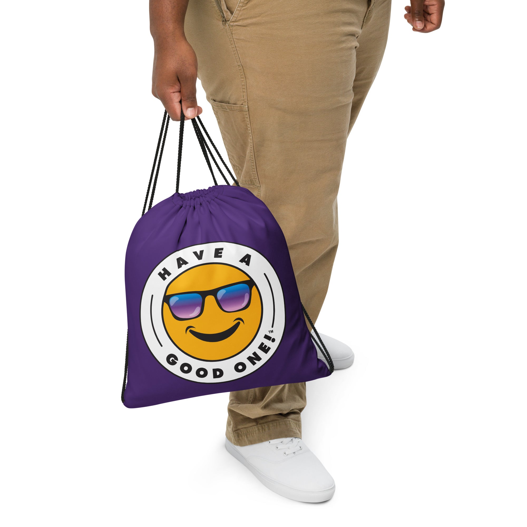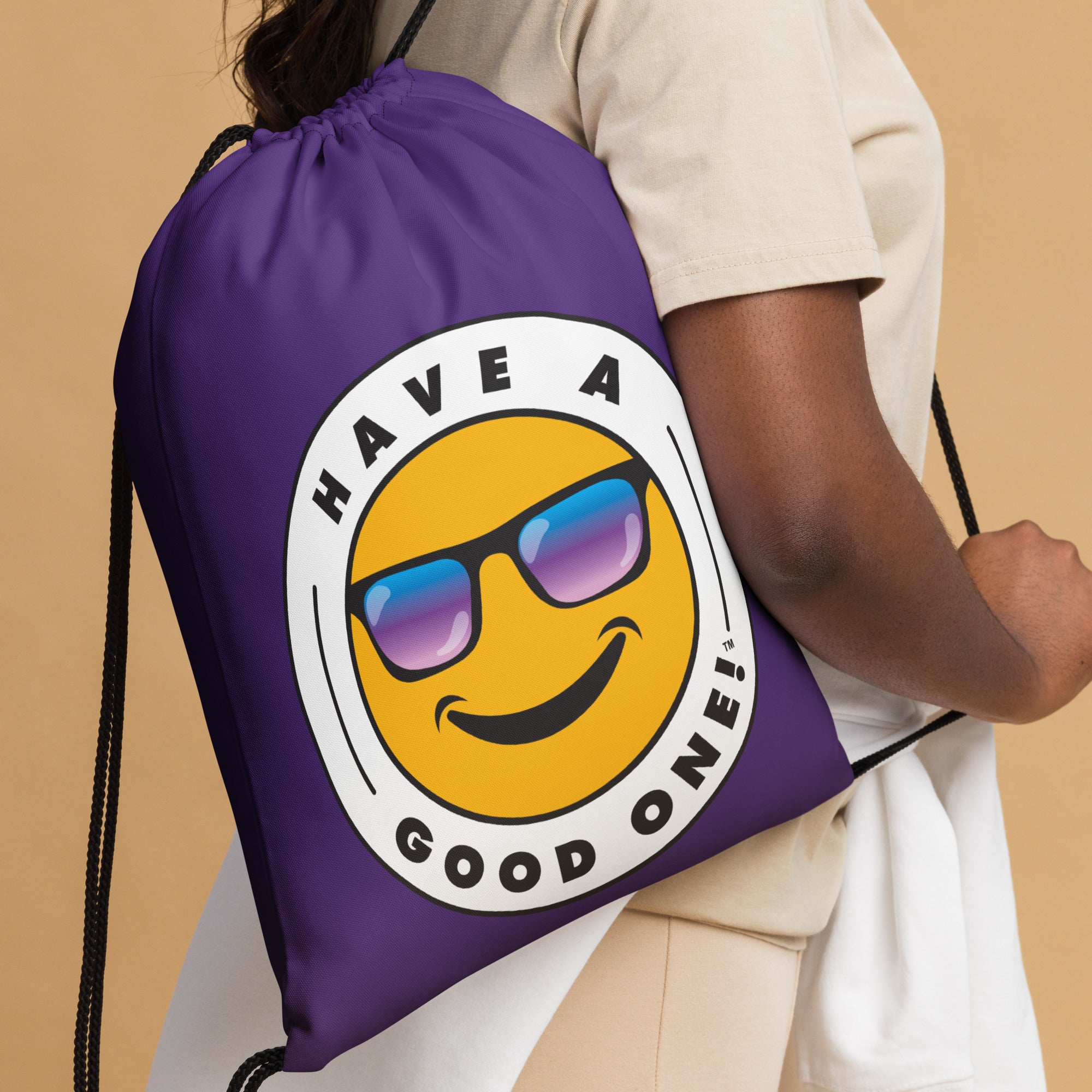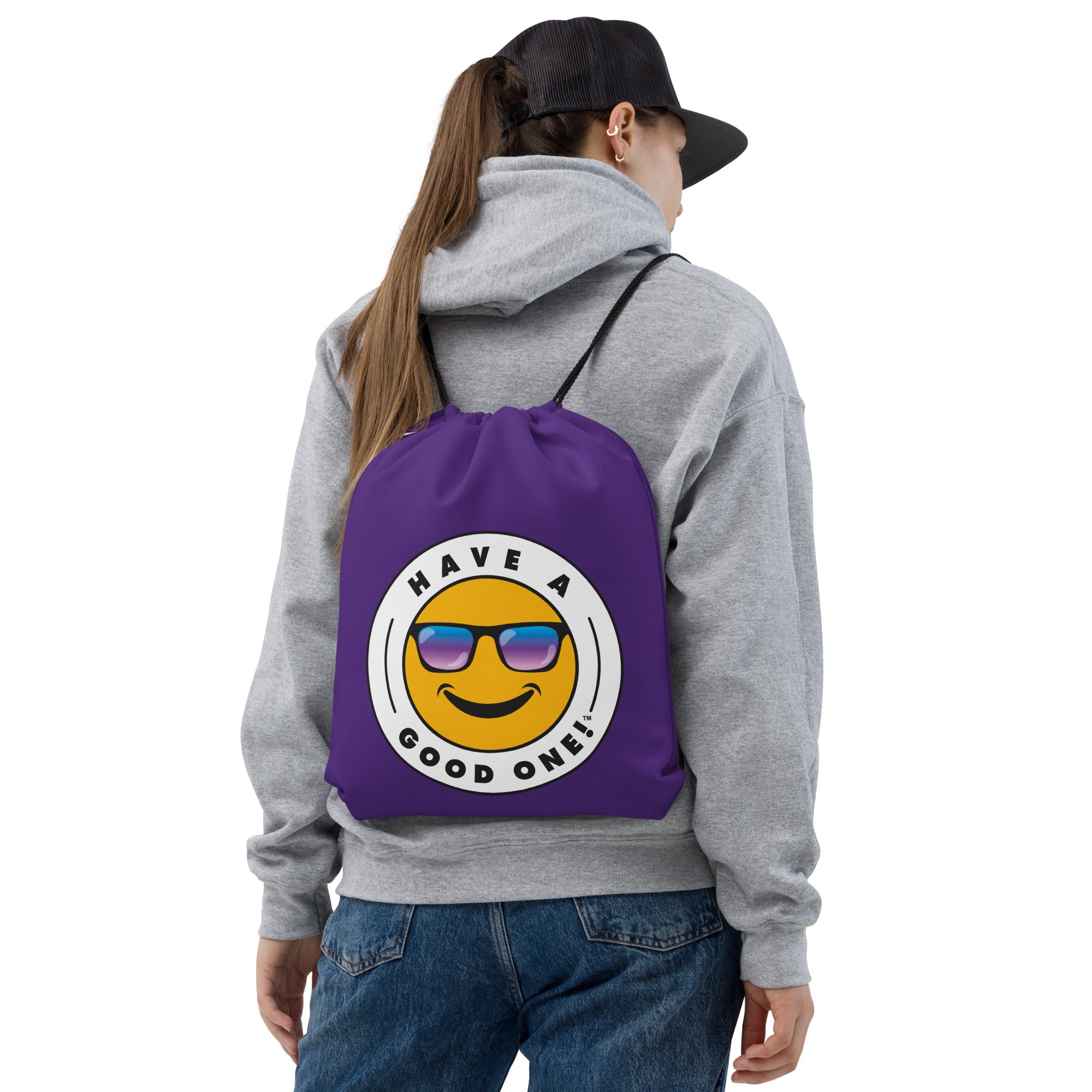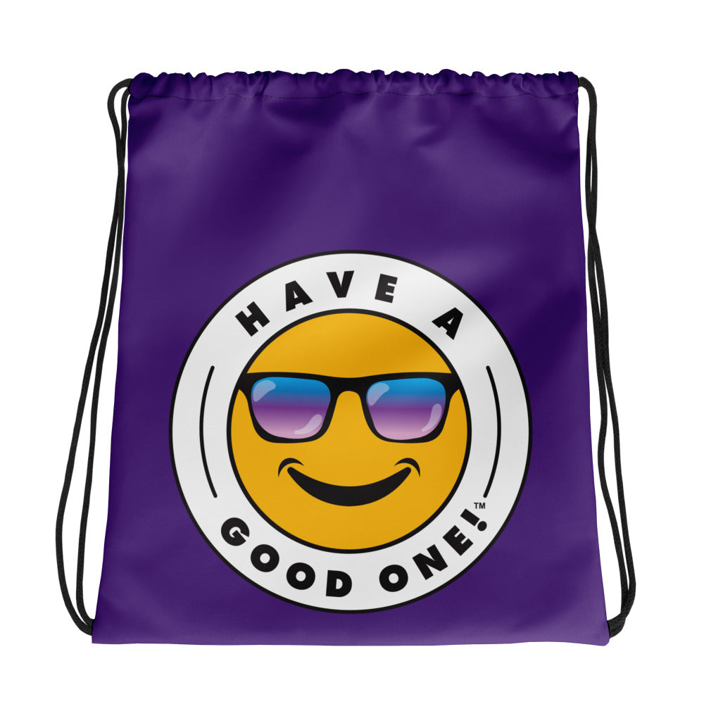 Grab N' Go Drawstring Bag - Dark Purple Color With Blue Purple Have A Good One! Logo