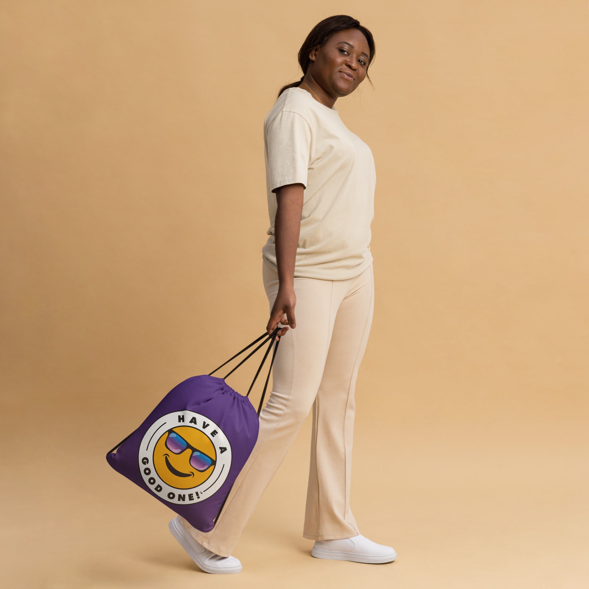 Pack up your belongings and head out to the beach, store, errands, pick up the kids, to the gym, traveling or just about anywhere! This versatile bag is light weight but durable and made from 100% spun polyester. This practical, high-quality drawstring bag is sporty and fun. It can be worn as a backpack with drawstring closure at top and narrow contrasting shoulder straps. Wherever you are going this drawstring bag will make your outing more fun and you will definitely Have A Good One!