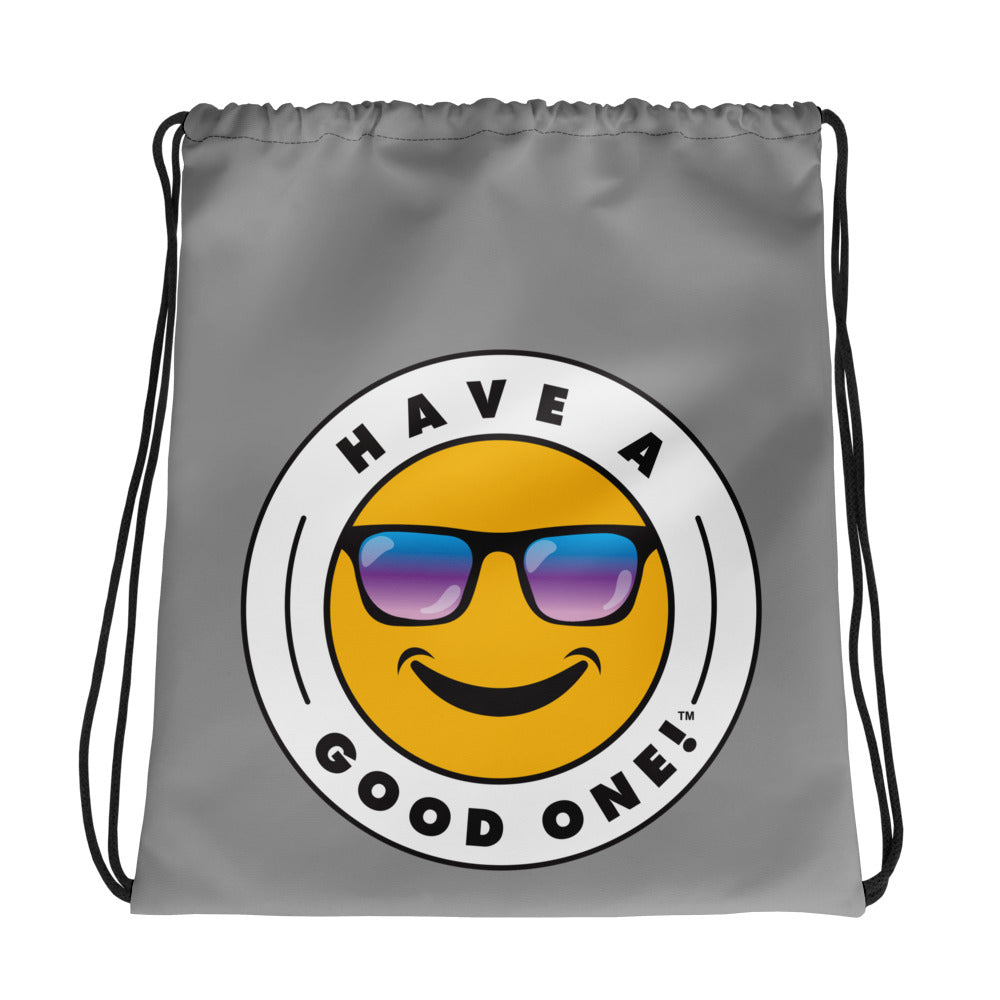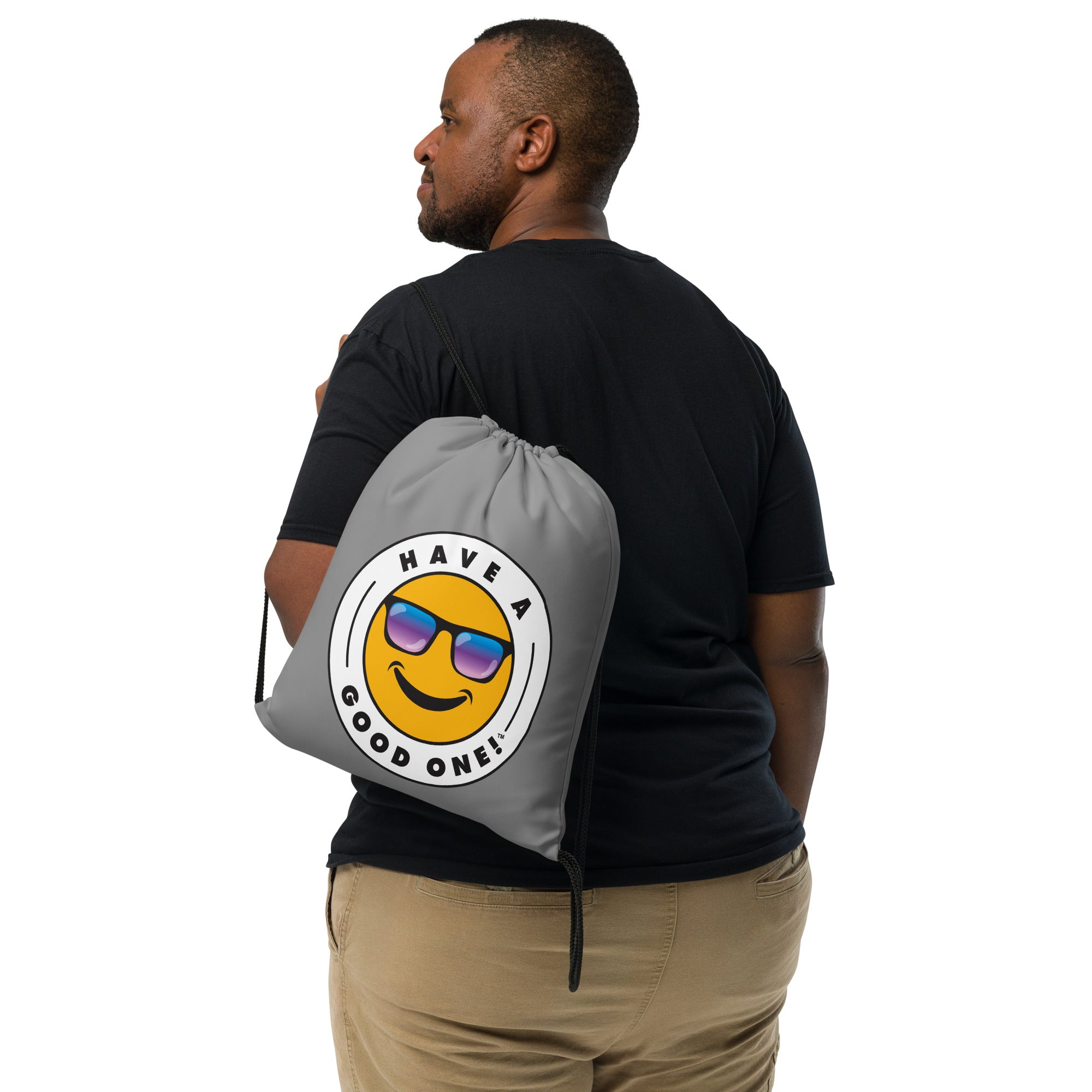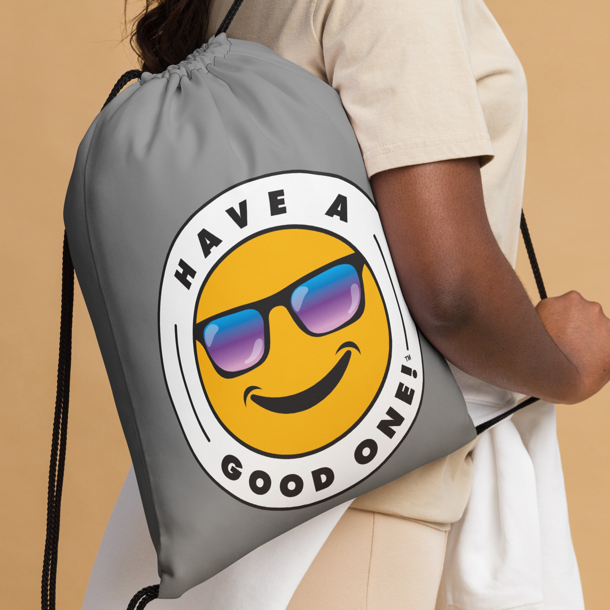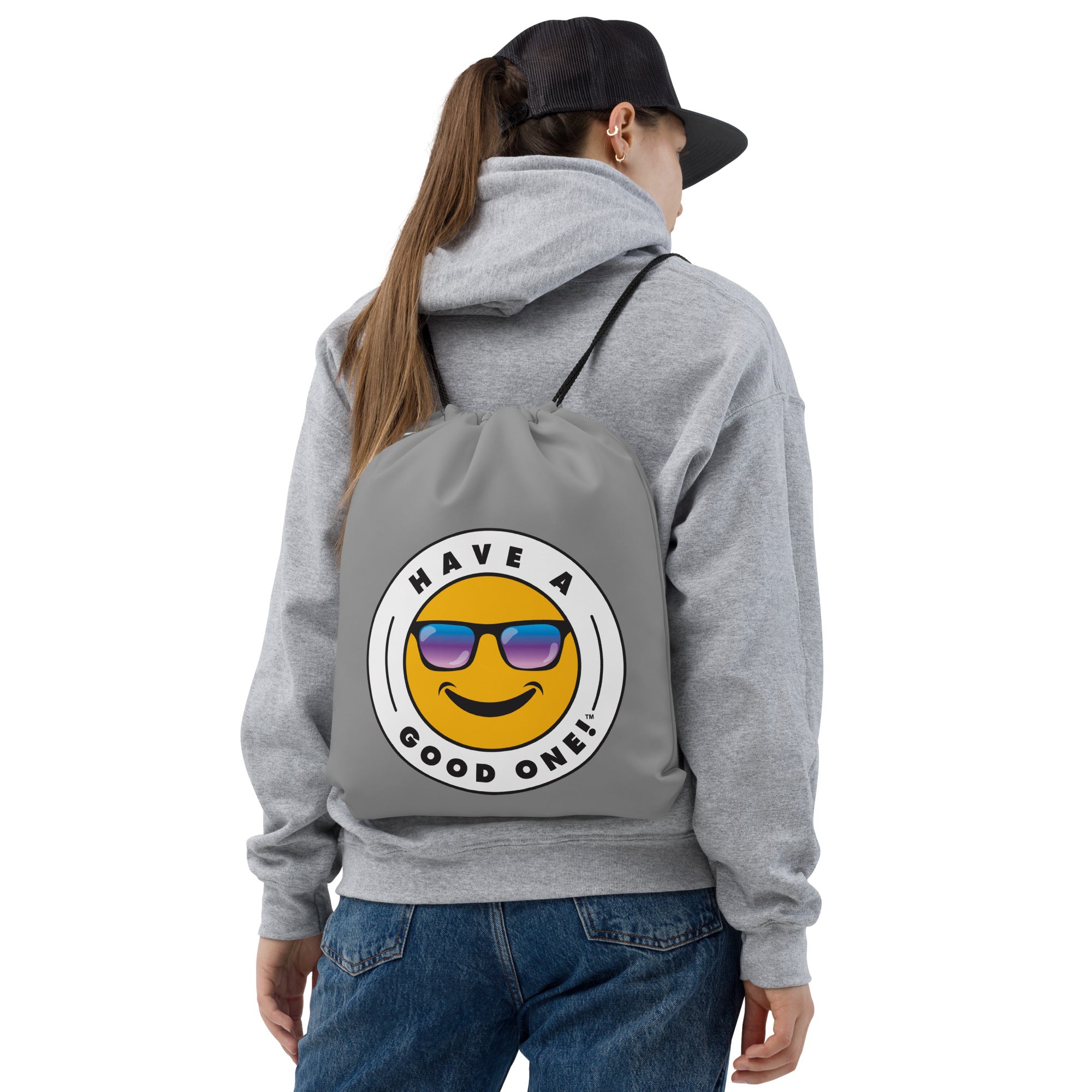 Grab N' Go Drawstring Bag - Grey Color With Blue Purple Have A Good One! Logo
