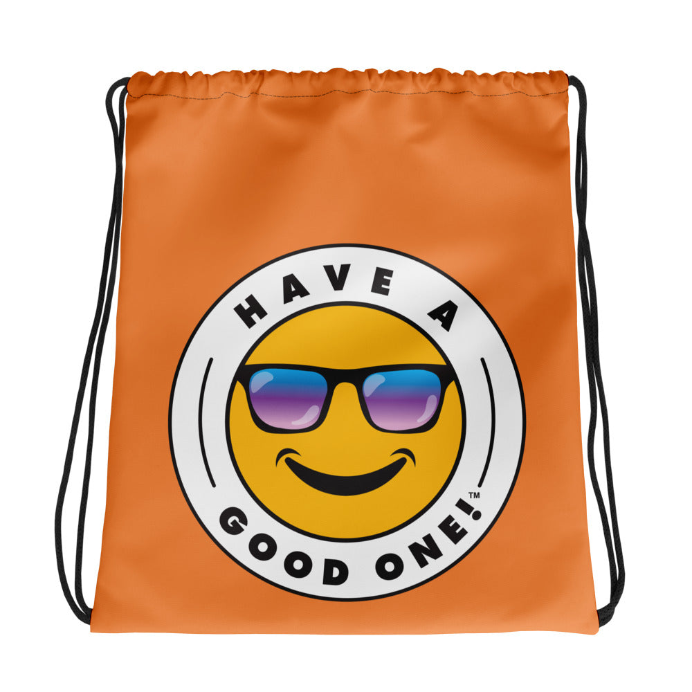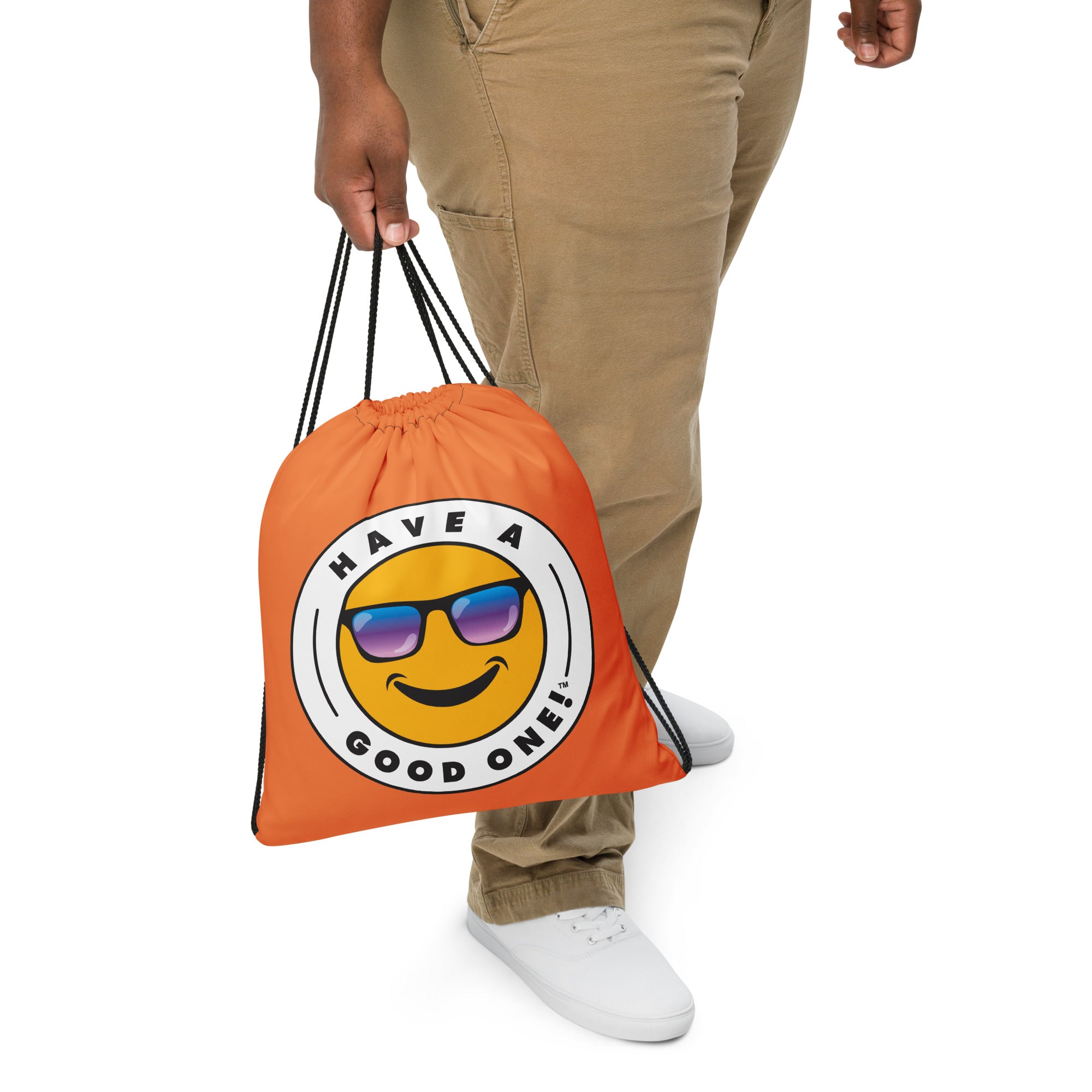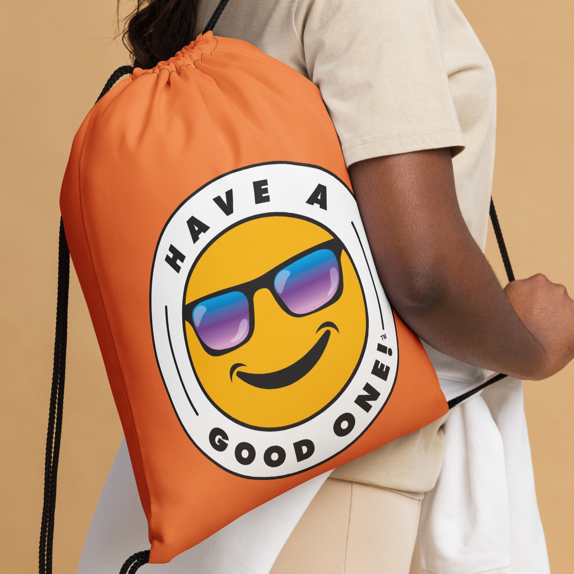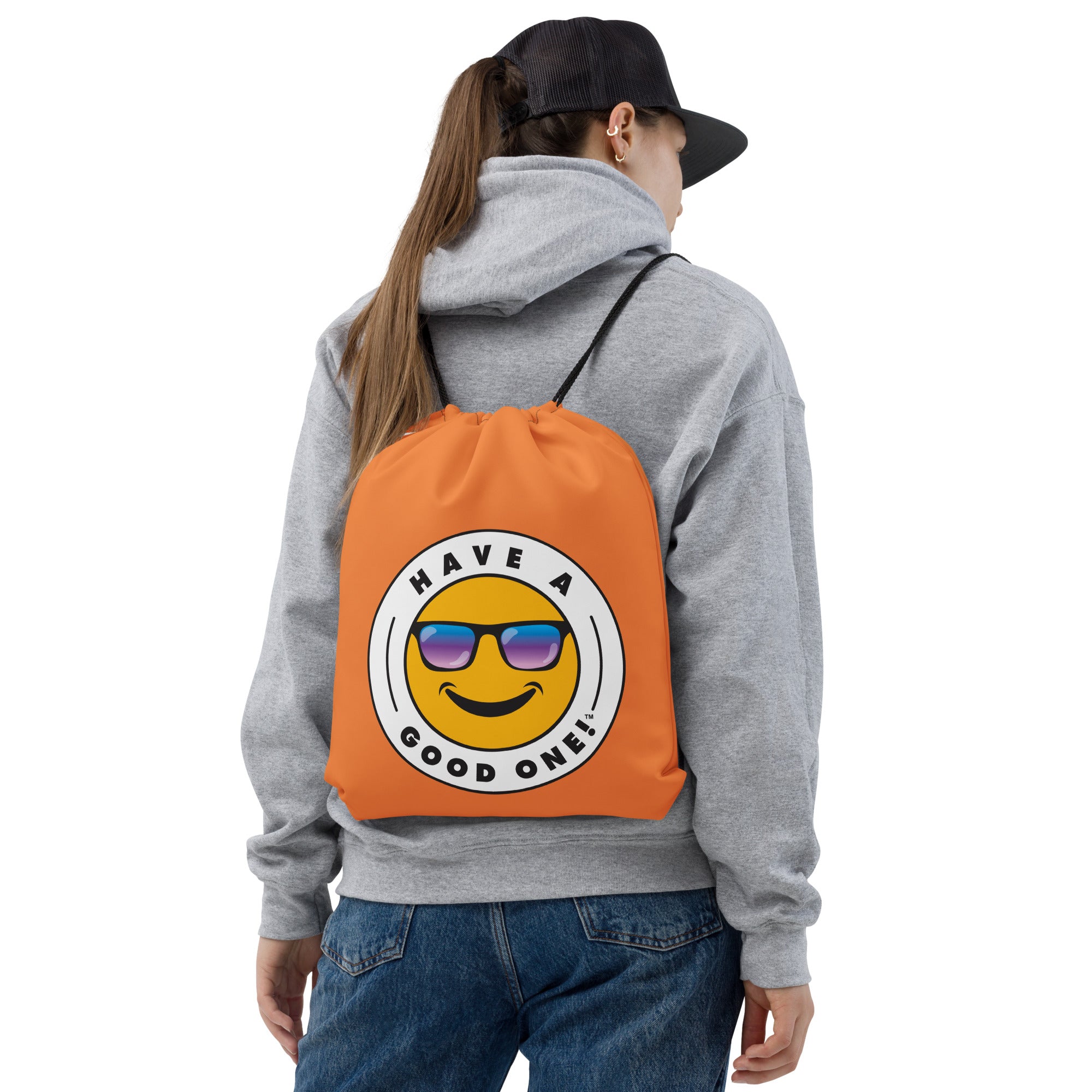 Grab N' Go Drawstring Bag - Orange Color With Blue Purple Have A Good One! Logo