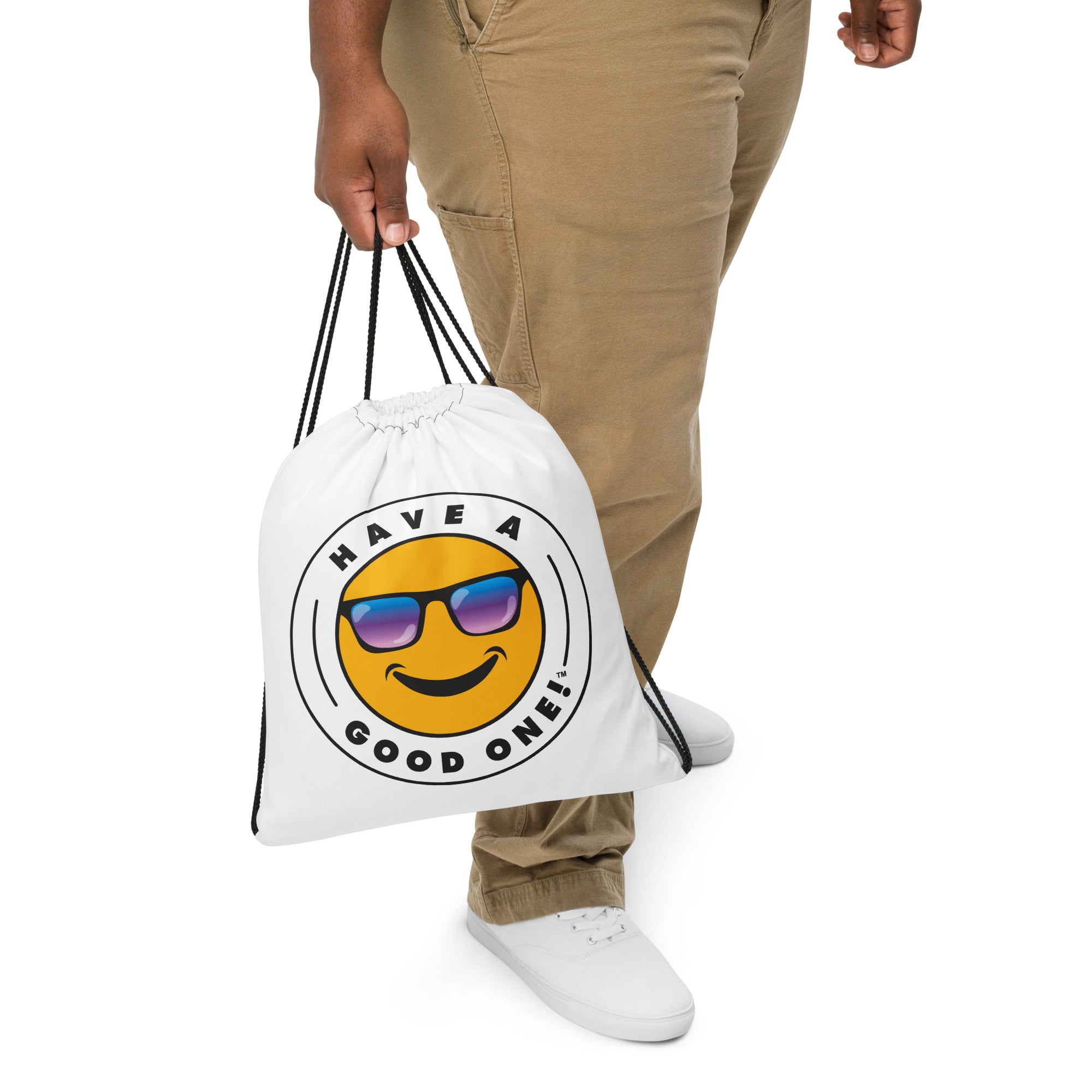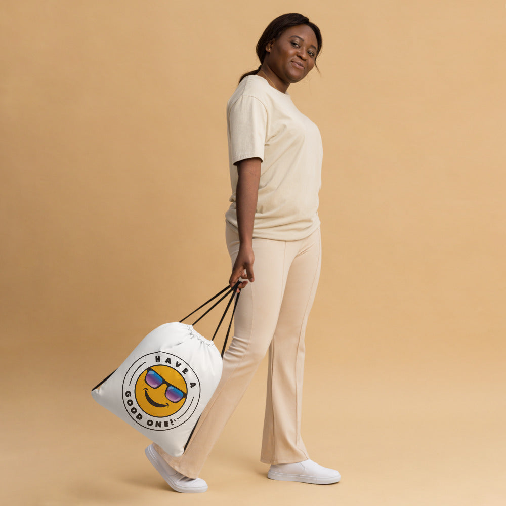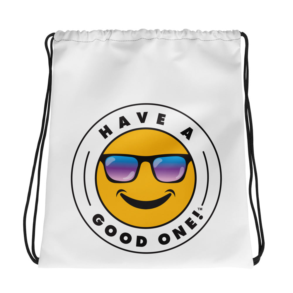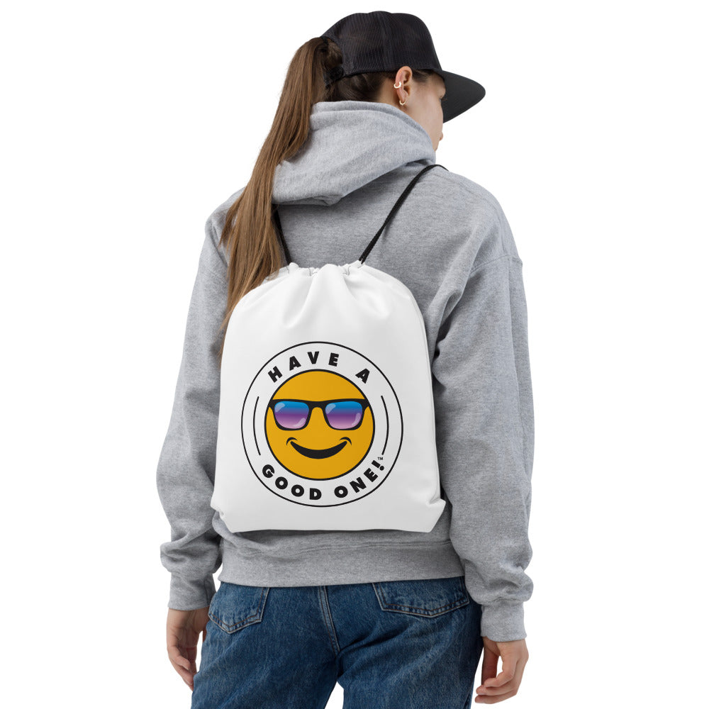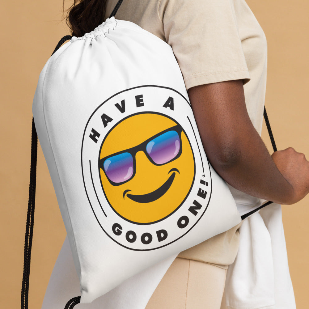 Grab N' Go Drawstring Bag - White Color With Blue Purple Have A Good One! Logo