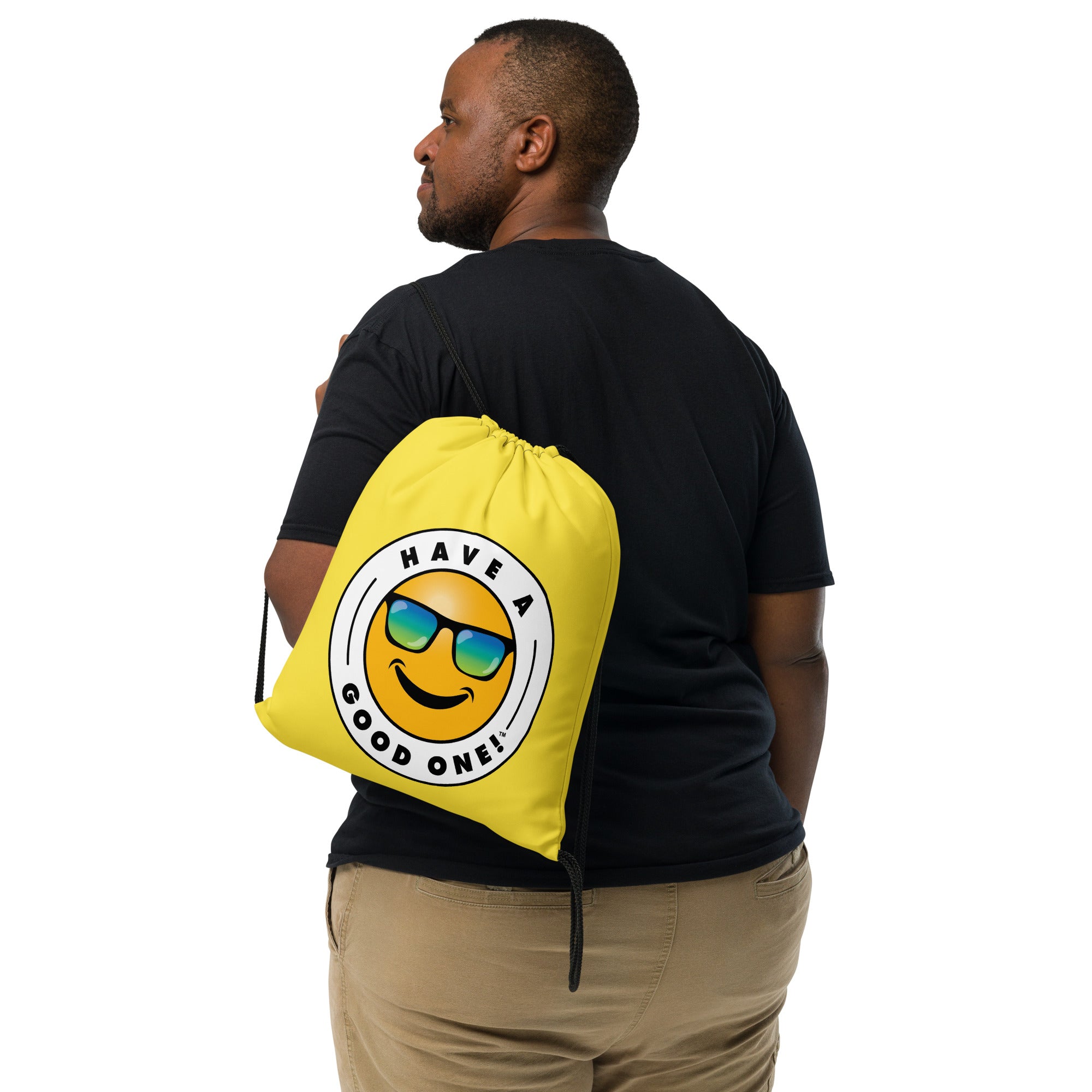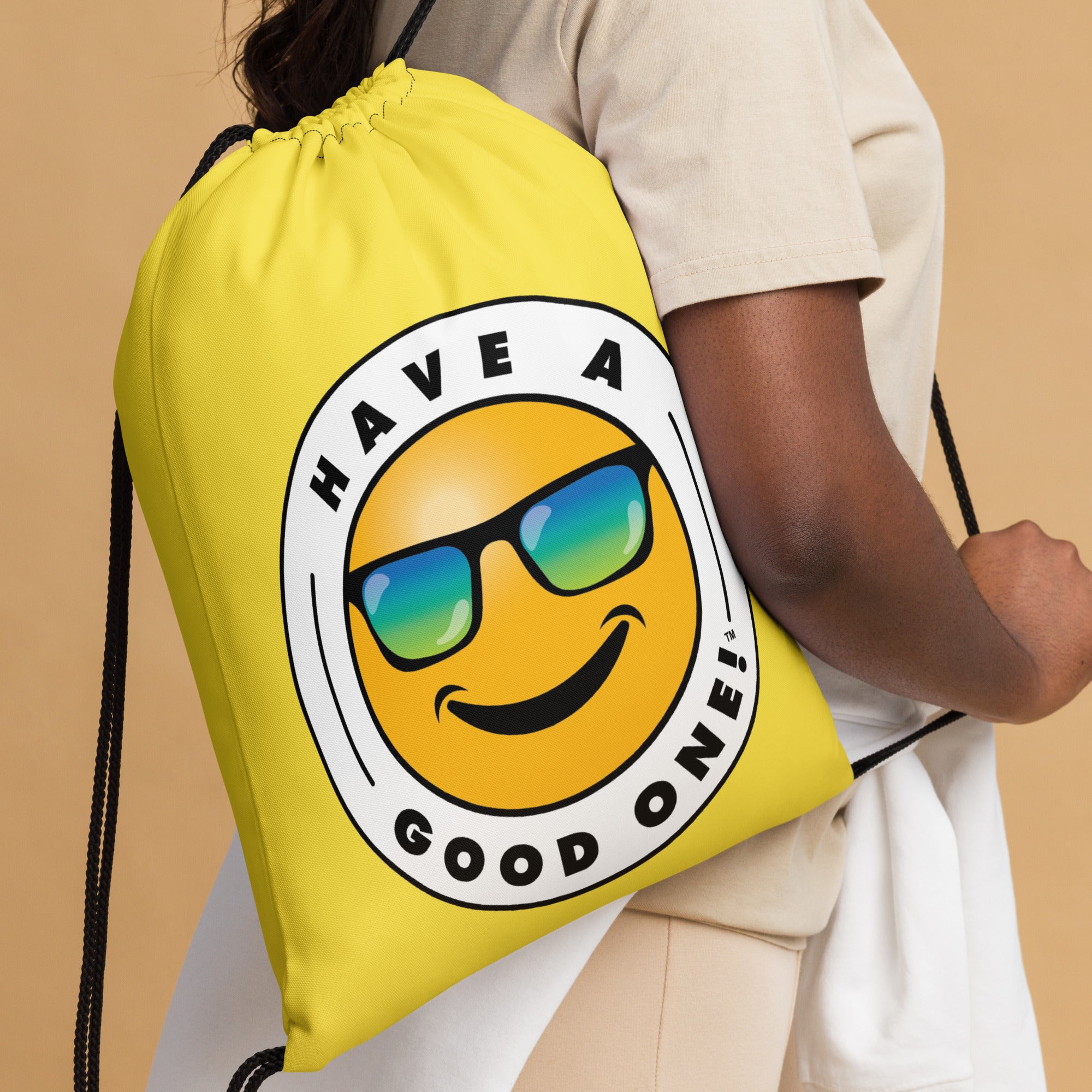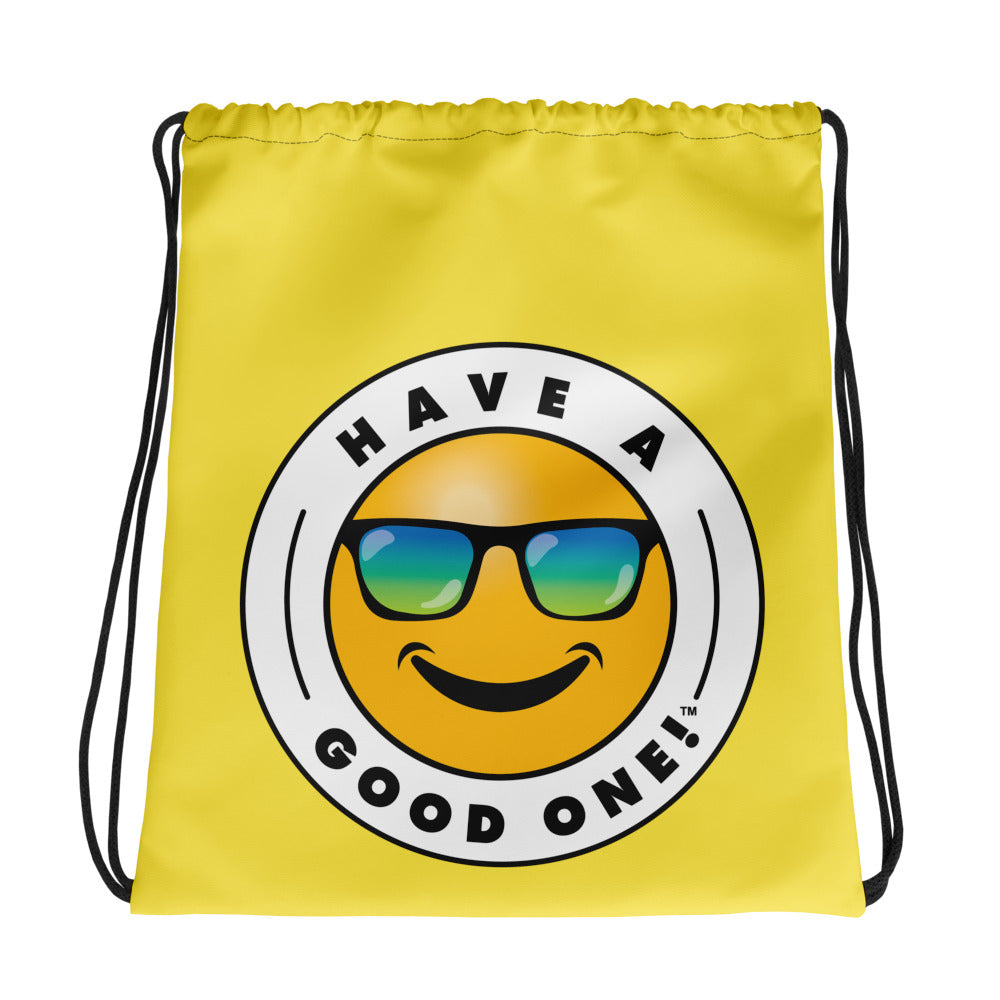 Grab N' Go Drawstring Bag - Yellow Color With Blue Purple Have A Good One! Logo