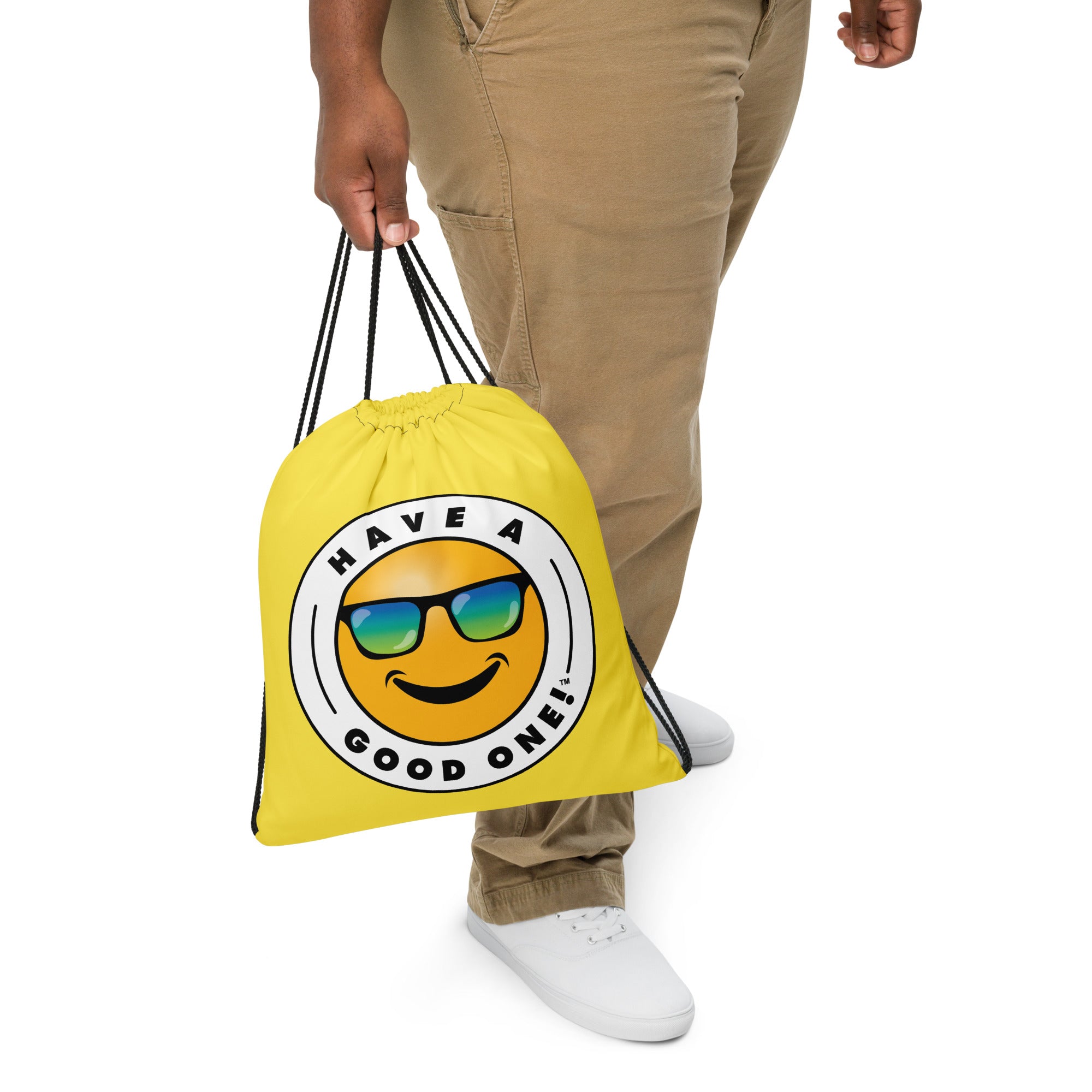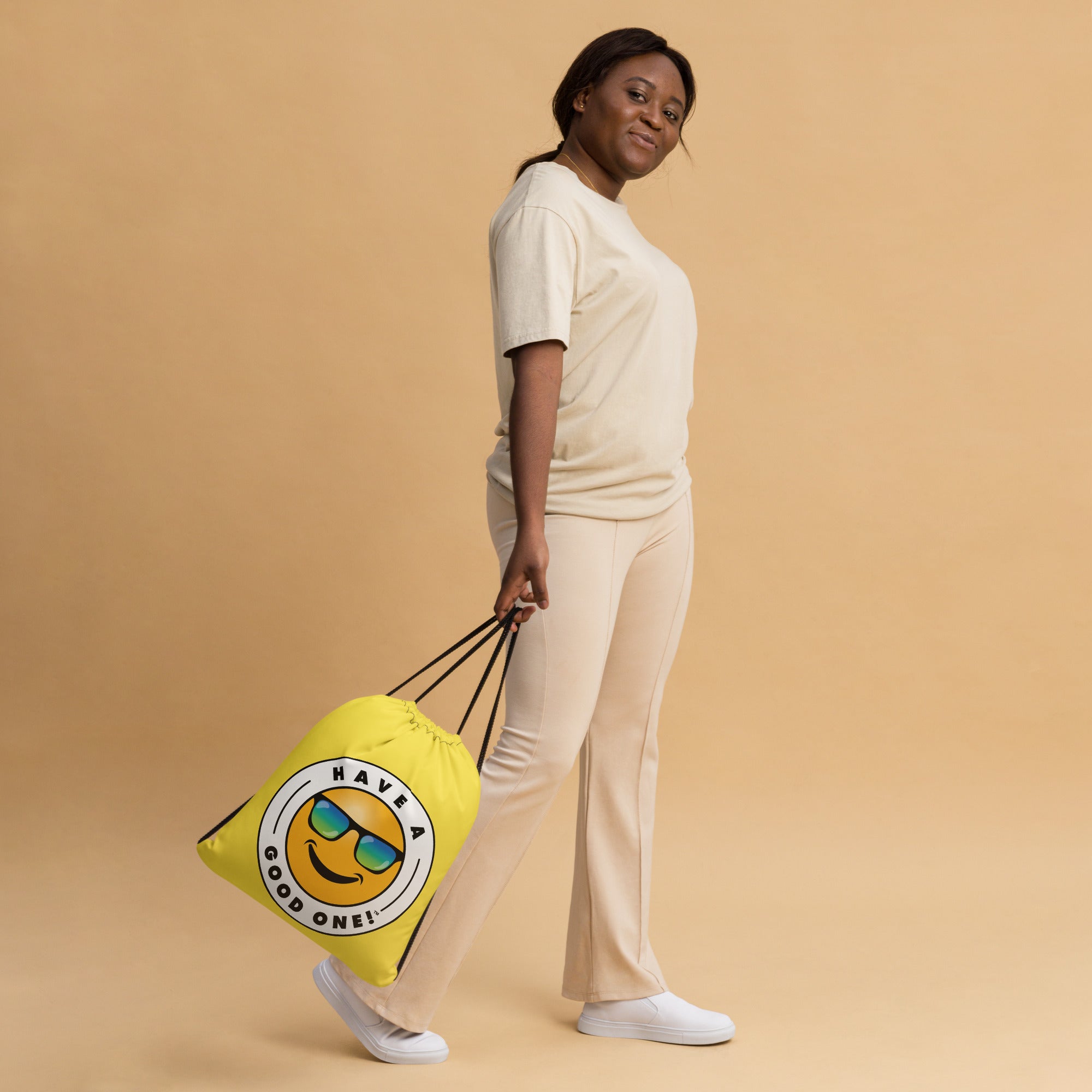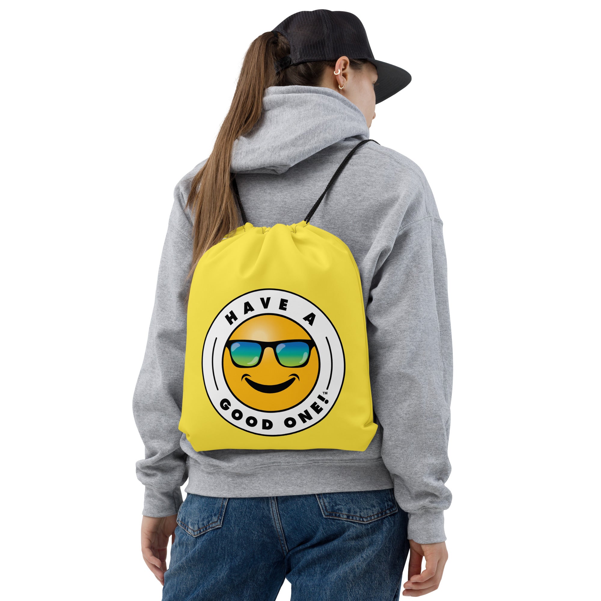 Grab N' Go Drawstring Bag - Yellow Color With Blue Purple Have A Good One! Logo