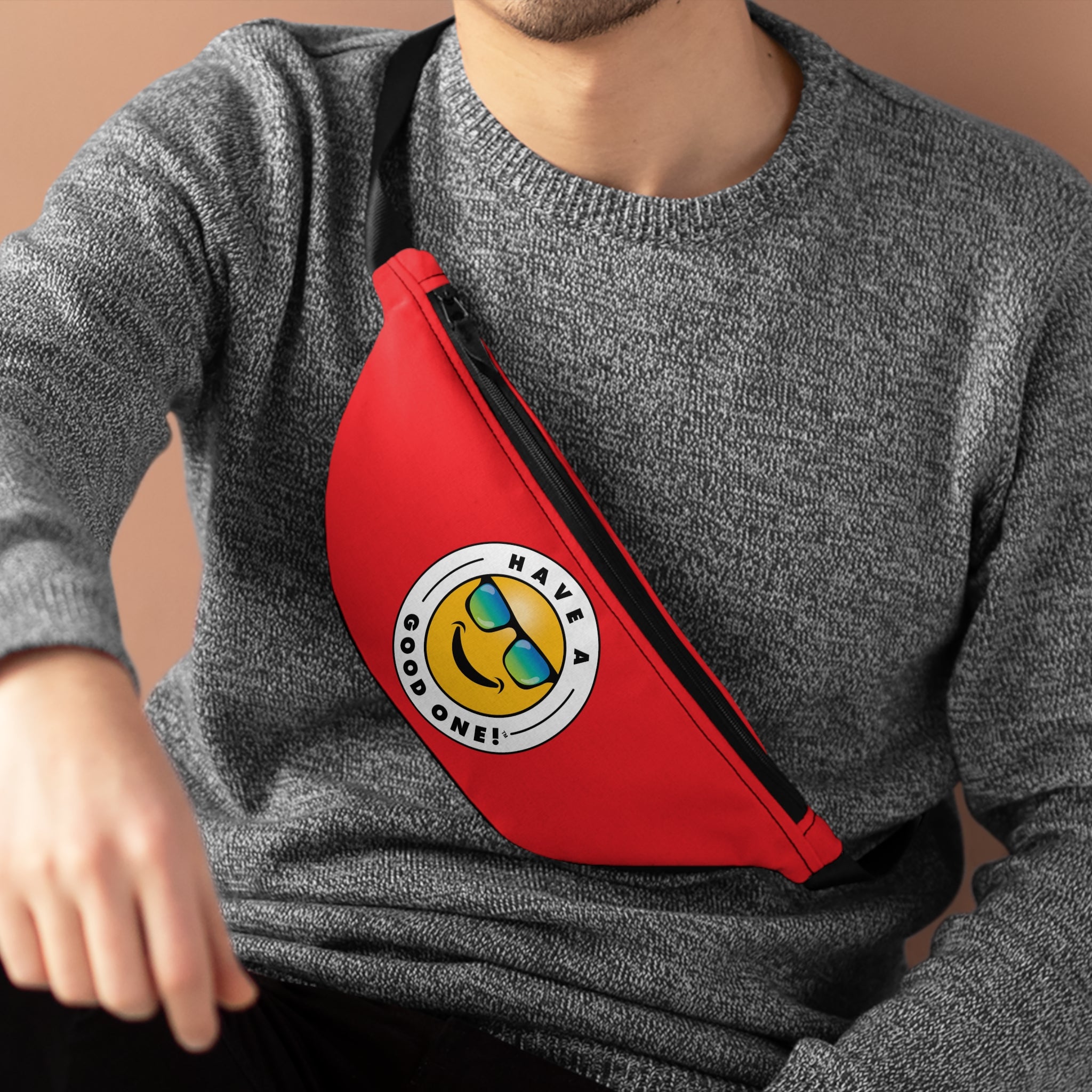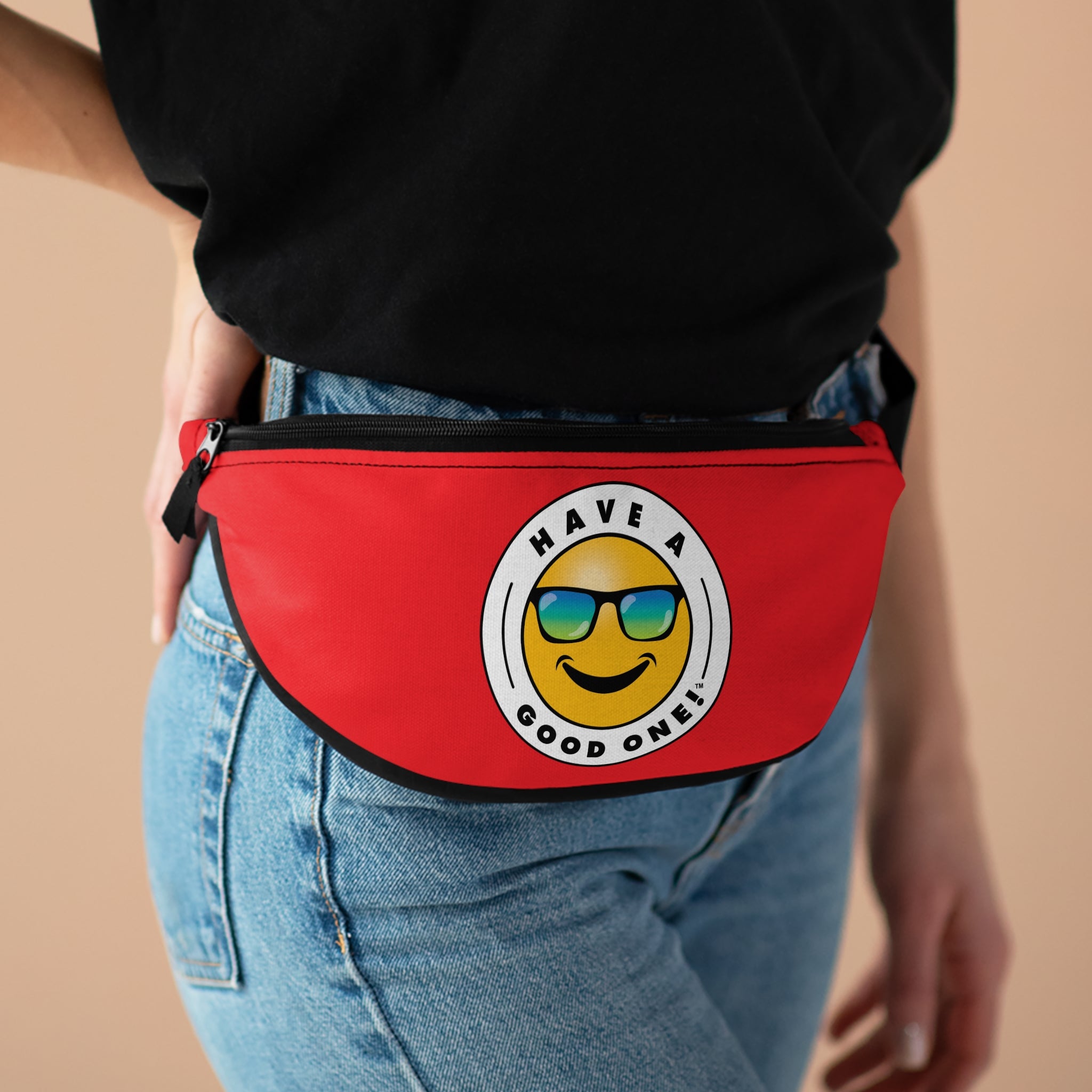 Grab N' Go Fanny Pack - Red Color With Blue Green Have A Good One! Logo