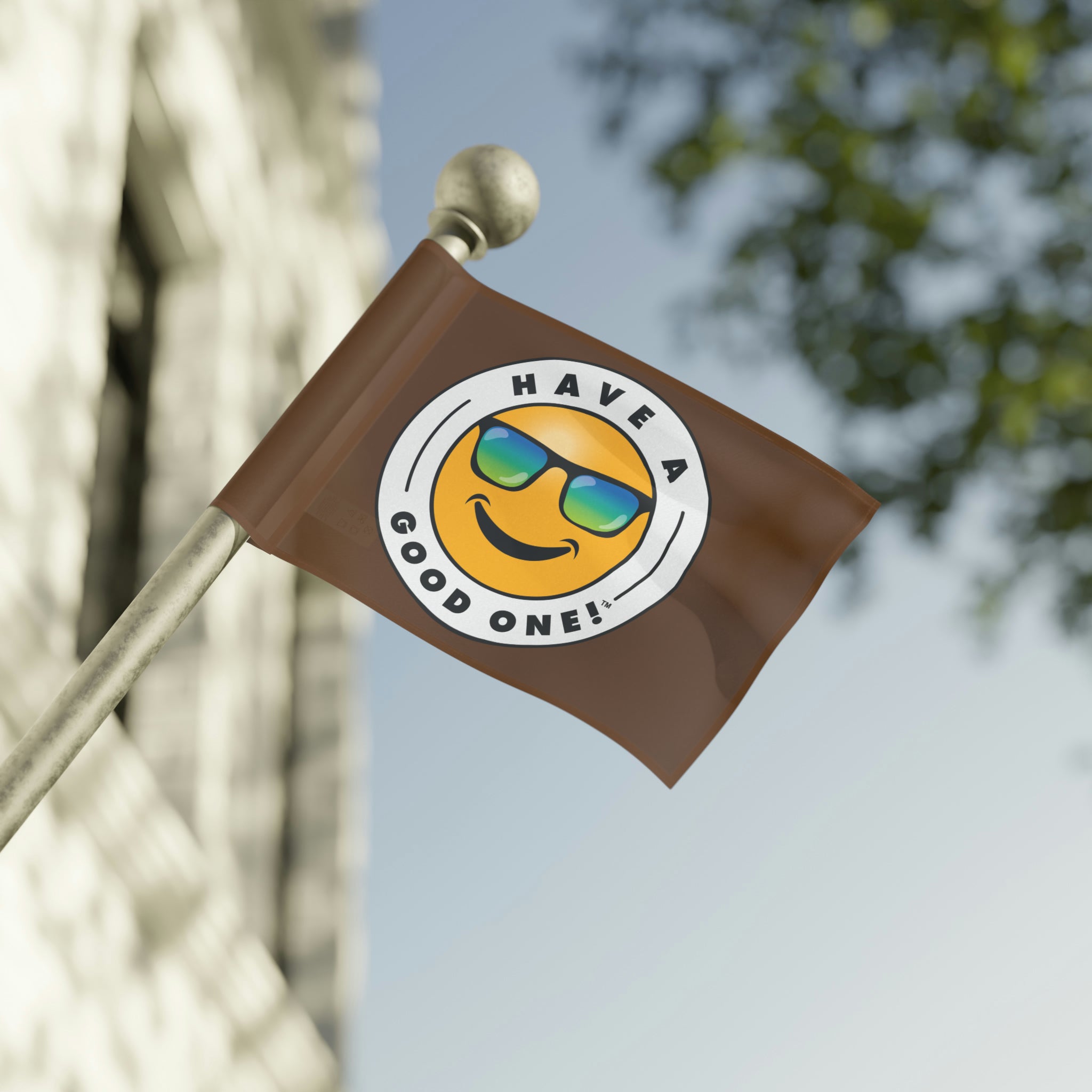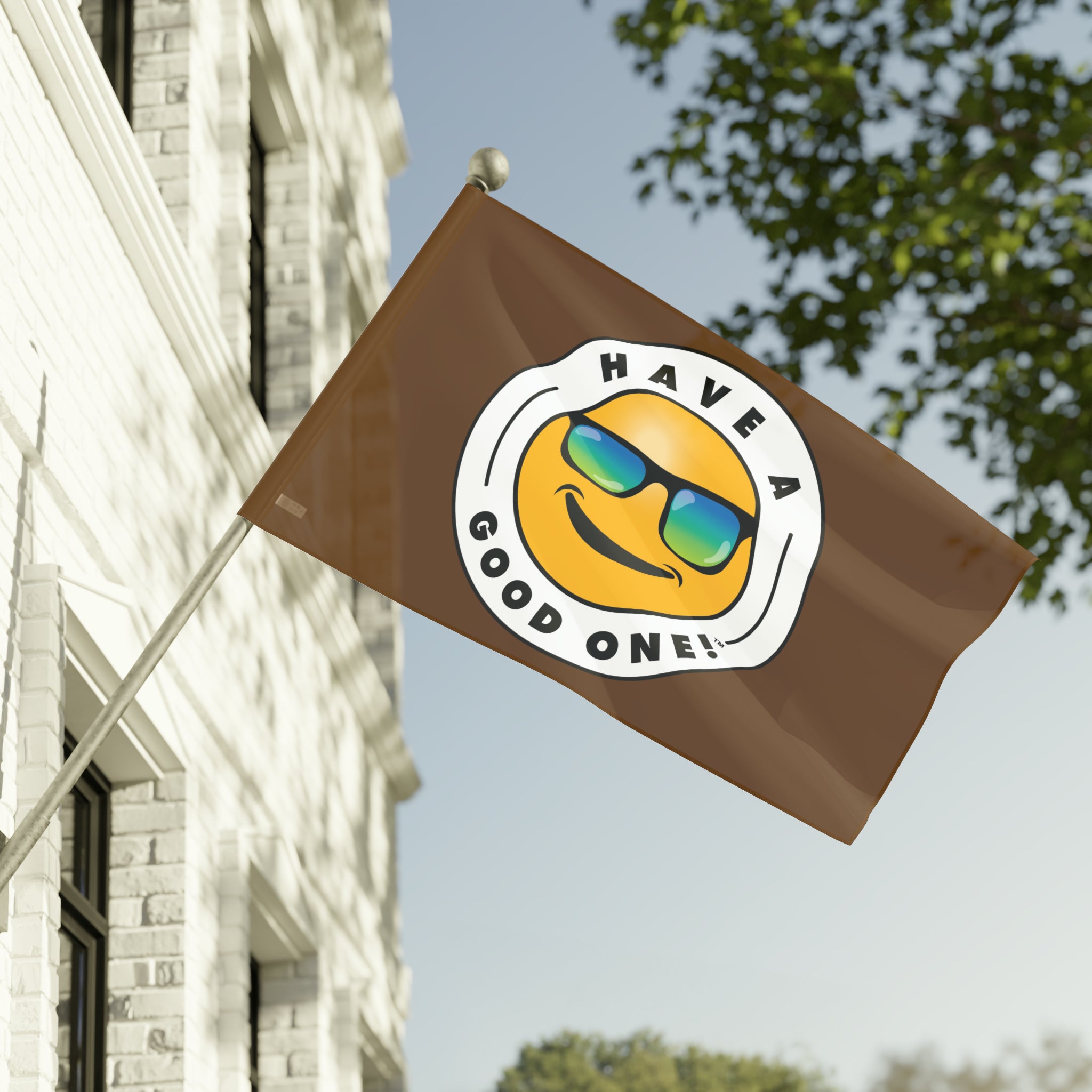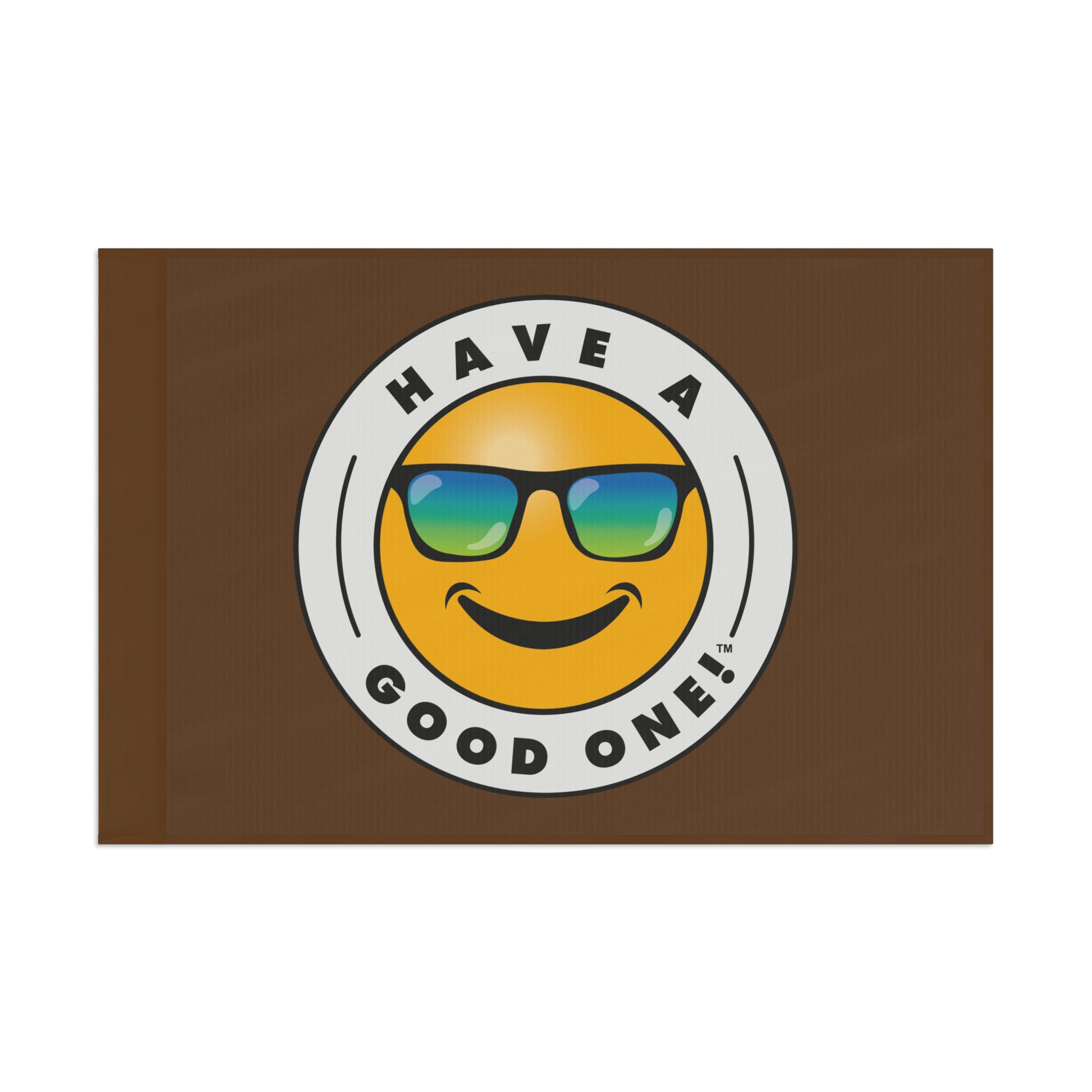 Festive and Fun Have A Good One! Flag - Brown Color With Blue and Green Logo