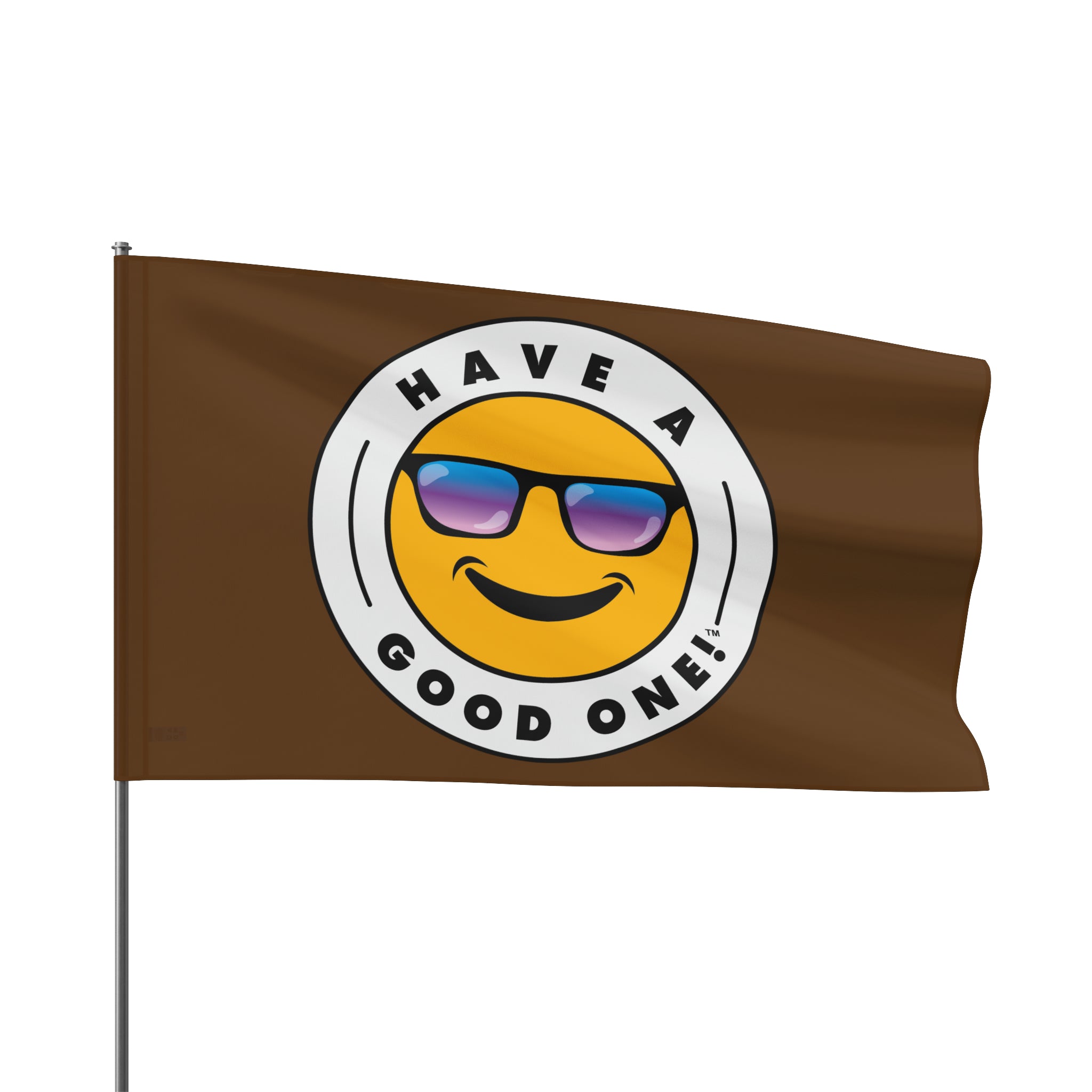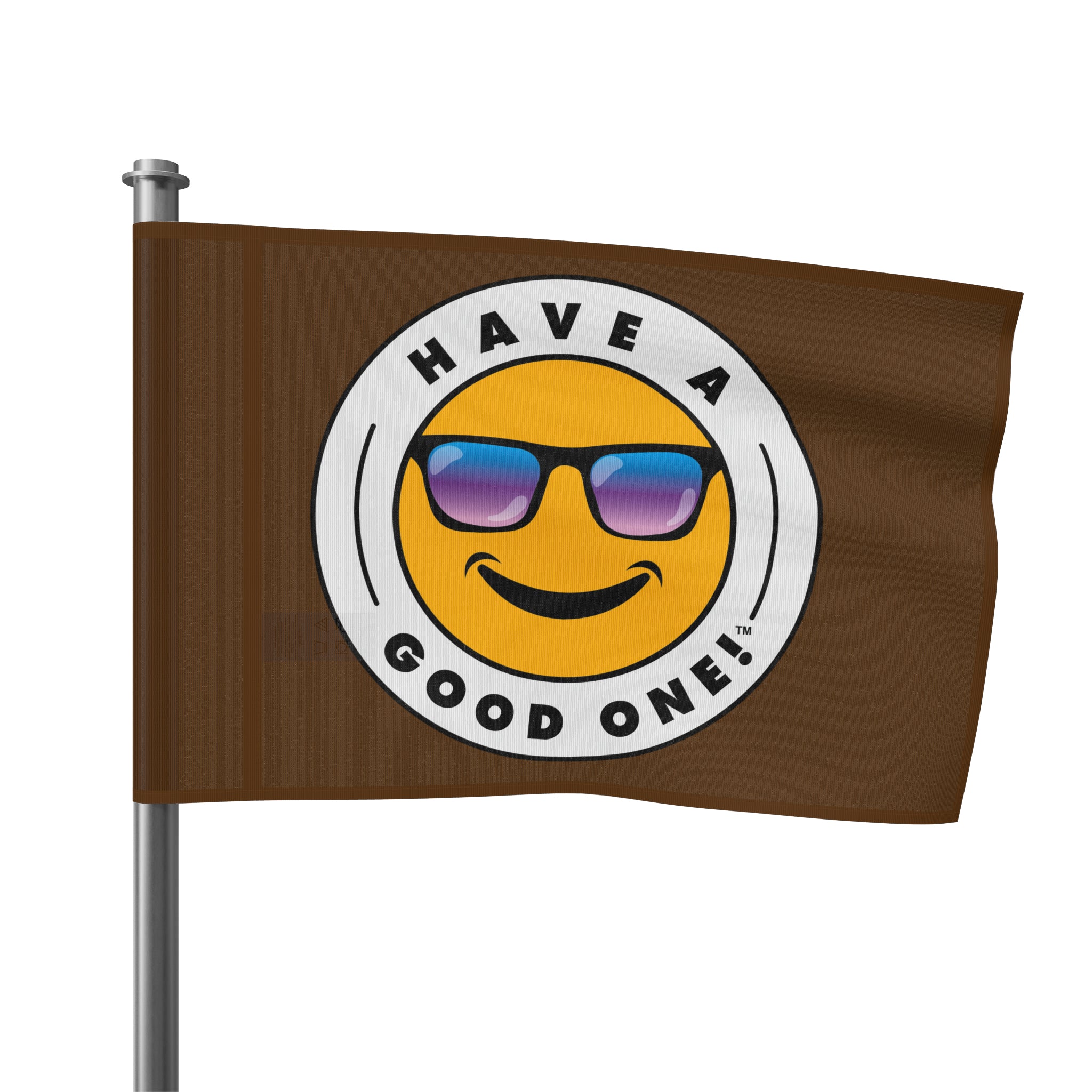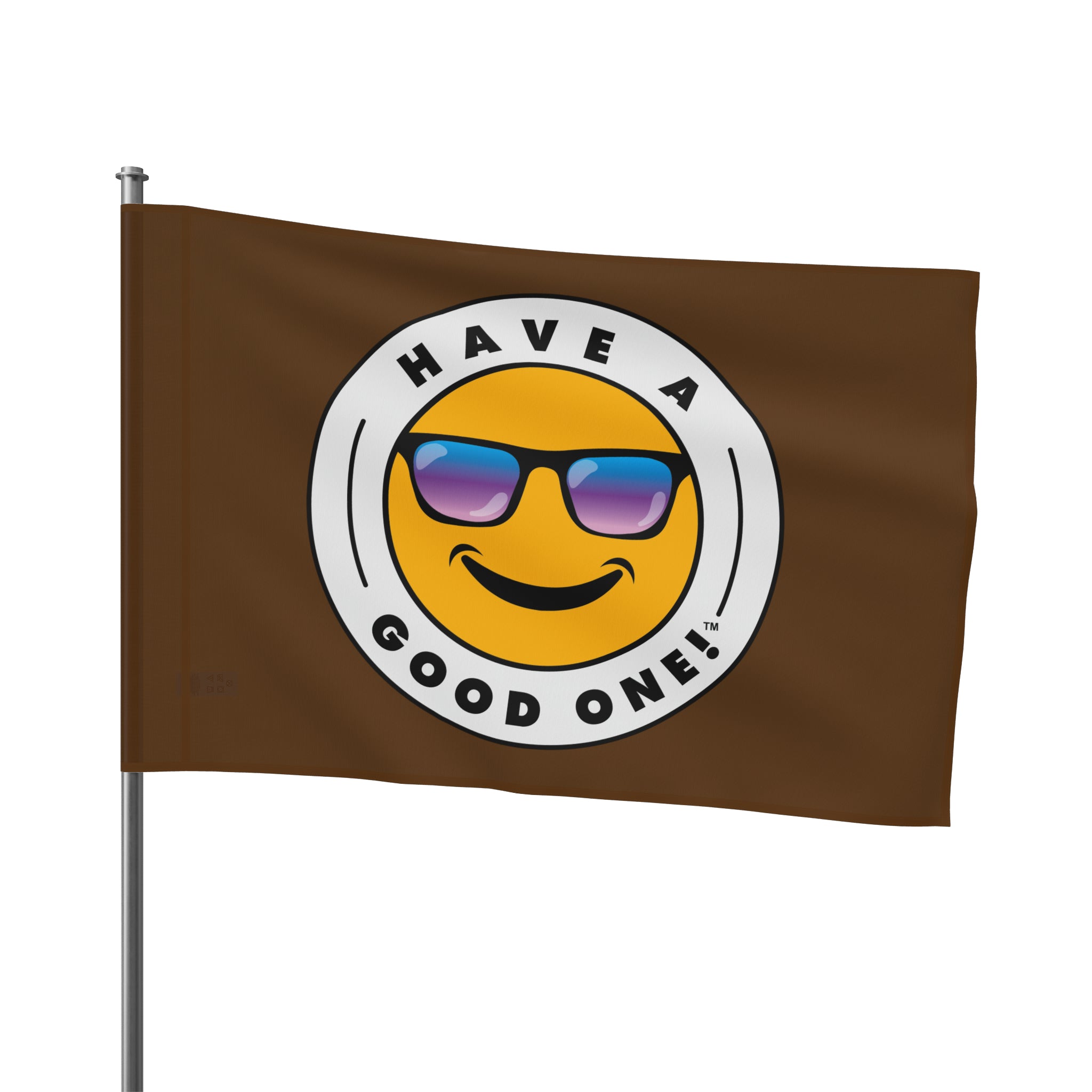 Festive and Fun Have A Good One! Flag - Brown Color With Blue and Purple Logo