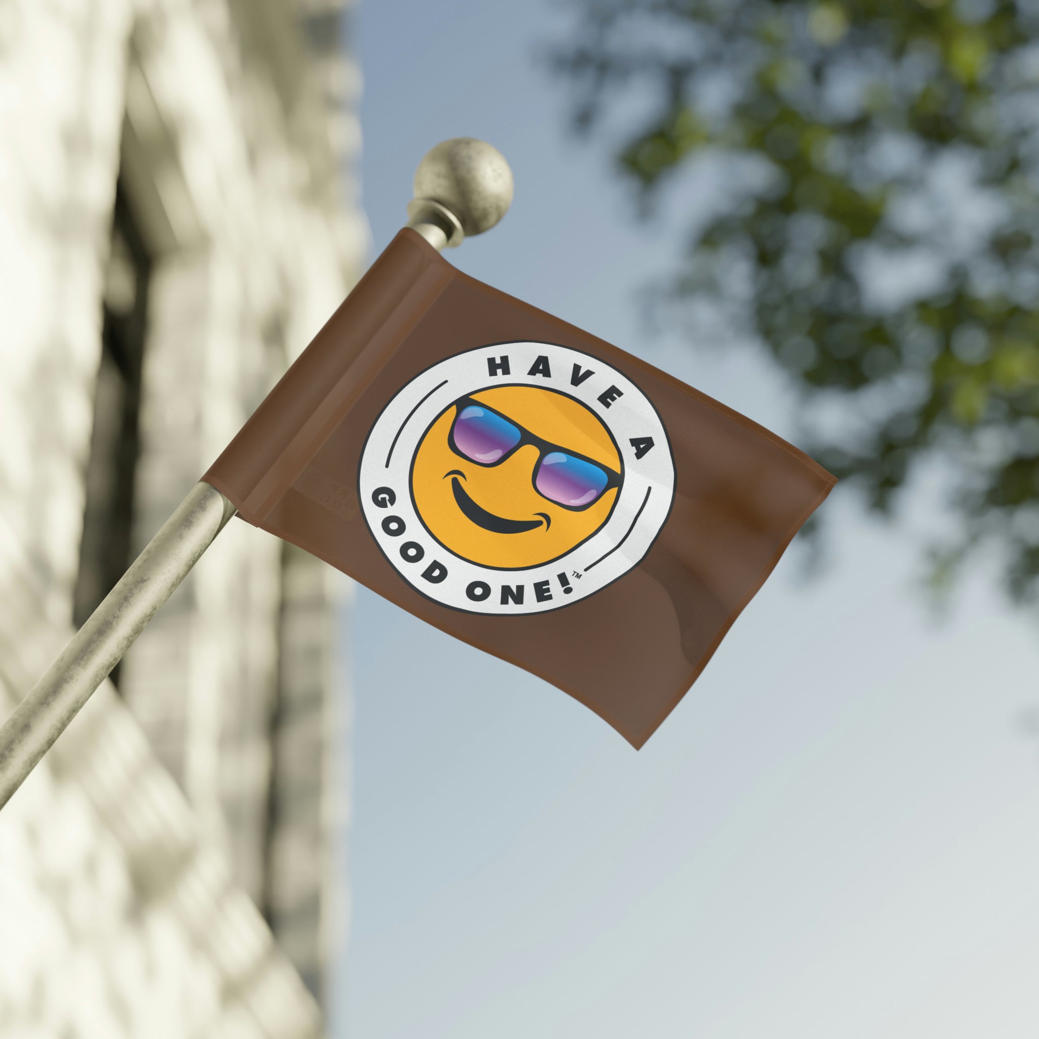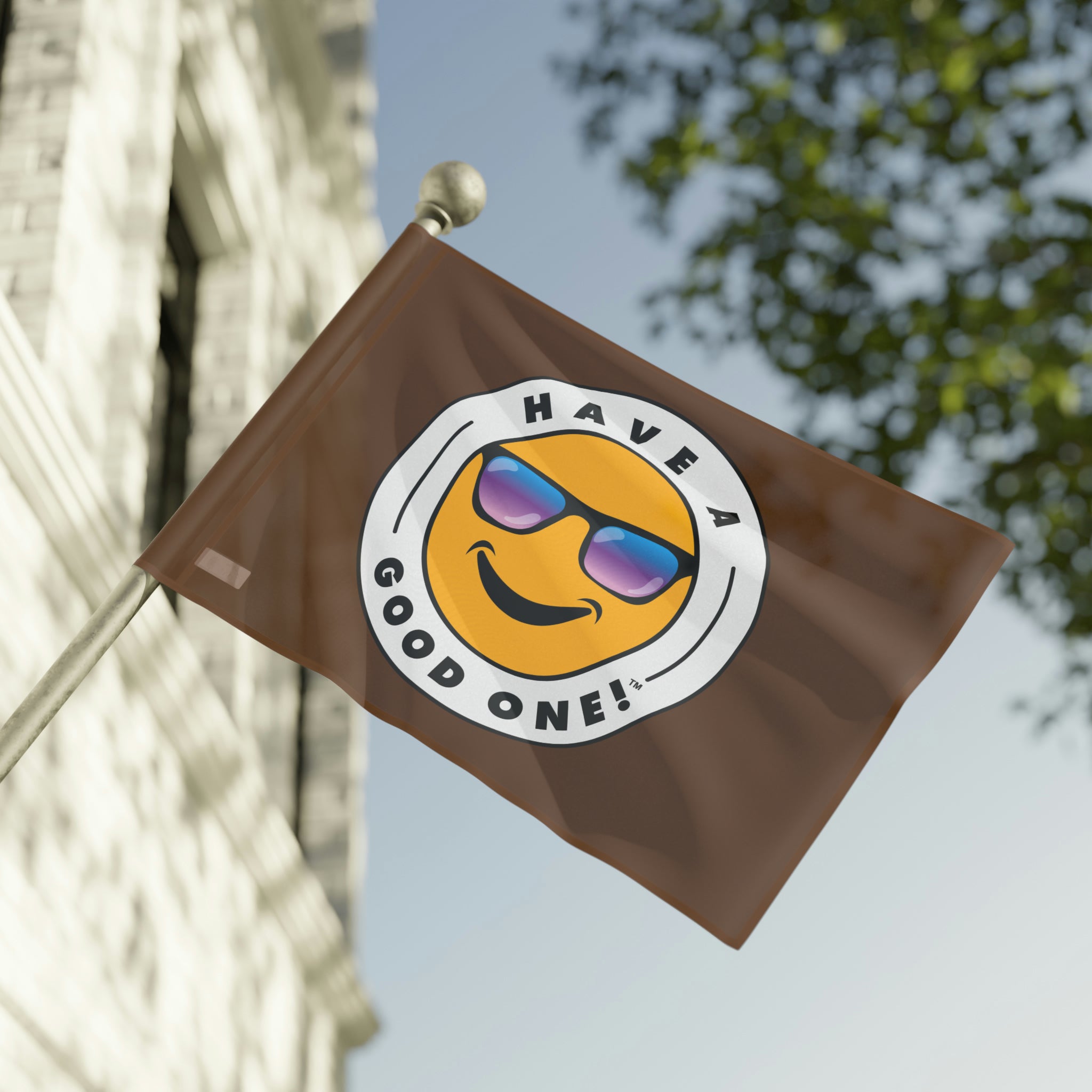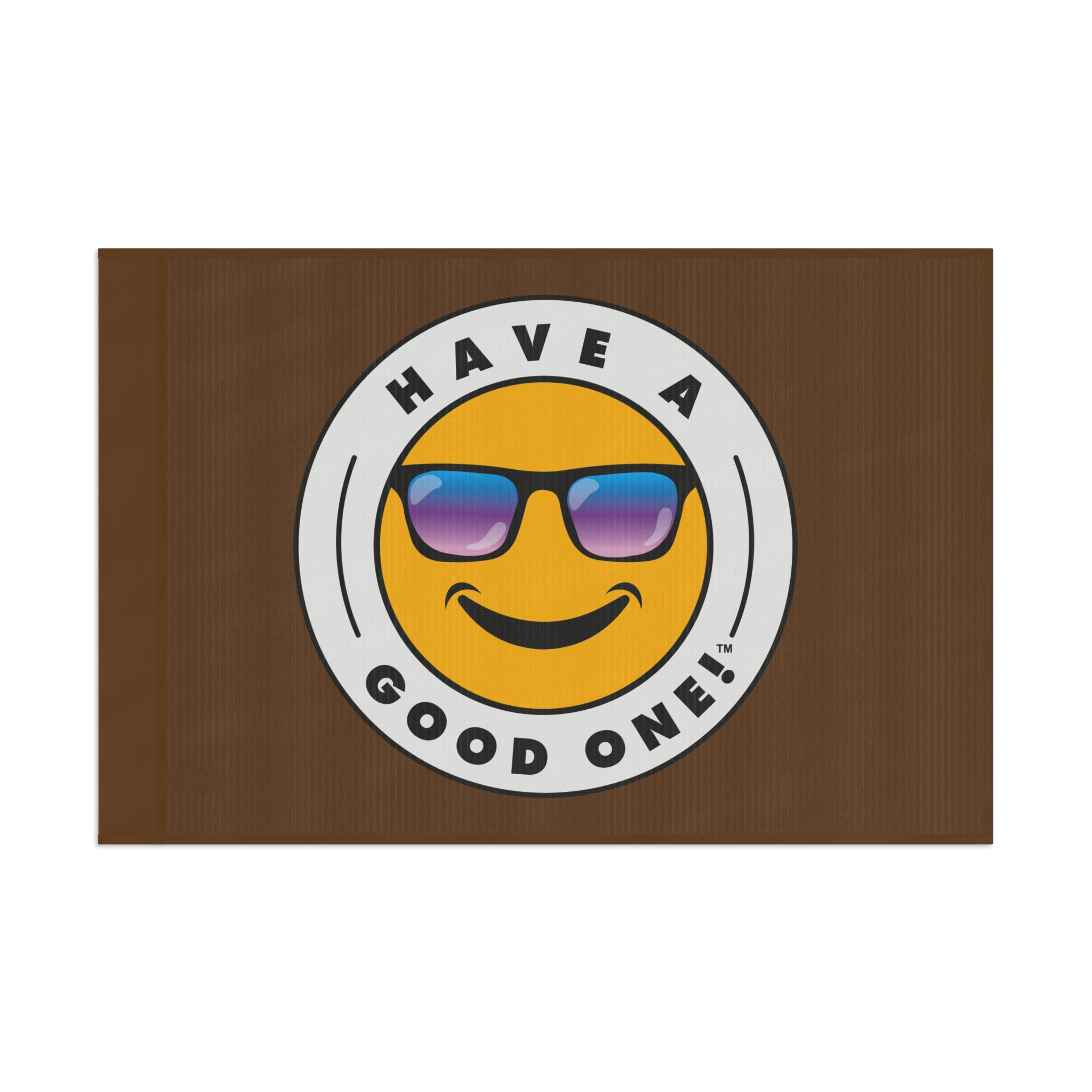 Festive and Fun Have A Good One! Flag - Brown Color With Blue and Purple Logo