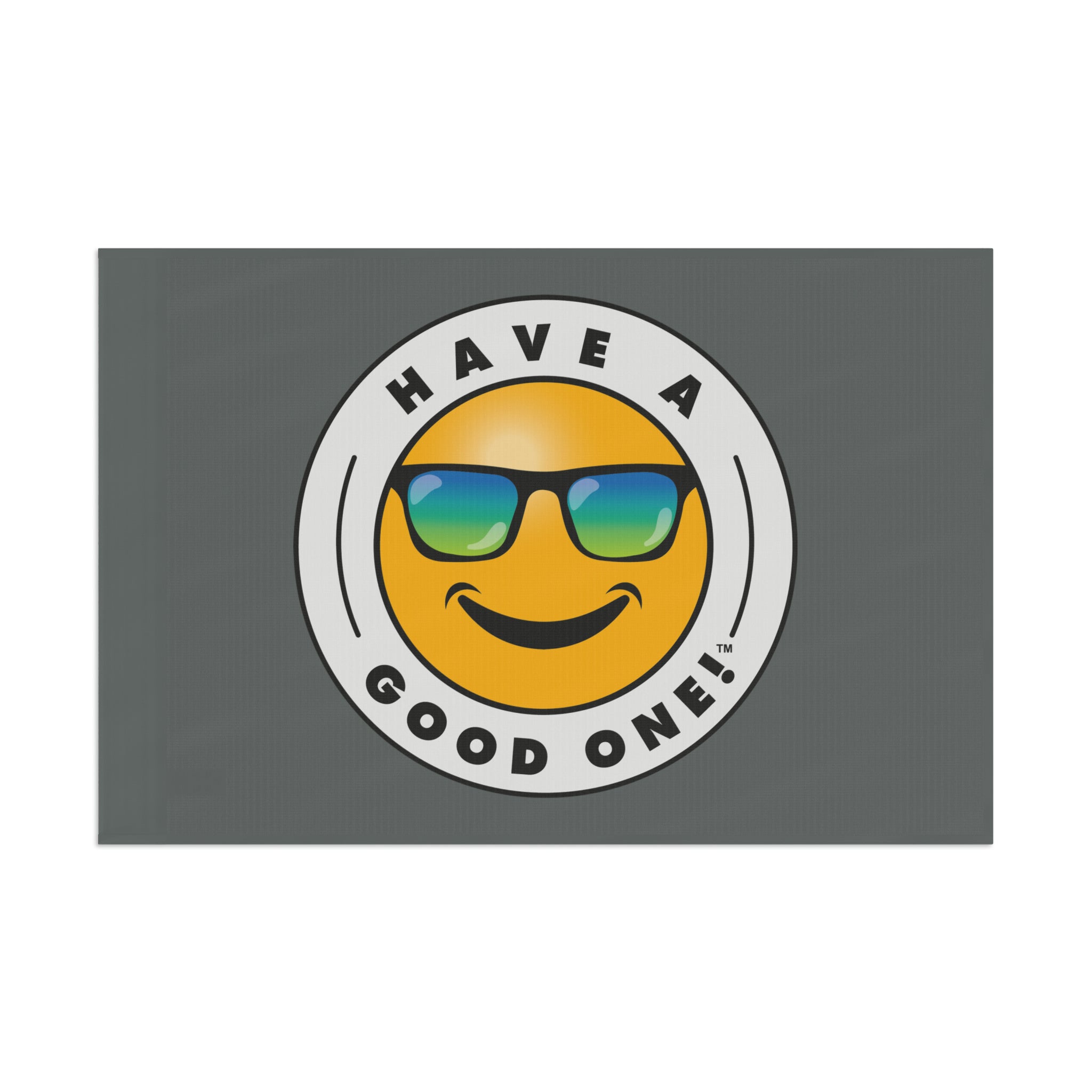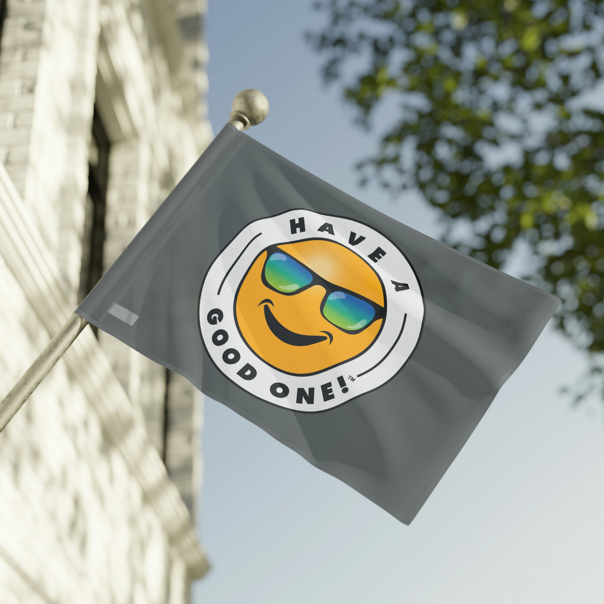 Festive and Fun Have A Good One! Flag - Dark Grey Color With Blue and Green Logo