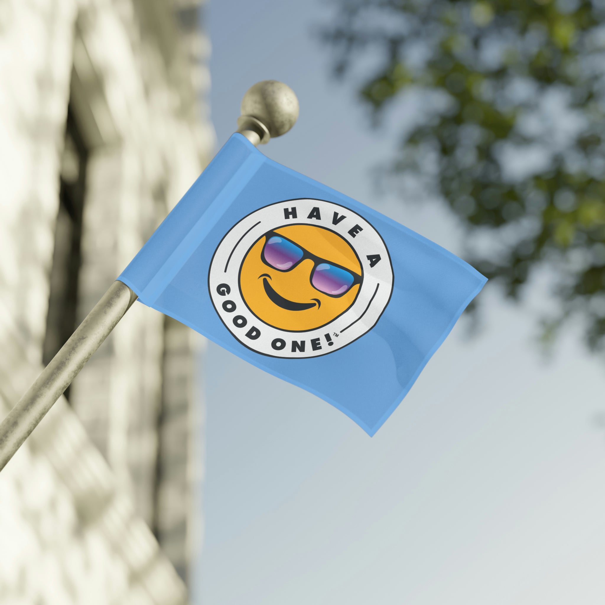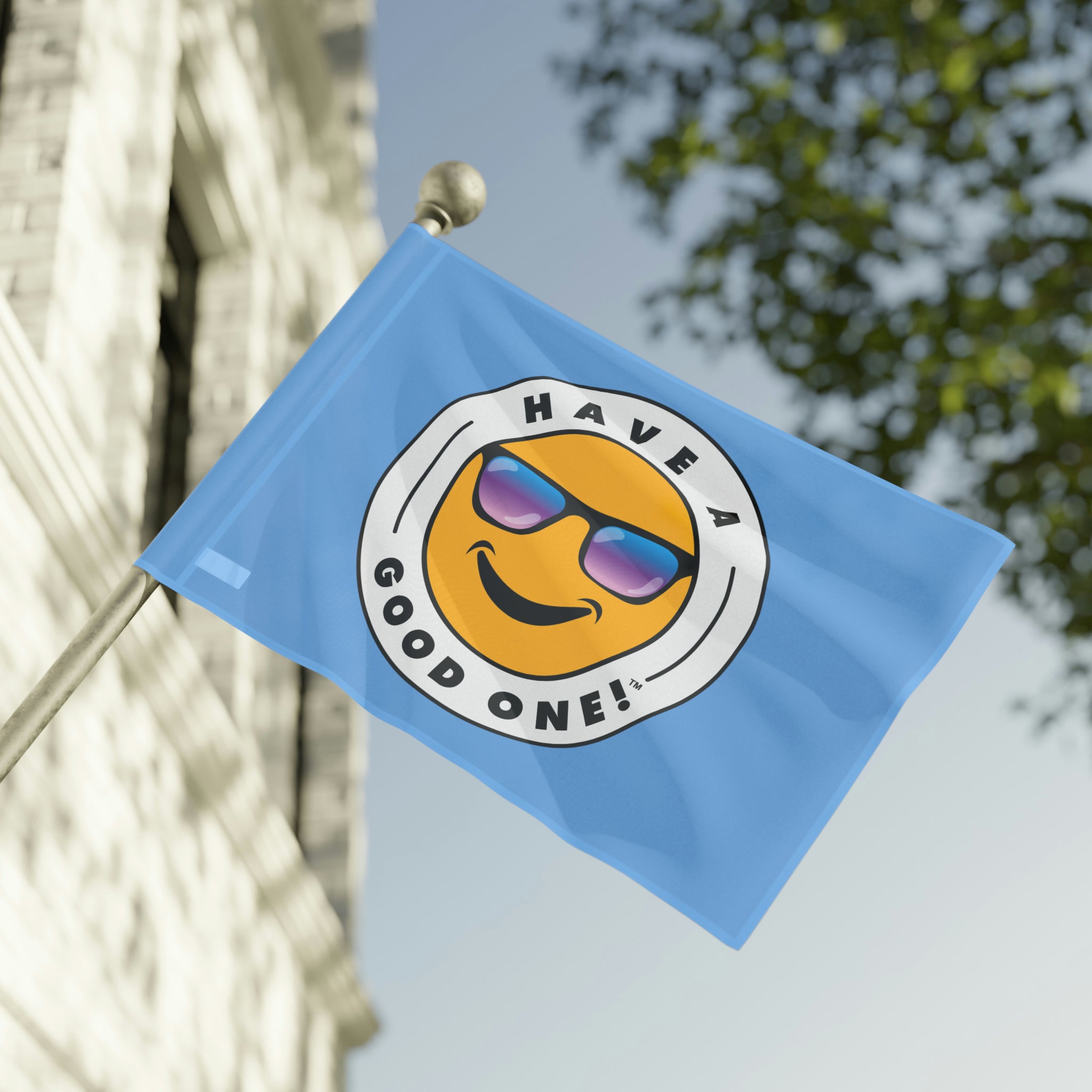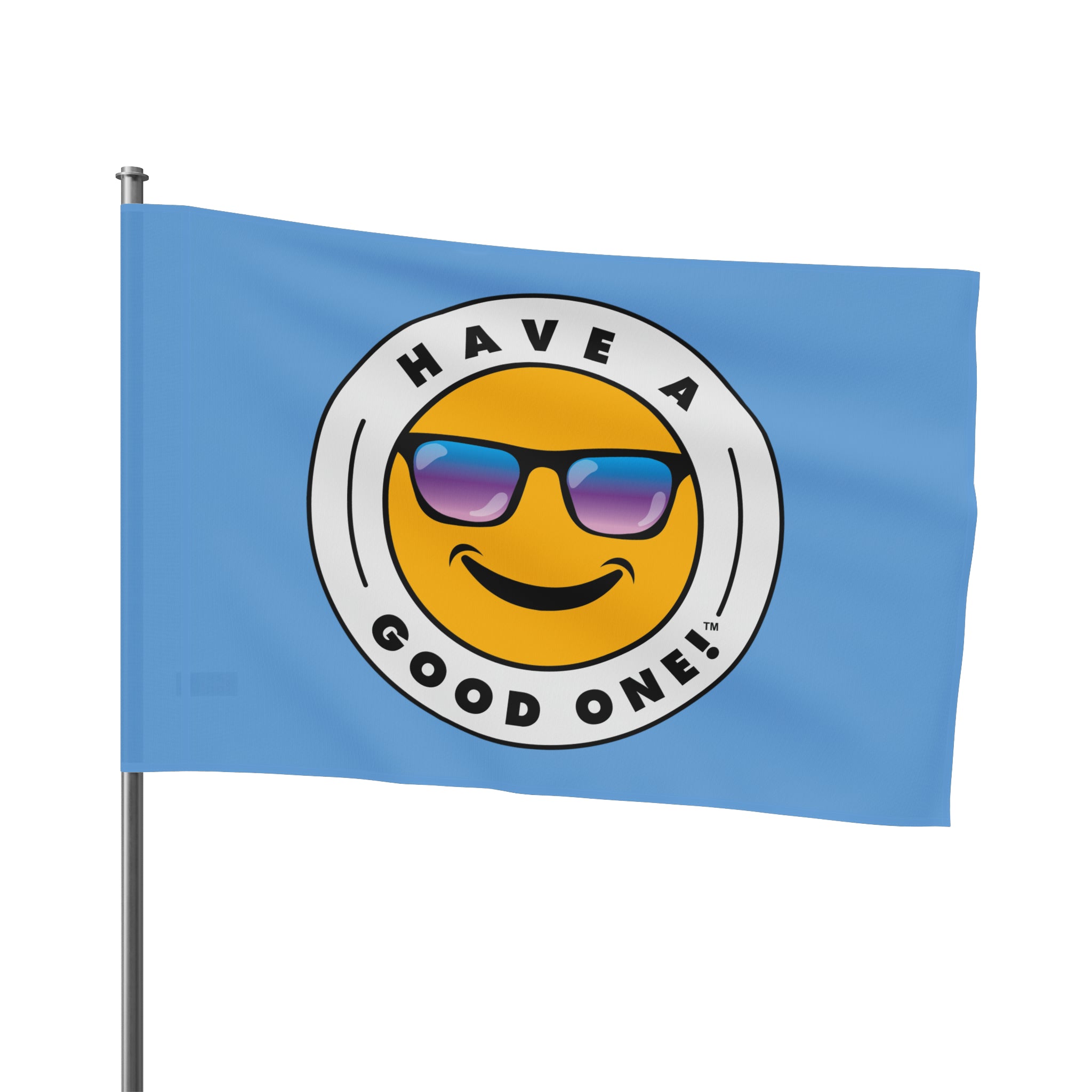 Festive and Fun Have A Good One! Flag - Light Blue Color With Blue and Purple Logo