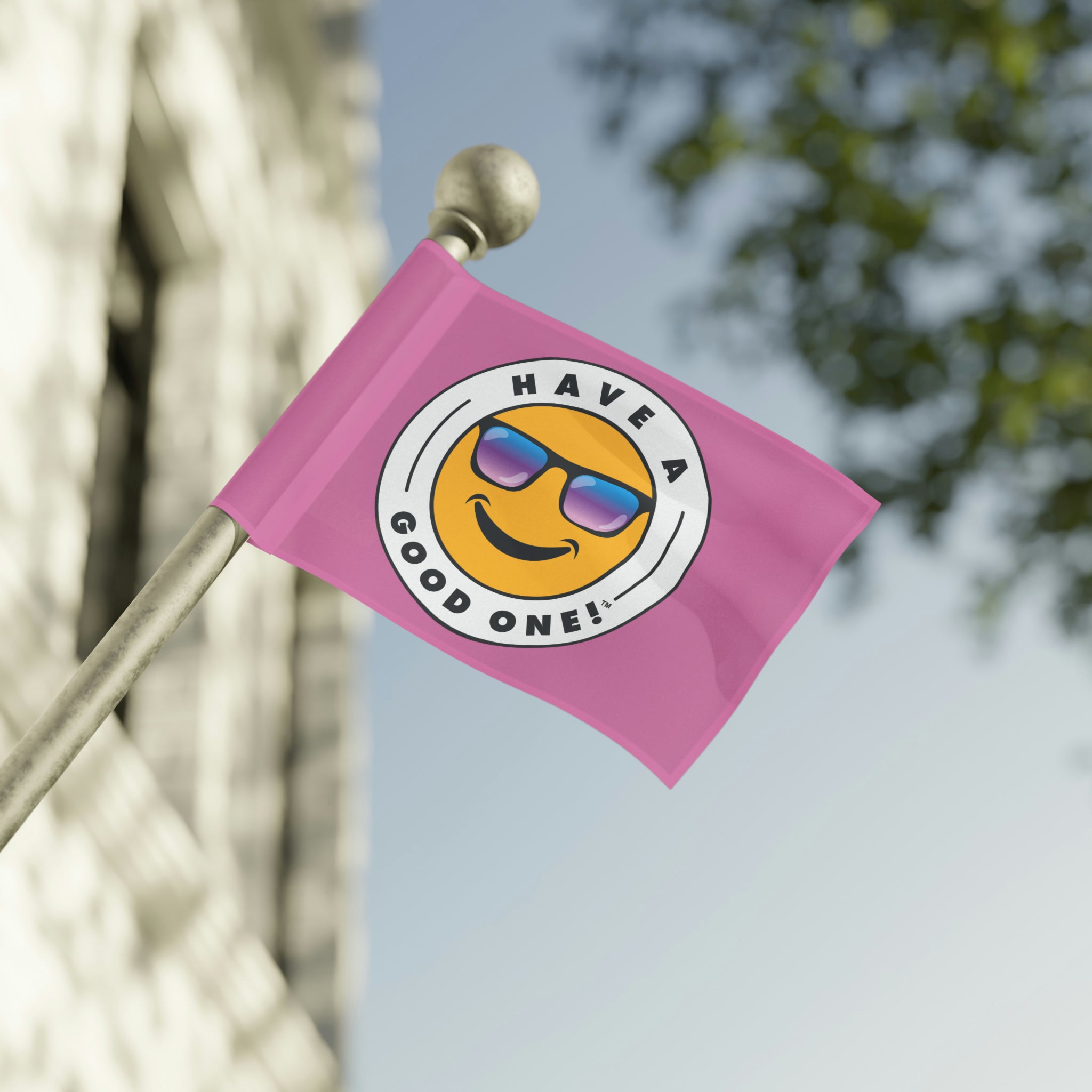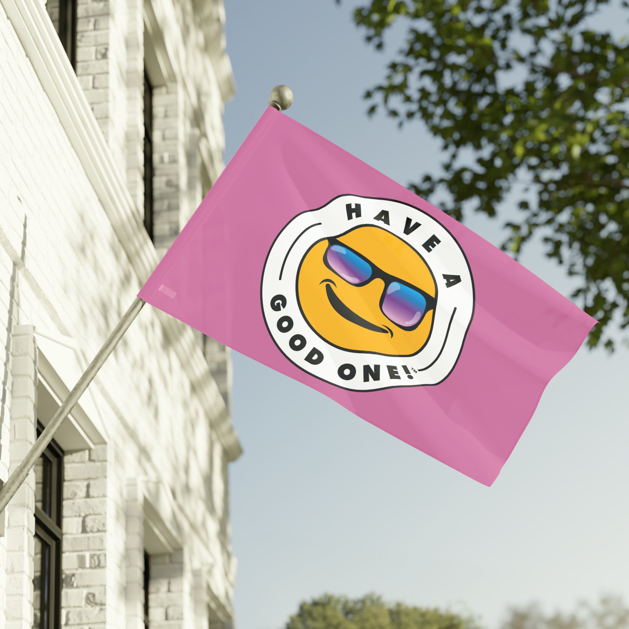 Festive and Fun Have A Good One! Flag - Light Pink Color With Blue and Purple Logo