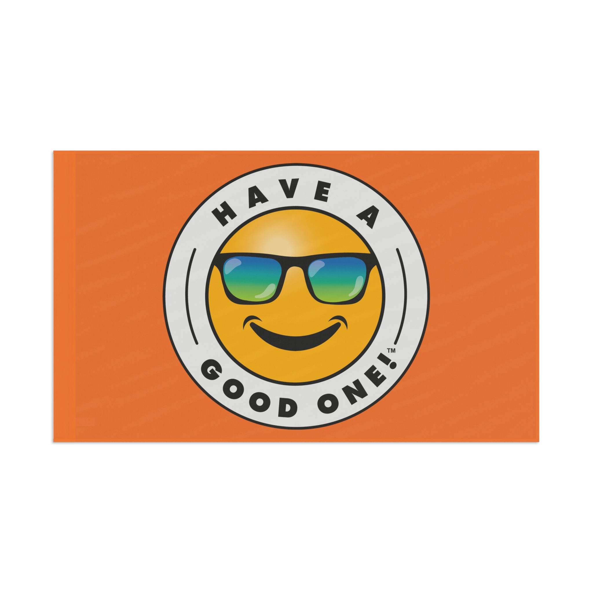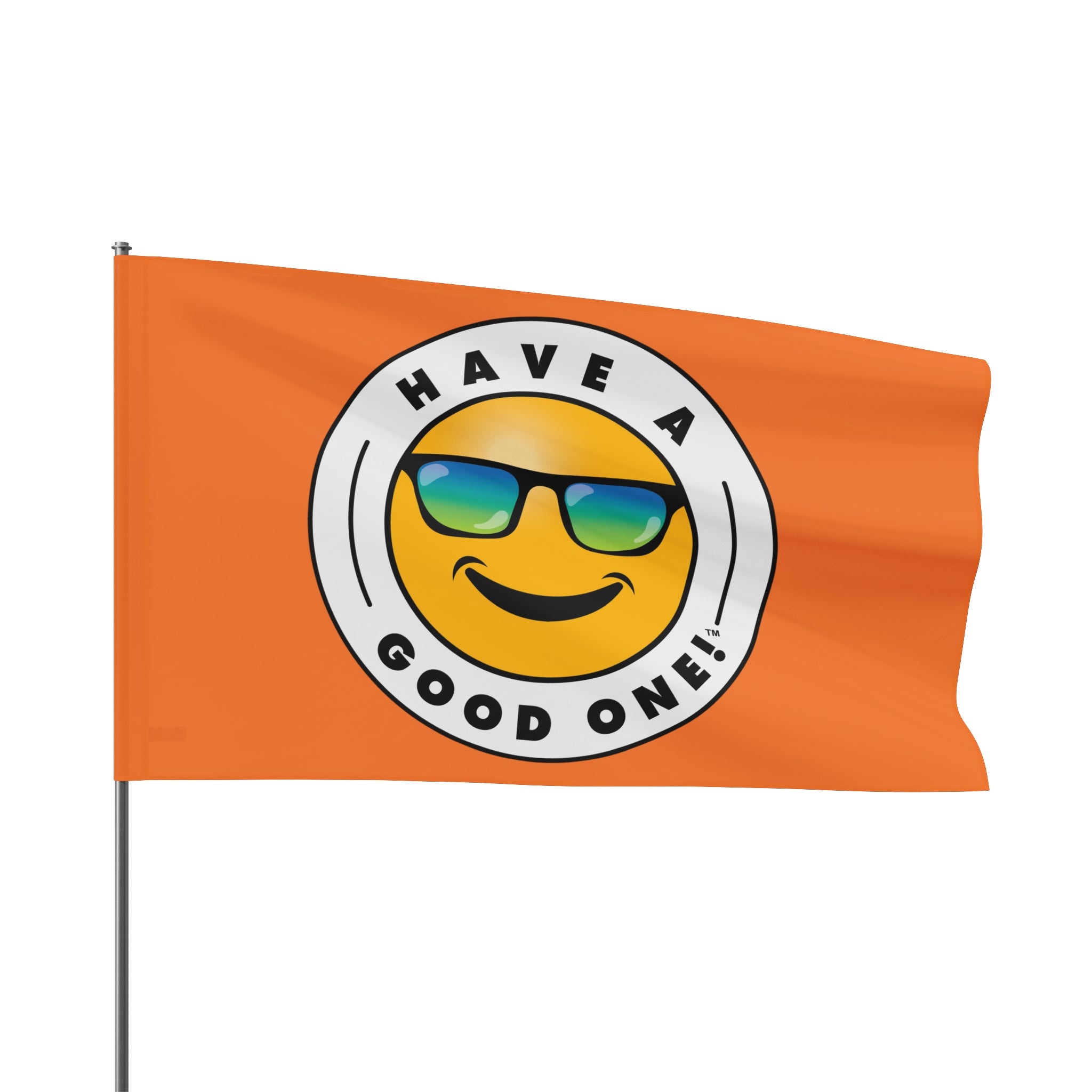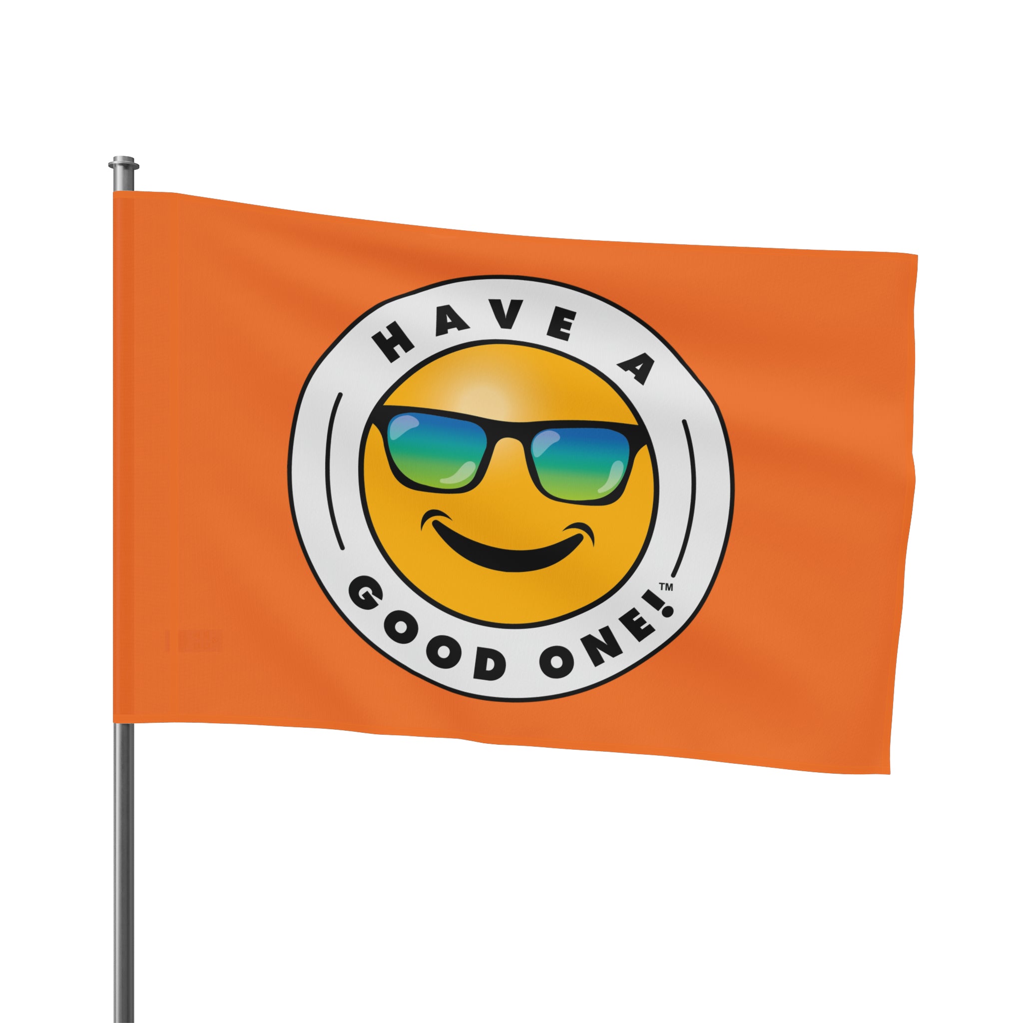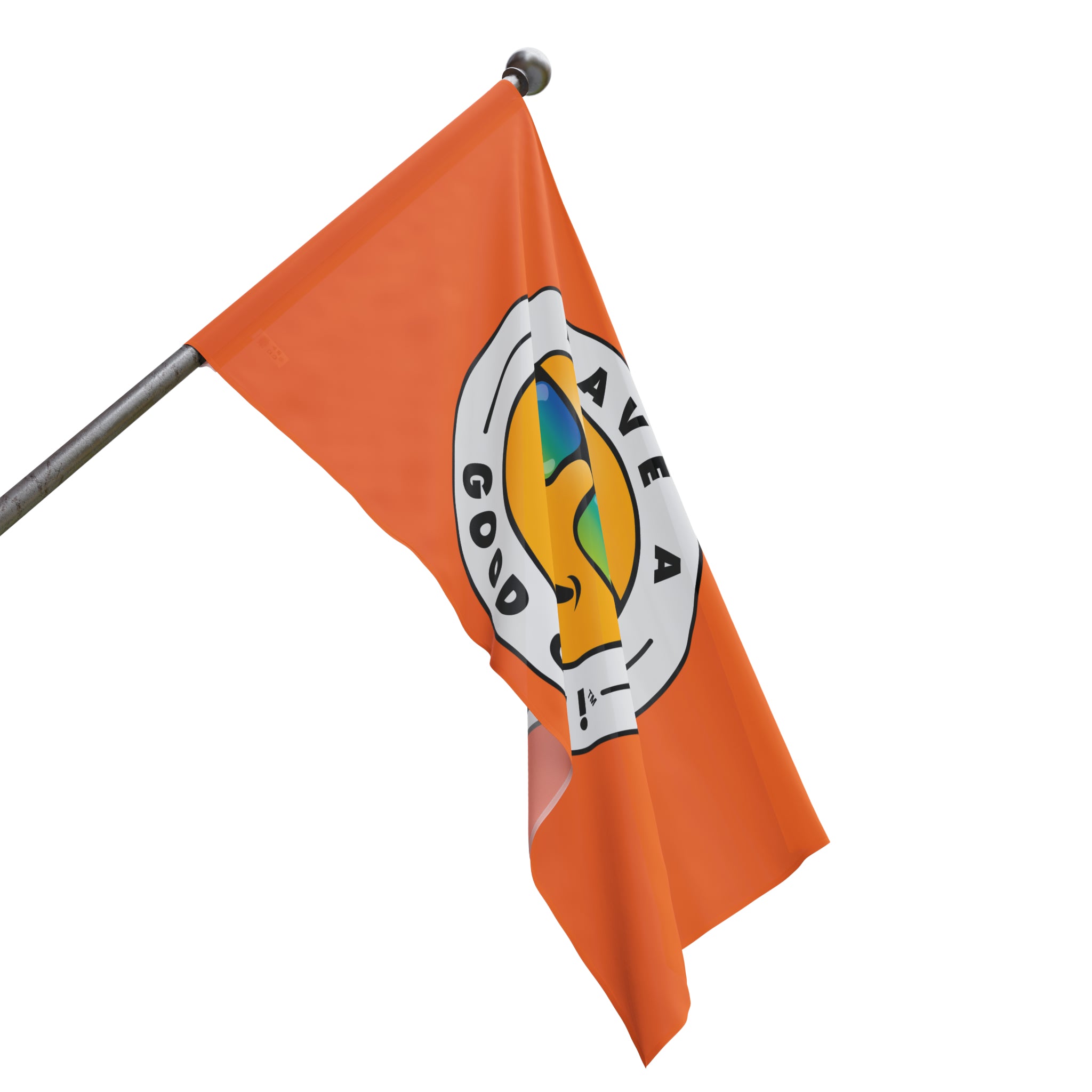 Festive and Fun Have A Good One! Flag - Orange Color With Blue and Green Logo