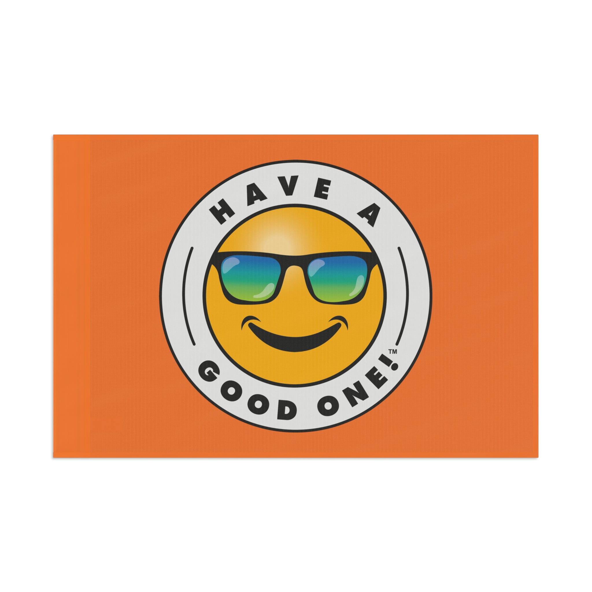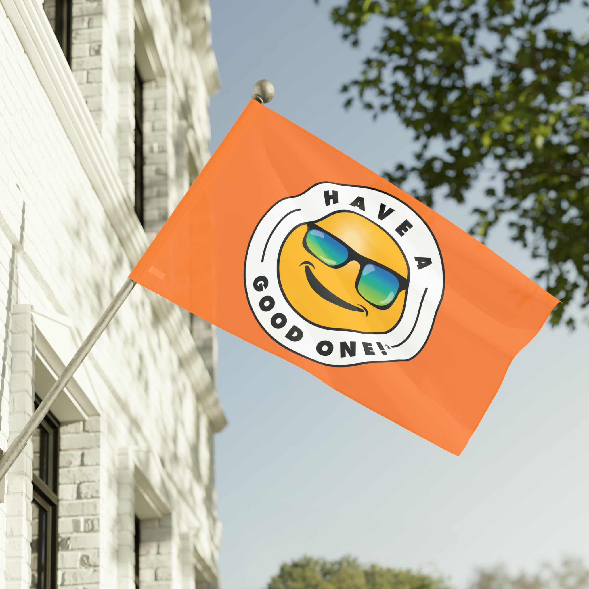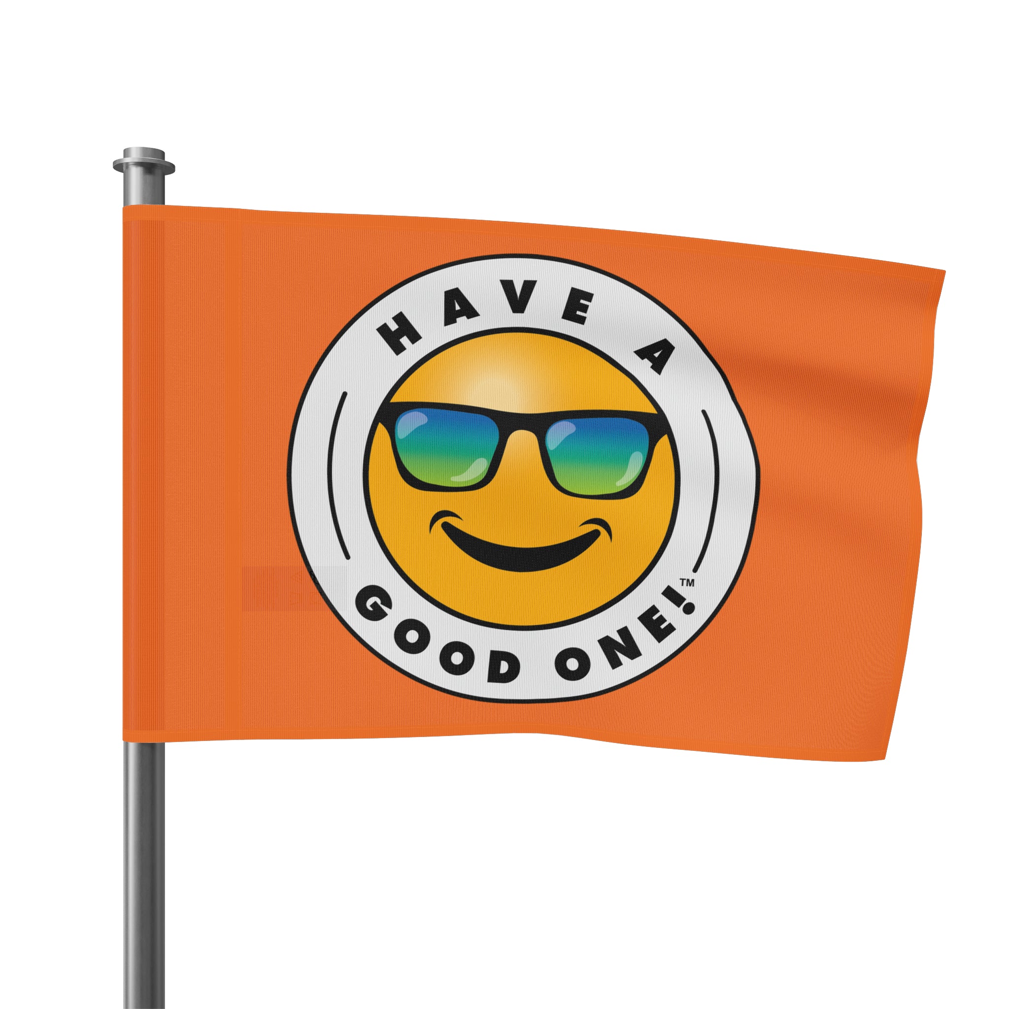 Festive and Fun Have A Good One! Flag - Orange Color With Blue and Green Logo