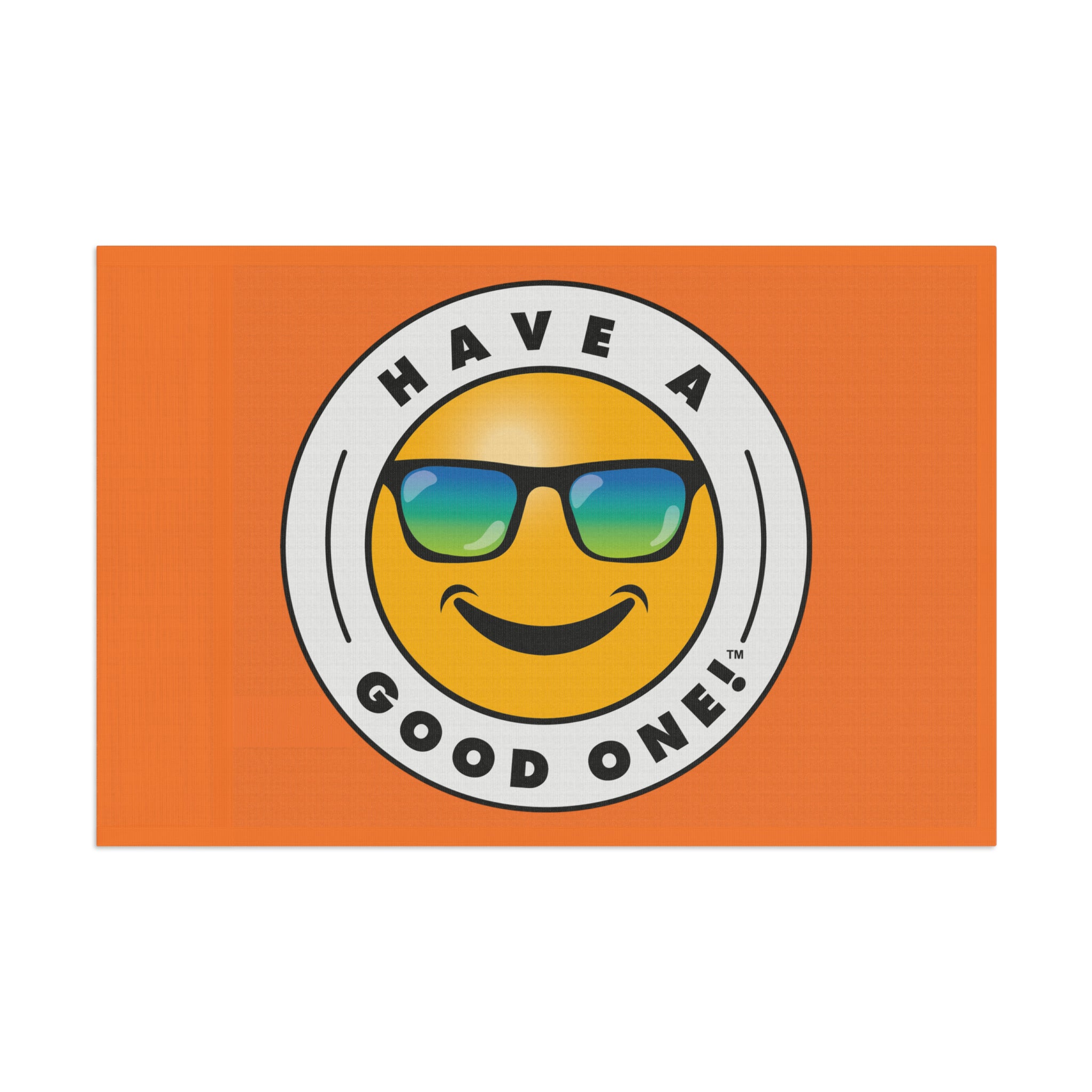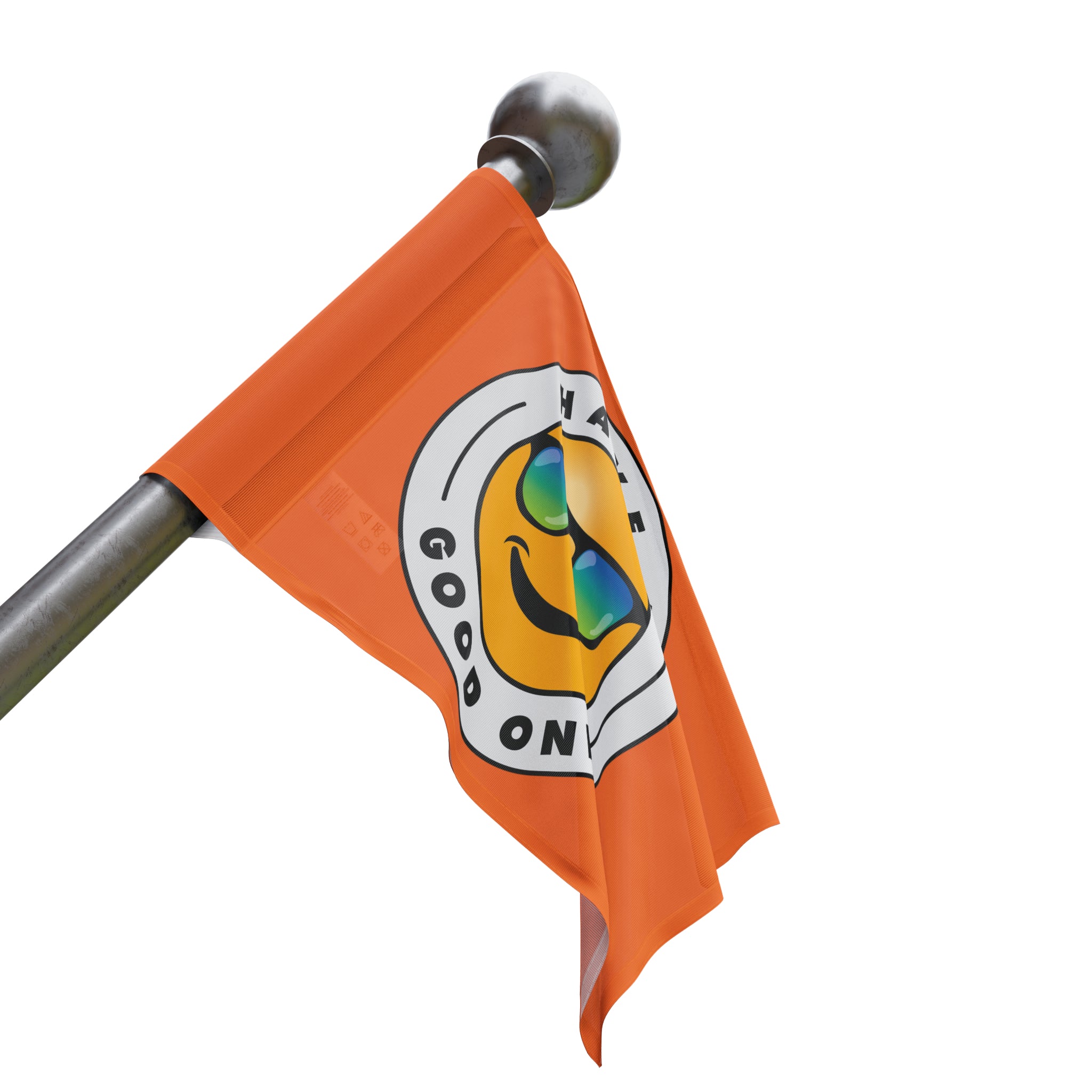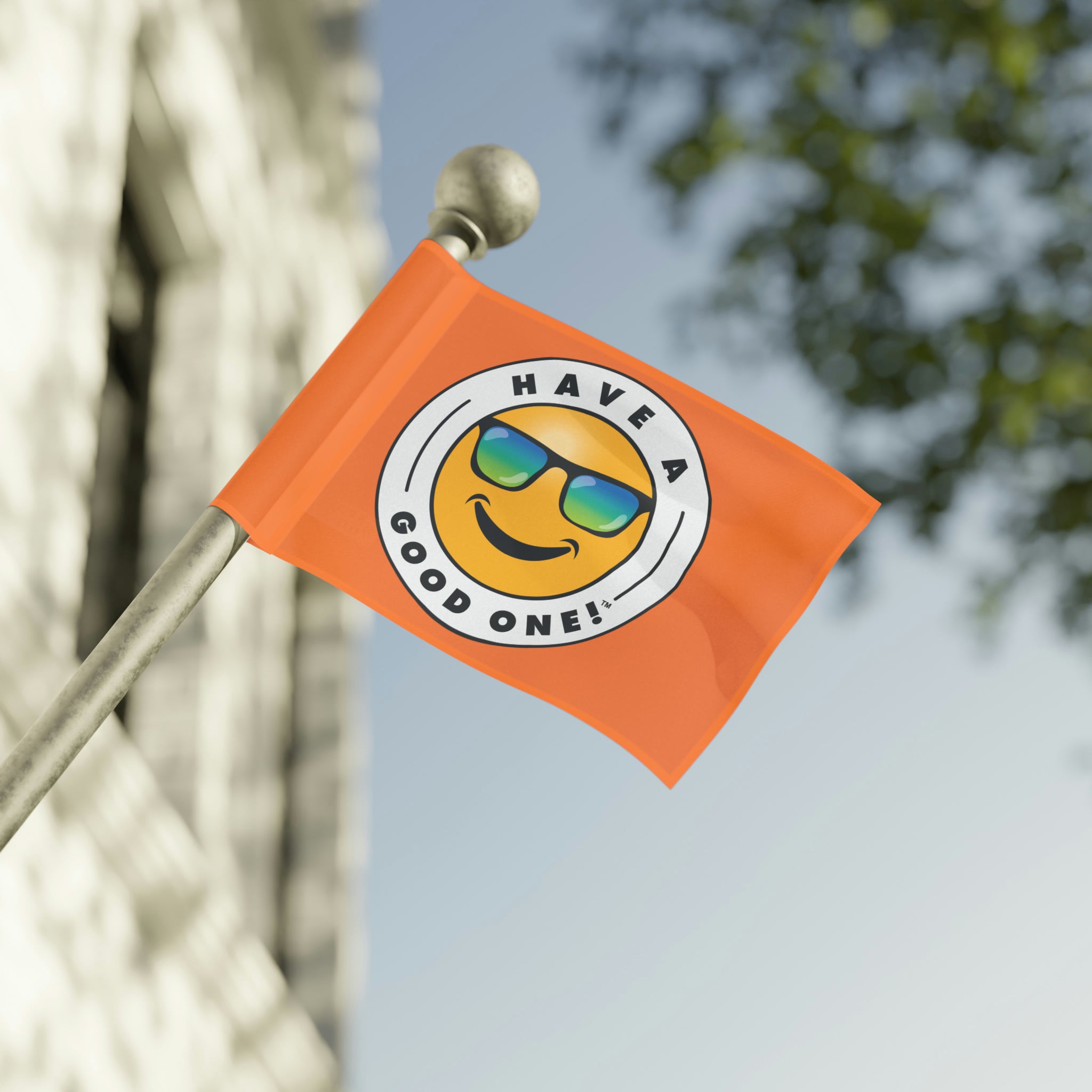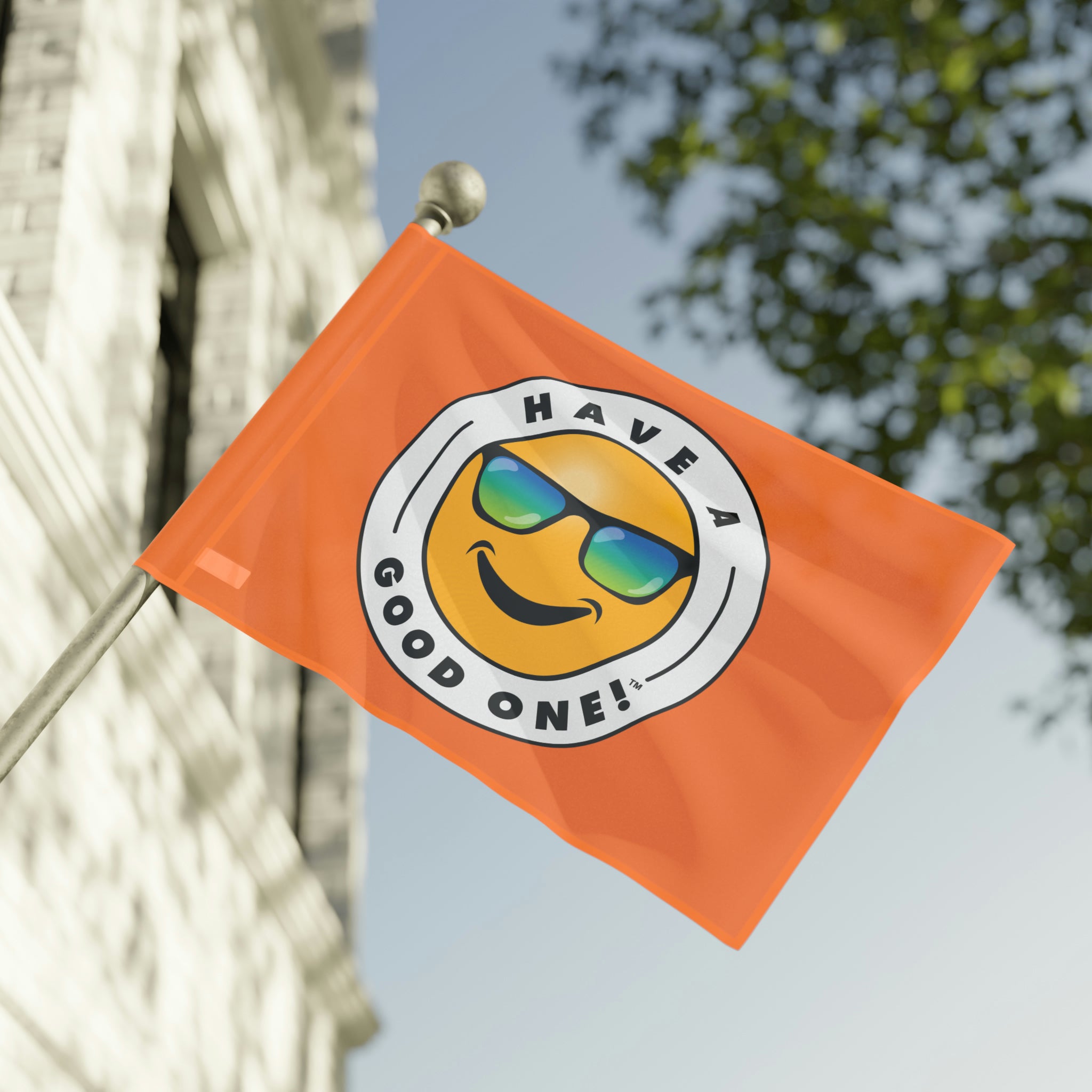 Festive and Fun Have A Good One! Flag - Orange Color With Blue and Green Logo