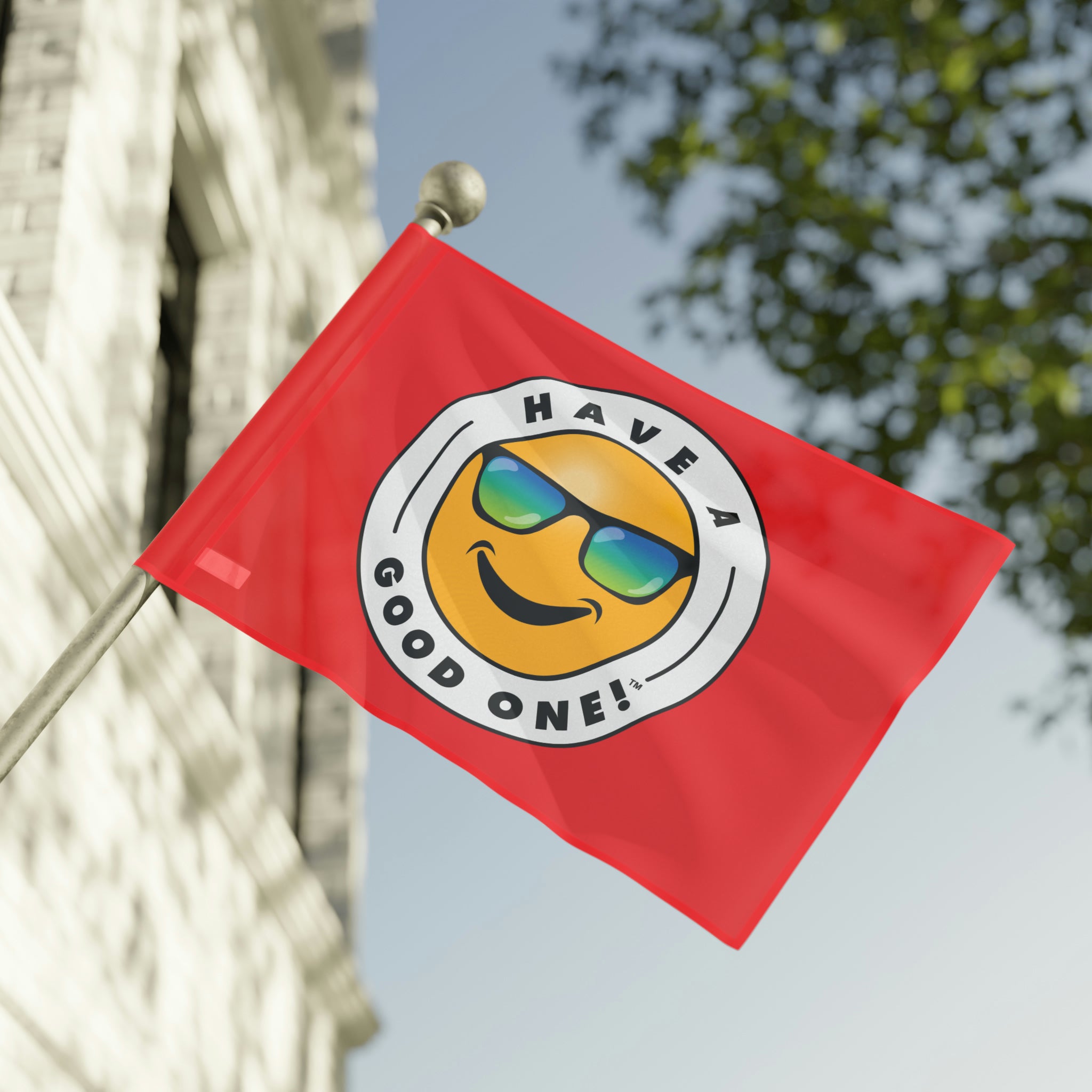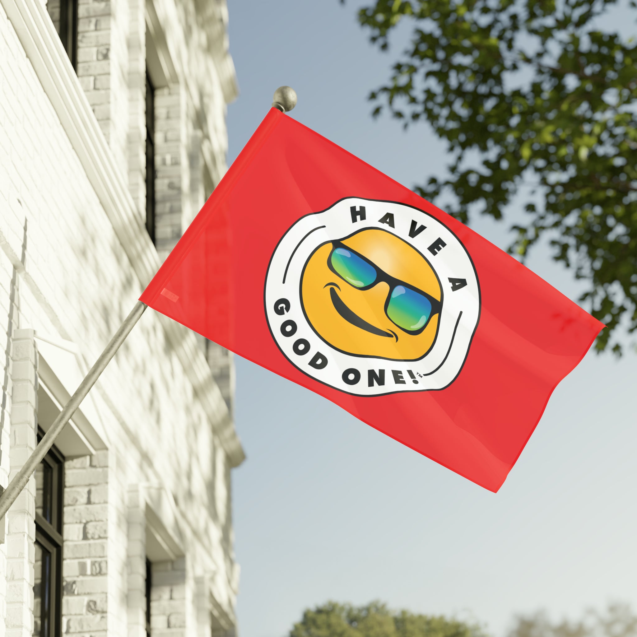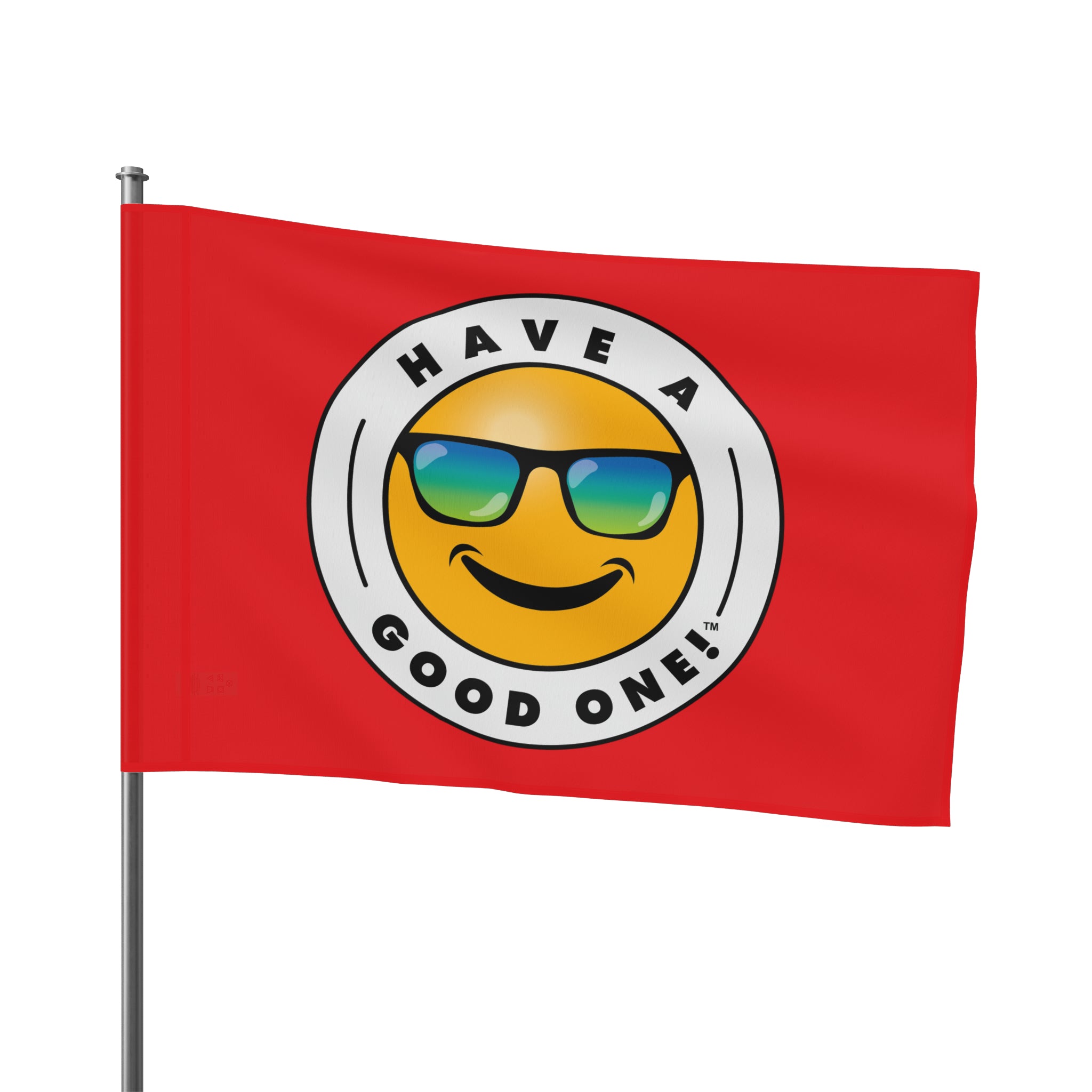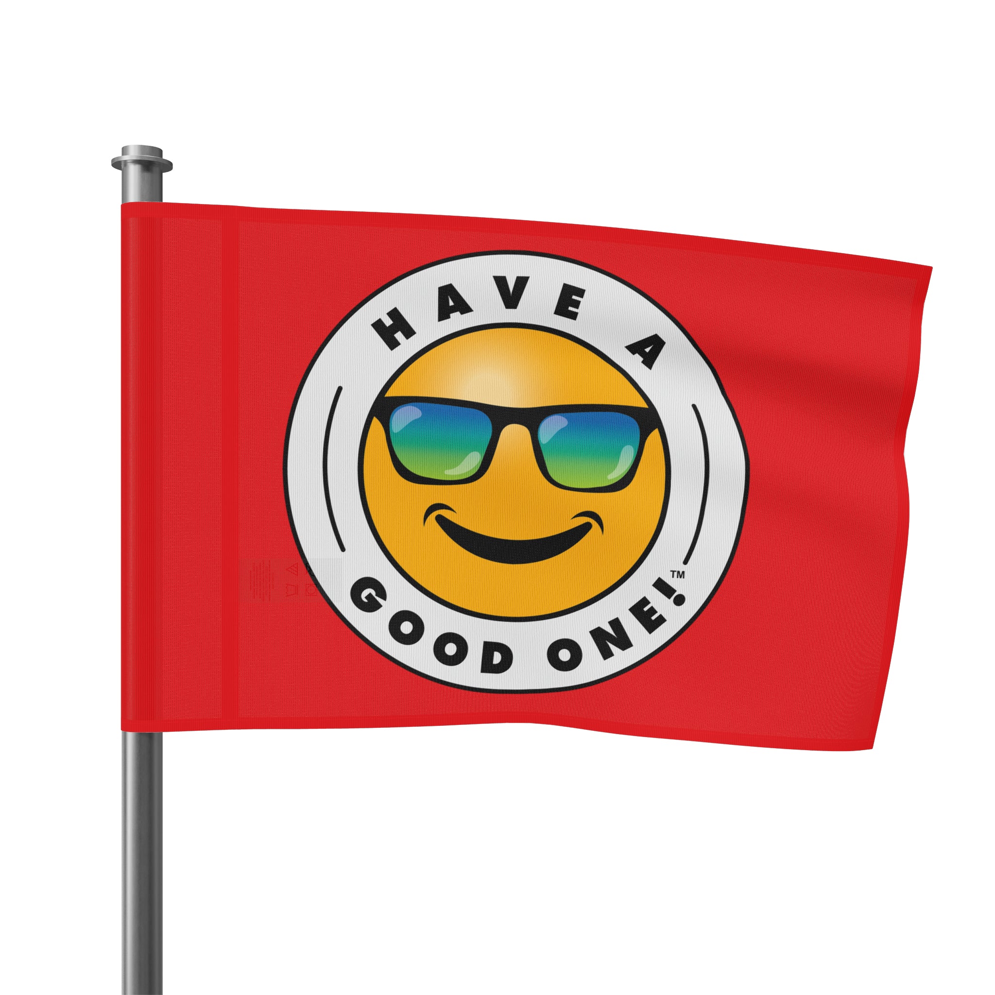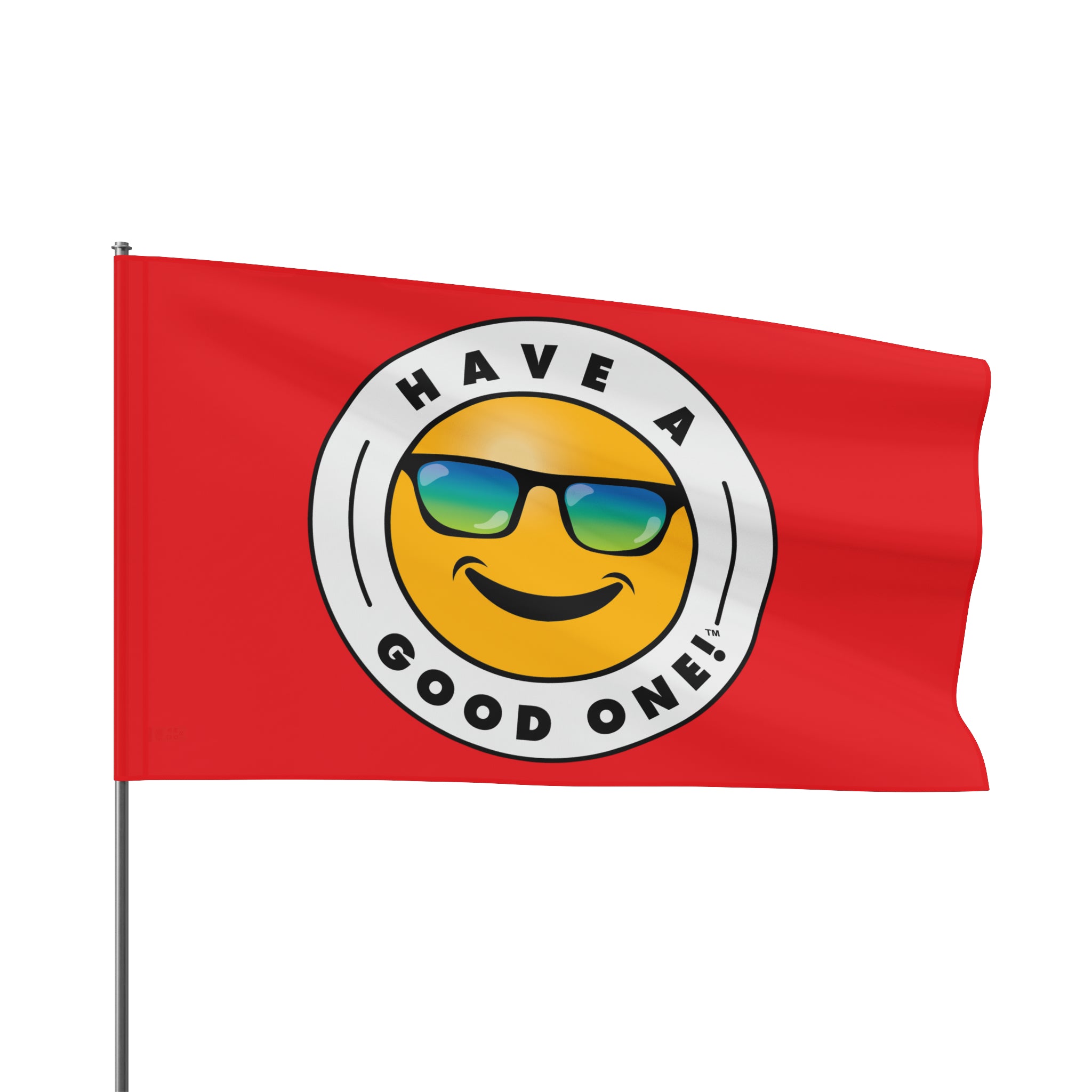 Festive and Fun Have A Good One! Flag - Red Color With Blue and Green Logo