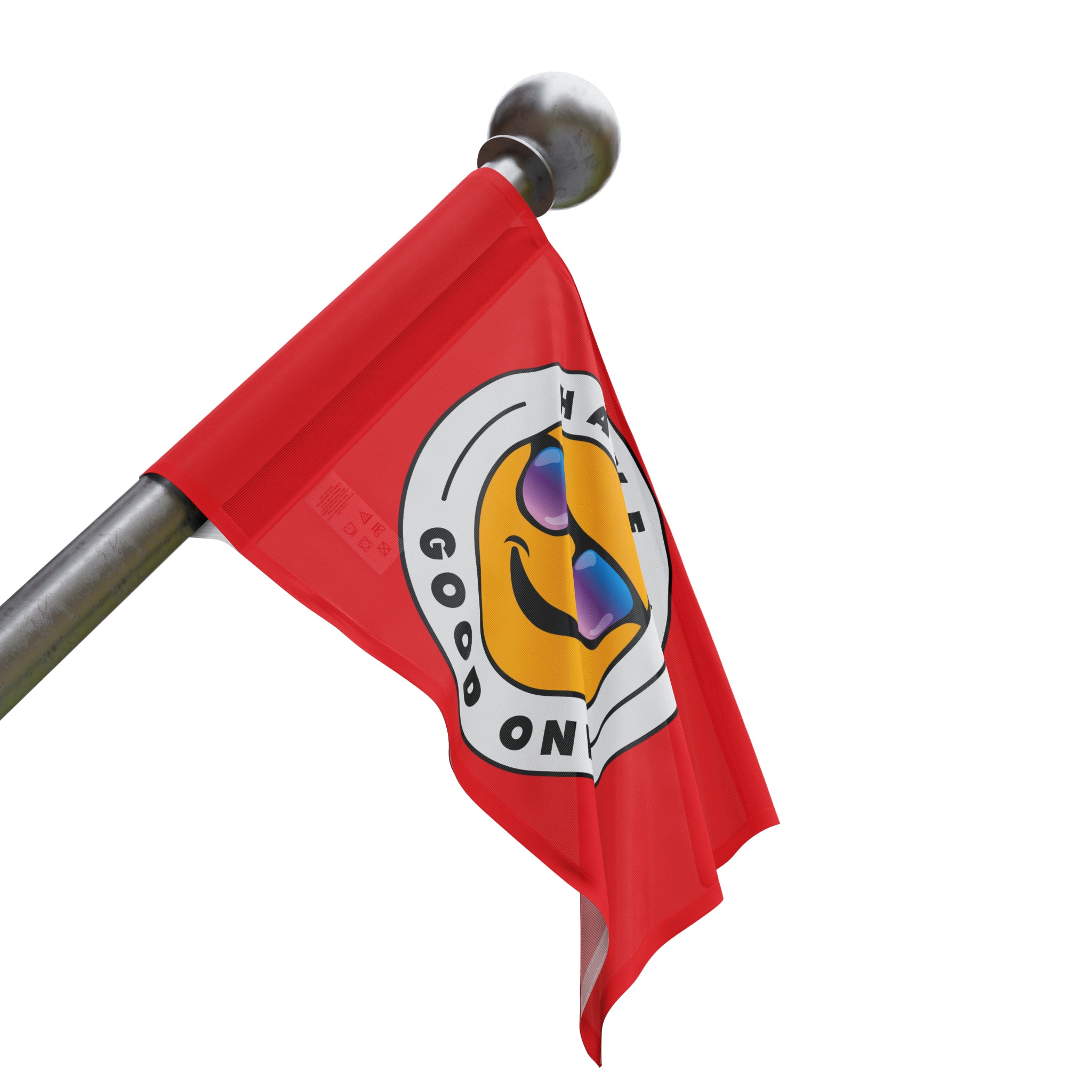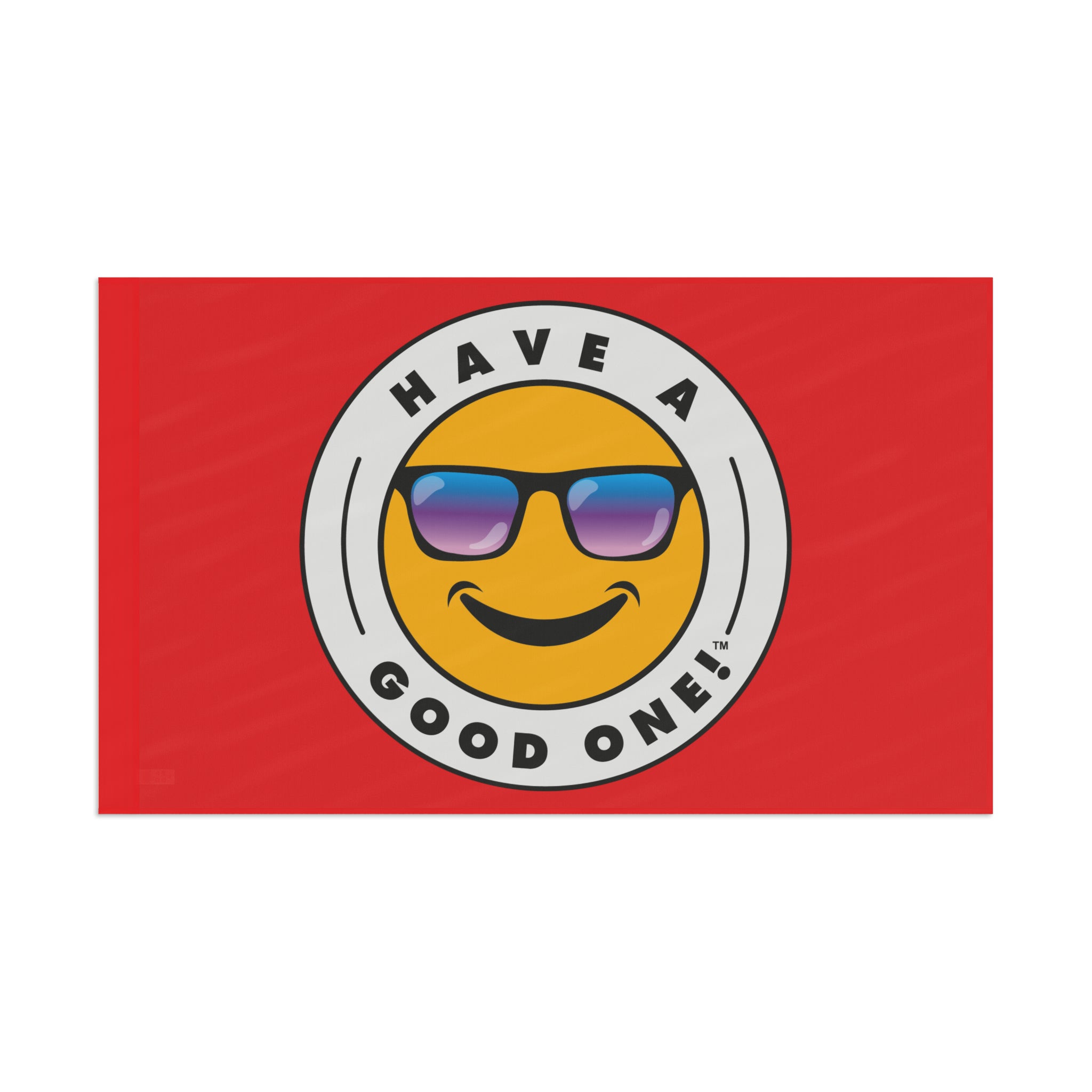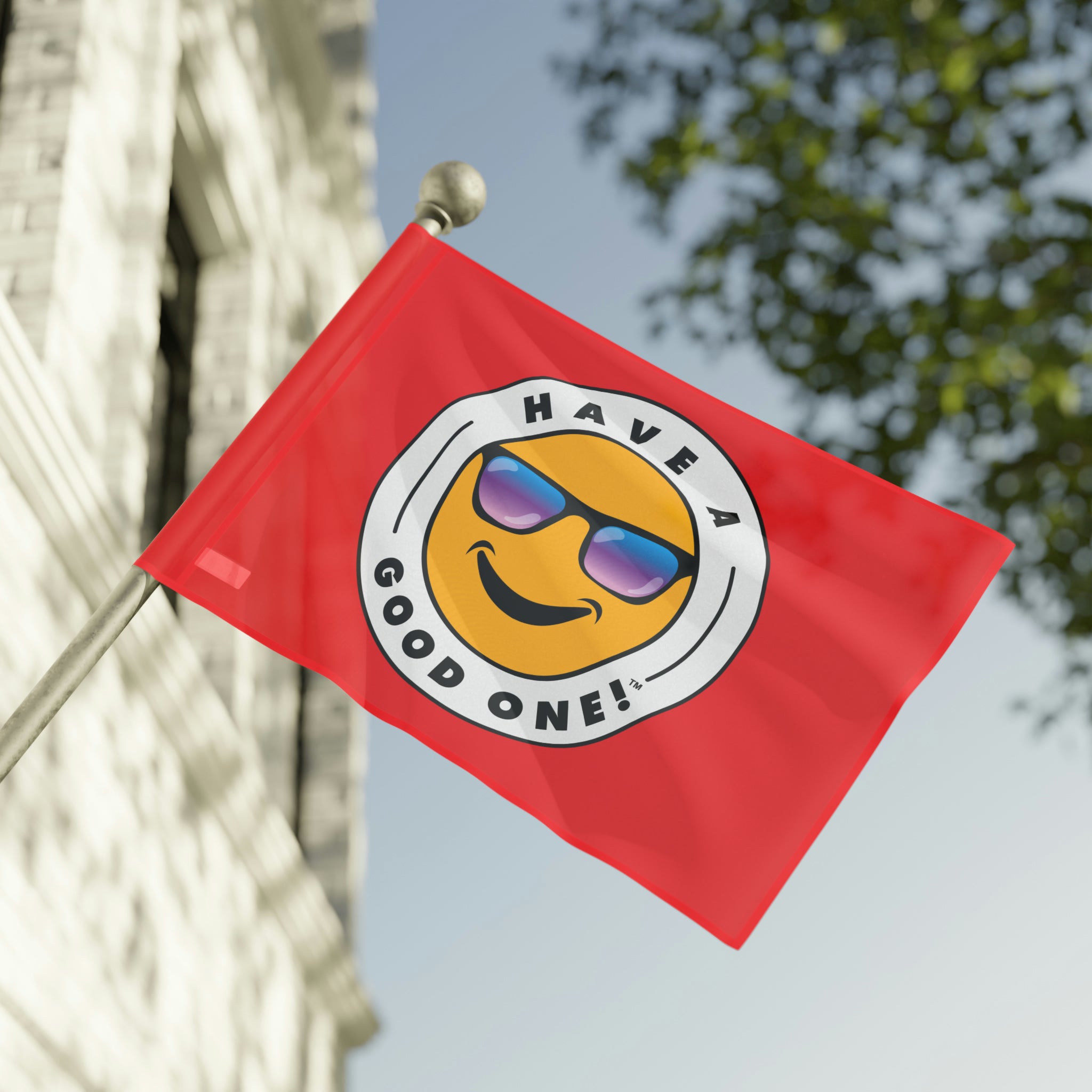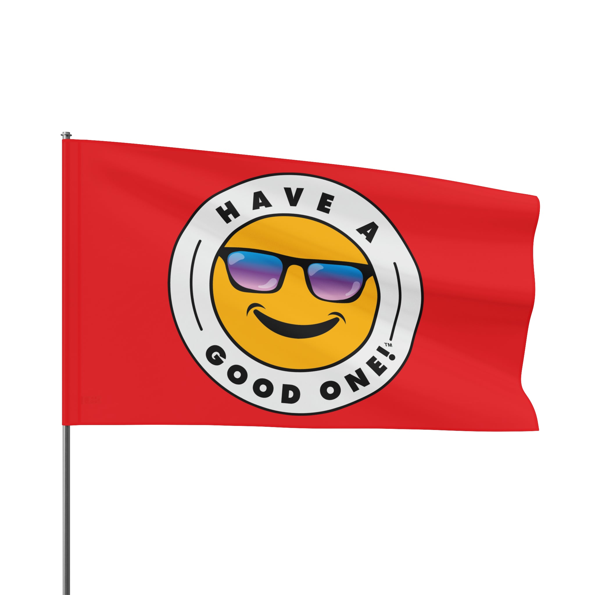 Festive and Fun Have A Good One! Flag - Red Color With Blue and Purple Logo
