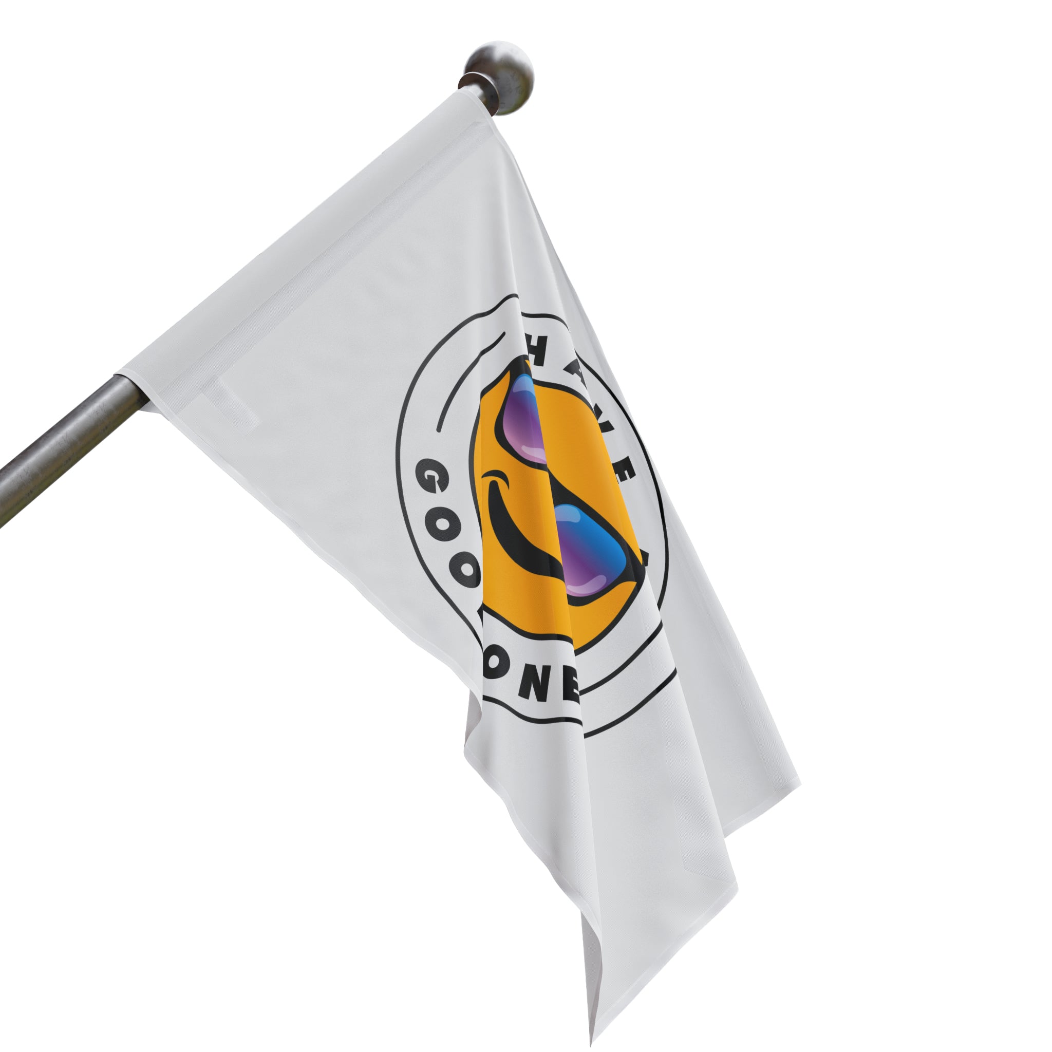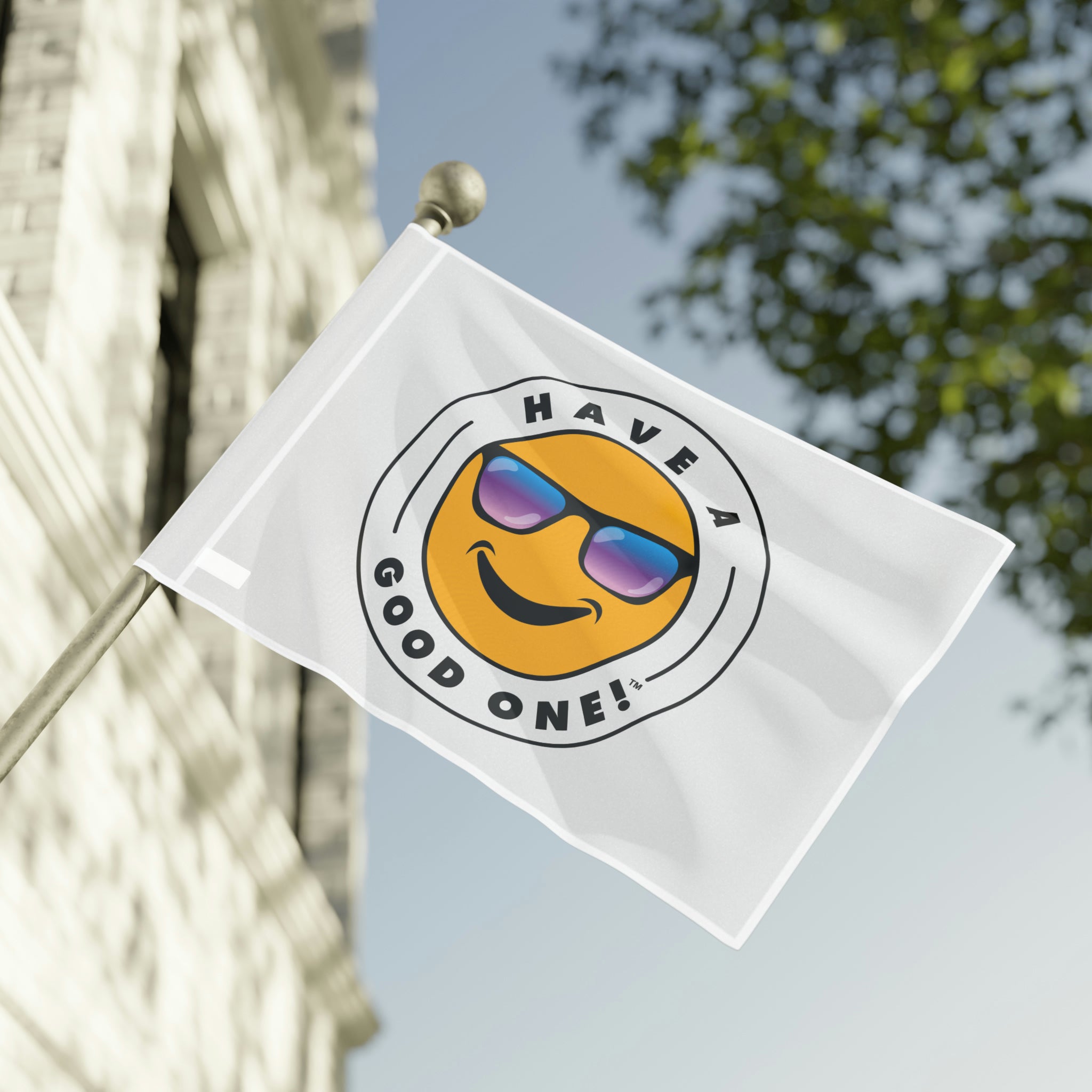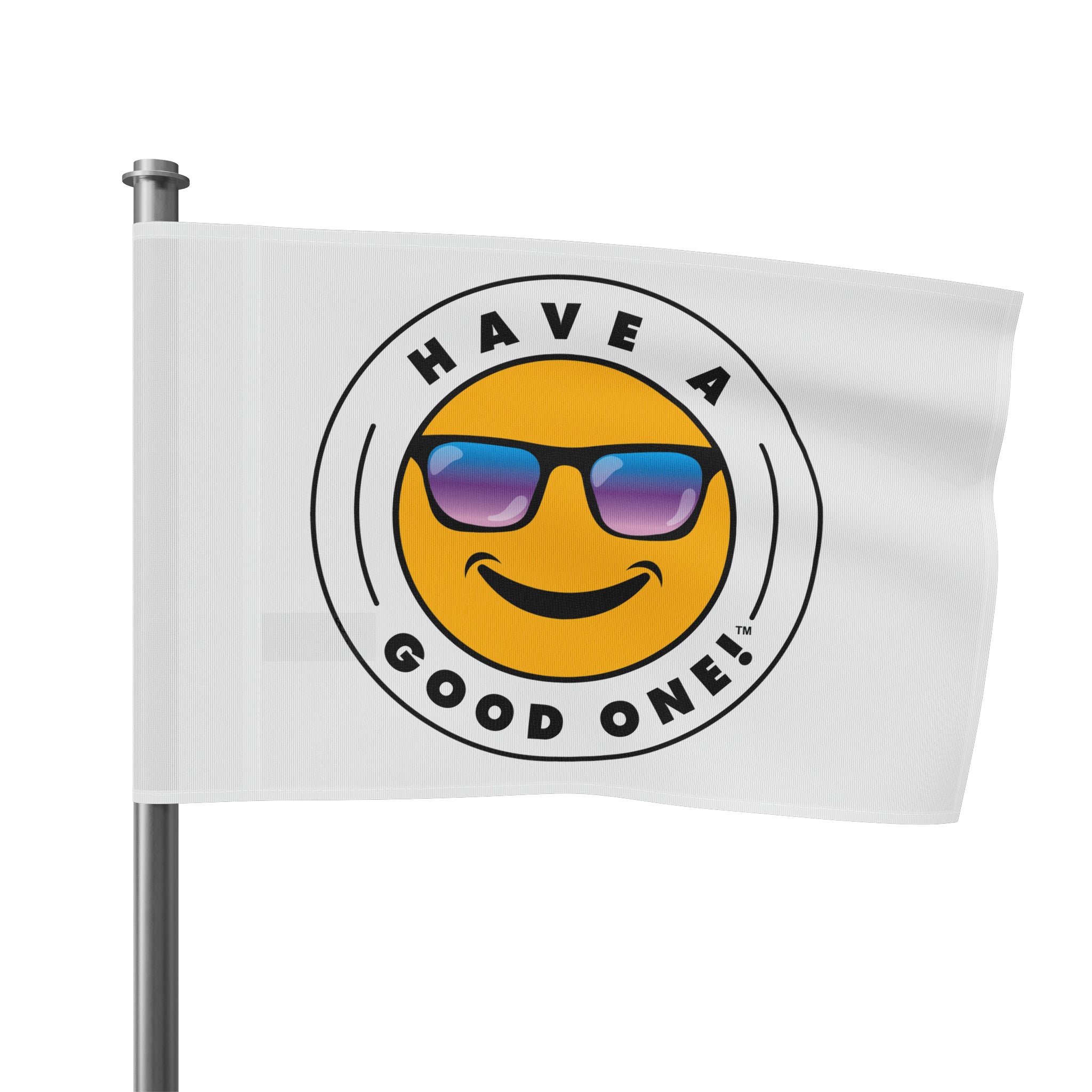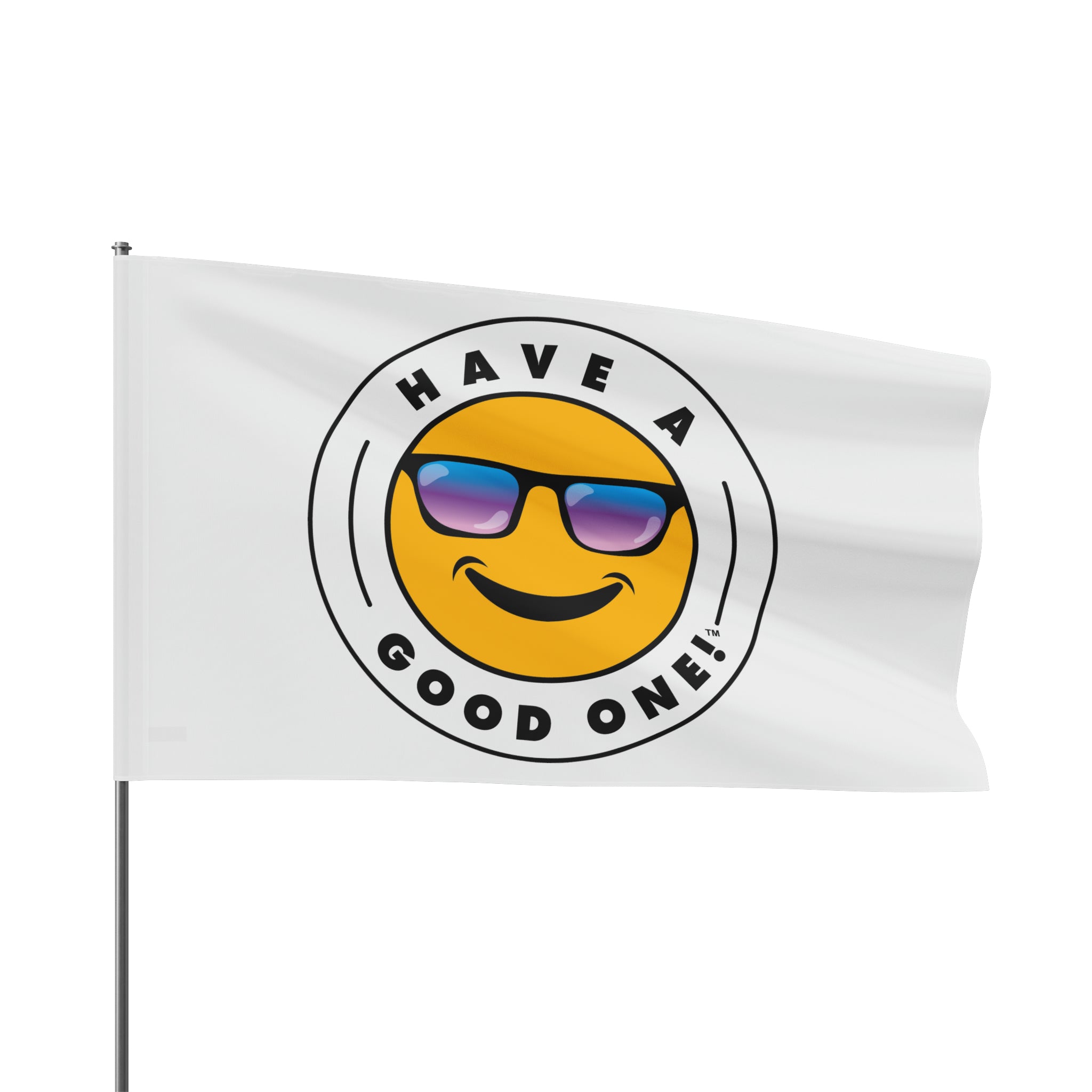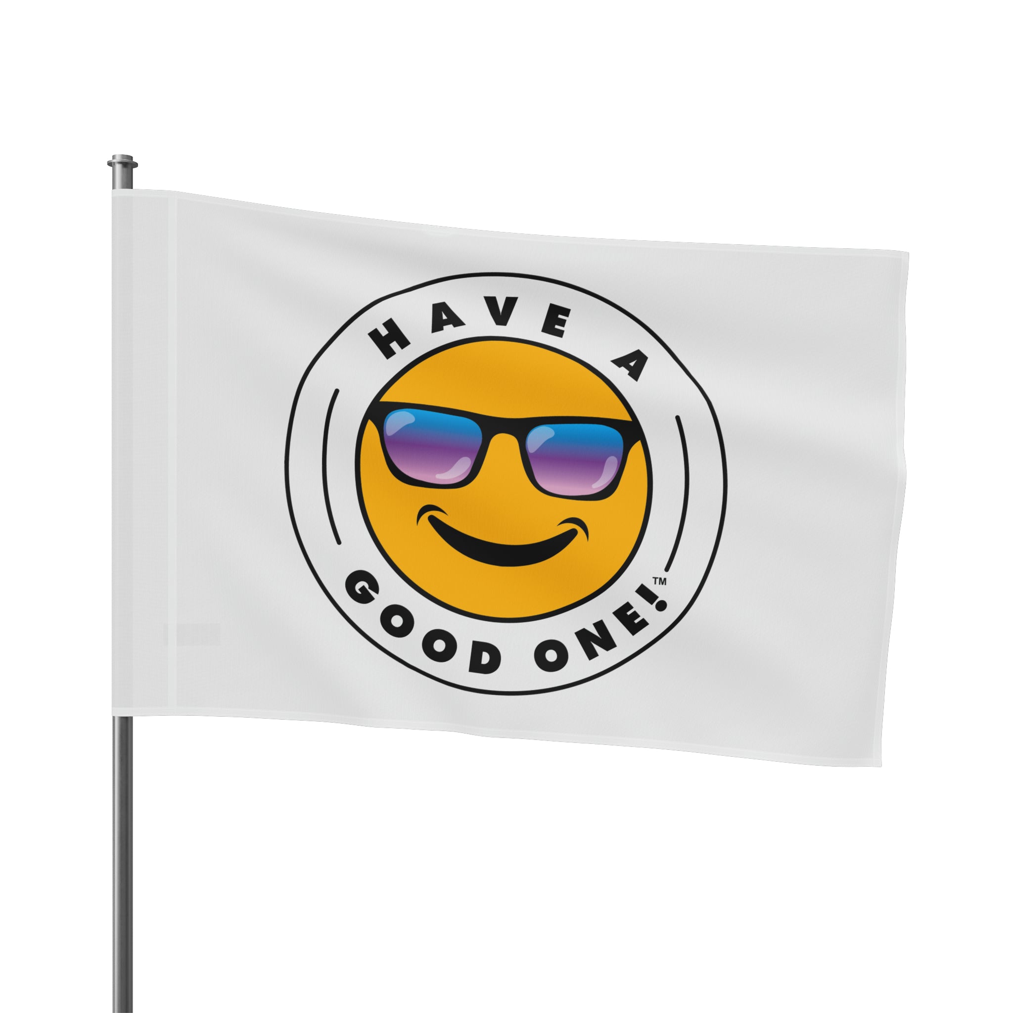 Festive and Fun Have A Good One! Flag - White Color With Blue and Purple Logo