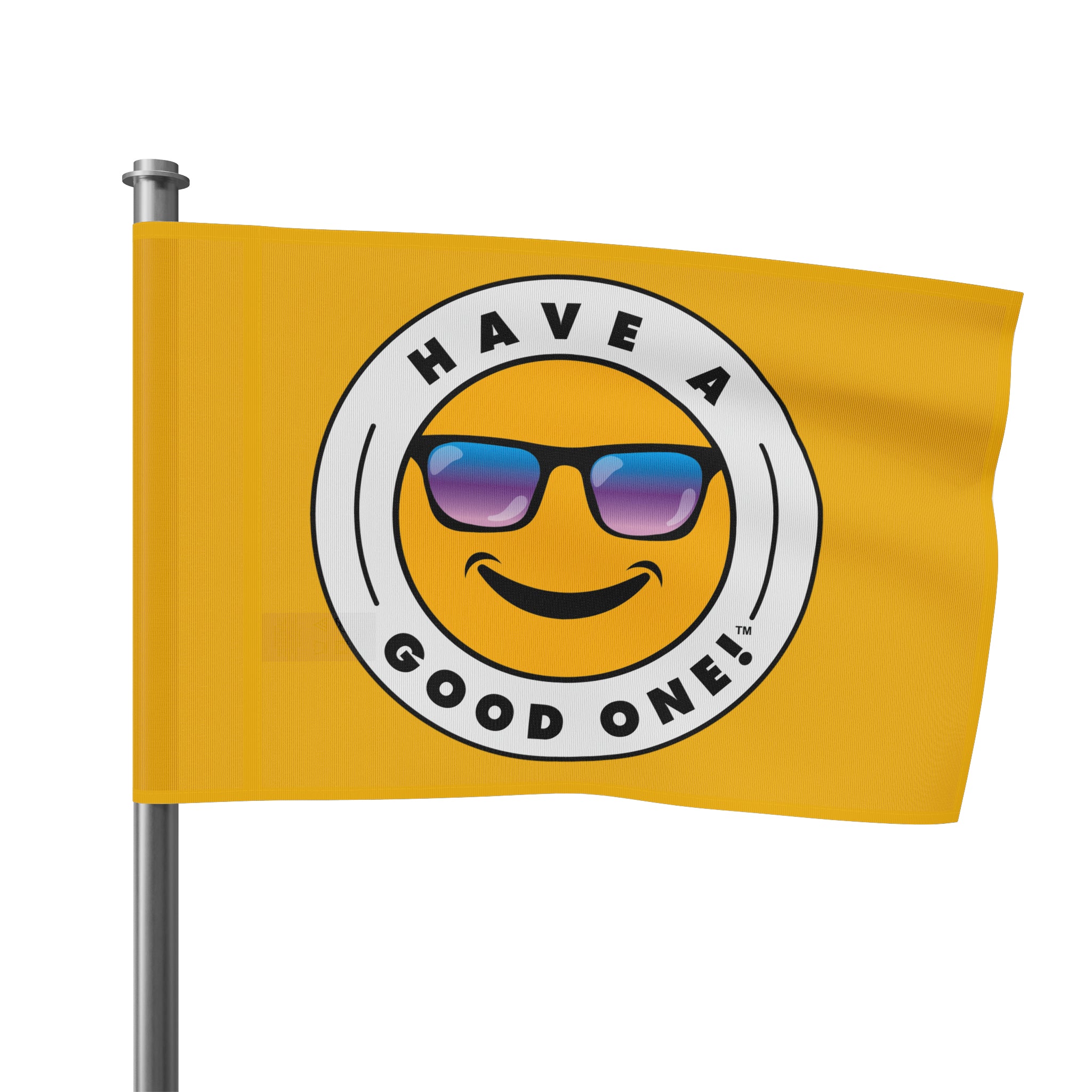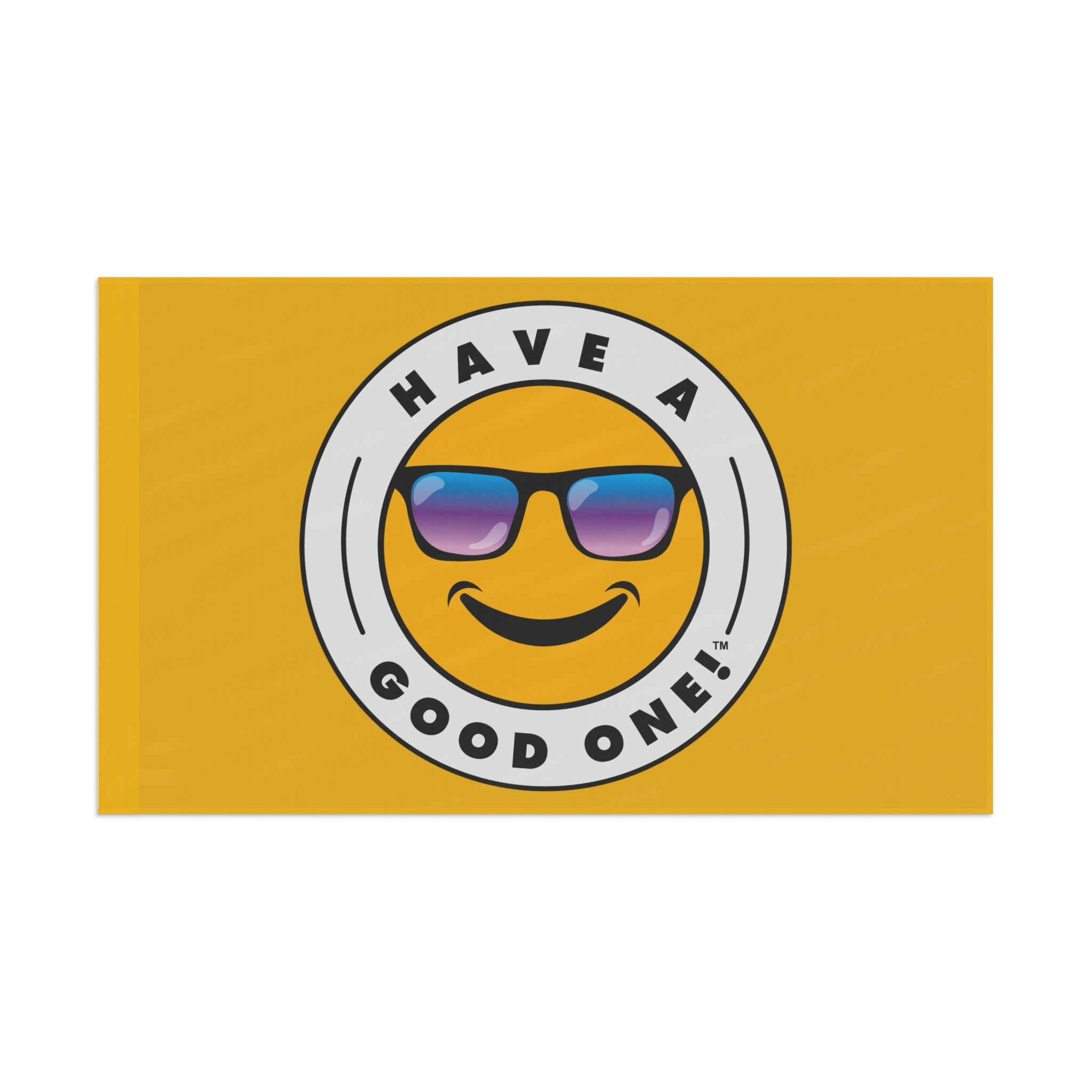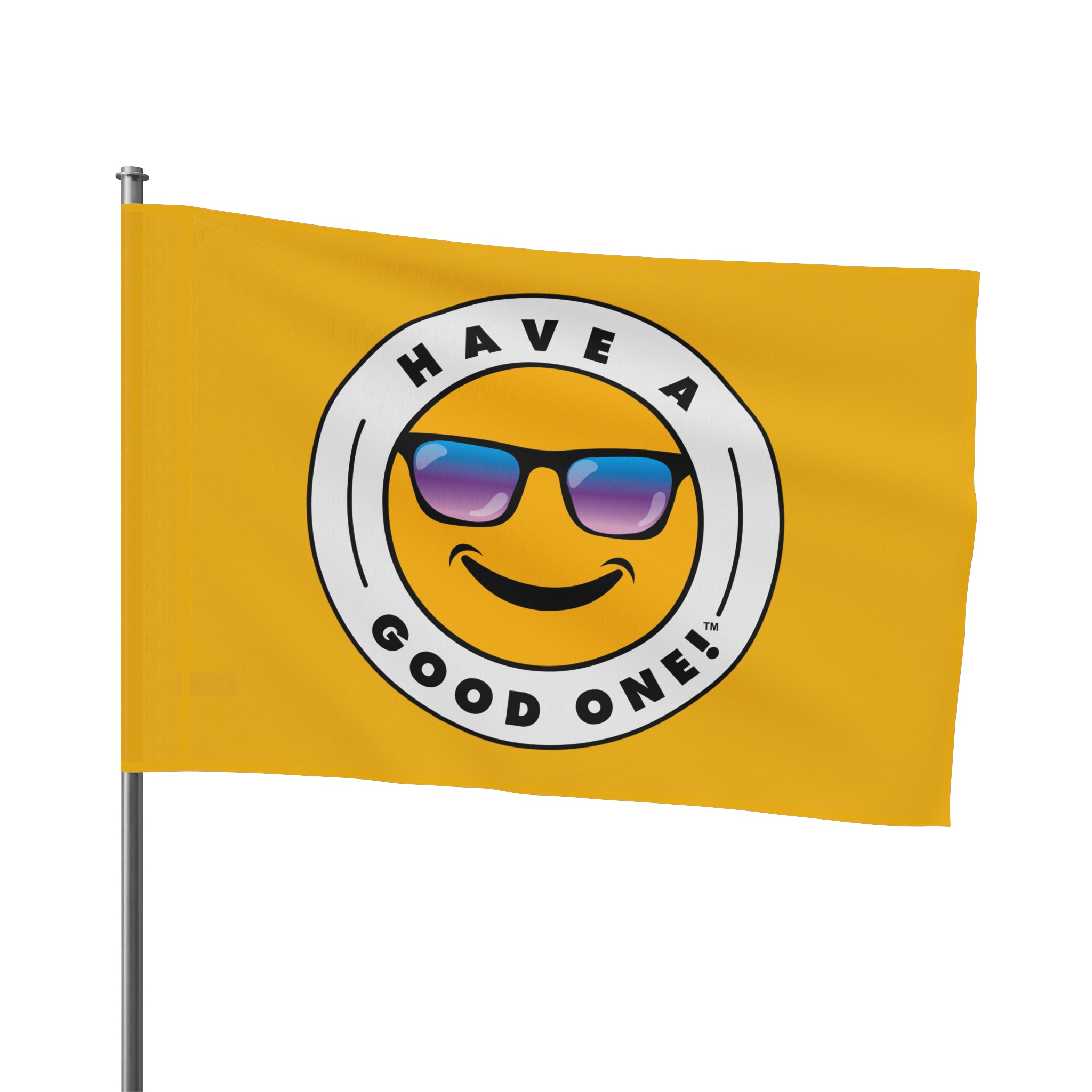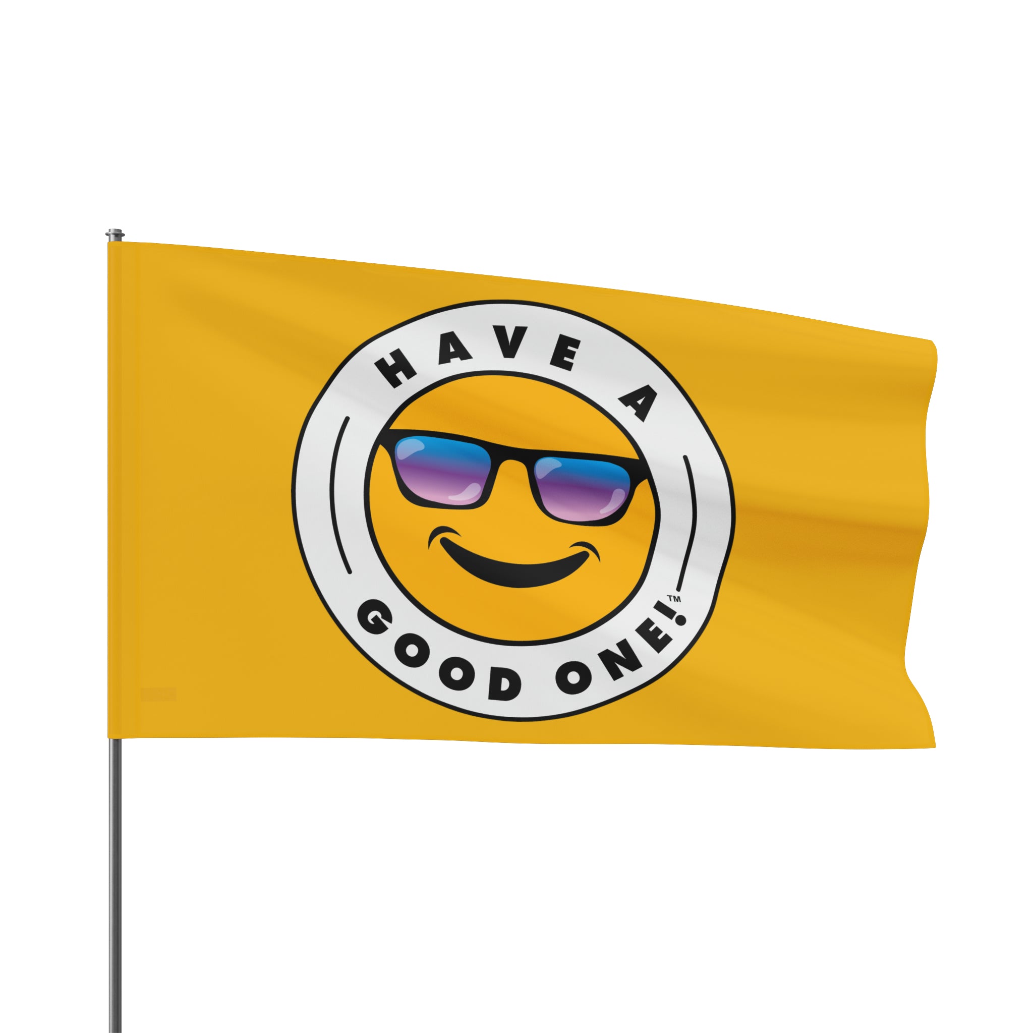 Festive and Fun Have A Good One! Flag - Yellow Color With Blue and Purple Logo