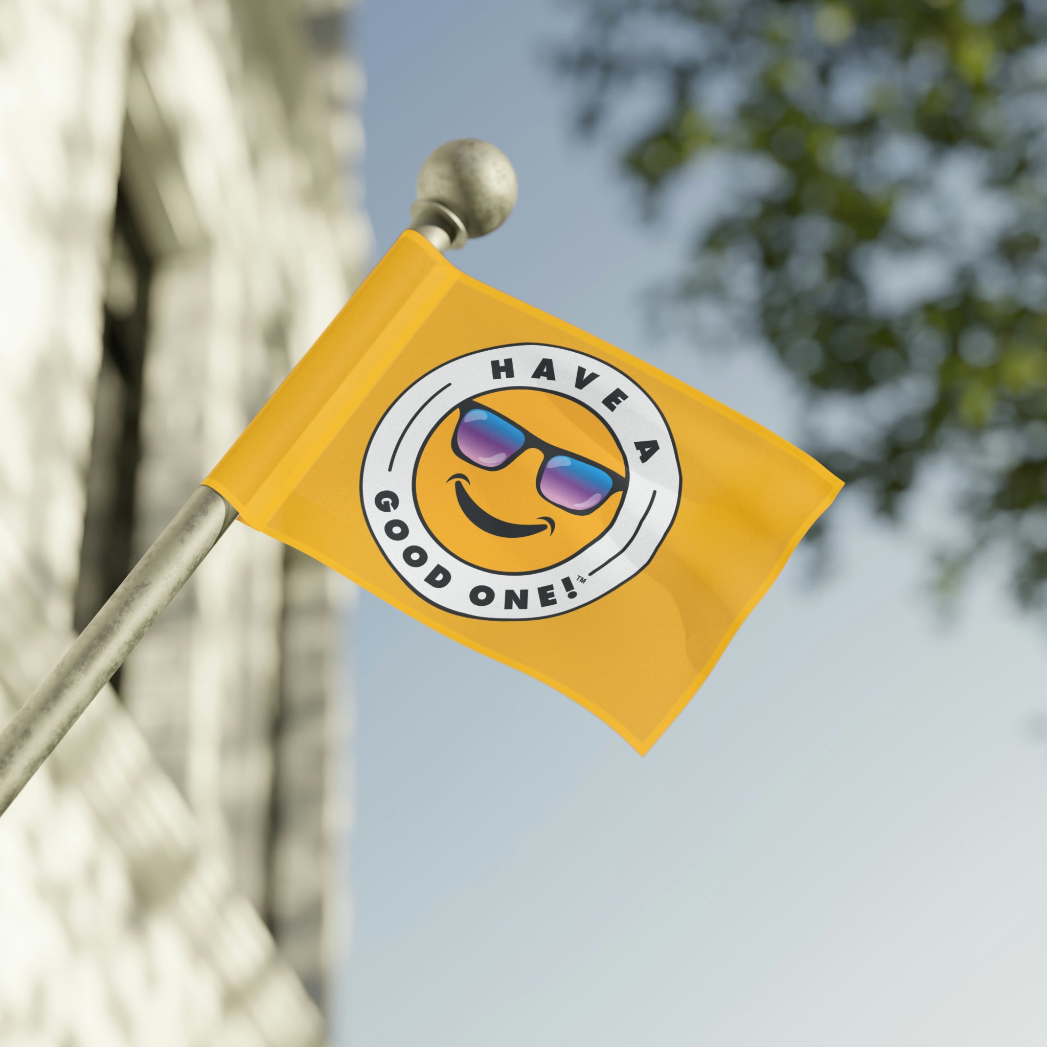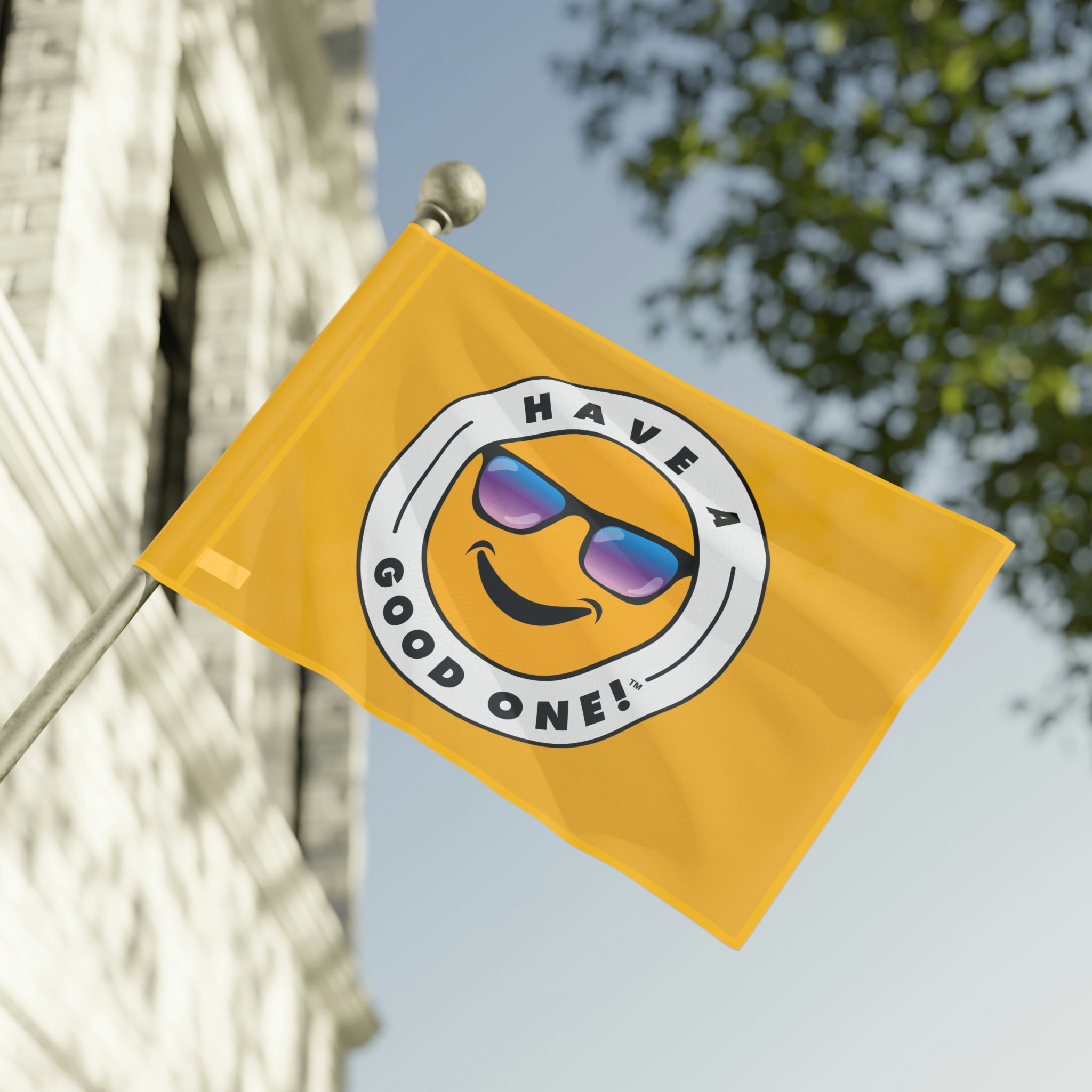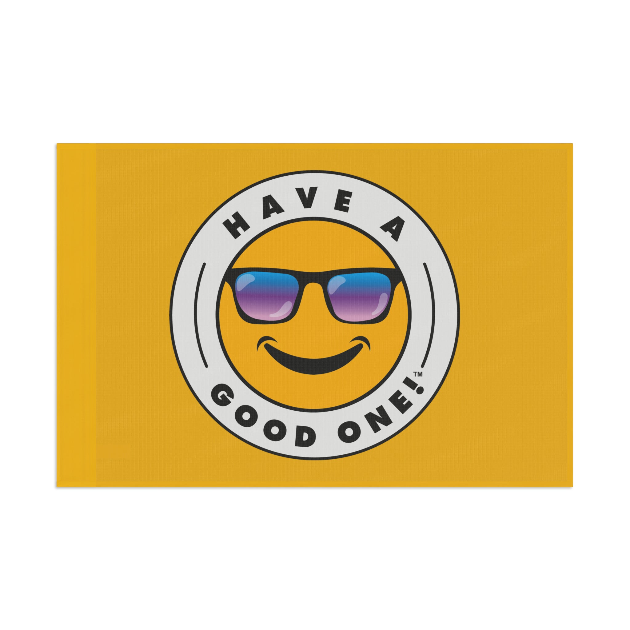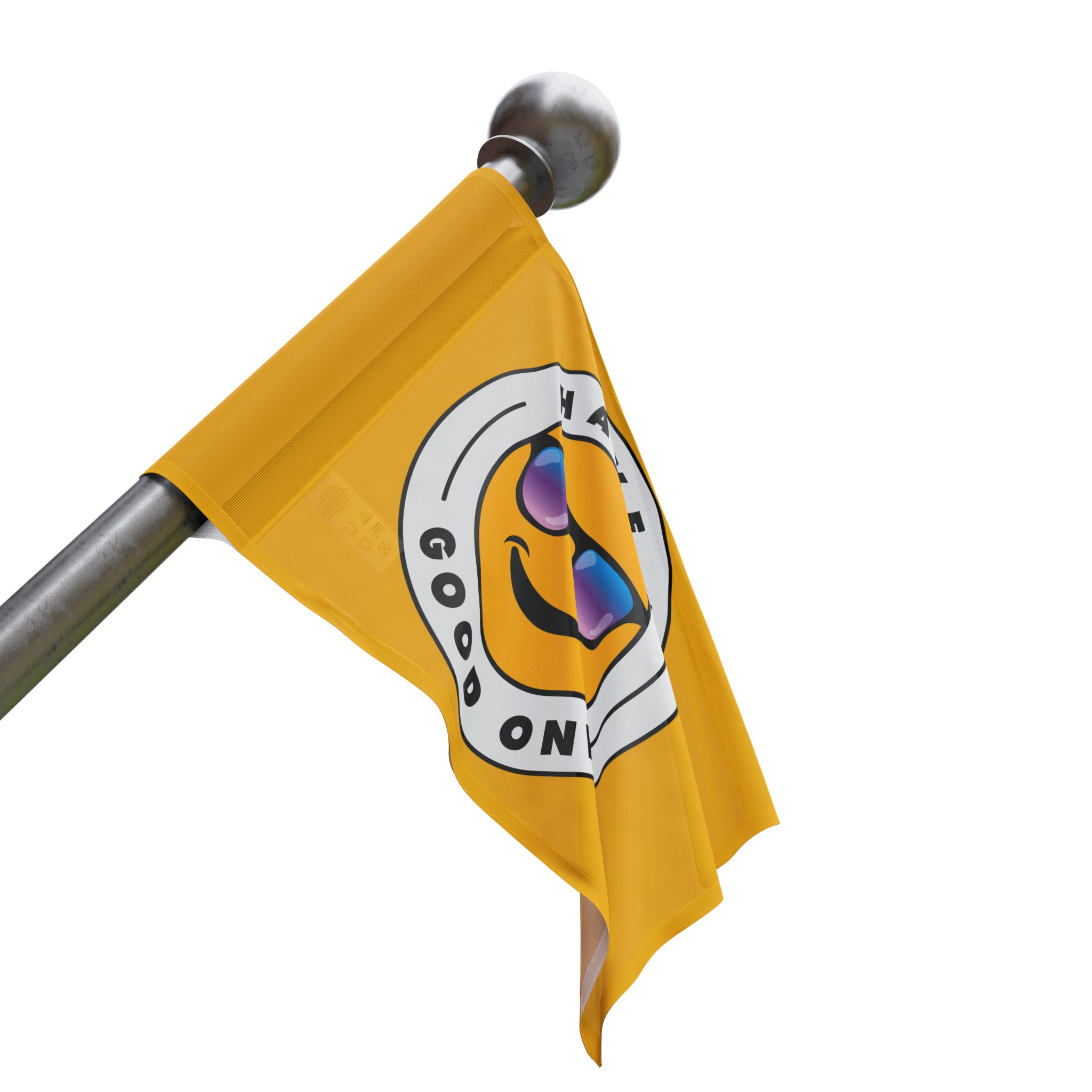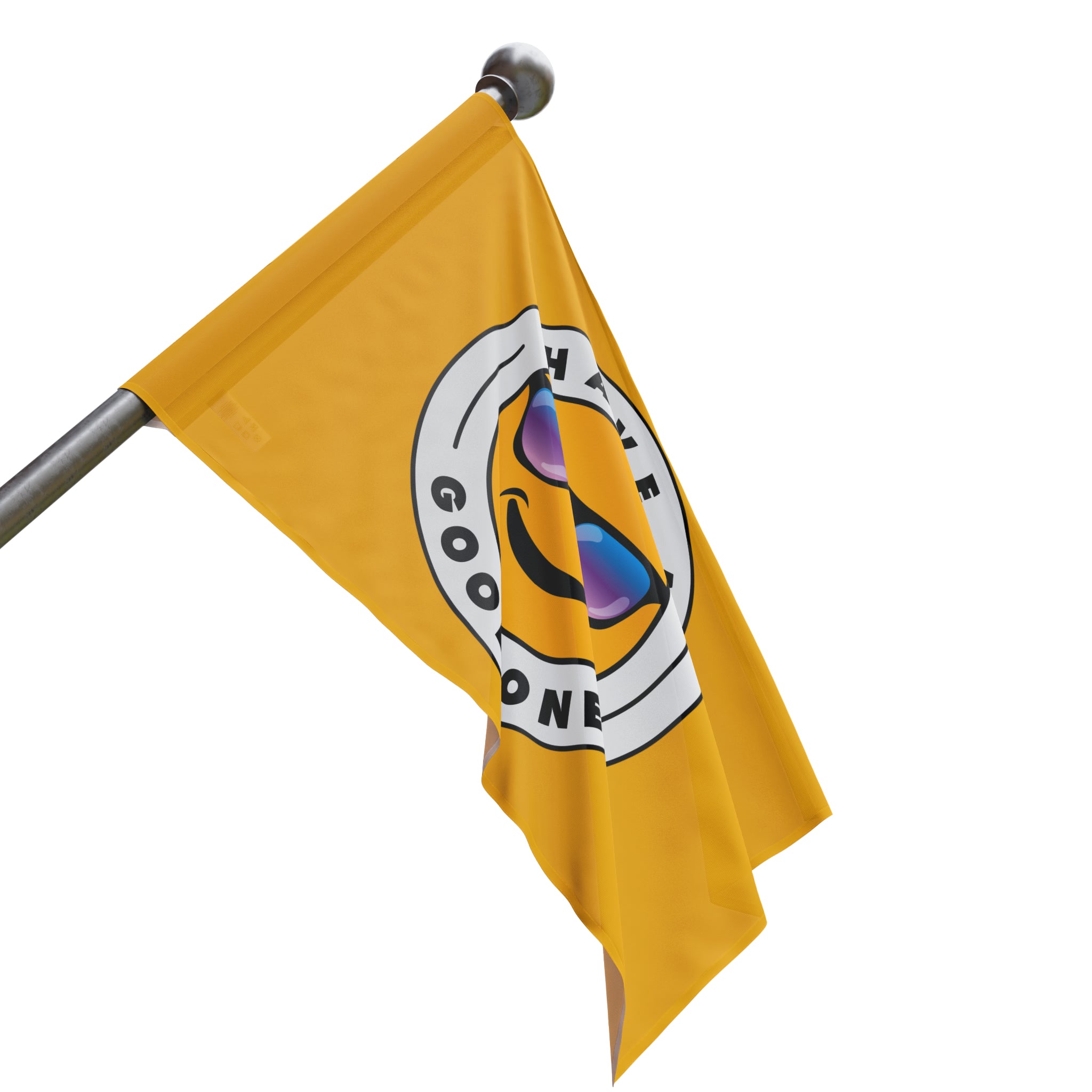 Festive and Fun Have A Good One! Flag - Yellow Color With Blue and Purple Logo