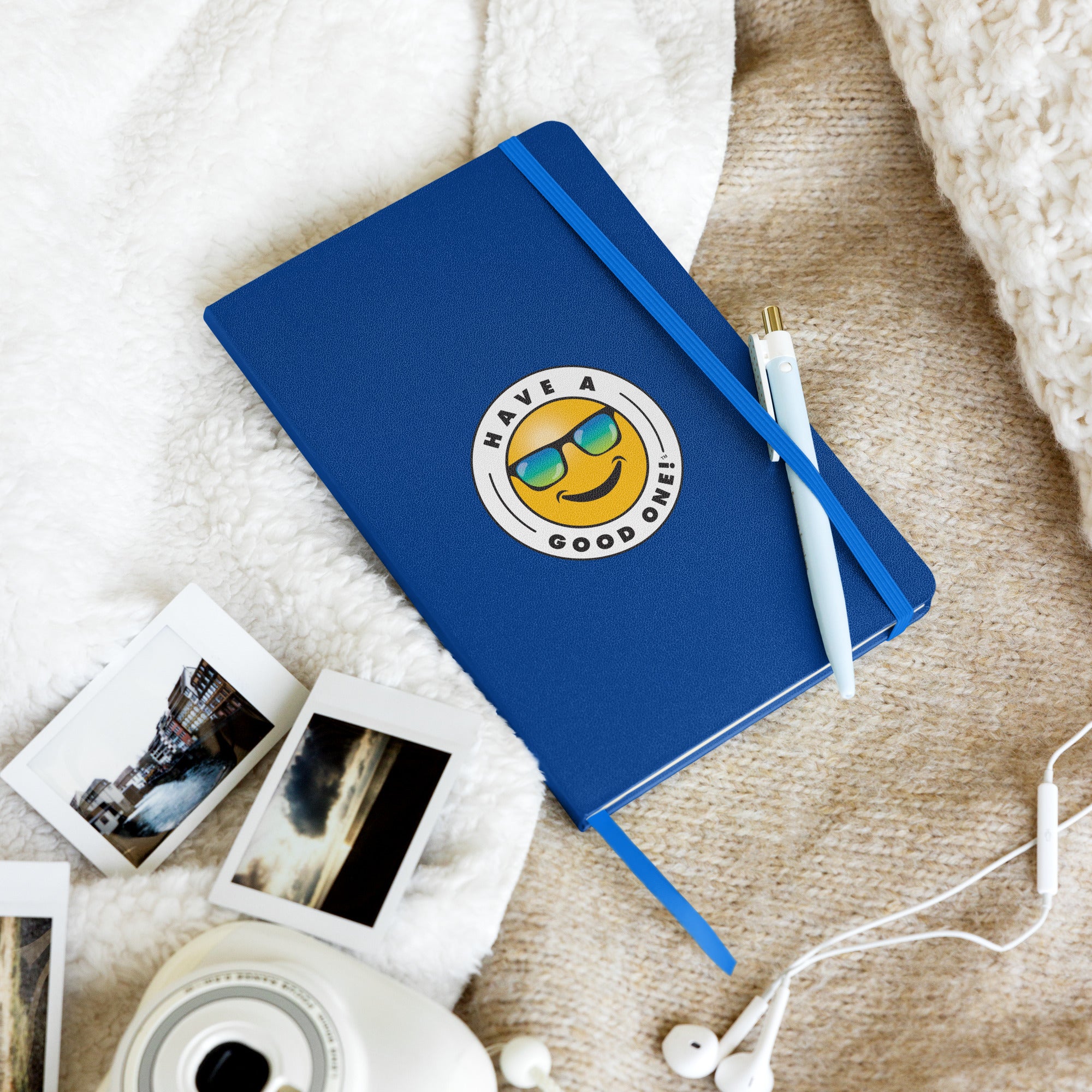 Fun Hardcover Bound Journal With Lines - Blue Color With Blue and Green Have A Good One! Logo