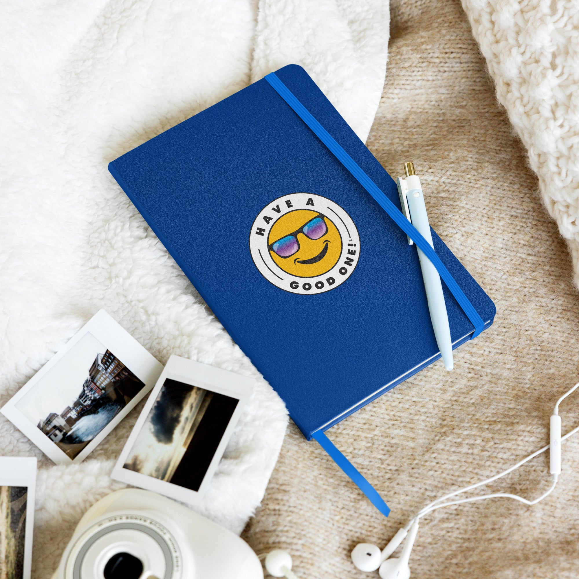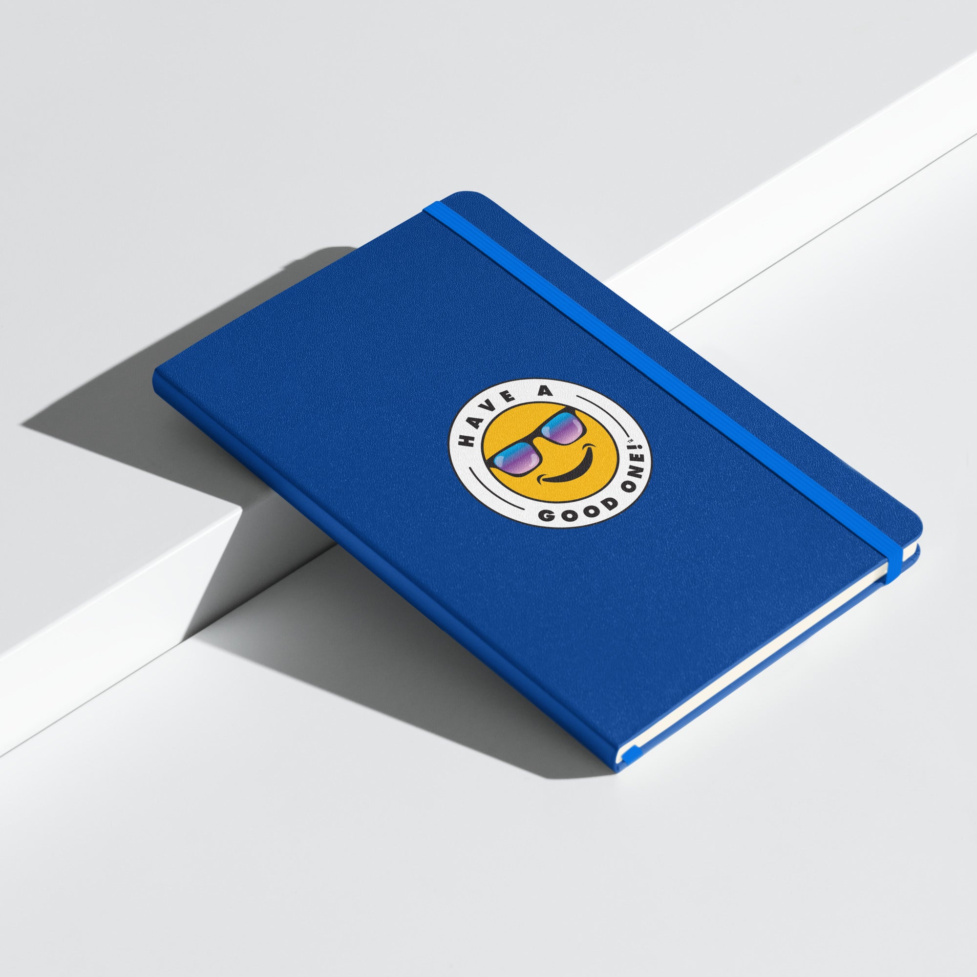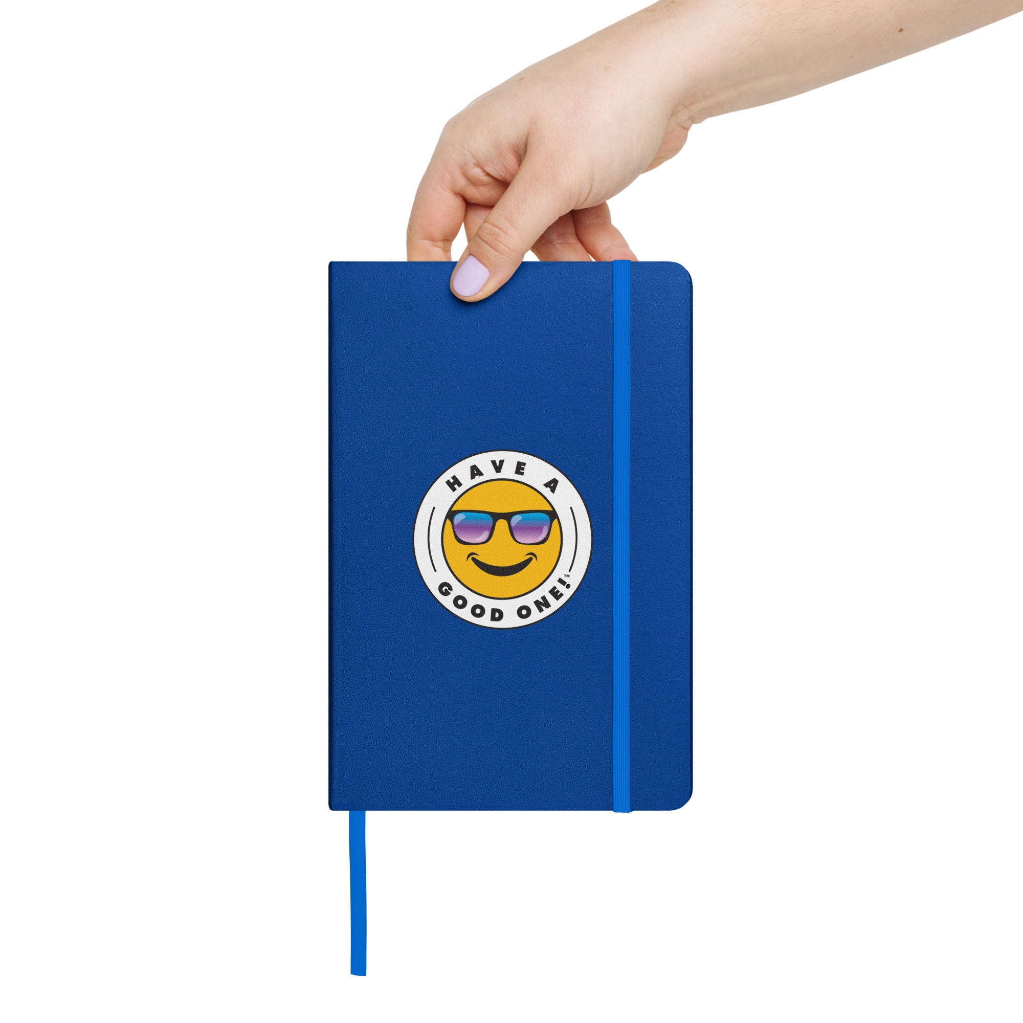 Fun Hardcover Bound Journal With Lines - Blue Color With Blue and Purple Have A Good One! Logo