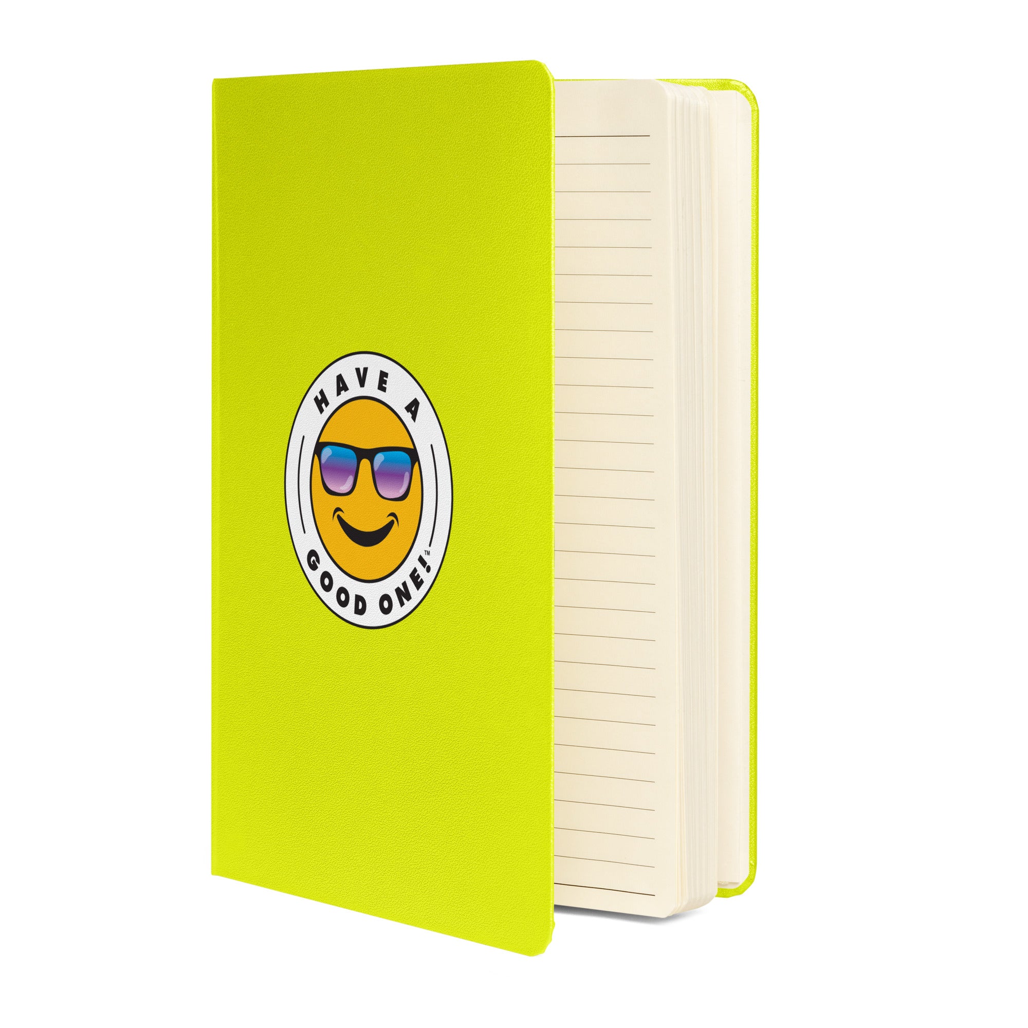 Fun Hardcover Bound Journal With Lines - Lime Green Color With Blue and Purple Have A Good One! Logo