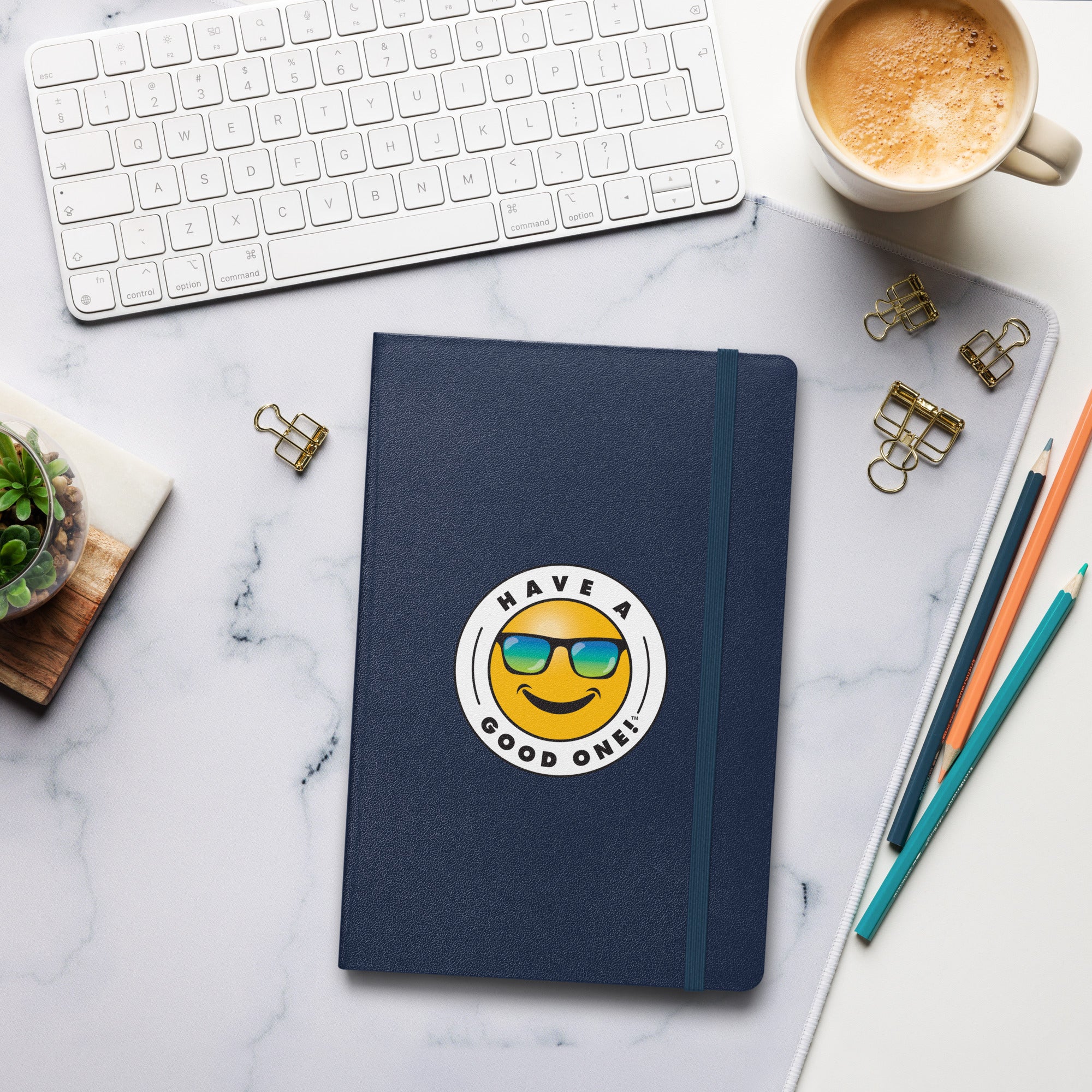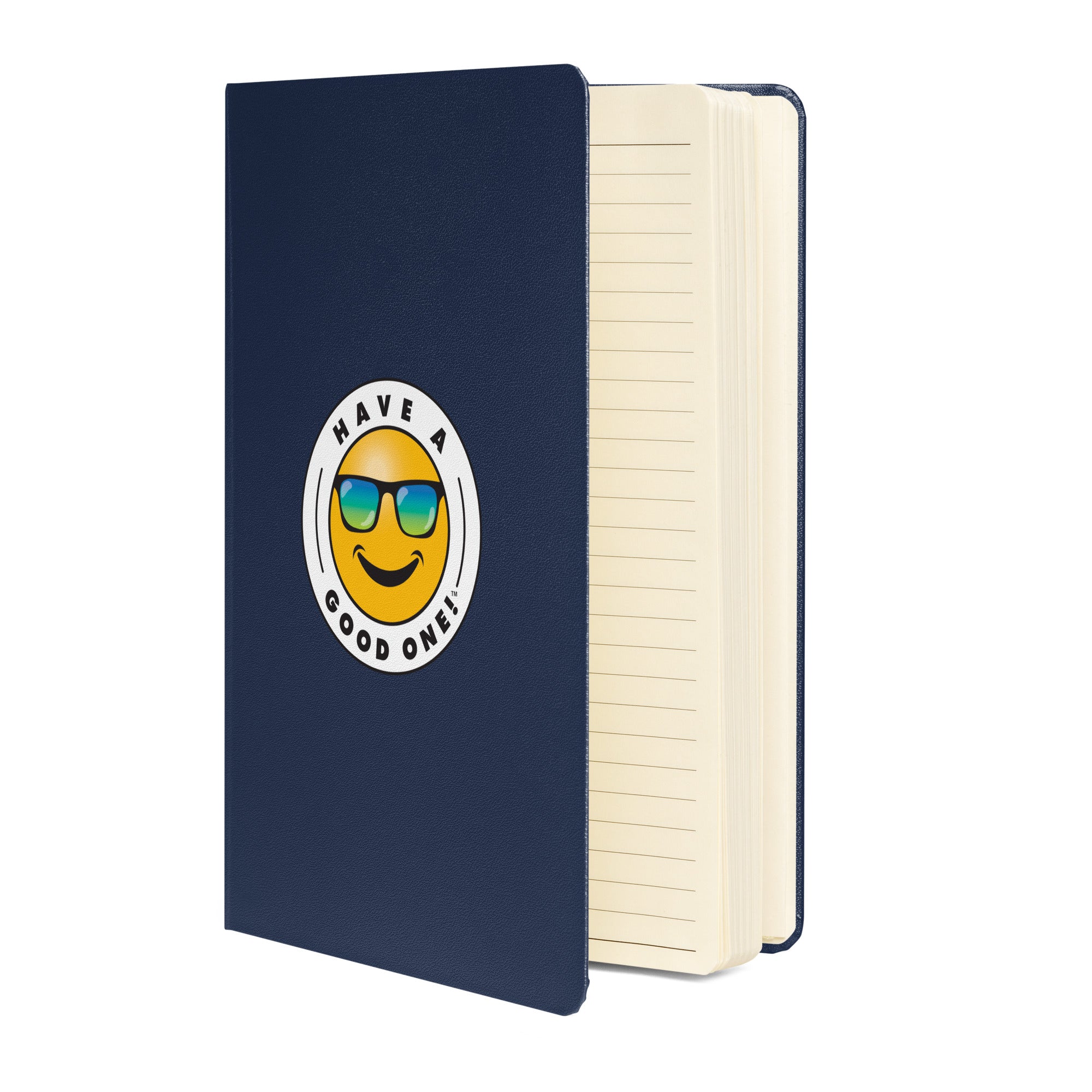 Fun Hardcover Bound Journal With Lines - Navy Blue Color With Blue and Green Have A Good One! Logo